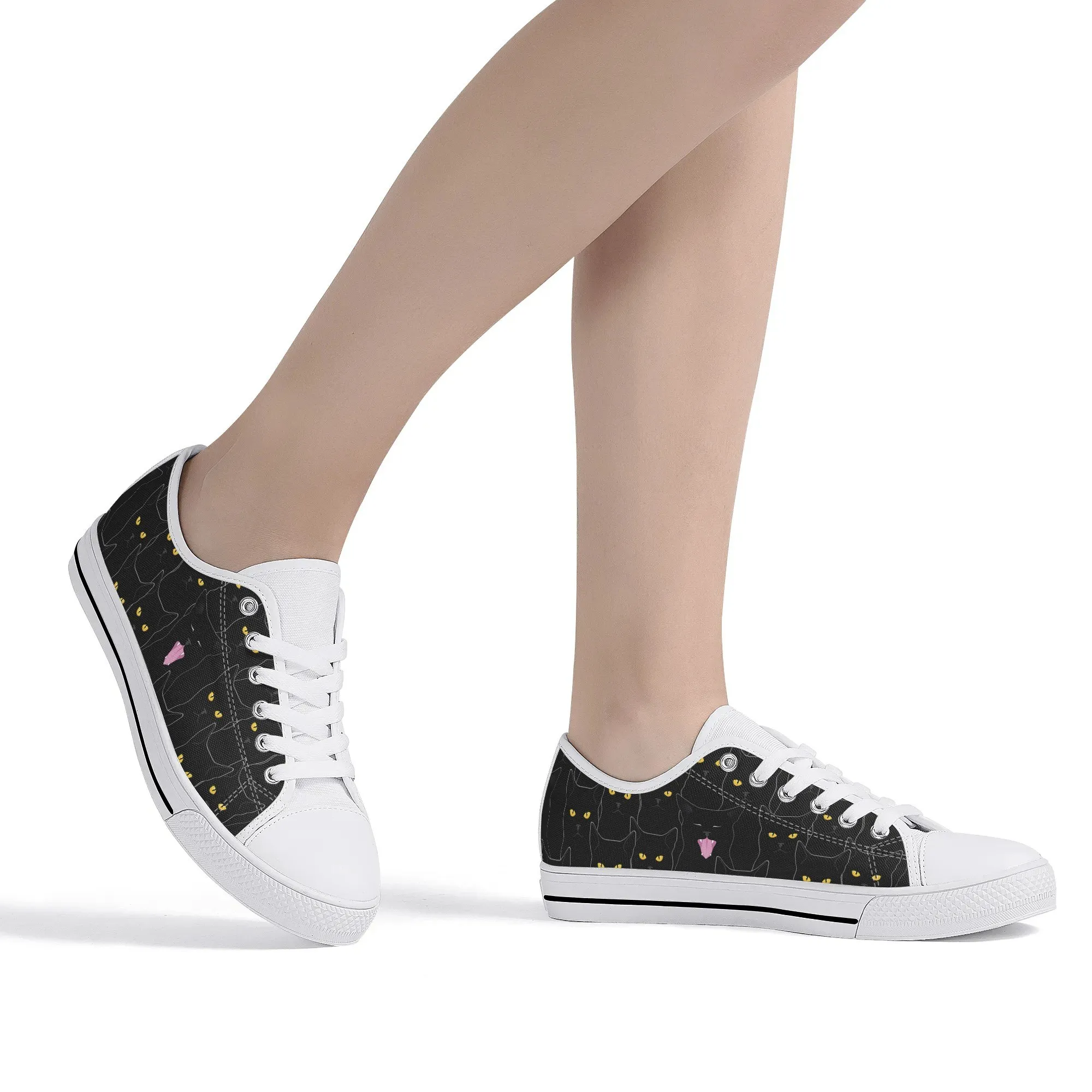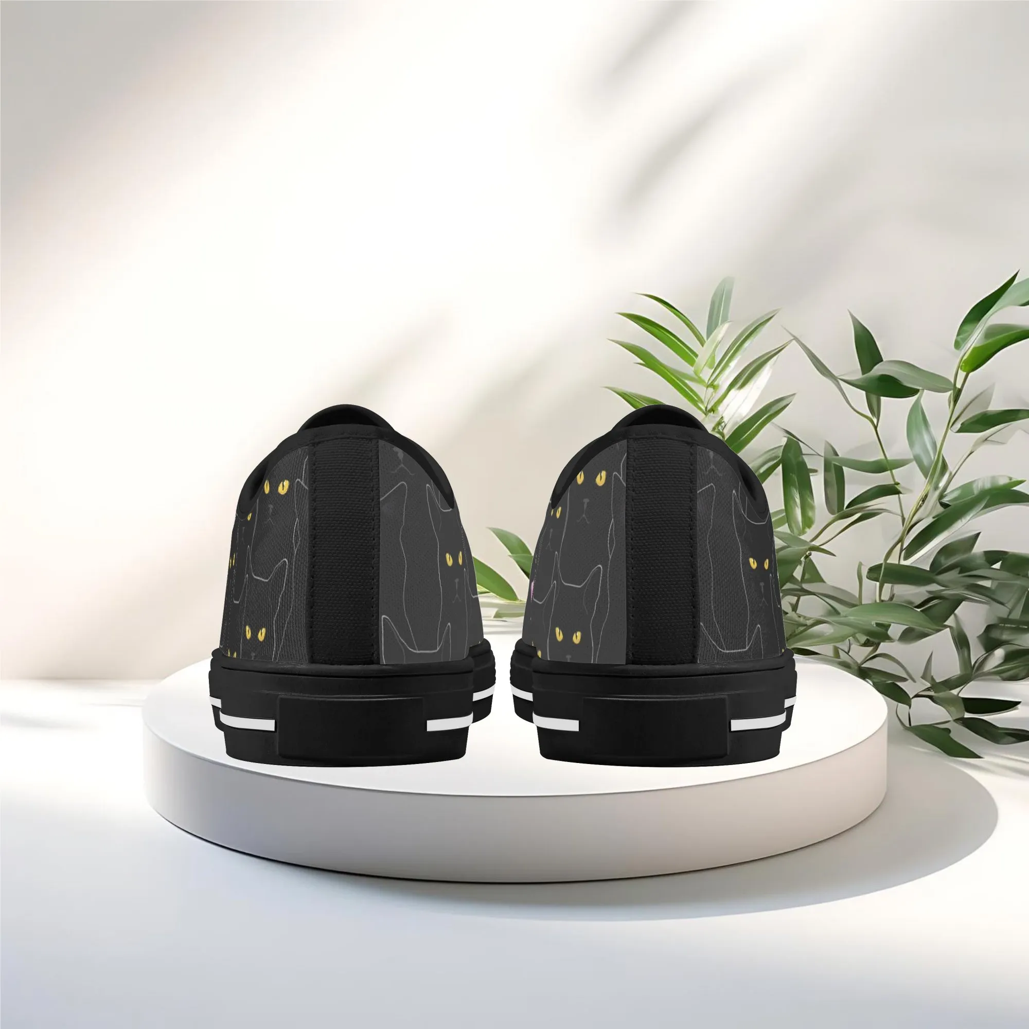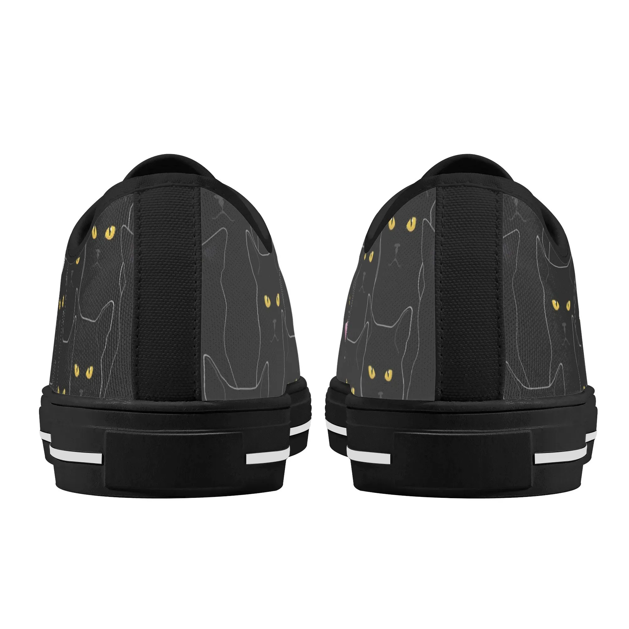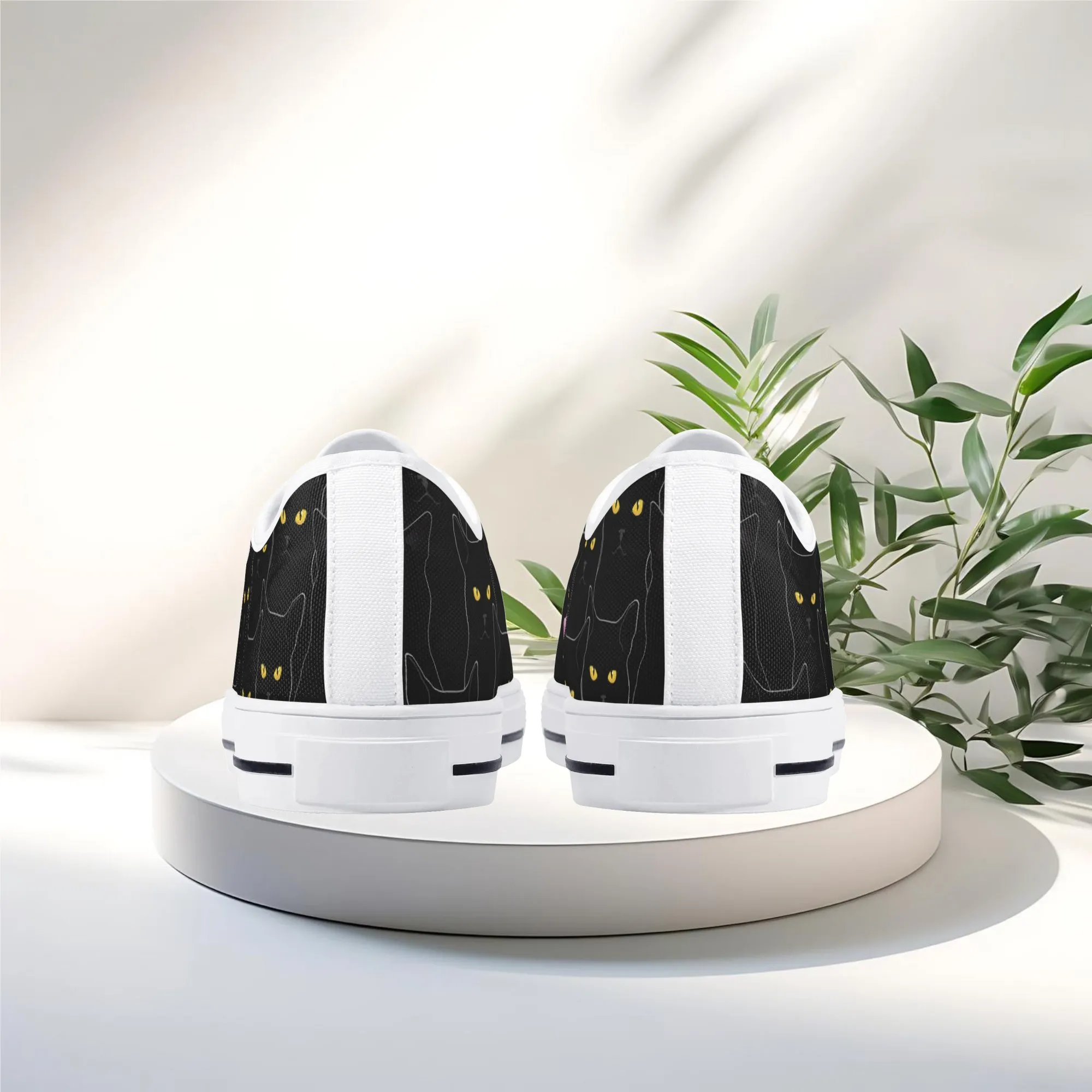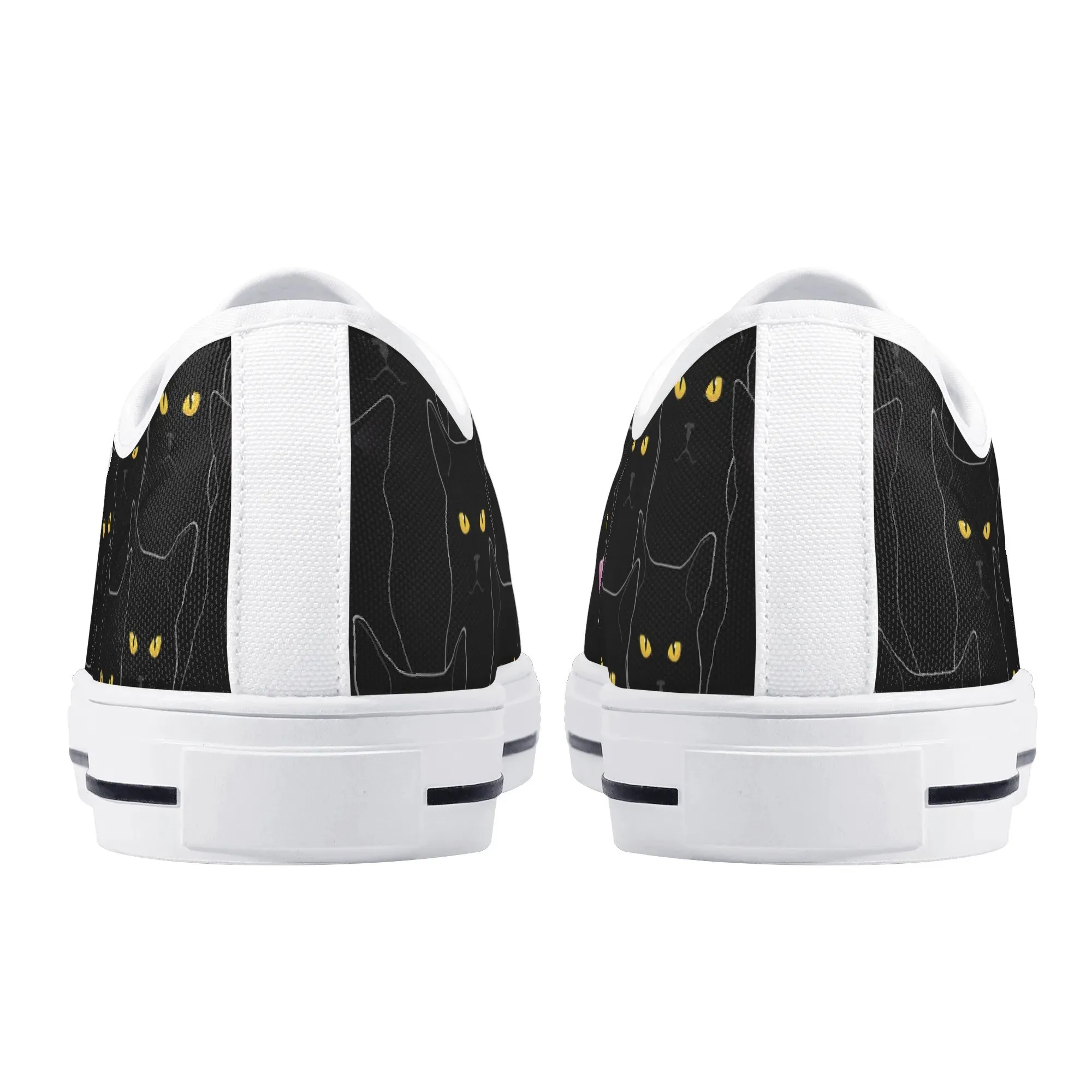 Black Cat Low Top Canvas Sneakers, Spooky Yellow Eyes Shoes for Women, Halloween Trainer, Witchy Pet Lover Gift, Gothic Kitty Footwear