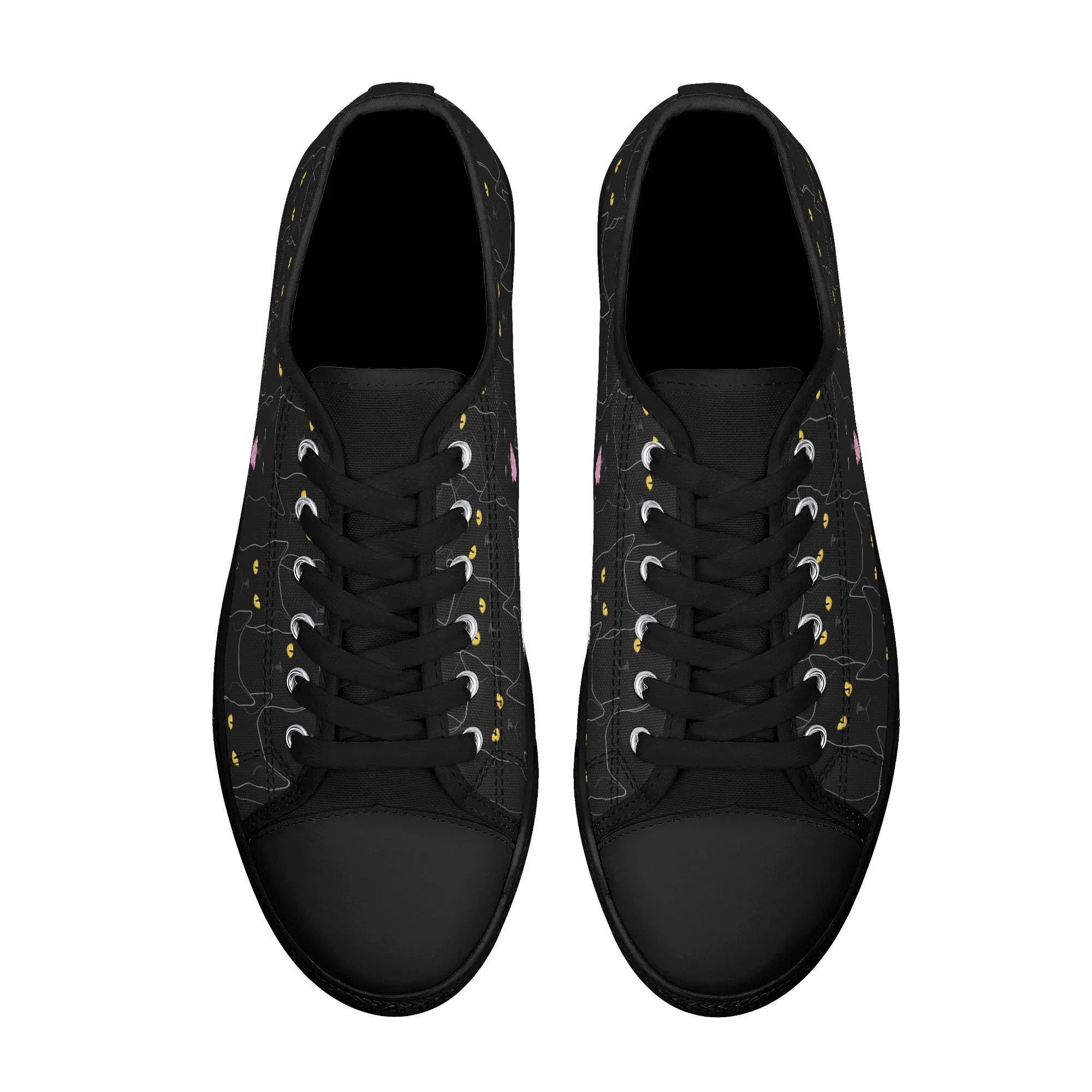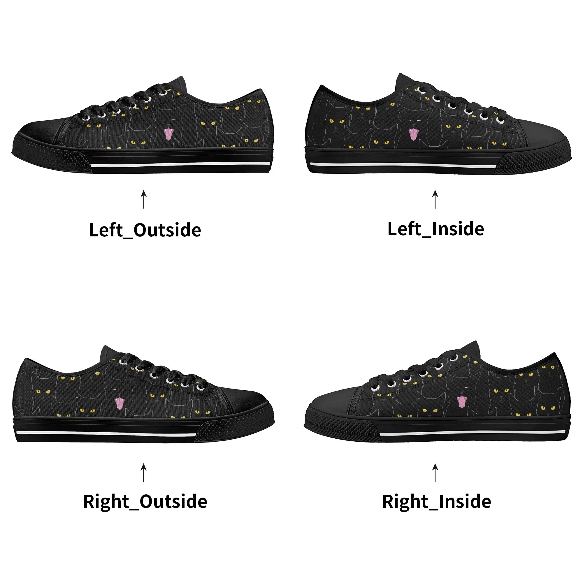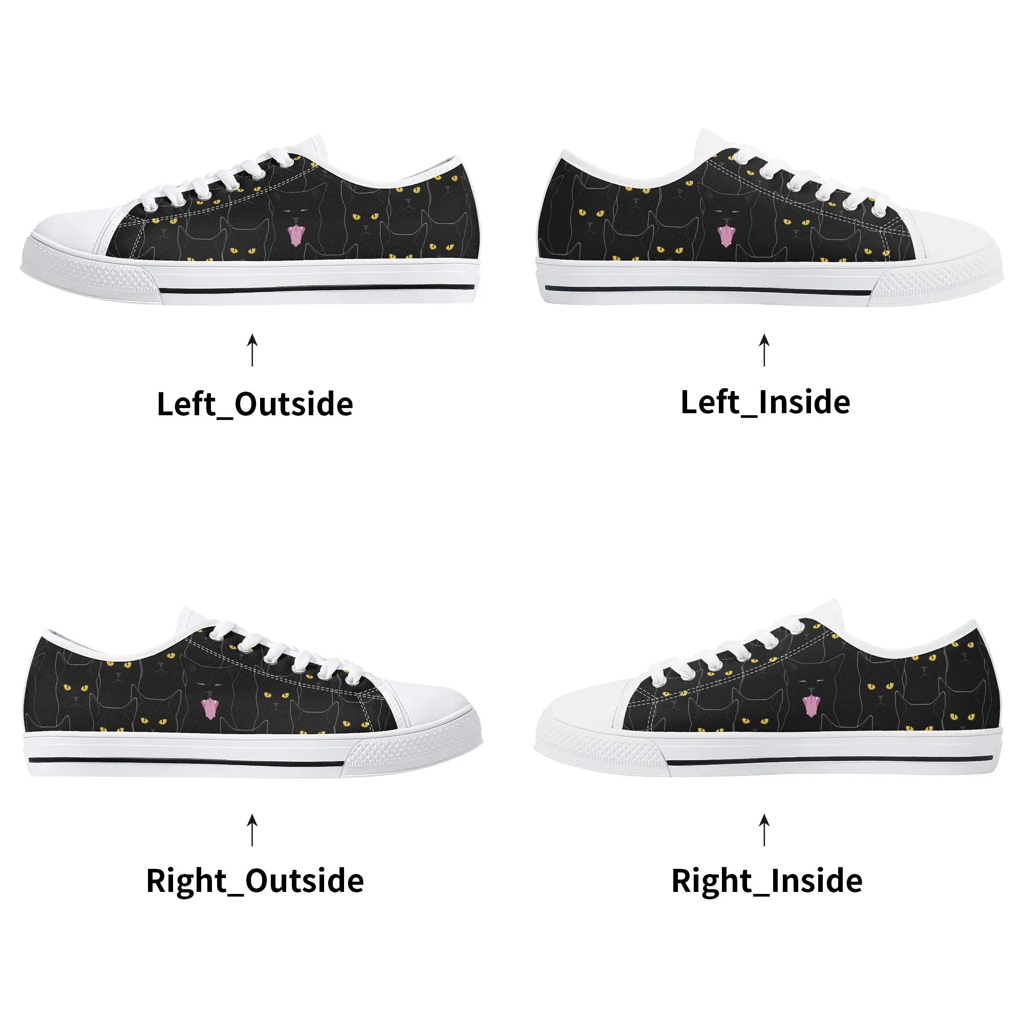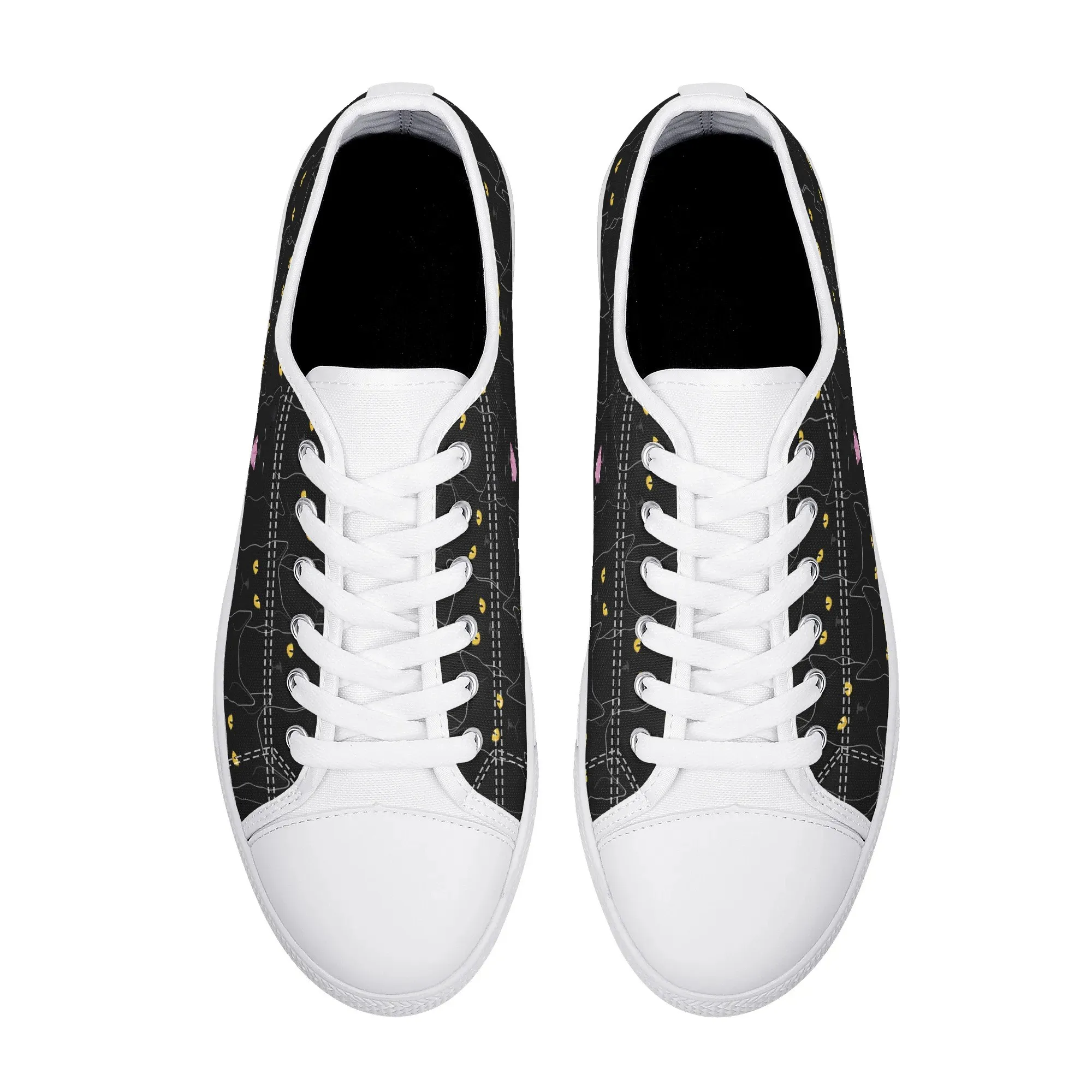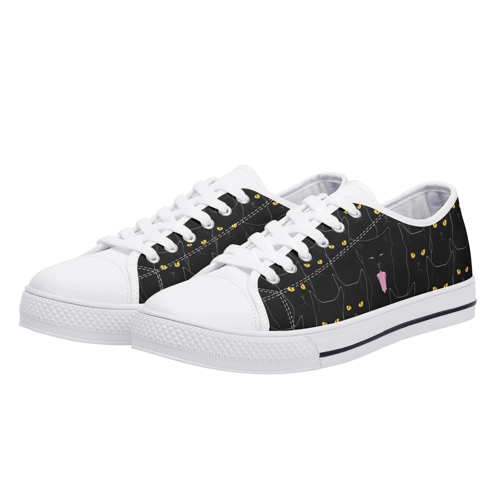 Black Cat Low Top Canvas Sneakers, Spooky Yellow Eyes Shoes for Women, Halloween Trainer, Witchy Pet Lover Gift, Gothic Kitty Footwear