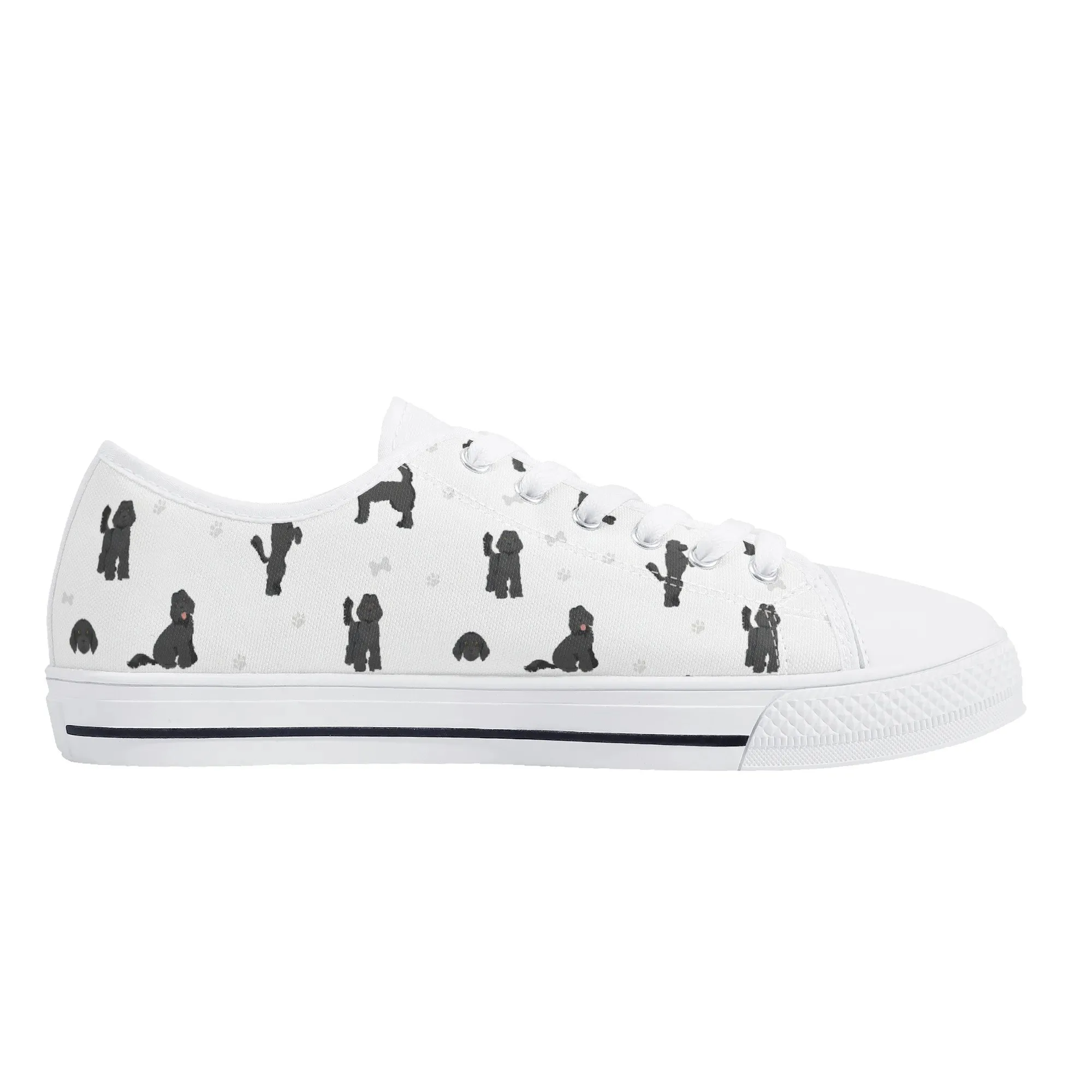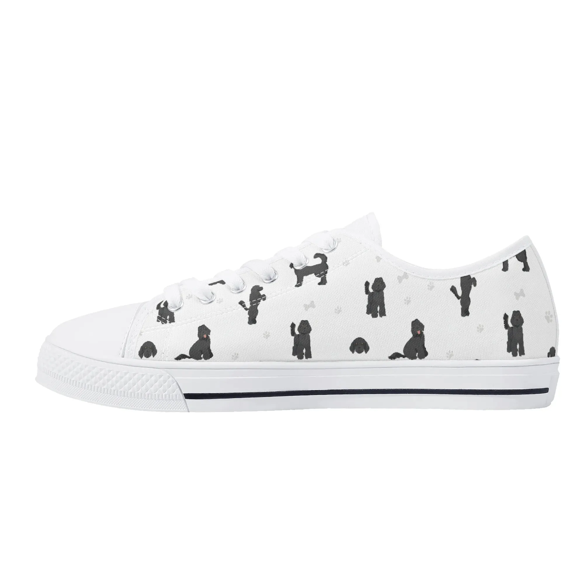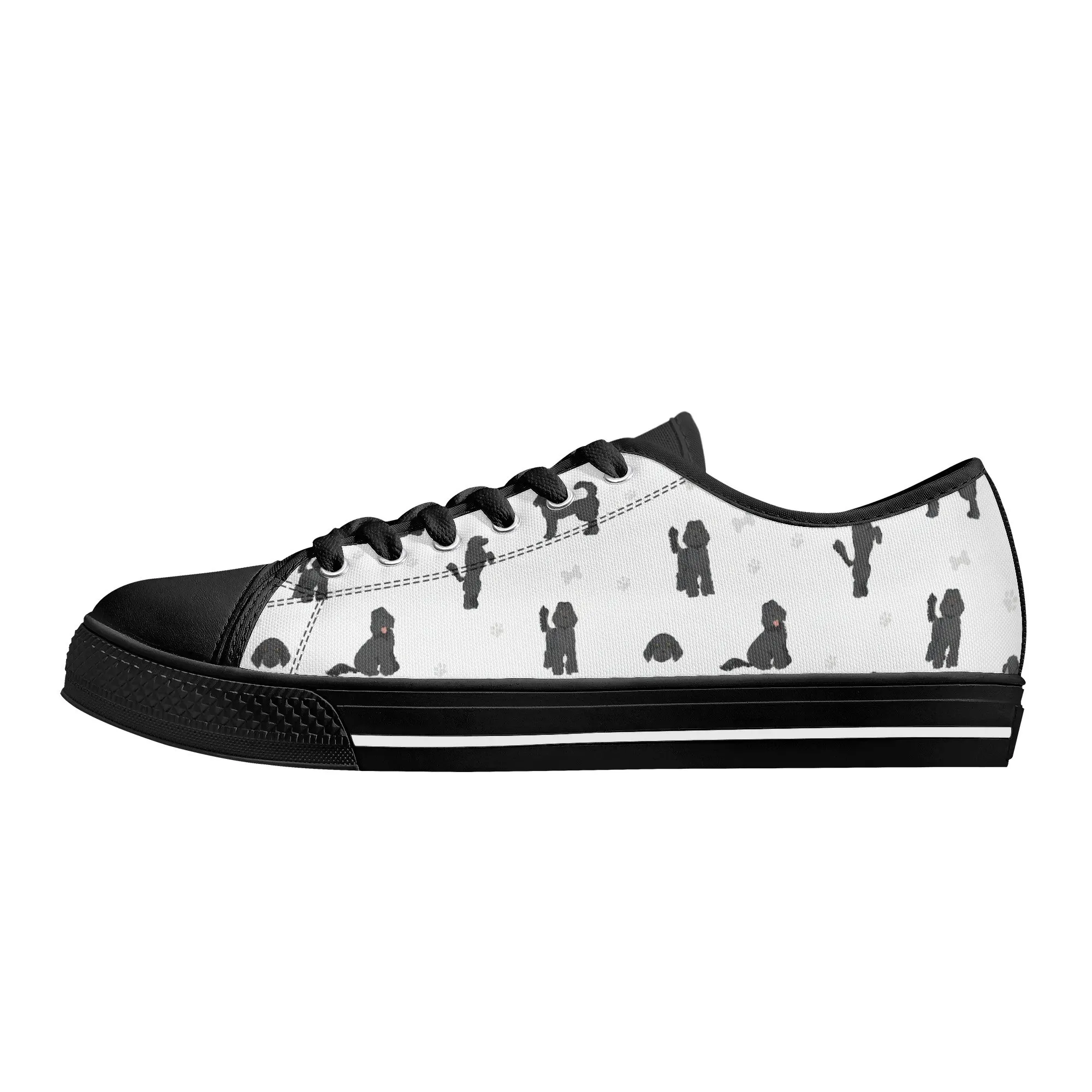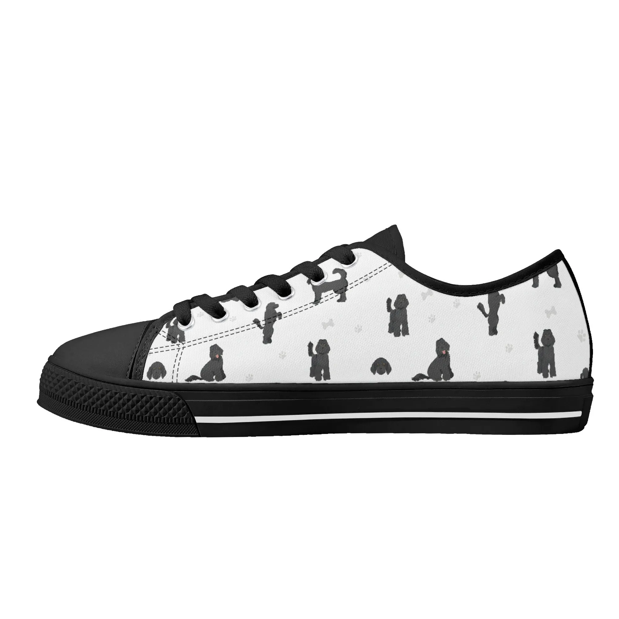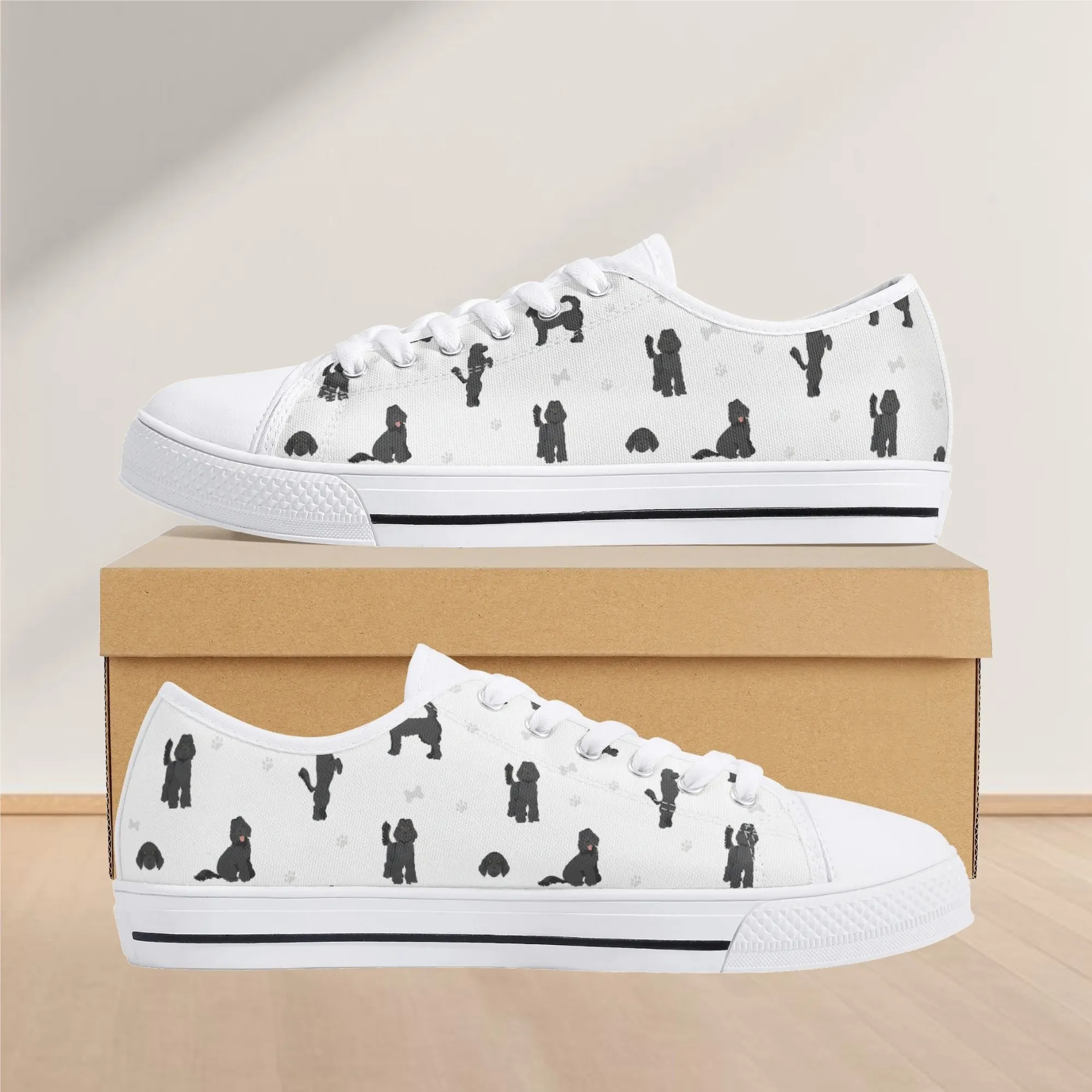 ⚫ Step out with sophisticated charm in these elegant low-top canvas shoes featuring a repeated silhouette pattern of the distinctive Black Poodle! This stylish, minimalist design is perfect for Poodle owners, black dog lovers, and anyone who appreciates a chic, iconic breed. These unisex sneakers are constructed for superior comfort and all-day durability, making them the ideal footwear for dog parks, casual outings, or showing off your breed pride in a fashionable way.