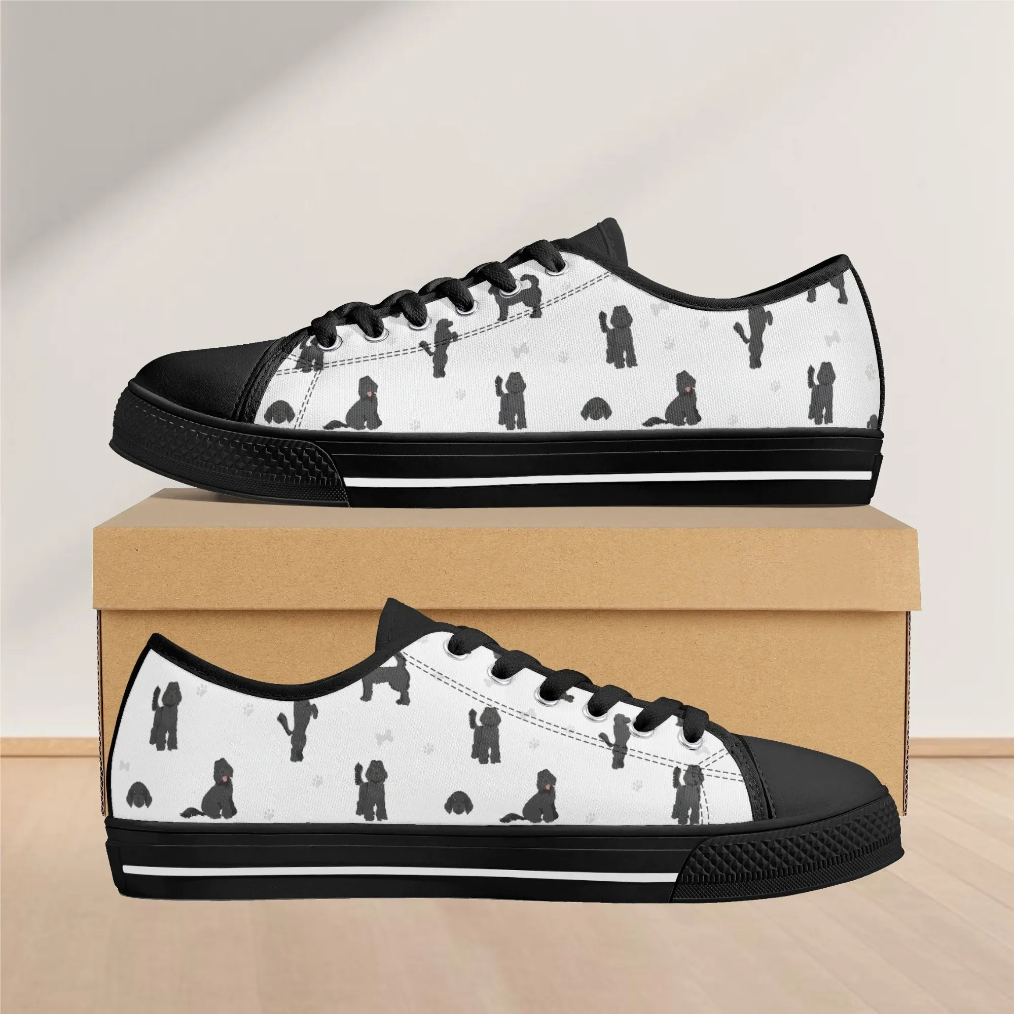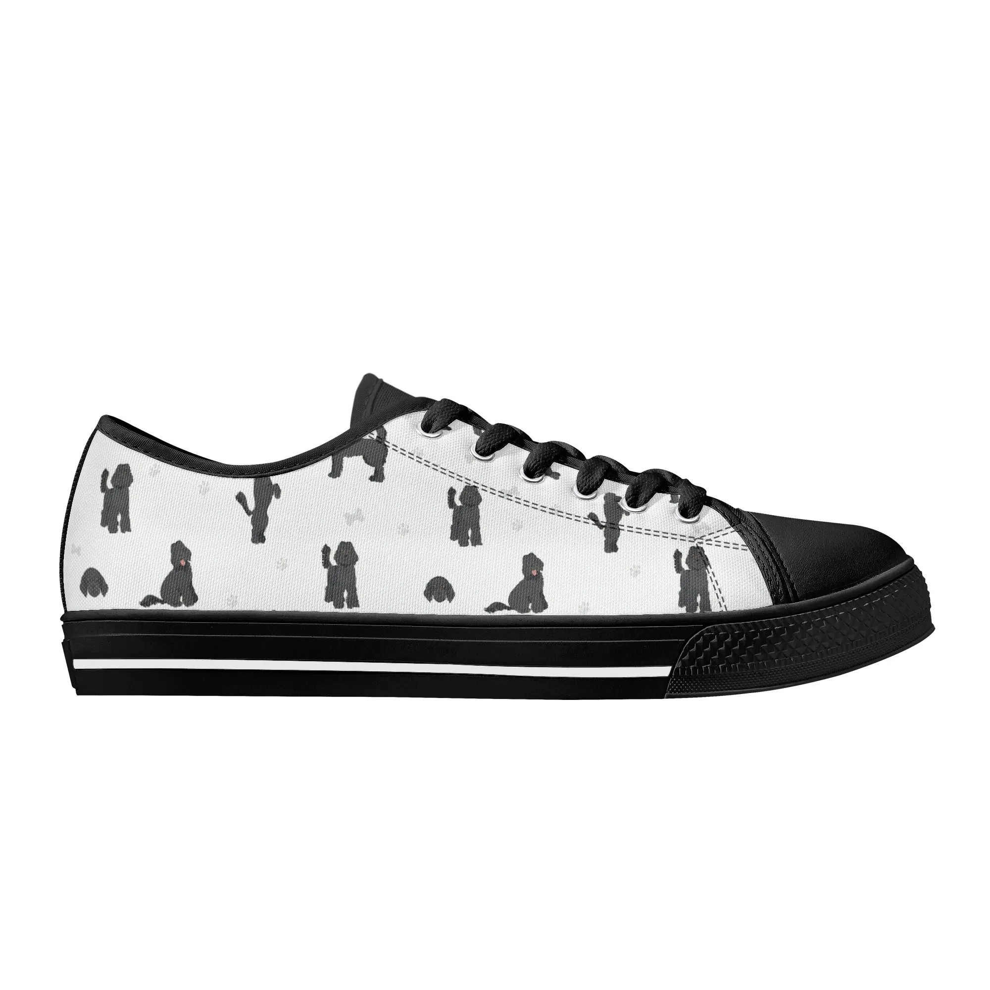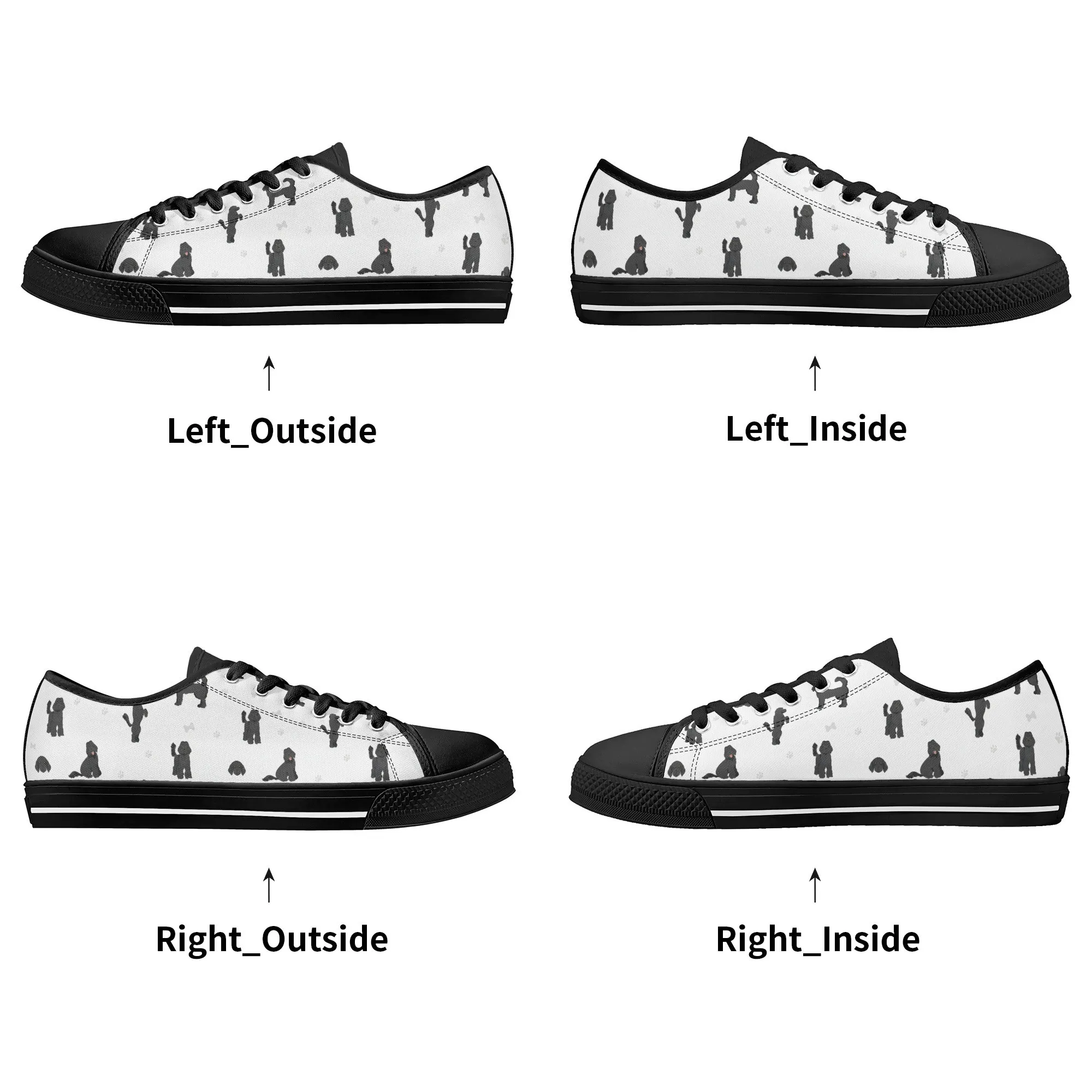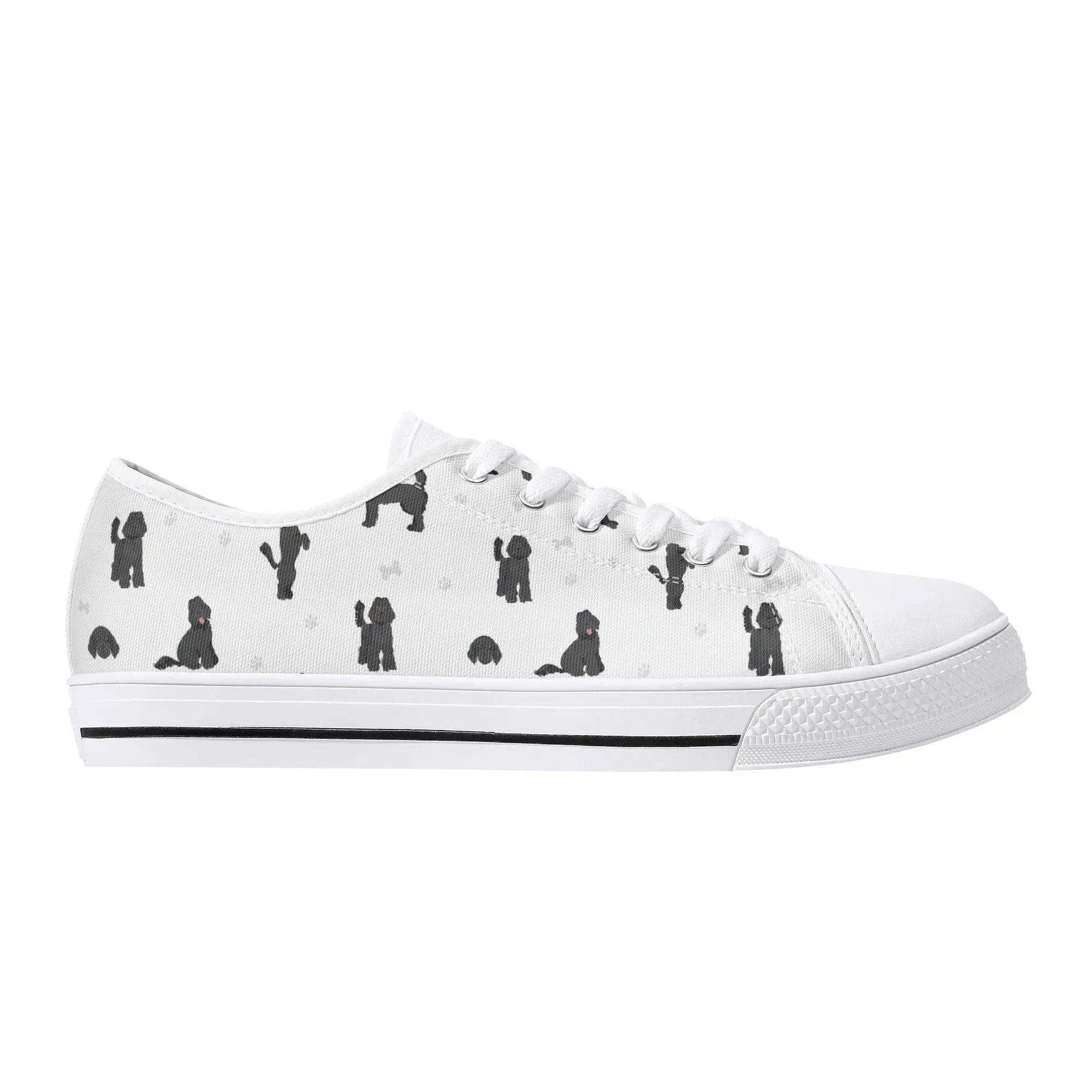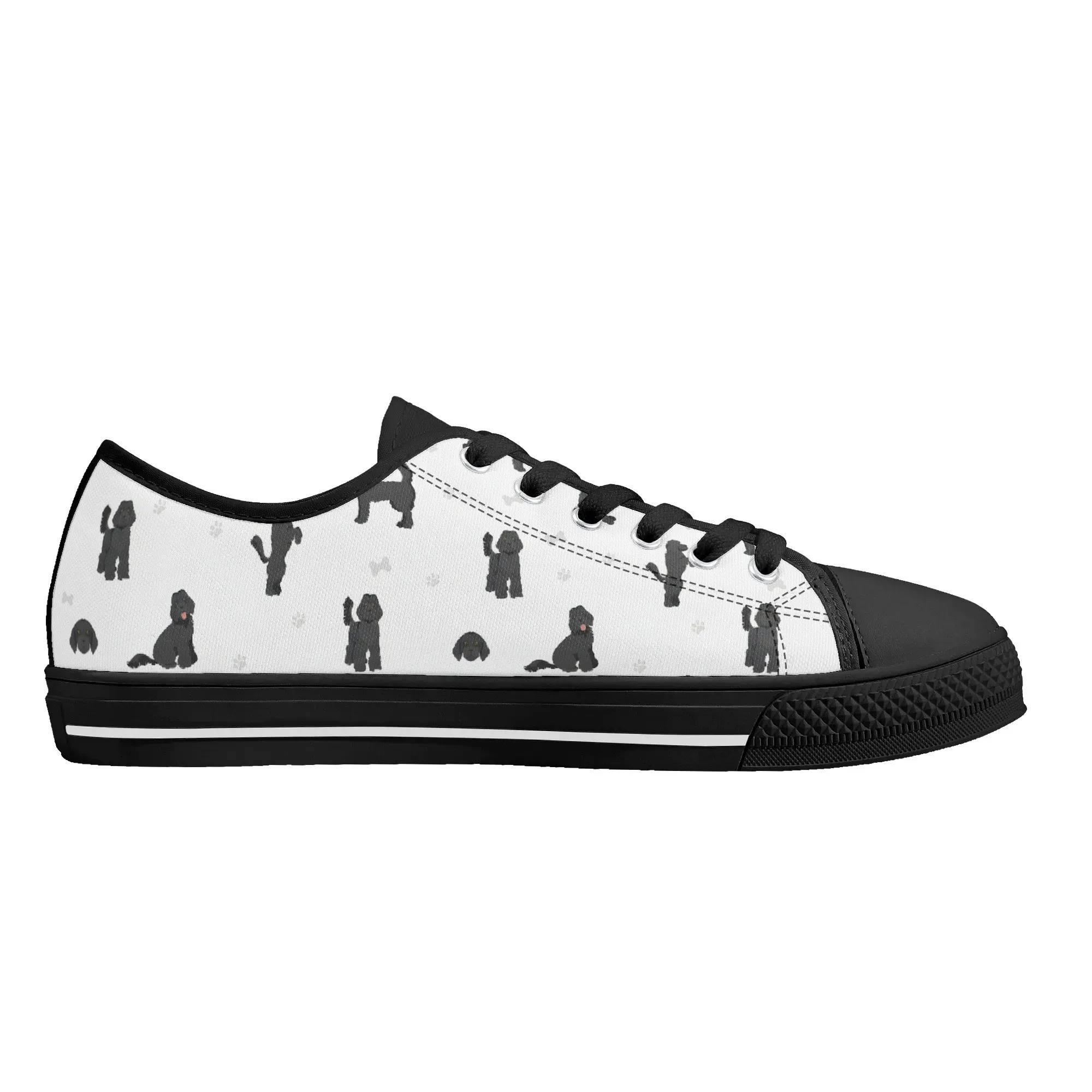 ⚫ Step out with sophisticated charm in these elegant low-top canvas shoes featuring a repeated silhouette pattern of the distinctive Black Poodle! This stylish, minimalist design is perfect for Poodle owners, black dog lovers, and anyone who appreciates a chic, iconic breed. These unisex sneakers are constructed for superior comfort and all-day durability, making them the ideal footwear for dog parks, casual outings, or showing off your breed pride in a fashionable way.