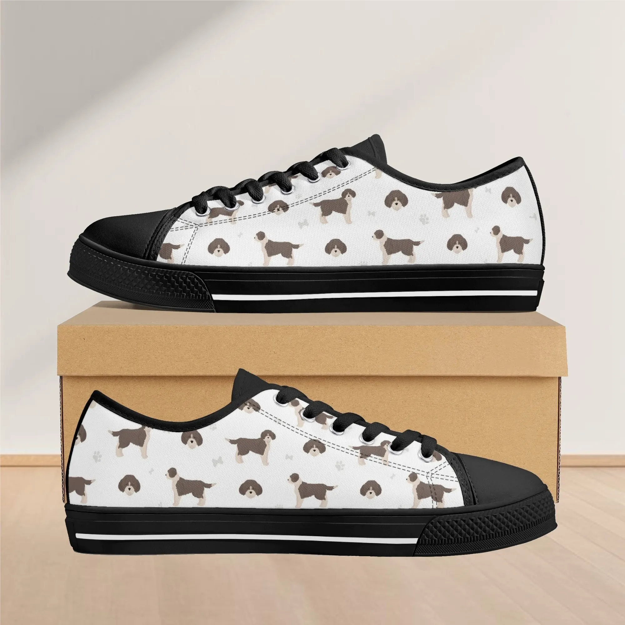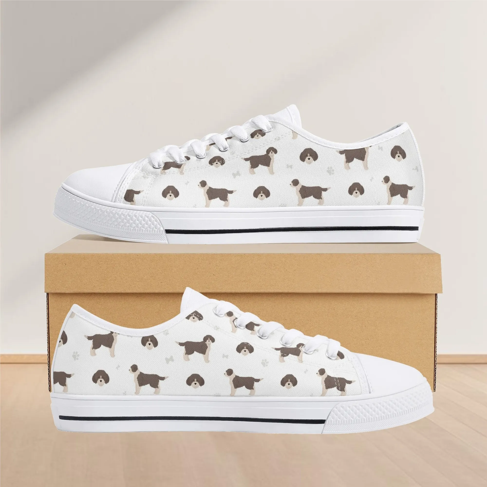 Brittany Spaniel Canvas Shoes, Women’s Low Top Hunting Dog Sneakers, Men’s Brittany Dog Gift, Brittany Spaniel Art Footwear Gift for Him