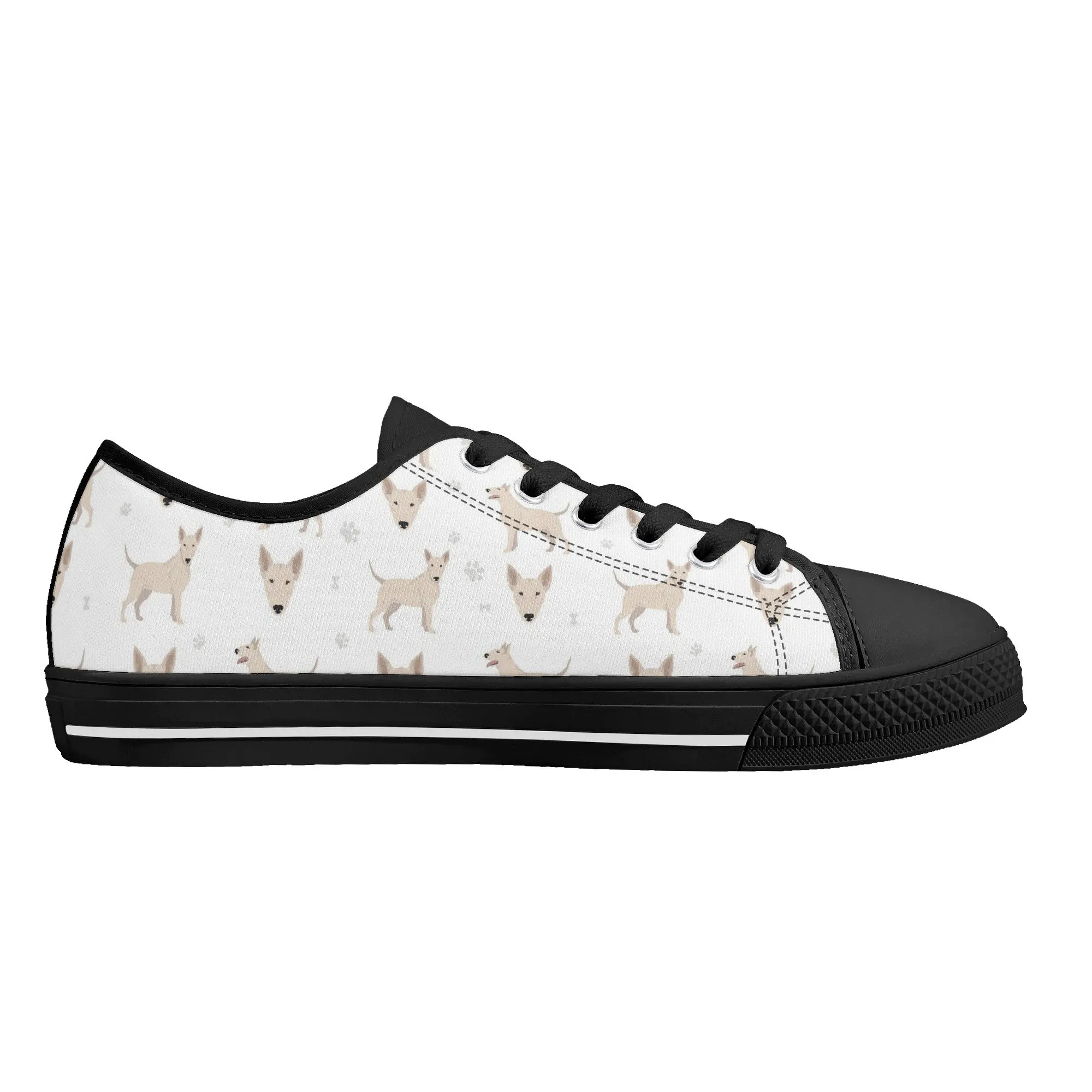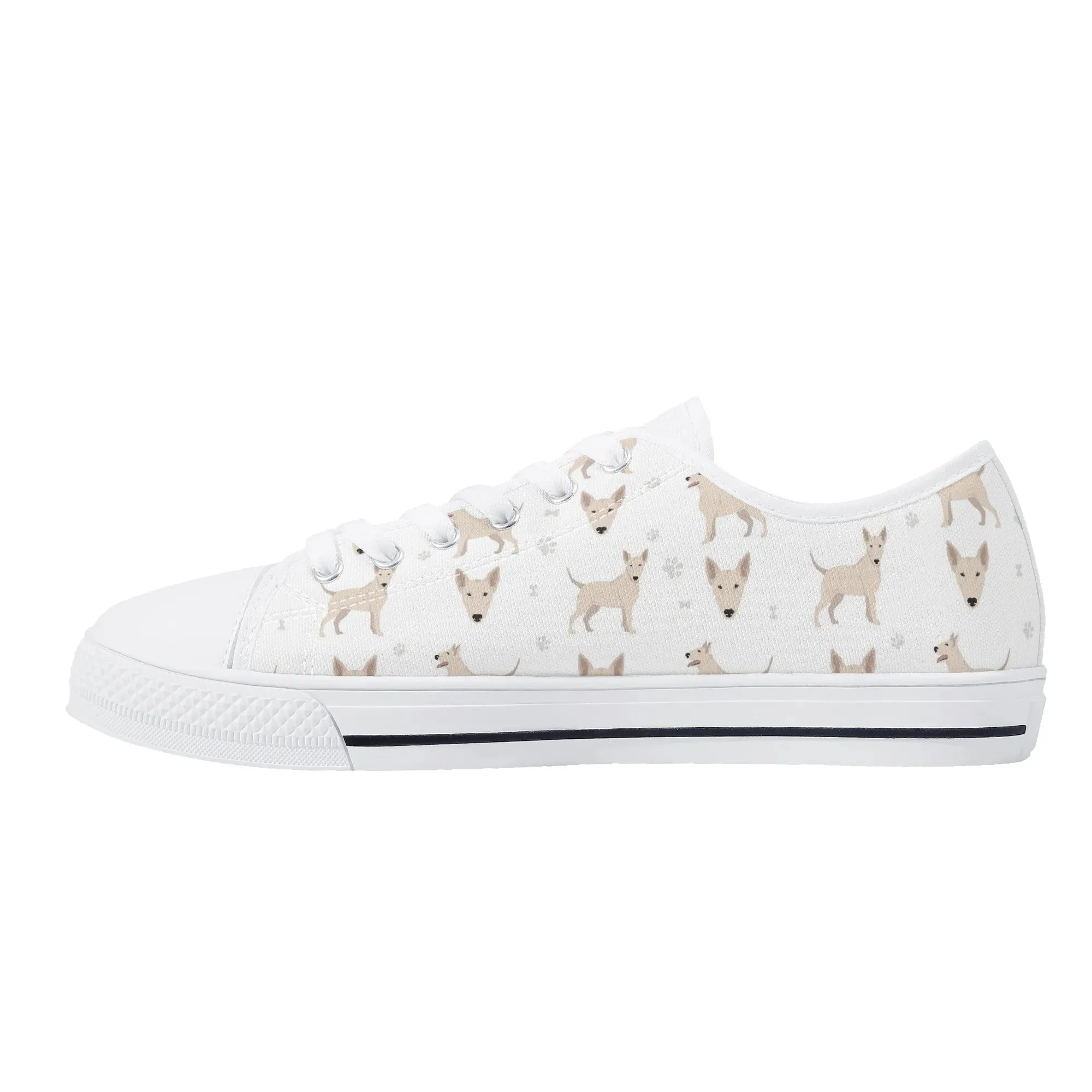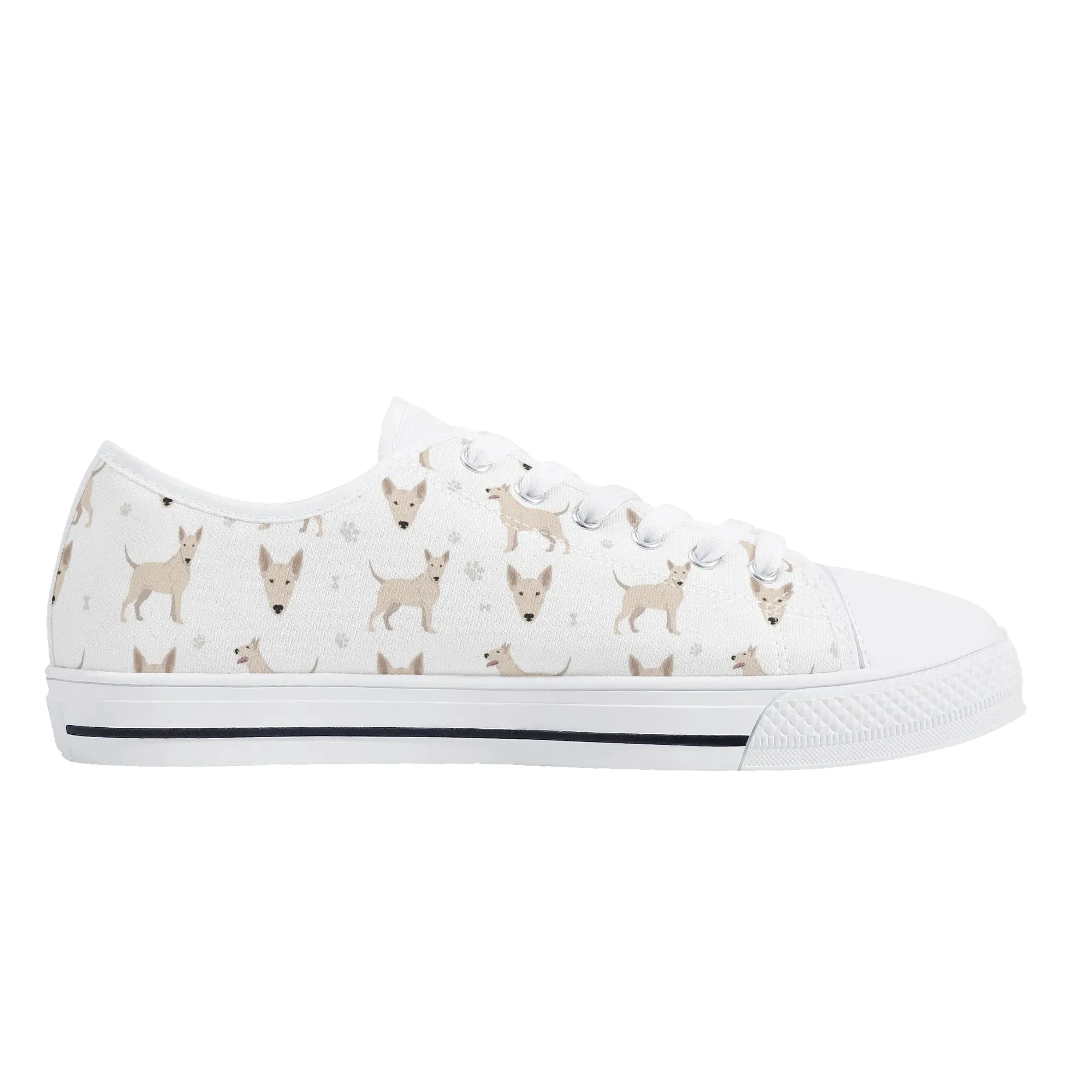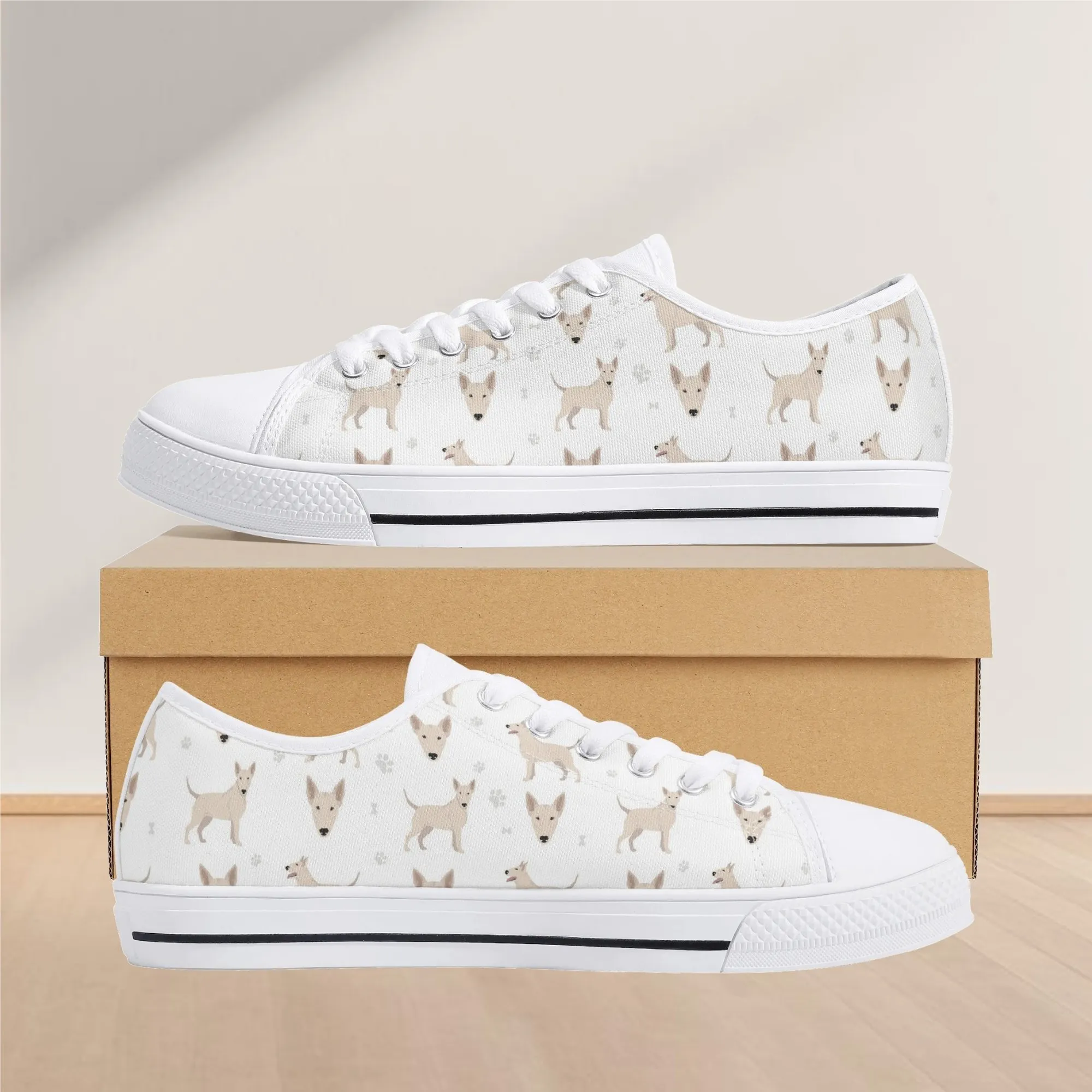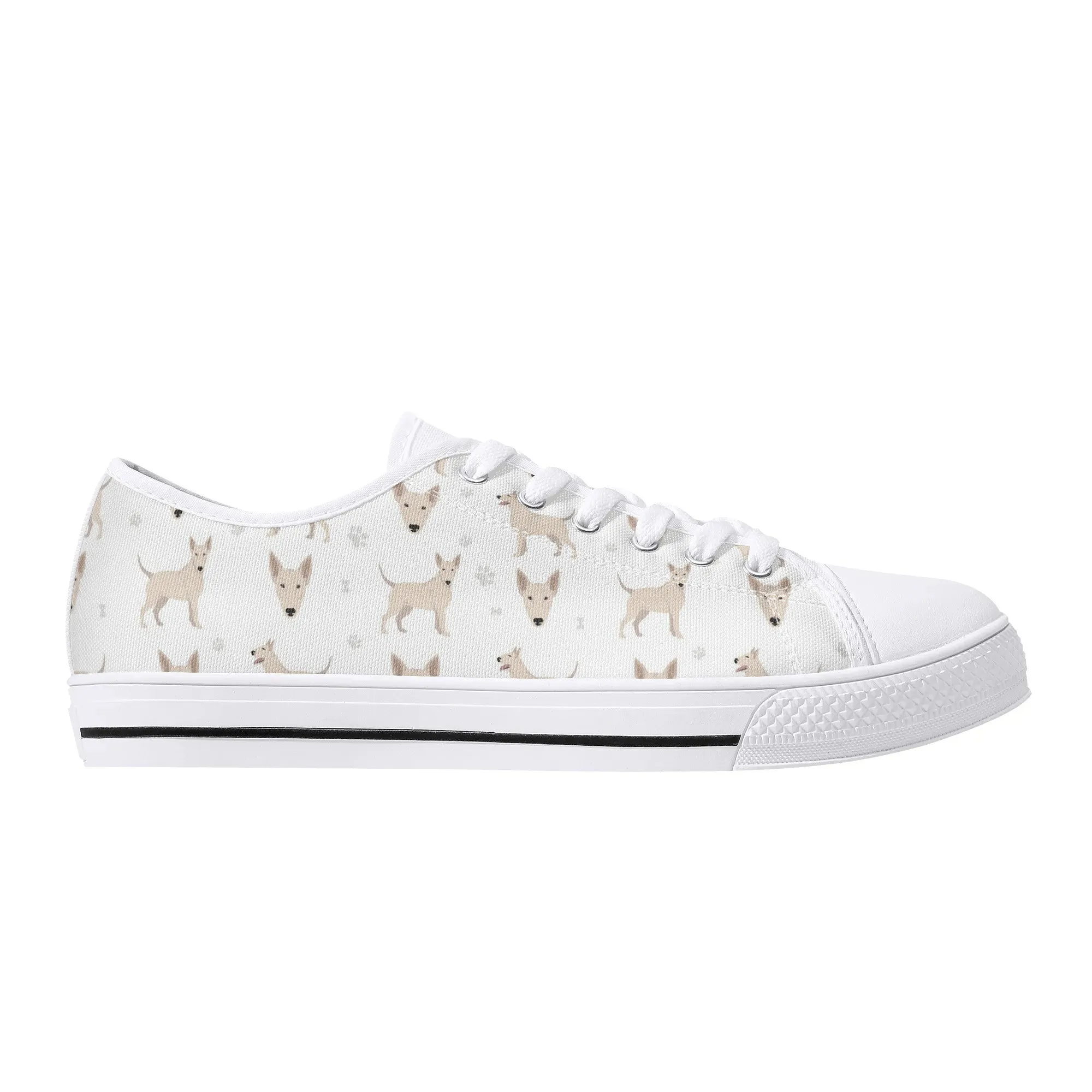 Bull Terrier Dog Print Canvas Shoes, Women’s Low Top Terrier Sneakers, Men’s Tan Puppy Pattern Casual Rubber Sole Trainer Gift