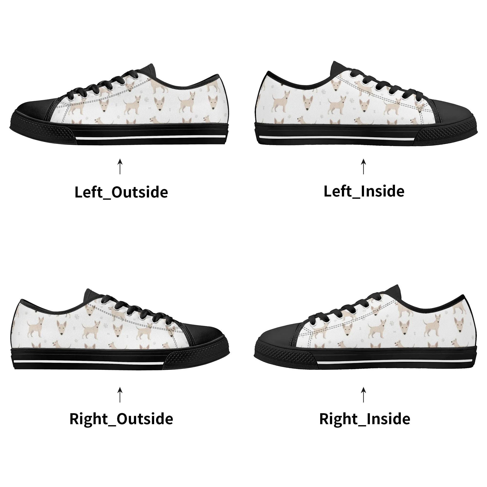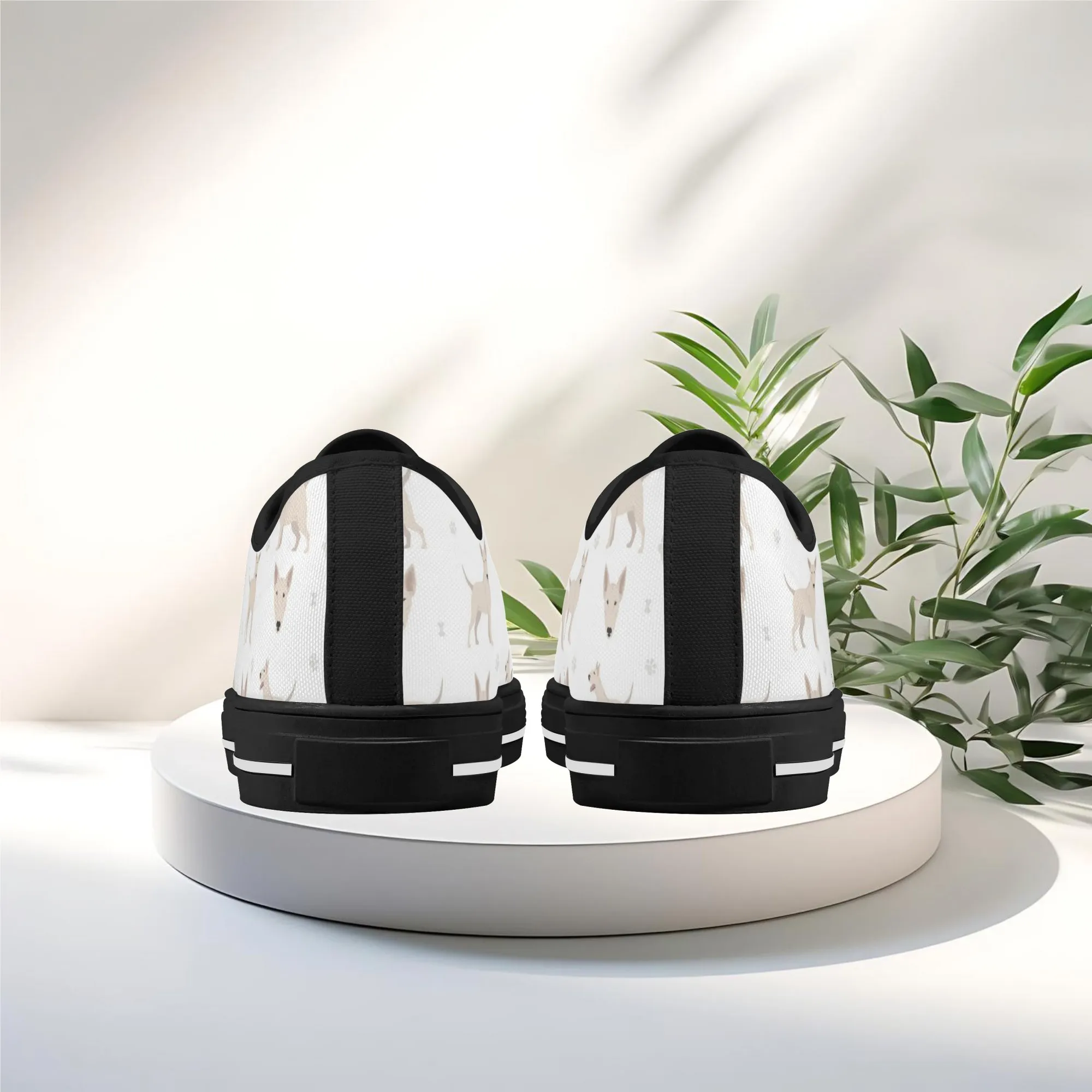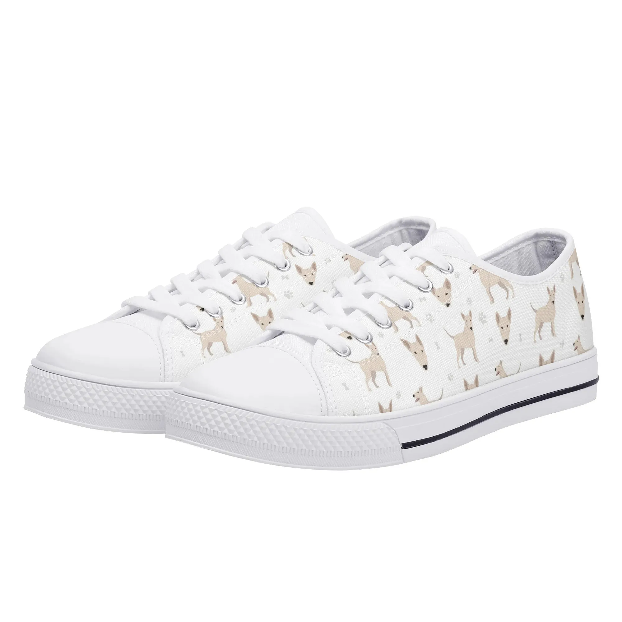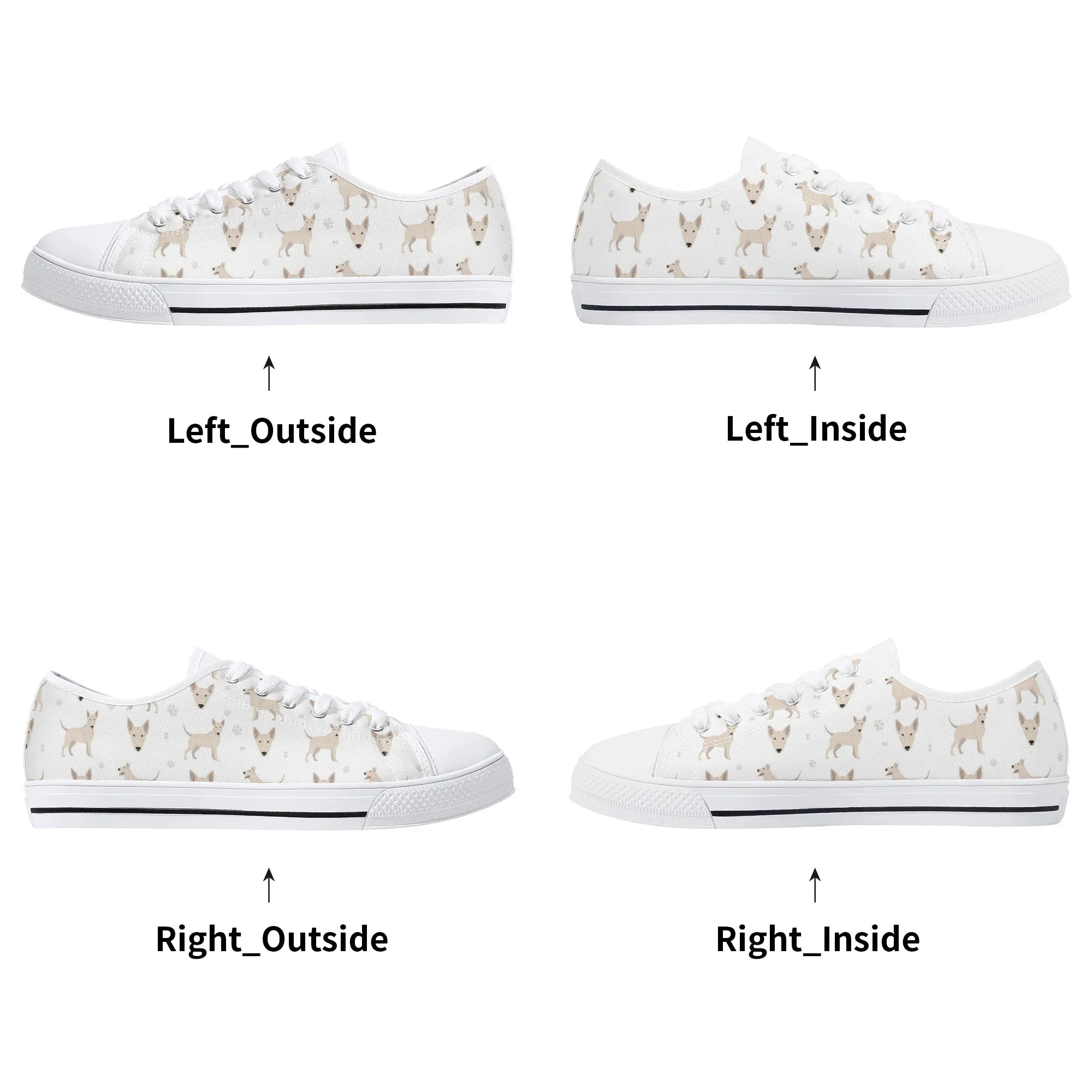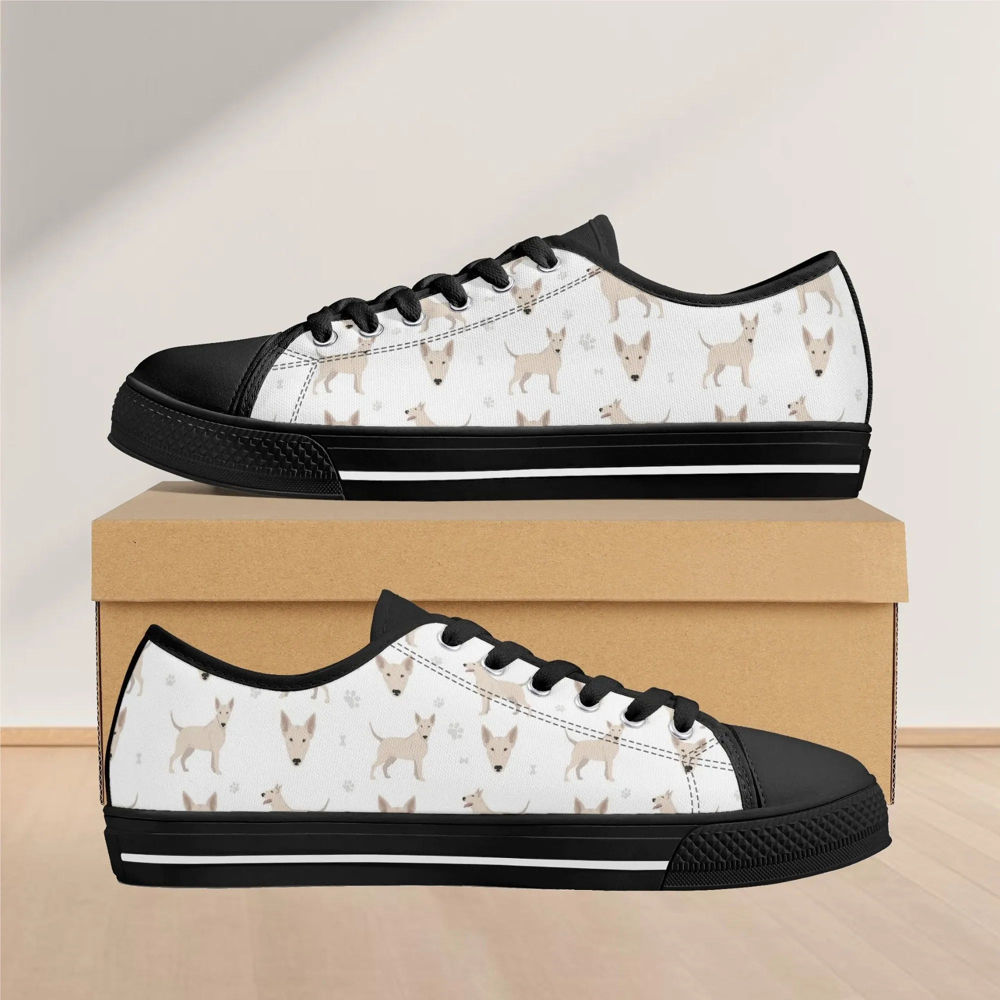 Bull Terrier Dog Print Canvas Shoes, Women’s Low Top Terrier Sneakers, Men’s Tan Puppy Pattern Casual Rubber Sole Trainer Gift