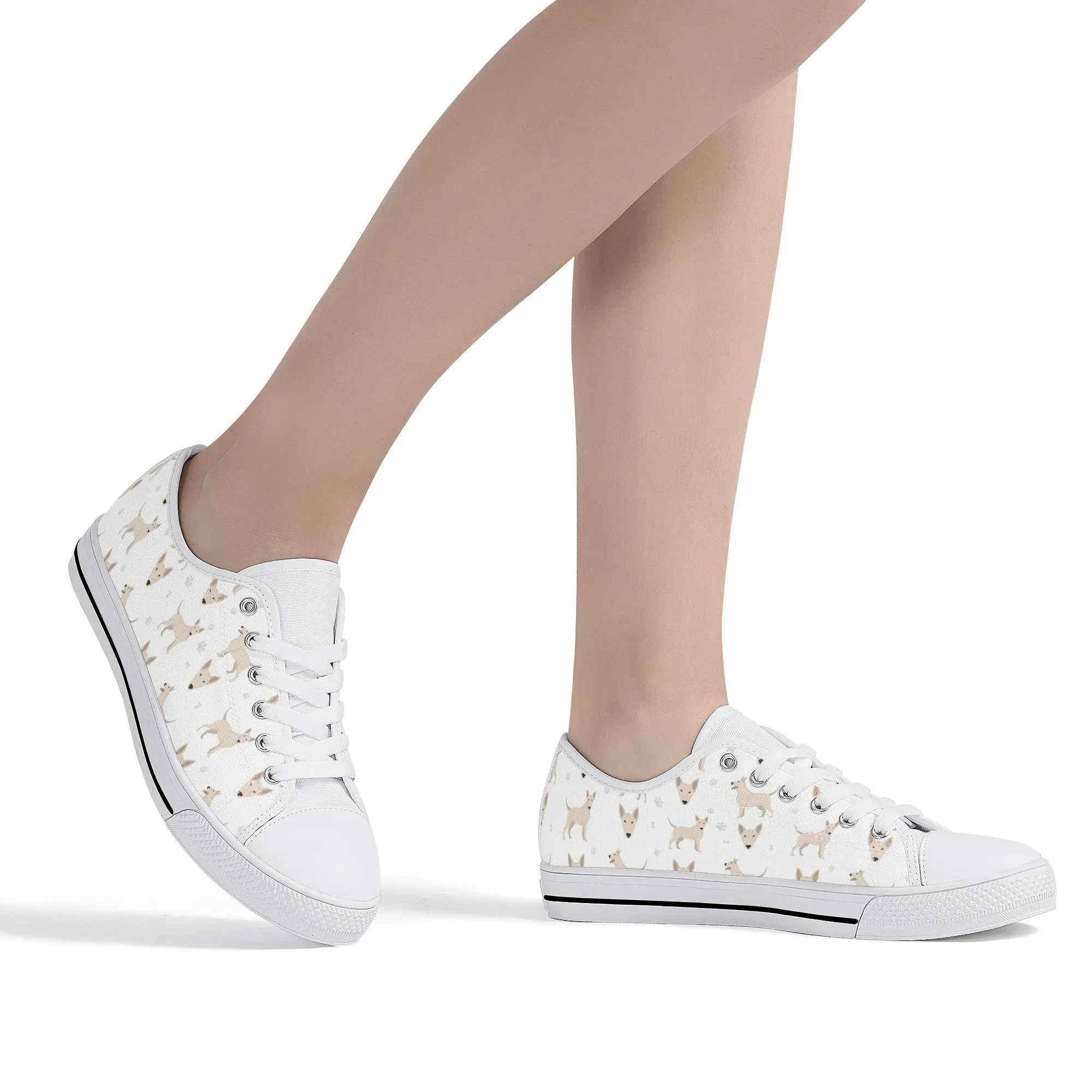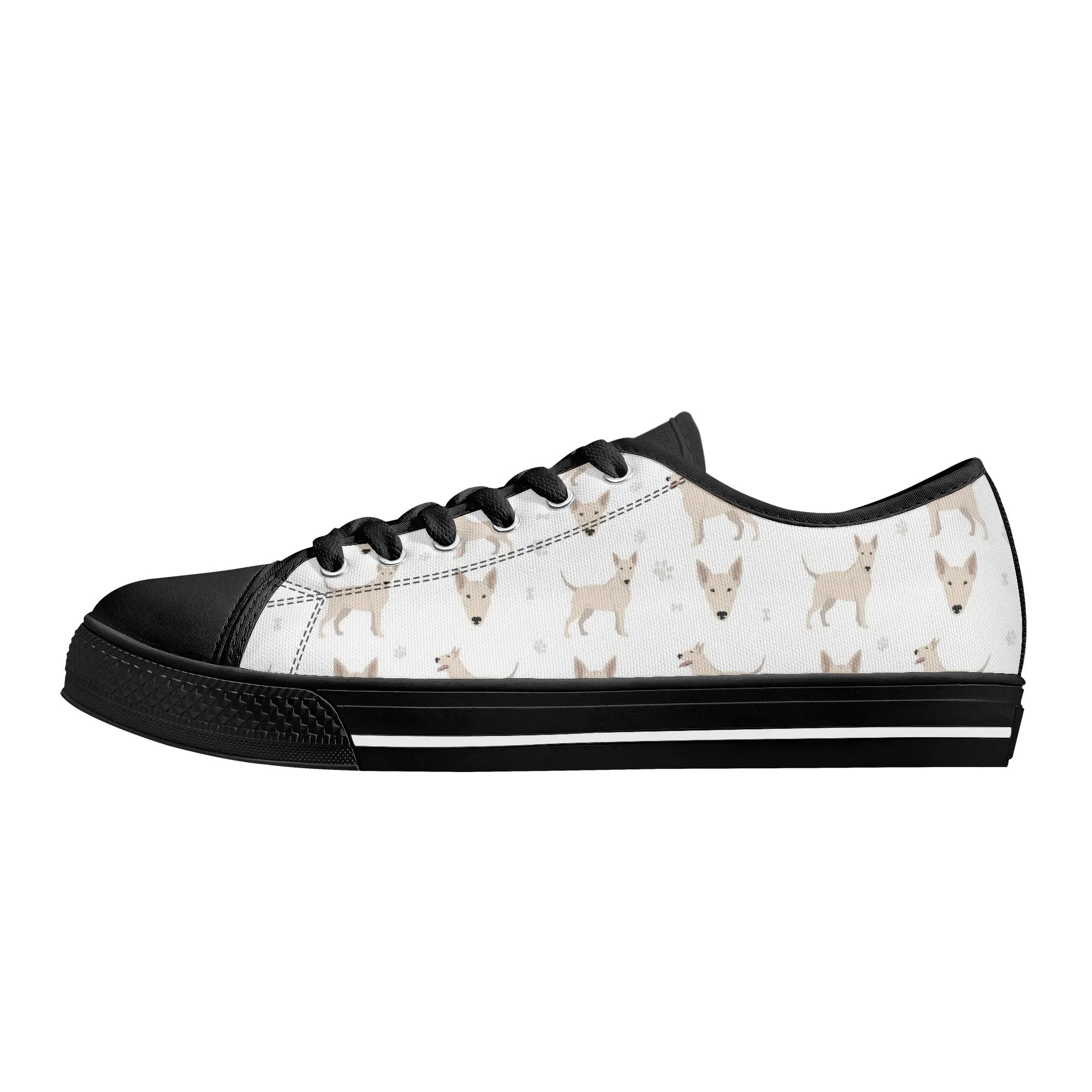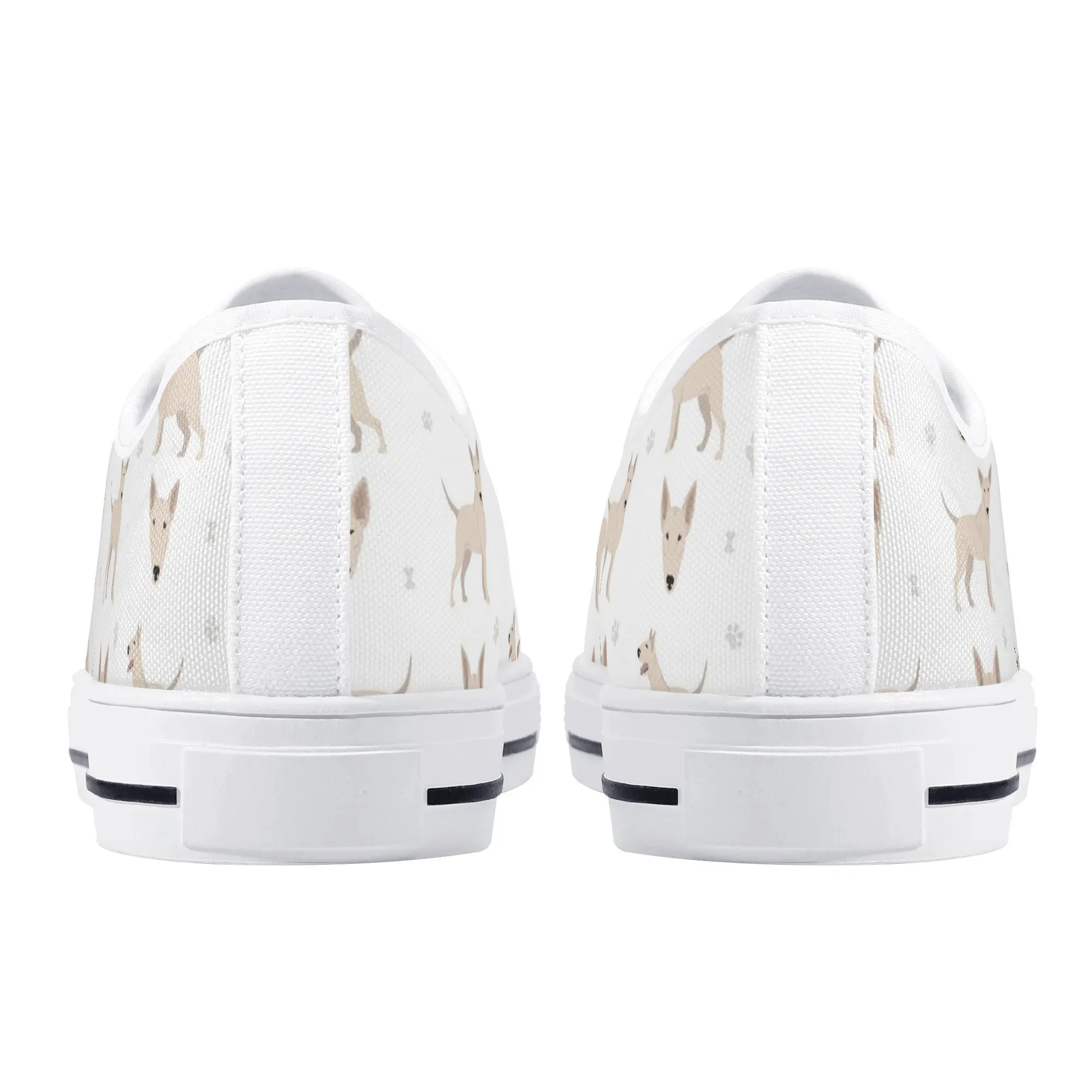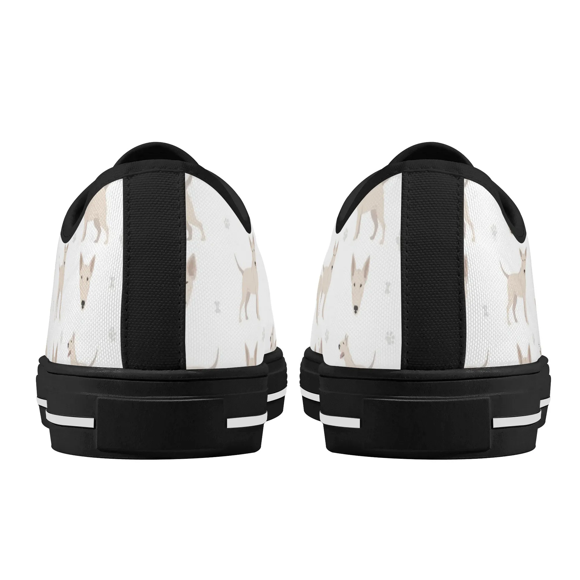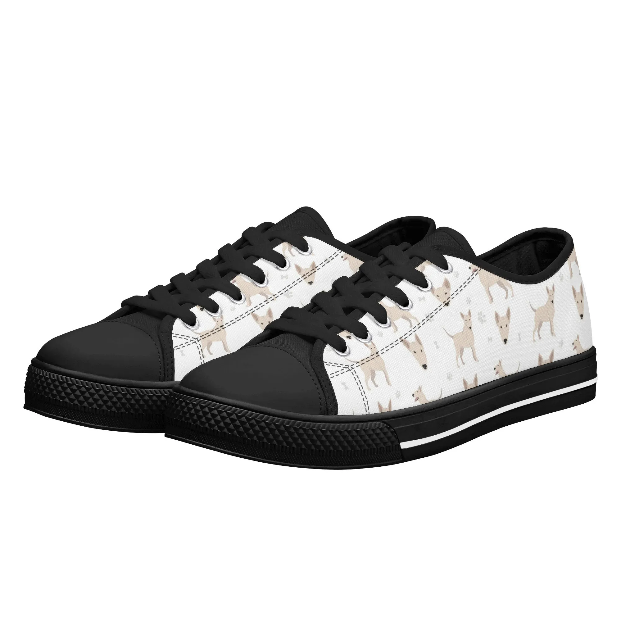 Bull Terrier Dog Print Canvas Shoes, Women’s Low Top Terrier Sneakers, Men’s Tan Puppy Pattern Casual Rubber Sole Trainer Gift