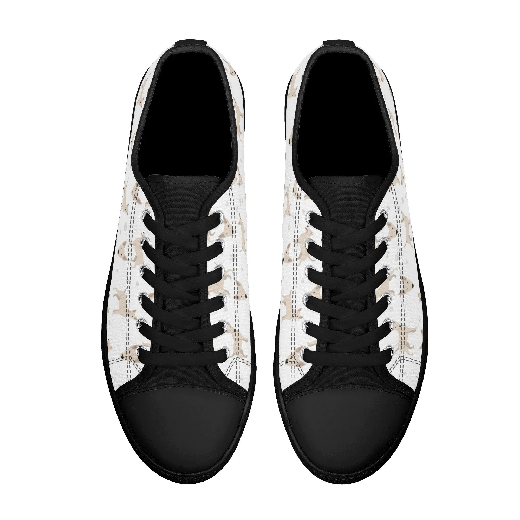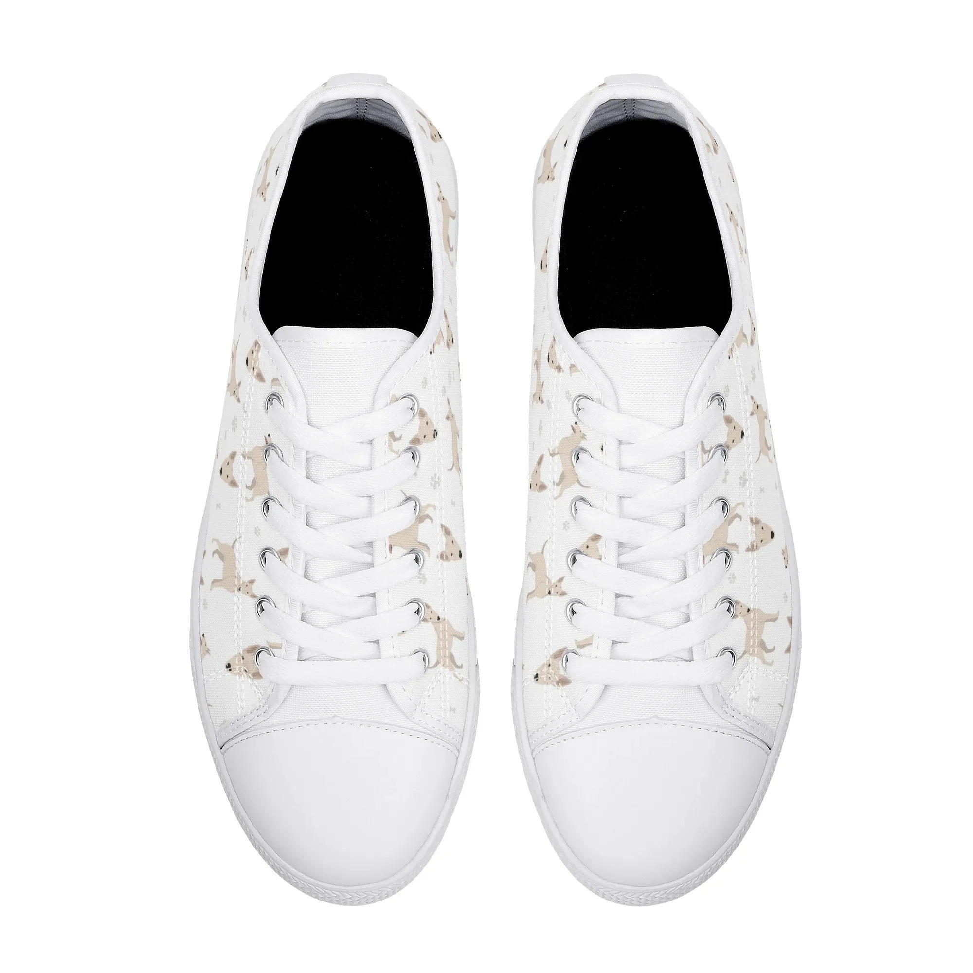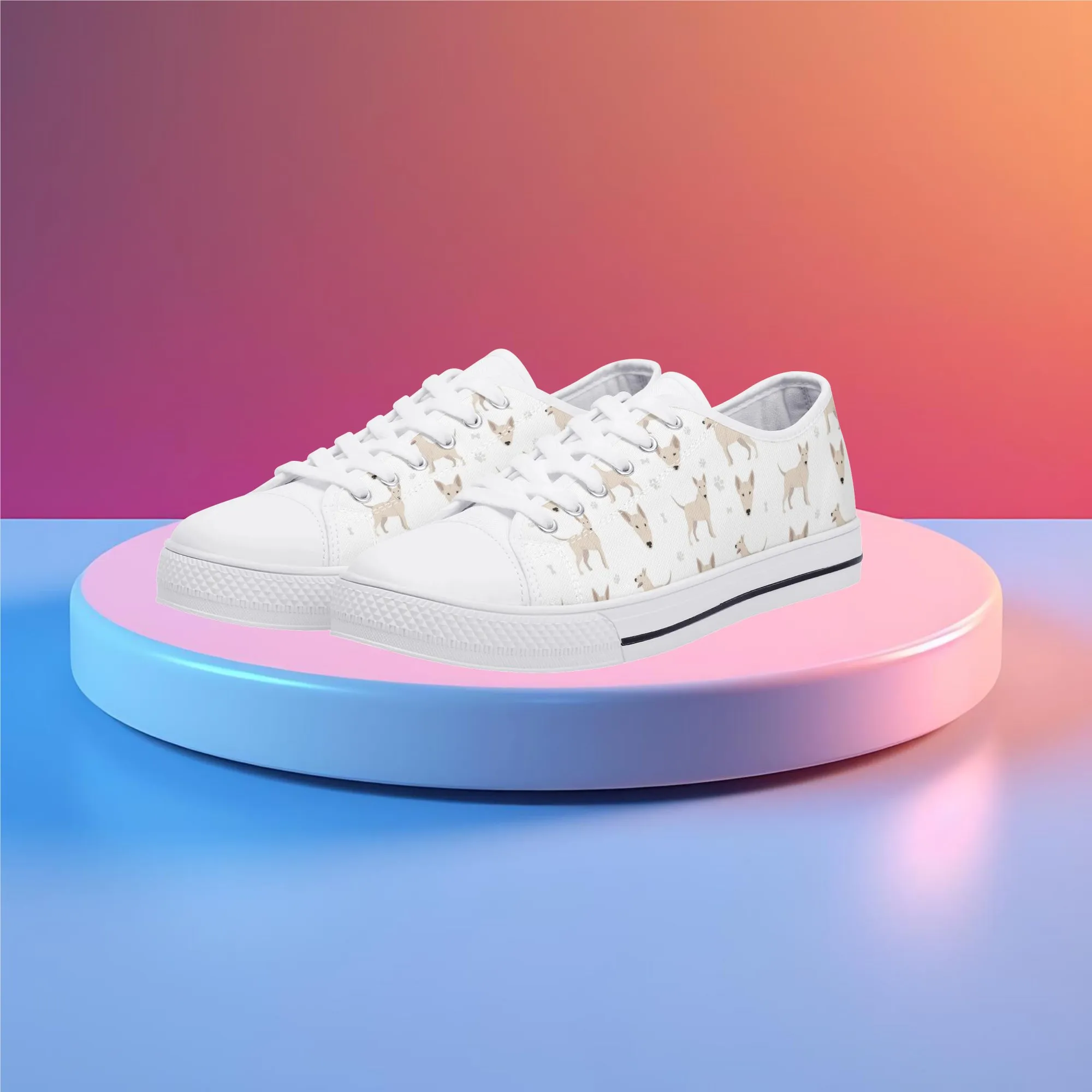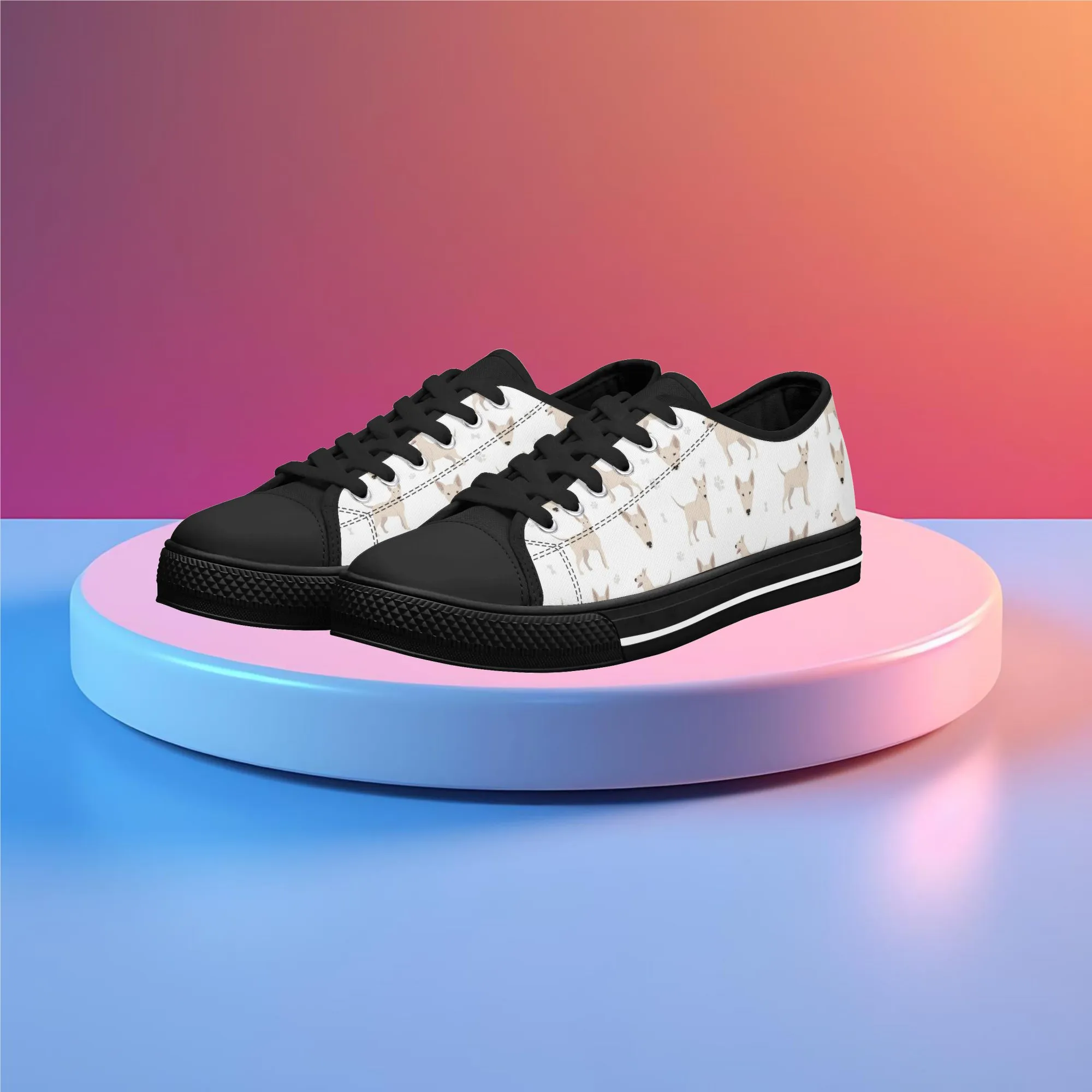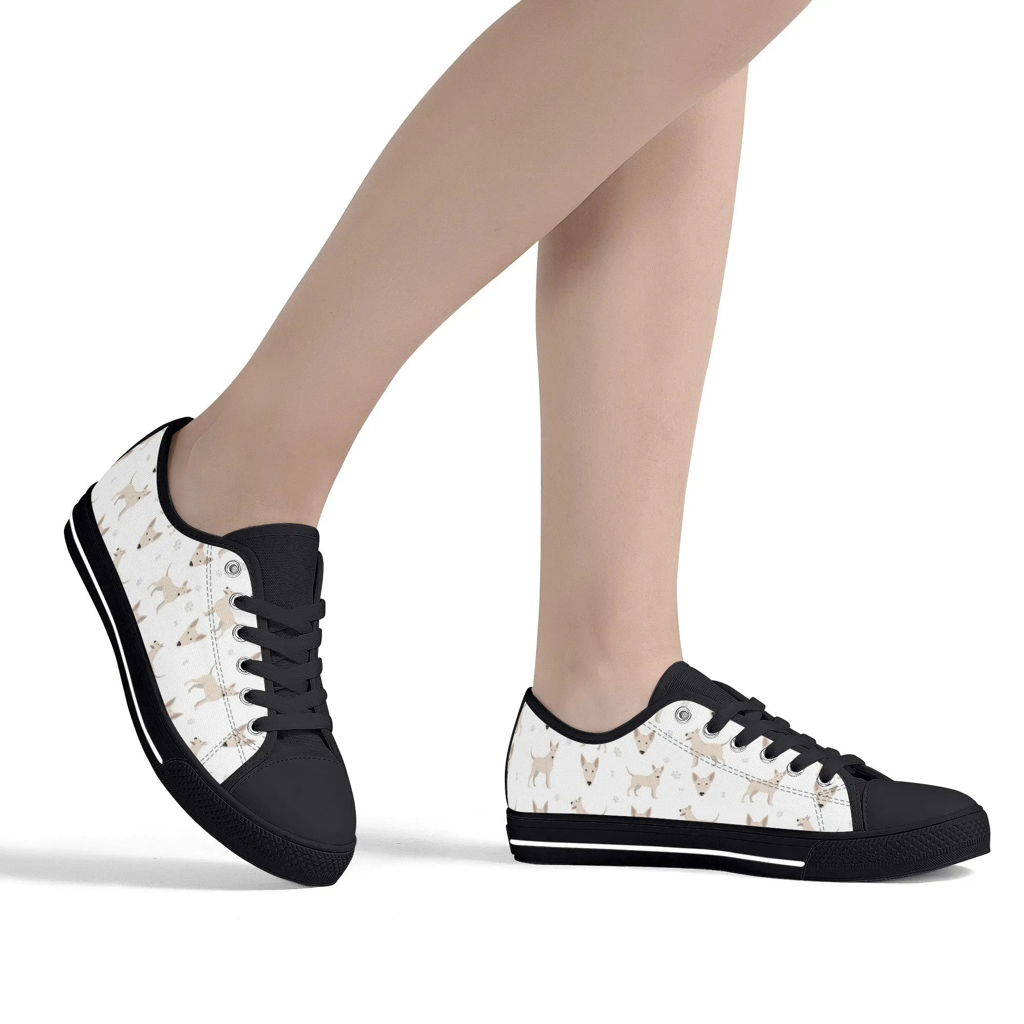 Bull Terrier Dog Print Canvas Shoes, Women’s Low Top Terrier Sneakers, Men’s Tan Puppy Pattern Casual Rubber Sole Trainer Gift