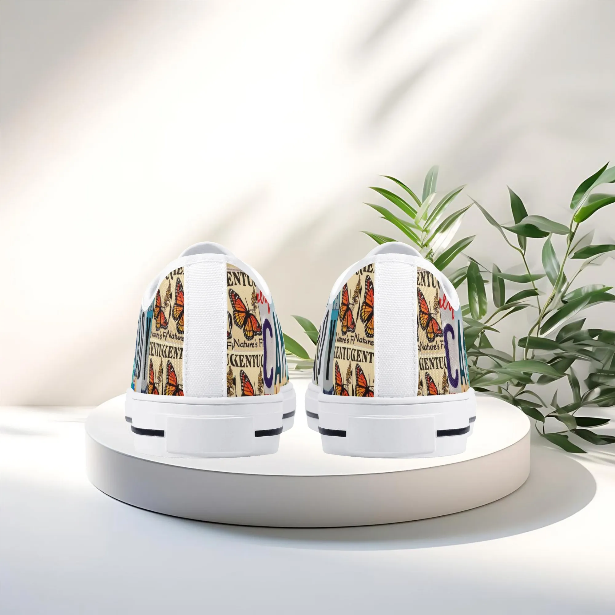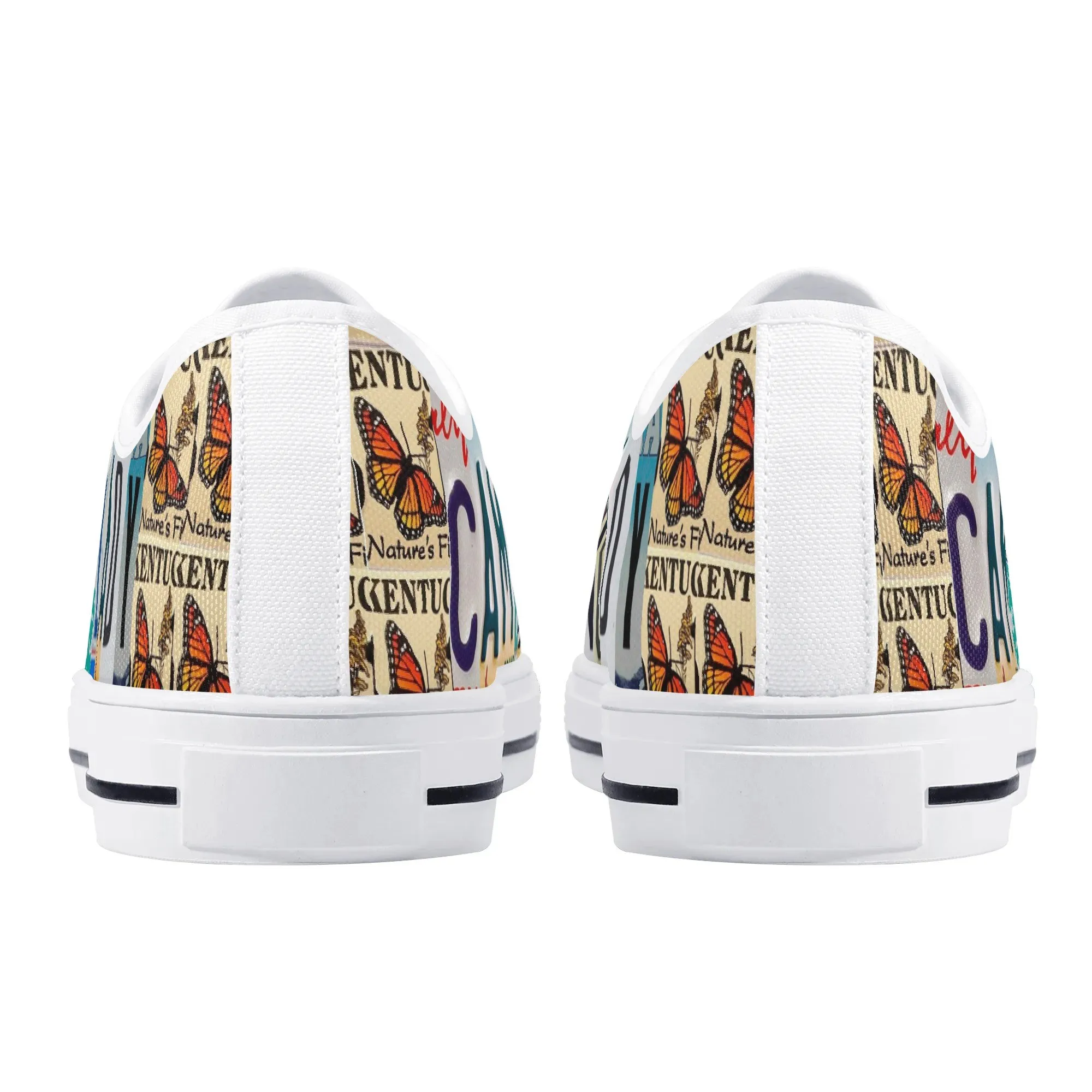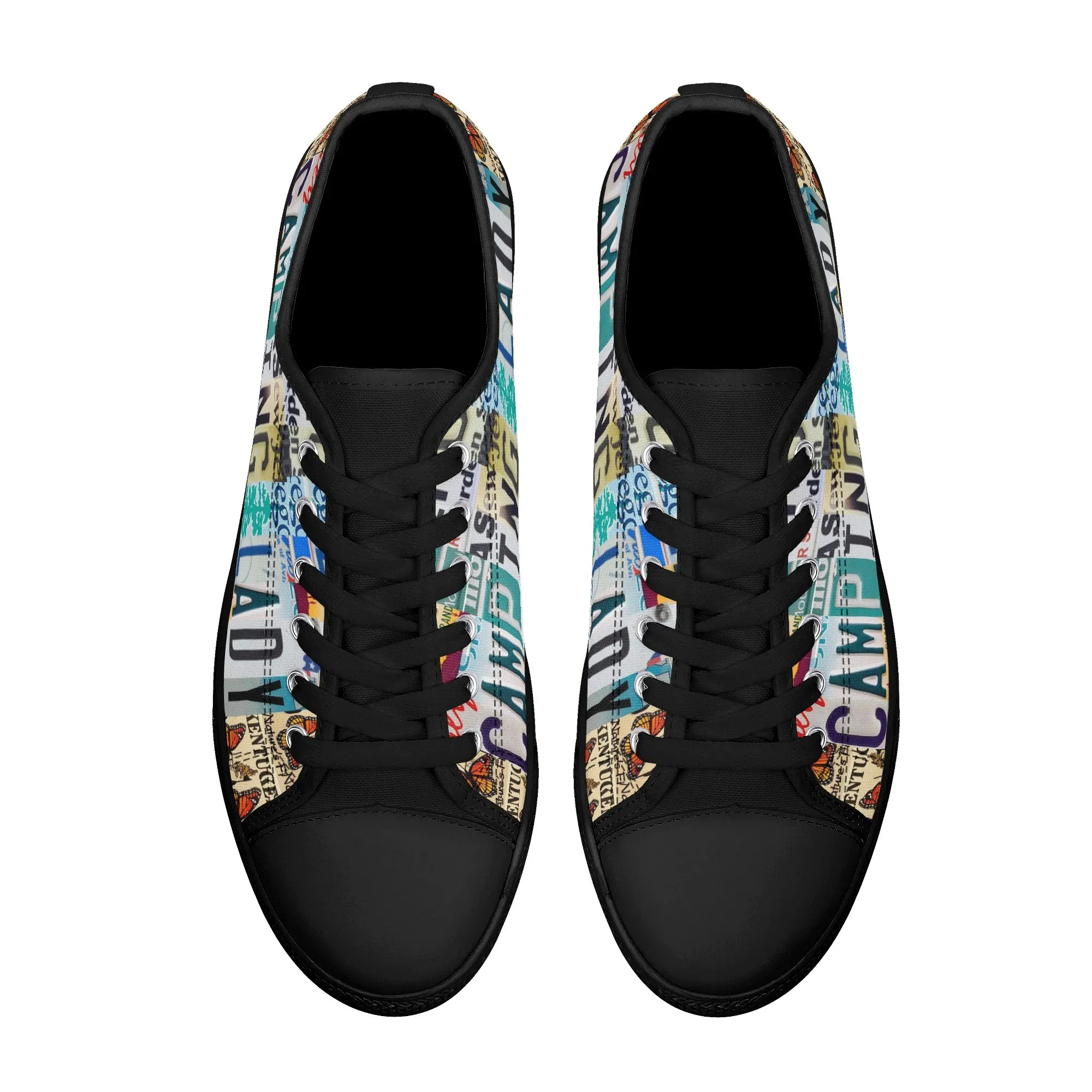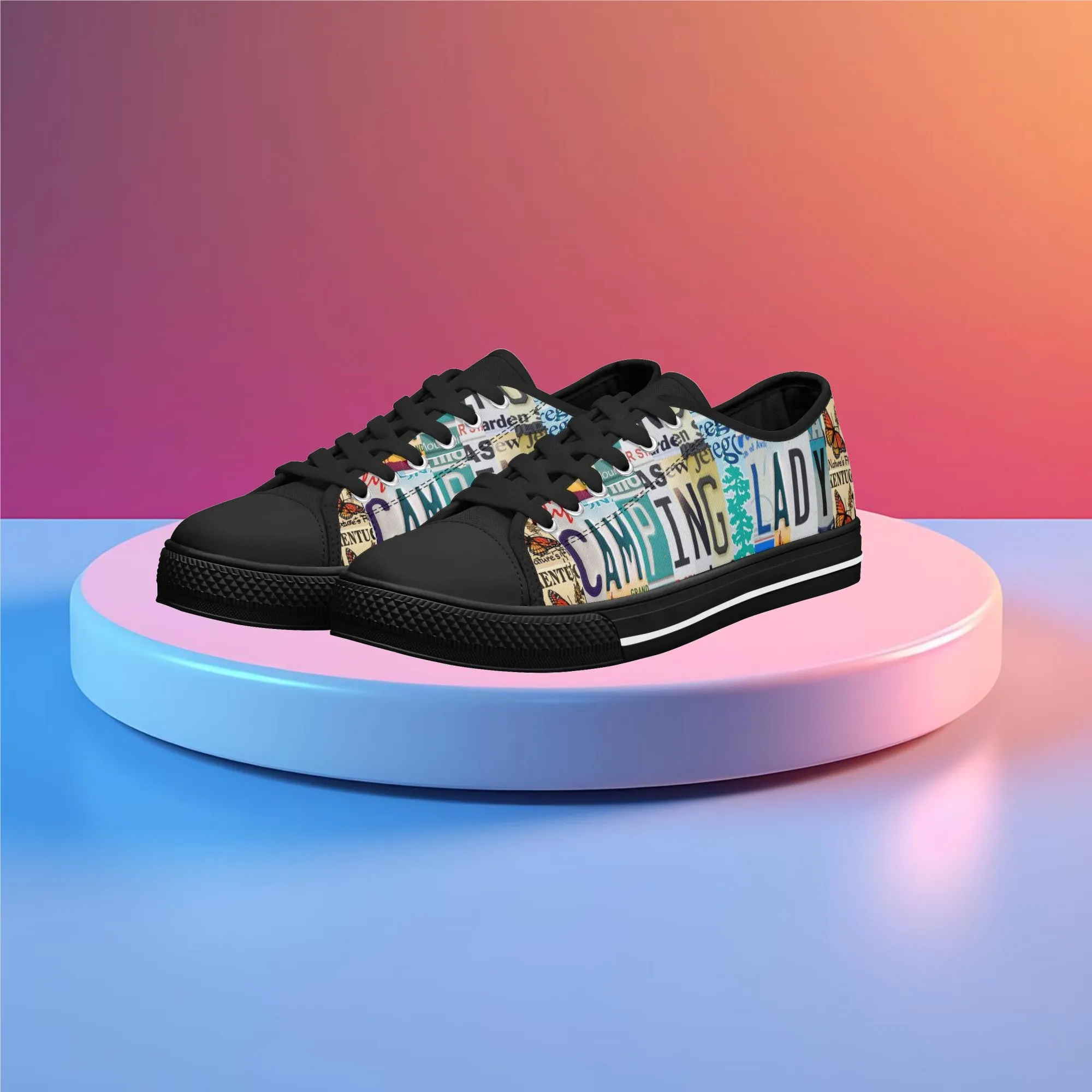 Lace up for the great outdoors with these adventurous “CAMPING LADY” Low Top Canvas Shoes! Featuring a unique, colorful license plate art graphic with nature accents like butterflies and pine trees, these sneakers are the perfect expression for any outdoor enthusiast. Designed for comfortable wear around the campfire or on light trails, they are the ideal piece to complete your outfit, making them a fantastic and thoughtful gift for any woman who loves camping, hiking, and the wilderness.