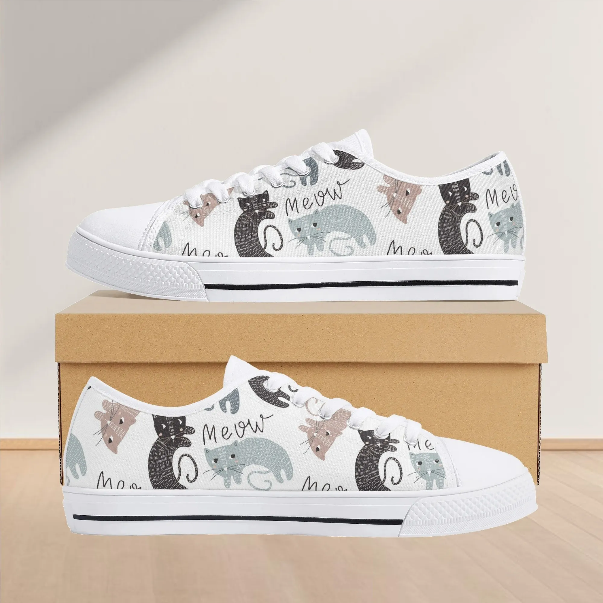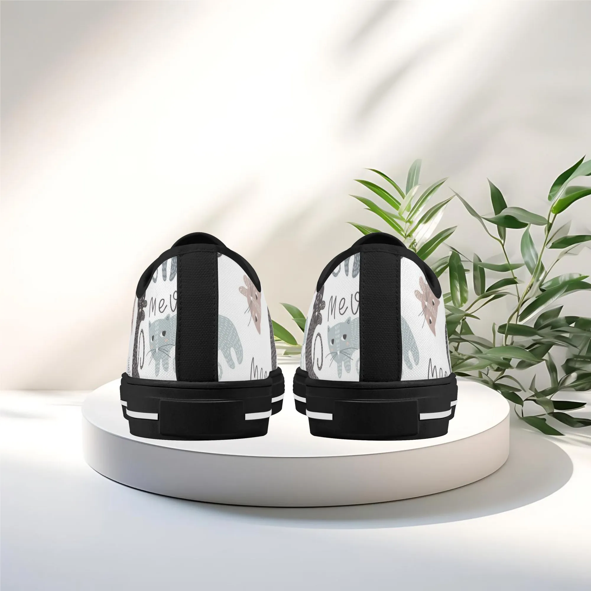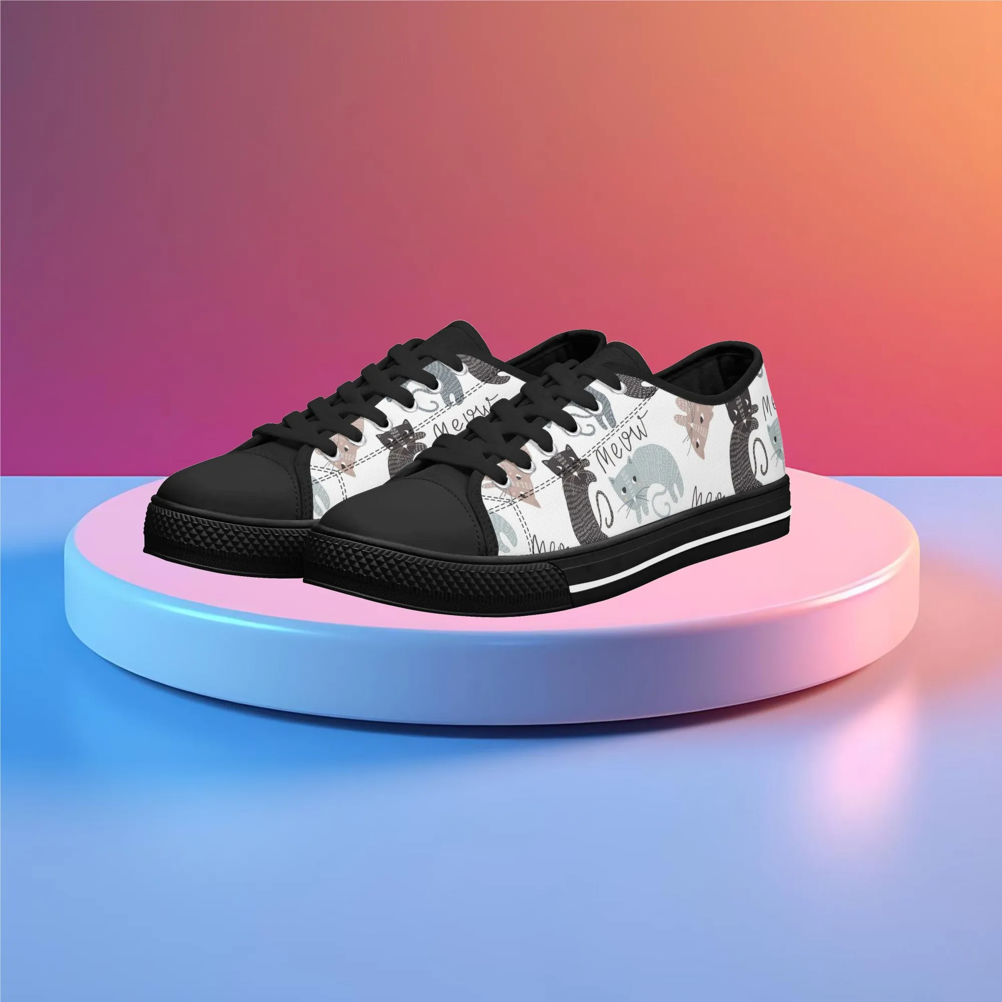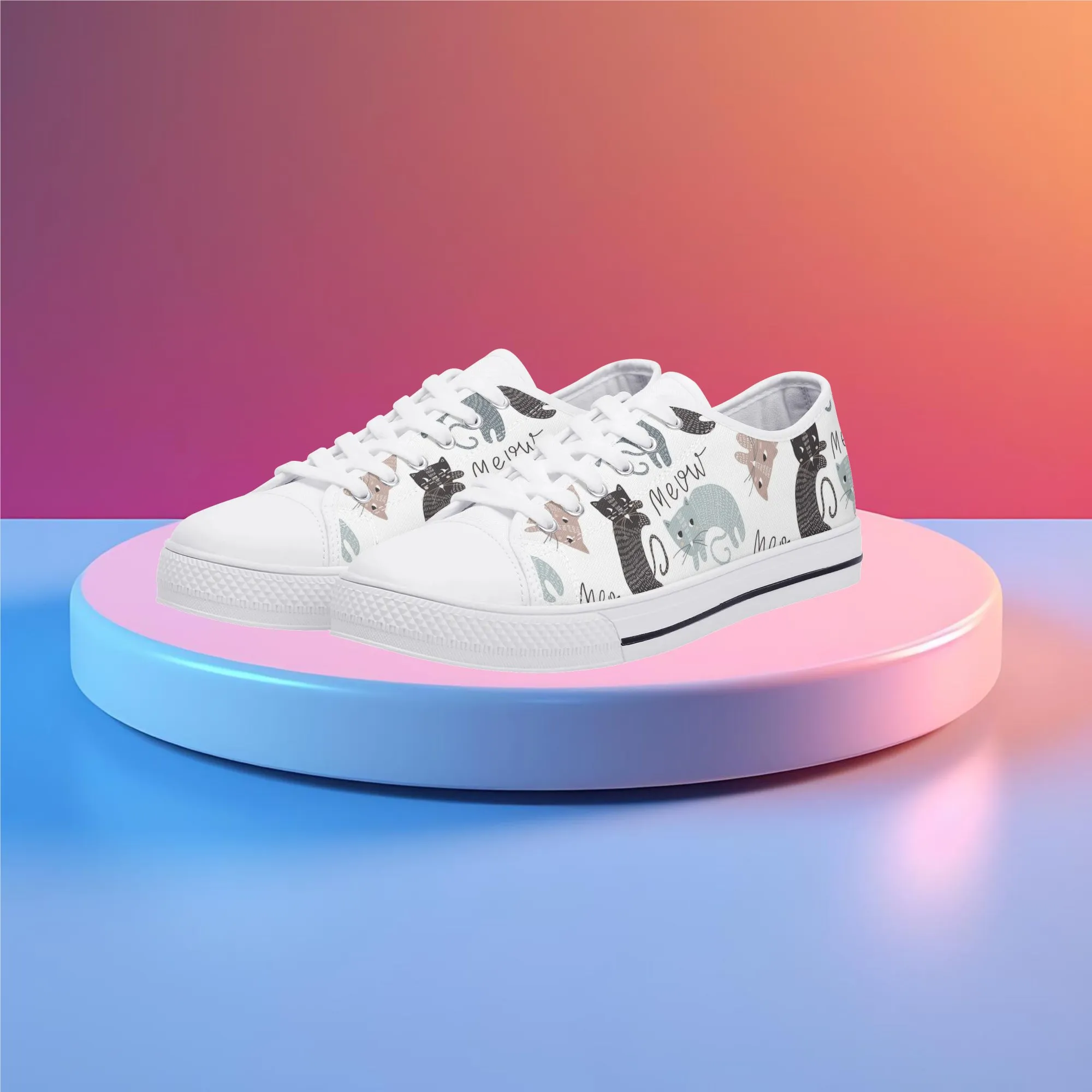 Cat Pattern Low Top Canvas Shoes, Whimsical Meow Sneakers, Women’s Platform Casual Shoes, Gift for Cat Lovers