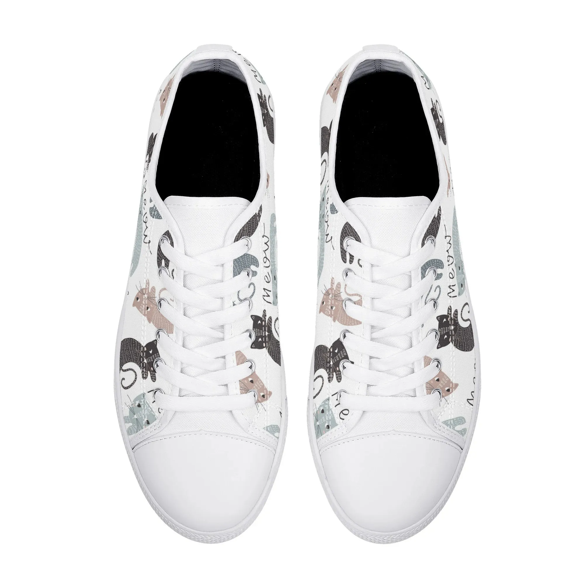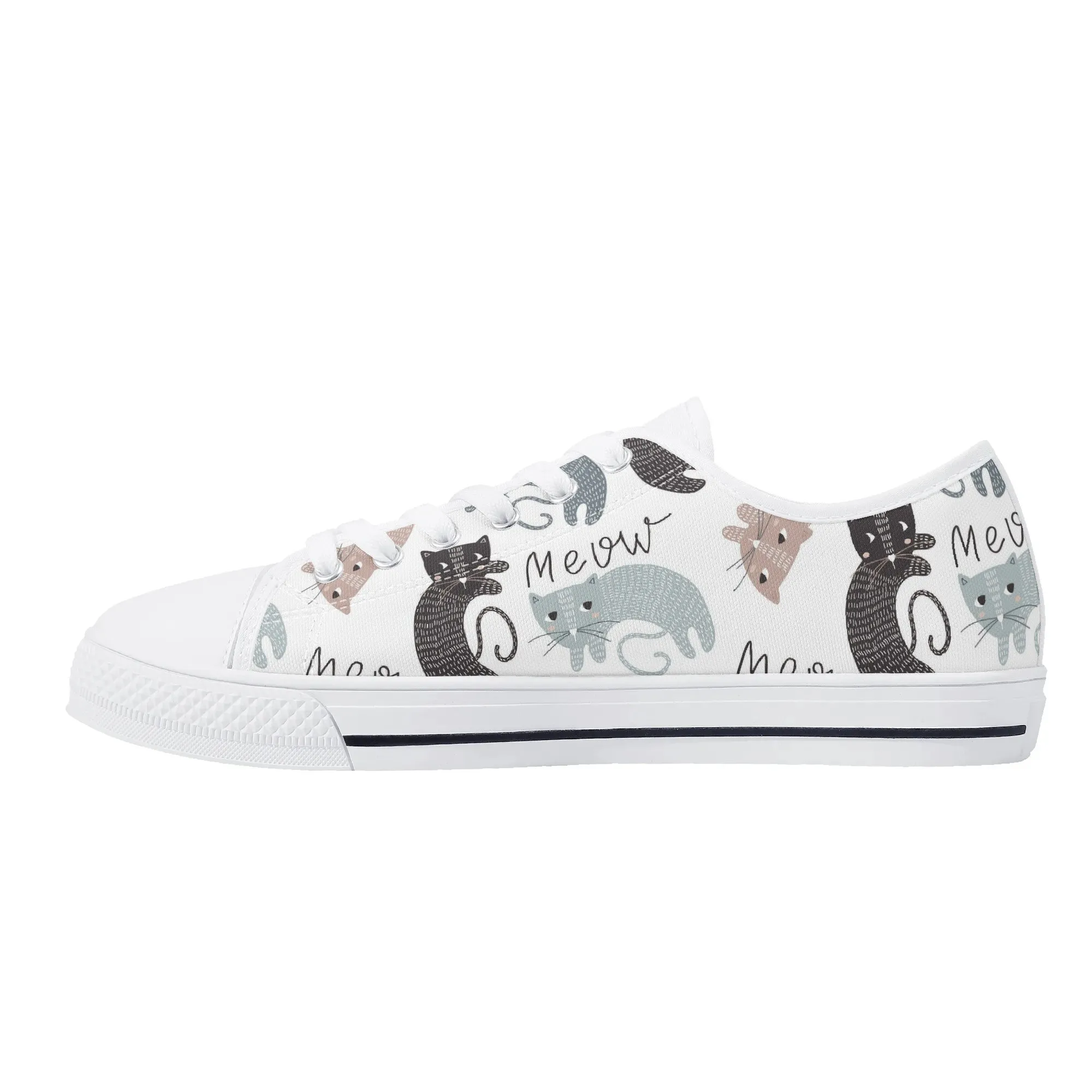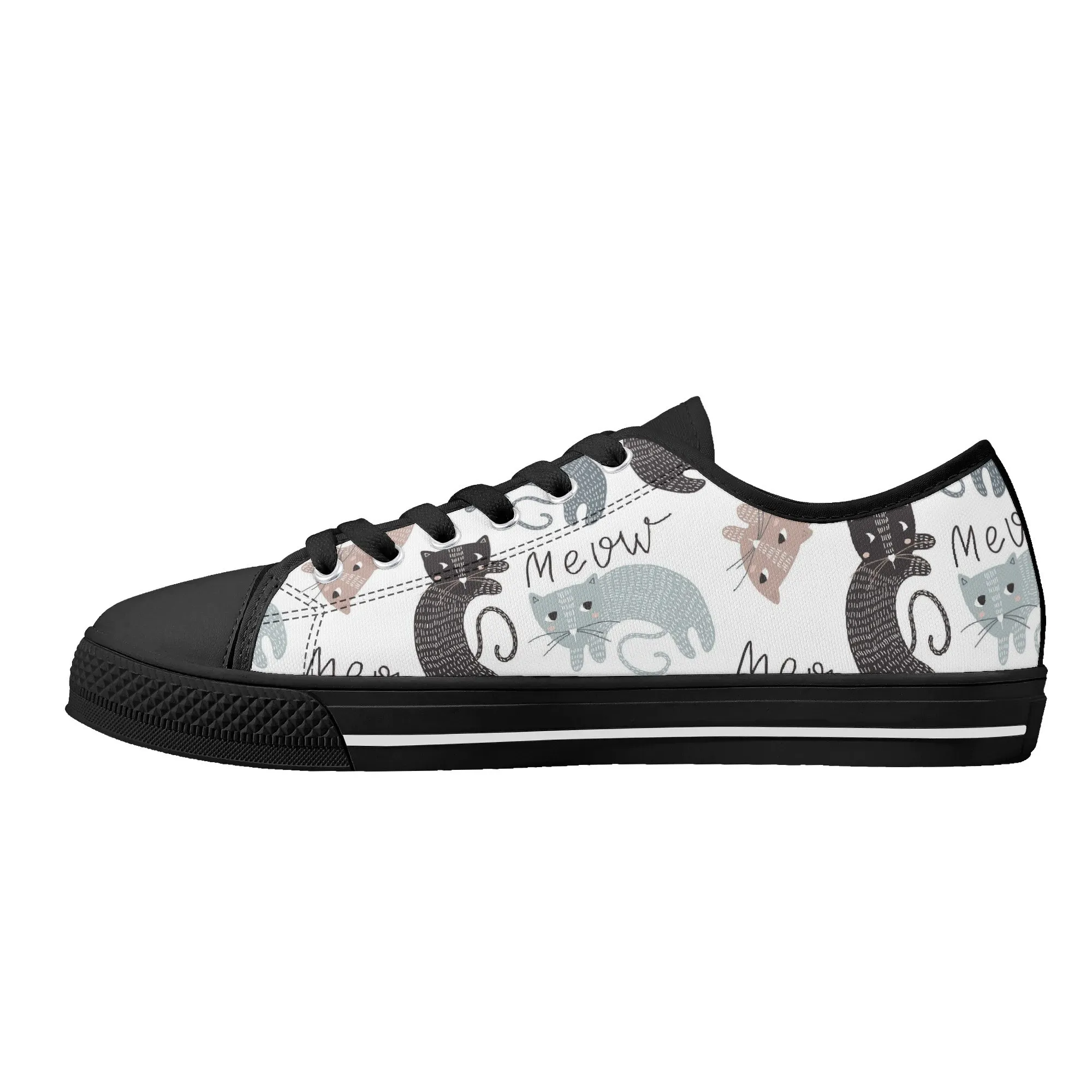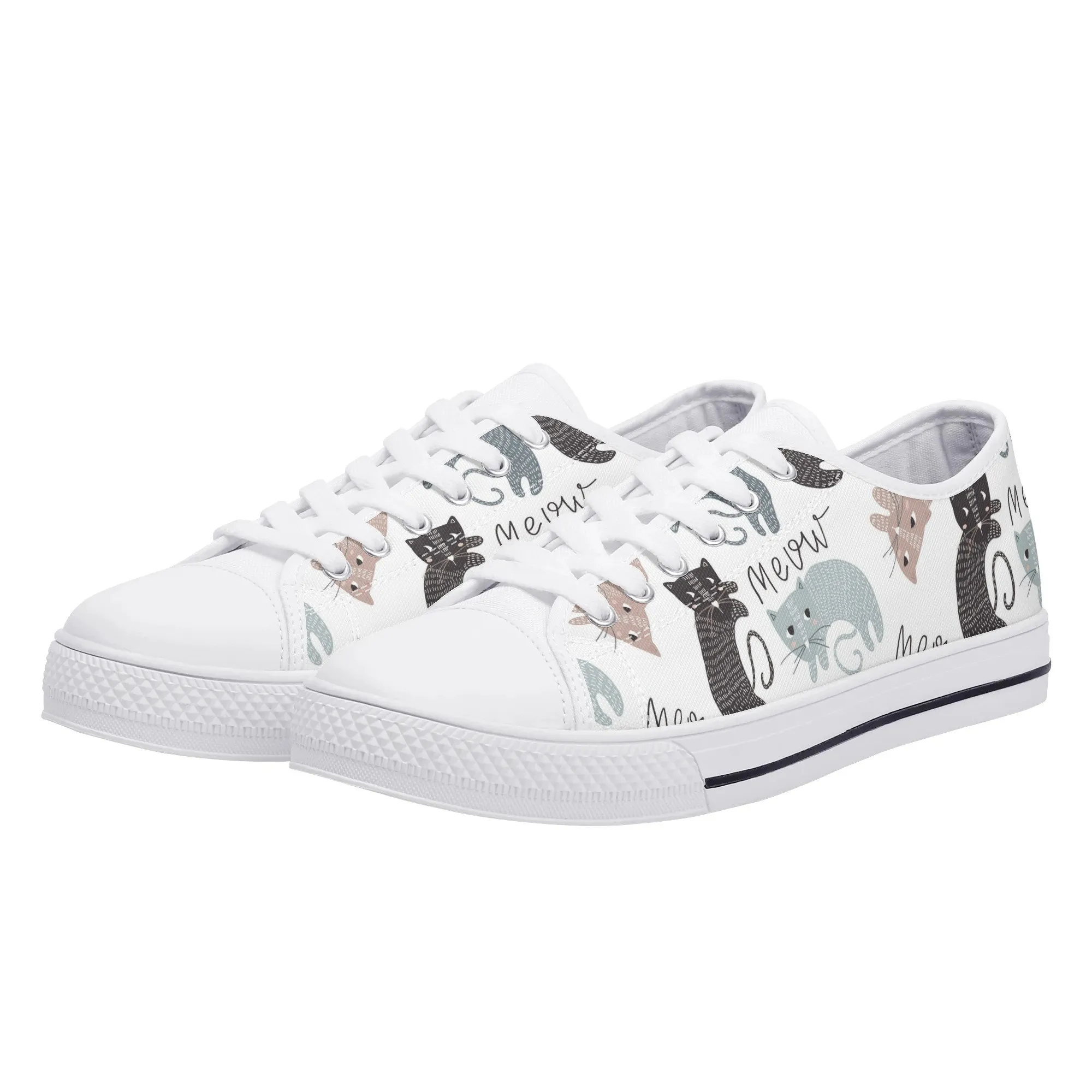 Cat Pattern Low Top Canvas Shoes, Whimsical Meow Sneakers, Women’s Platform Casual Shoes, Gift for Cat Lovers