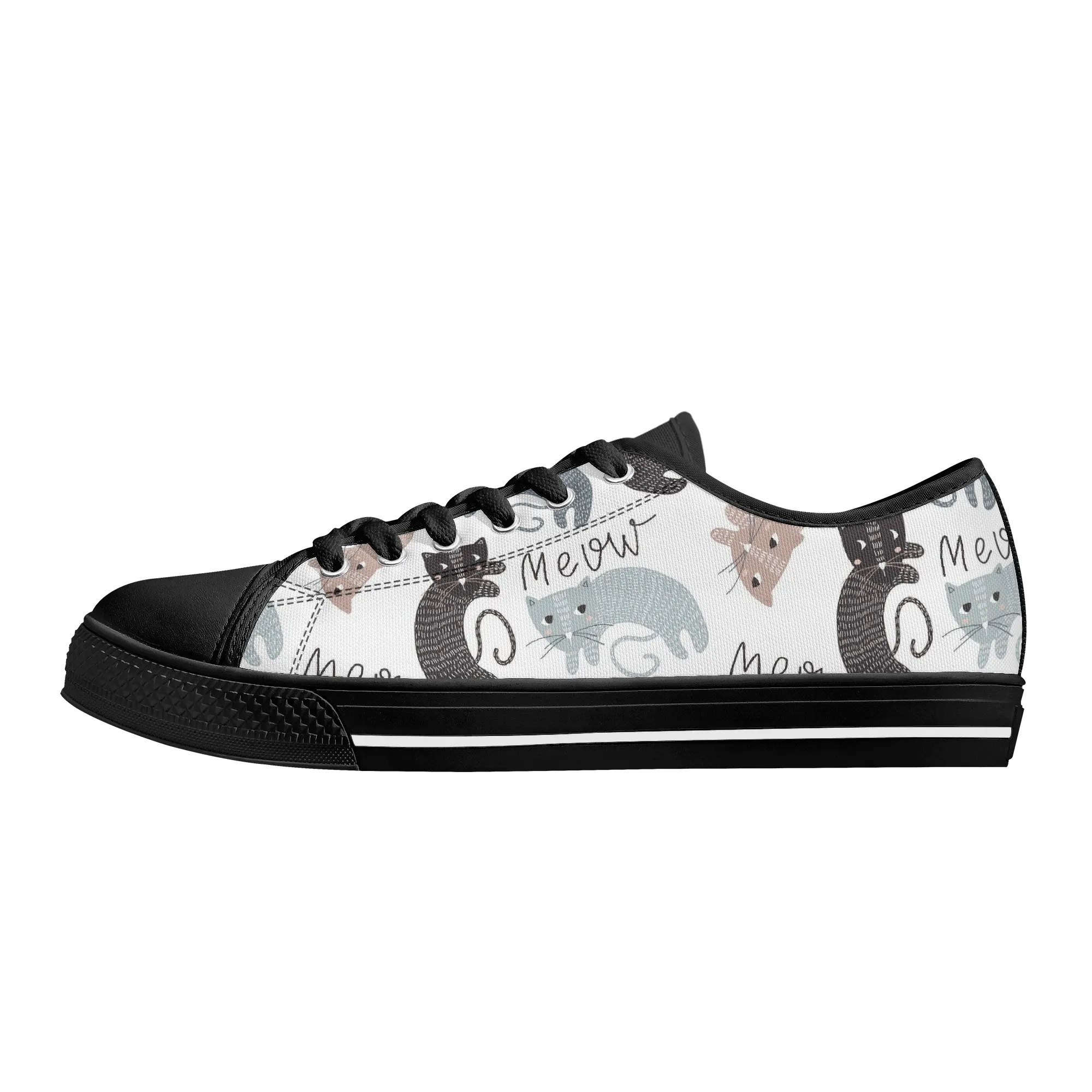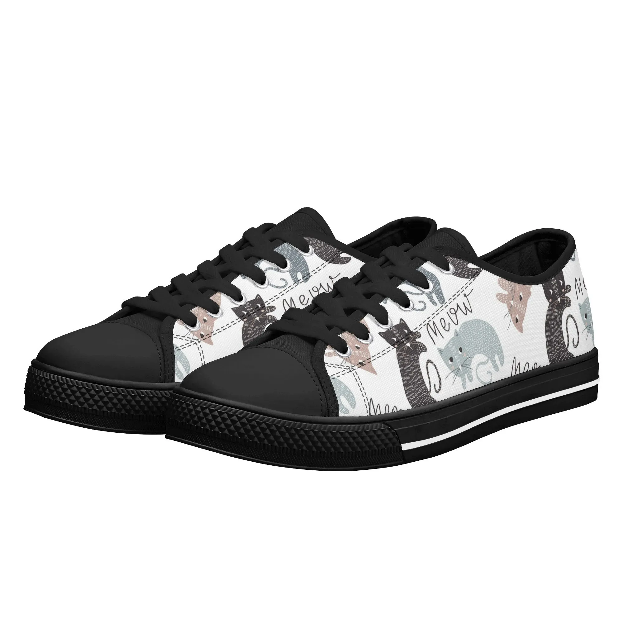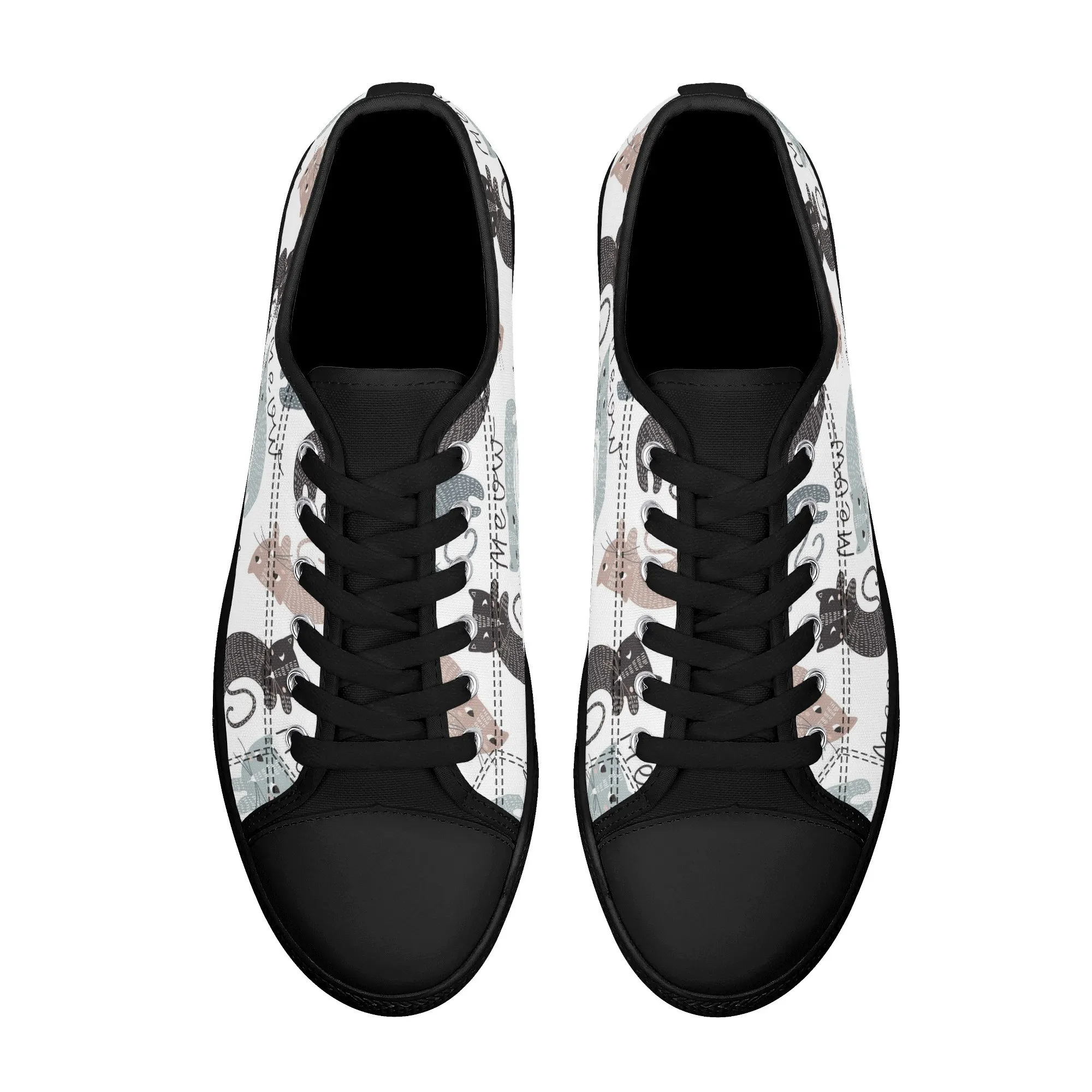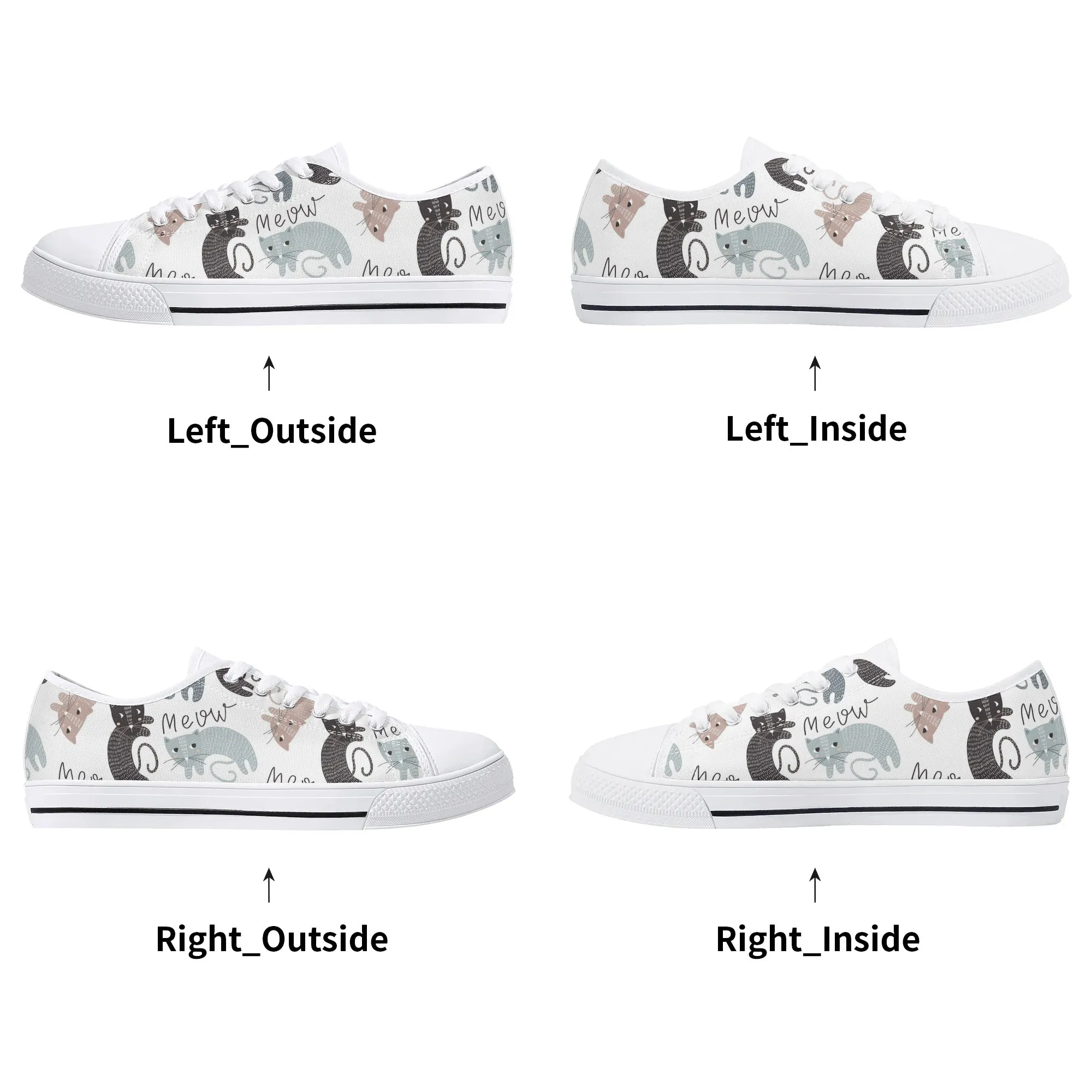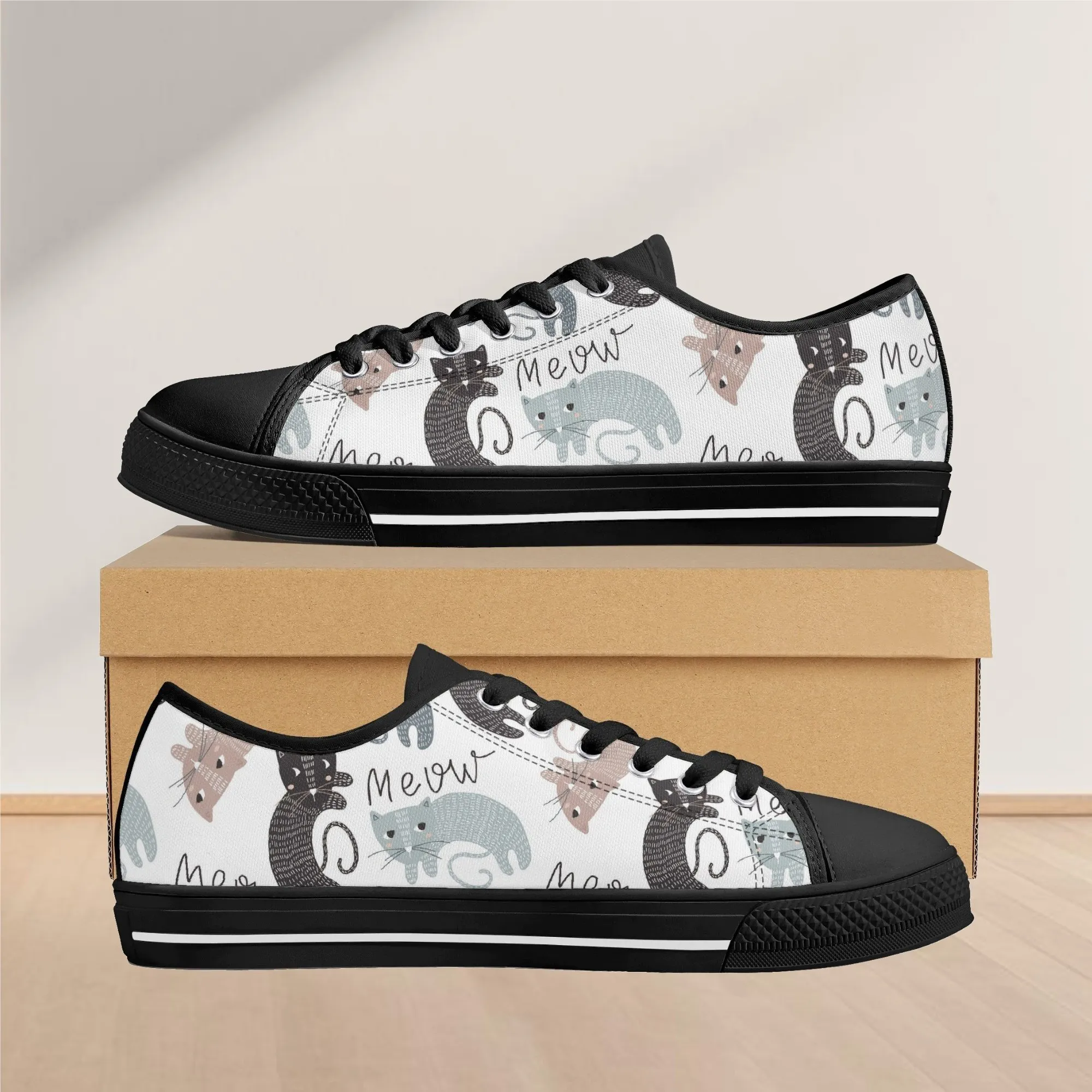 Cat Pattern Low Top Canvas Shoes, Whimsical Meow Sneakers, Women’s Platform Casual Shoes, Gift for Cat Lovers