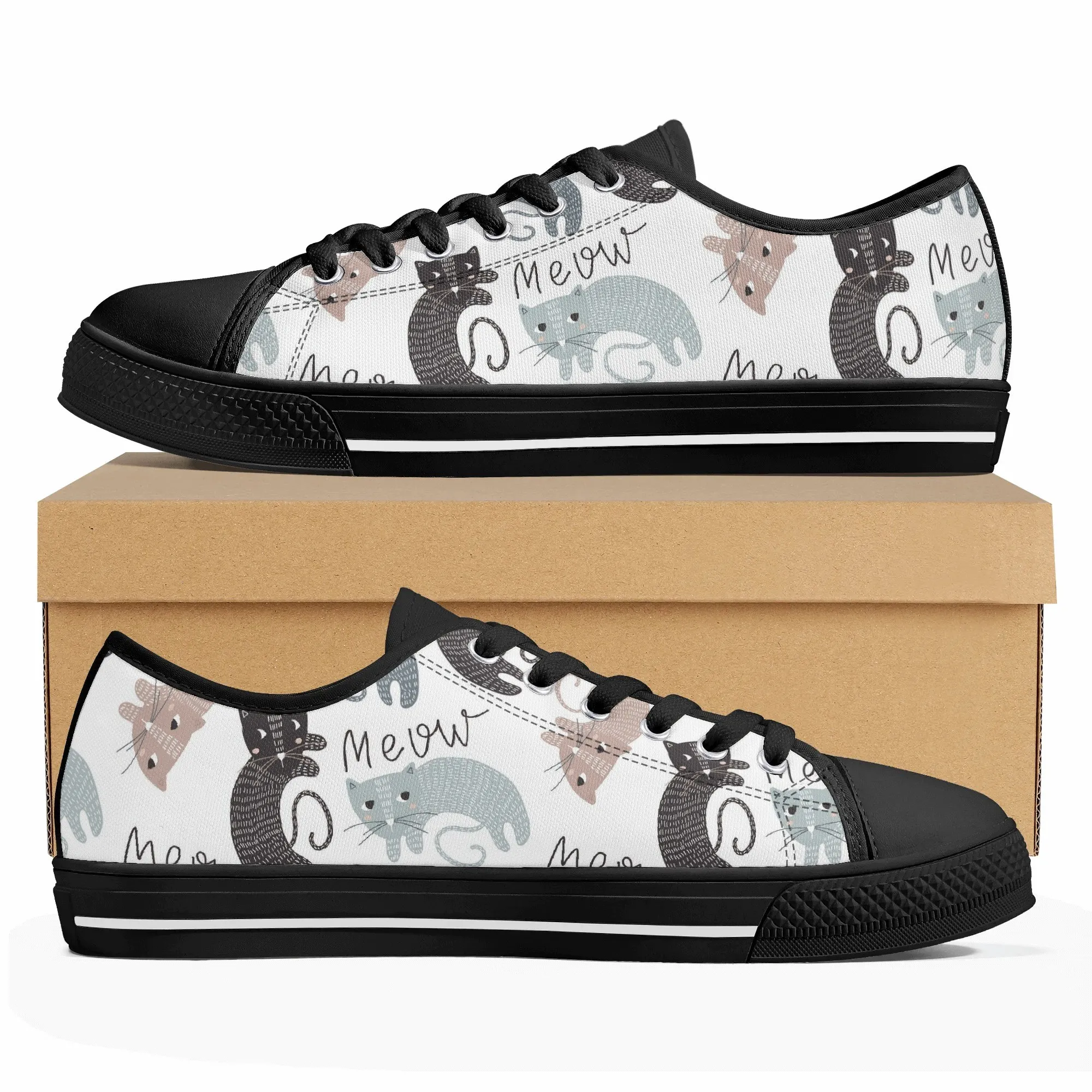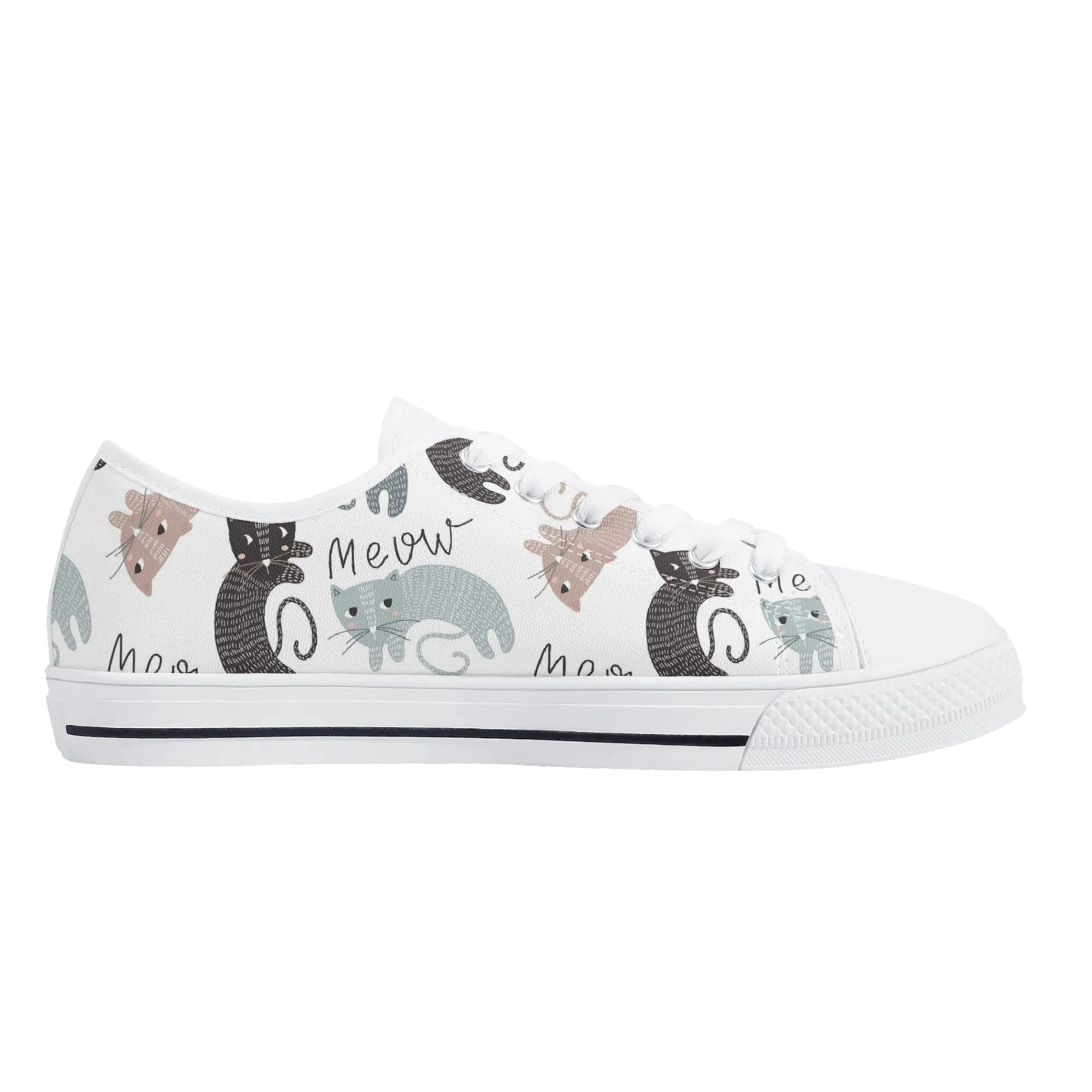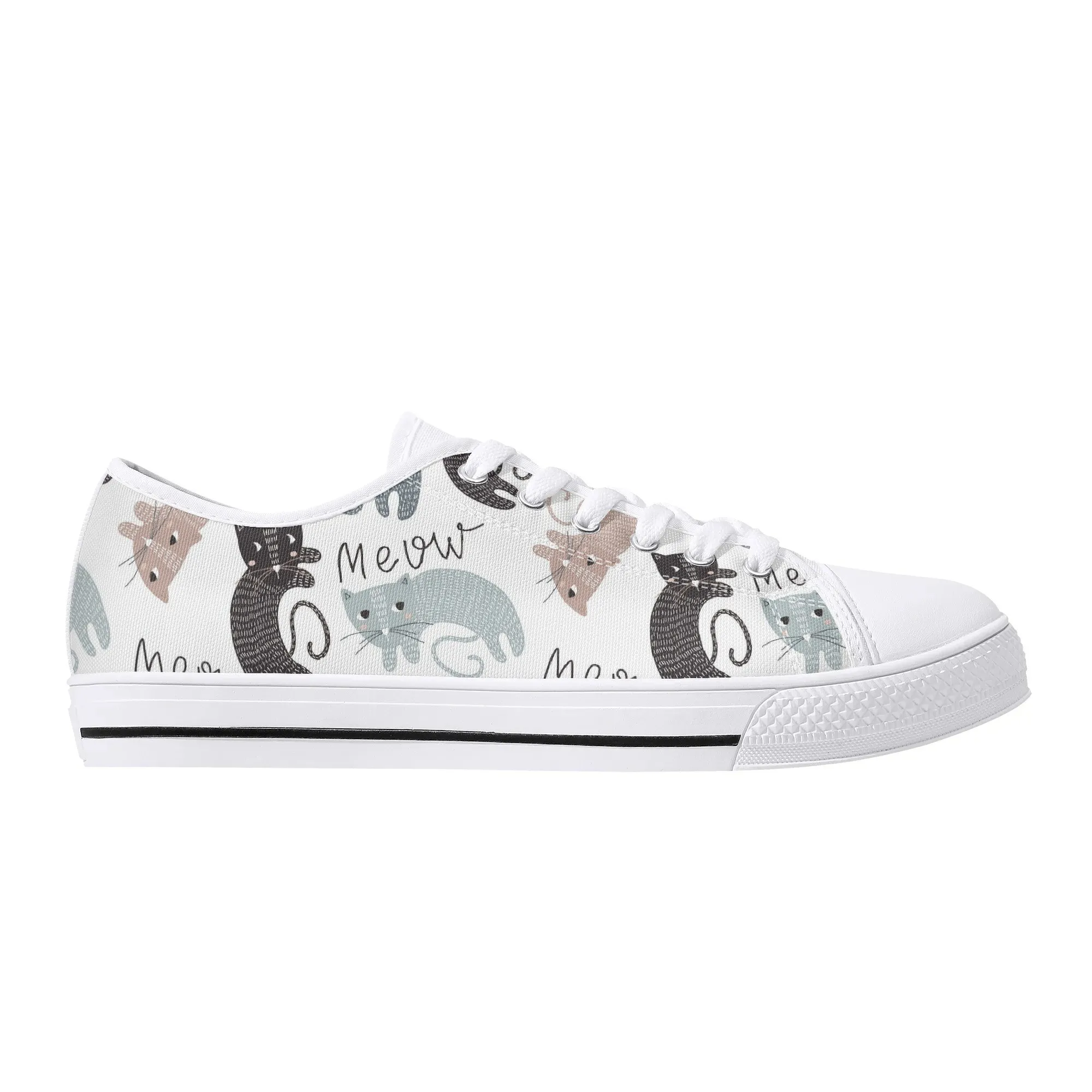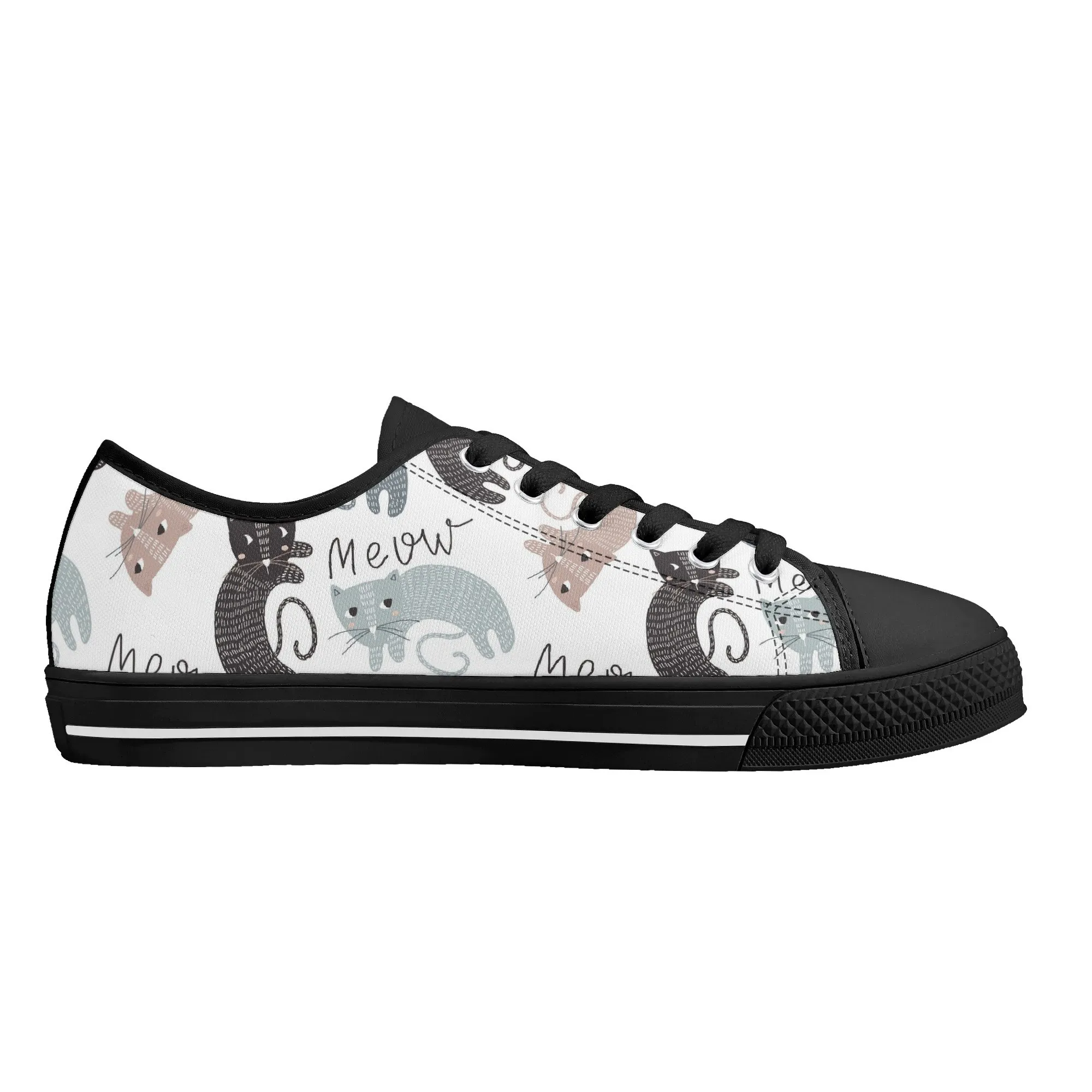Cat Pattern Low Top Canvas Shoes, Whimsical Meow Sneakers, Women’s Platform Casual Shoes, Gift for Cat Lovers
