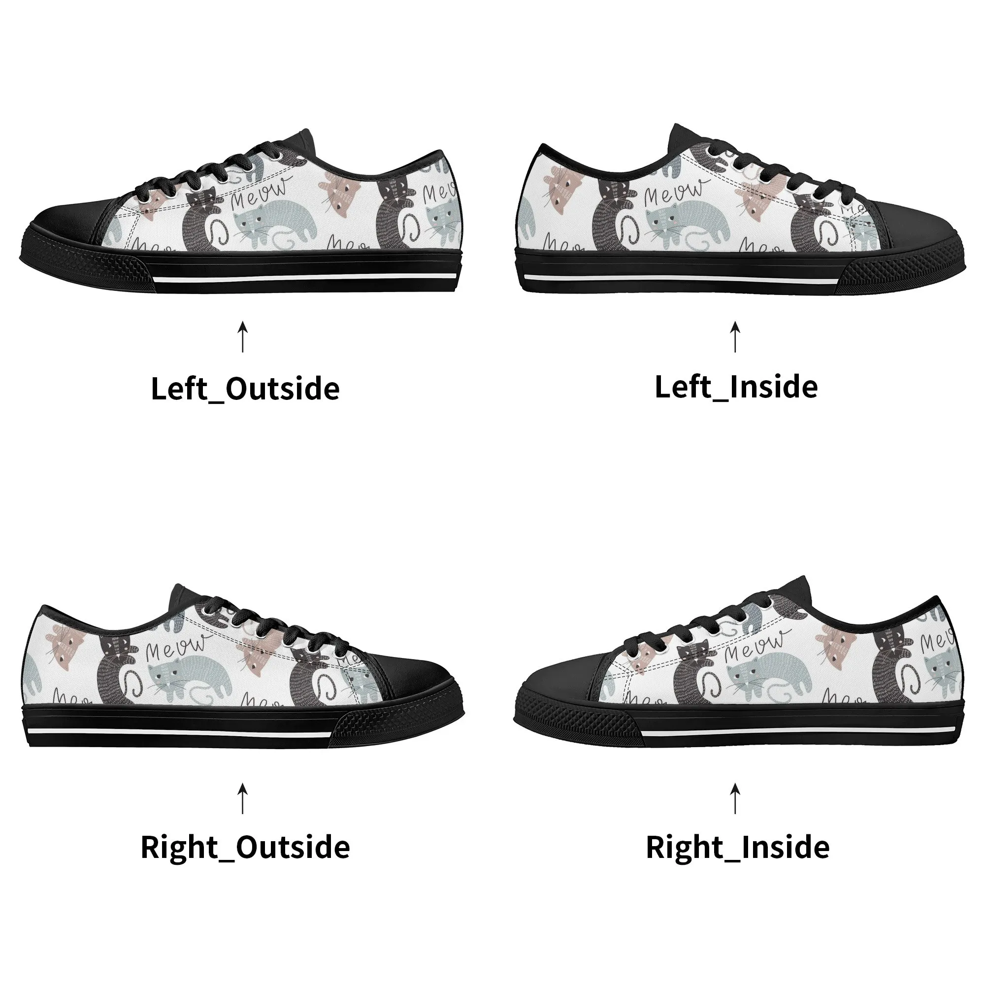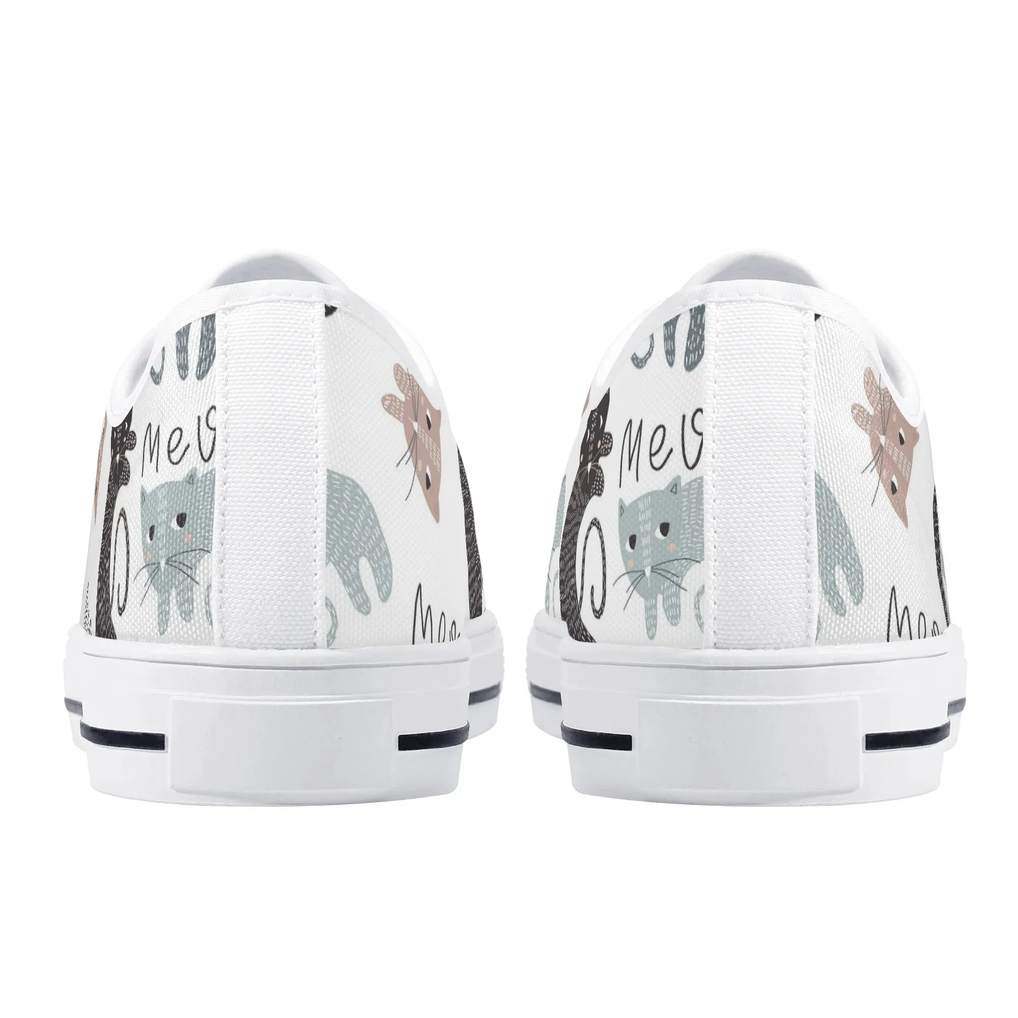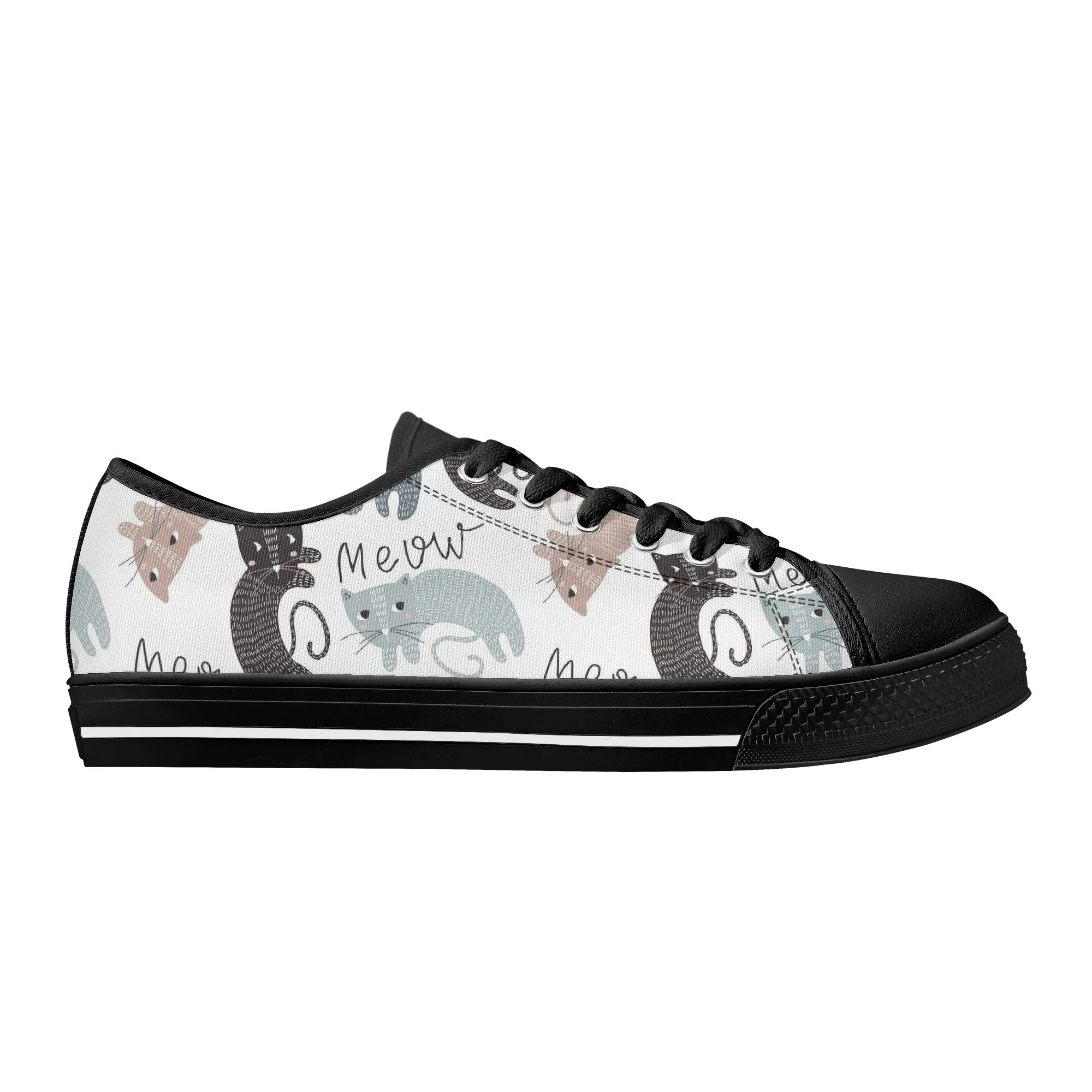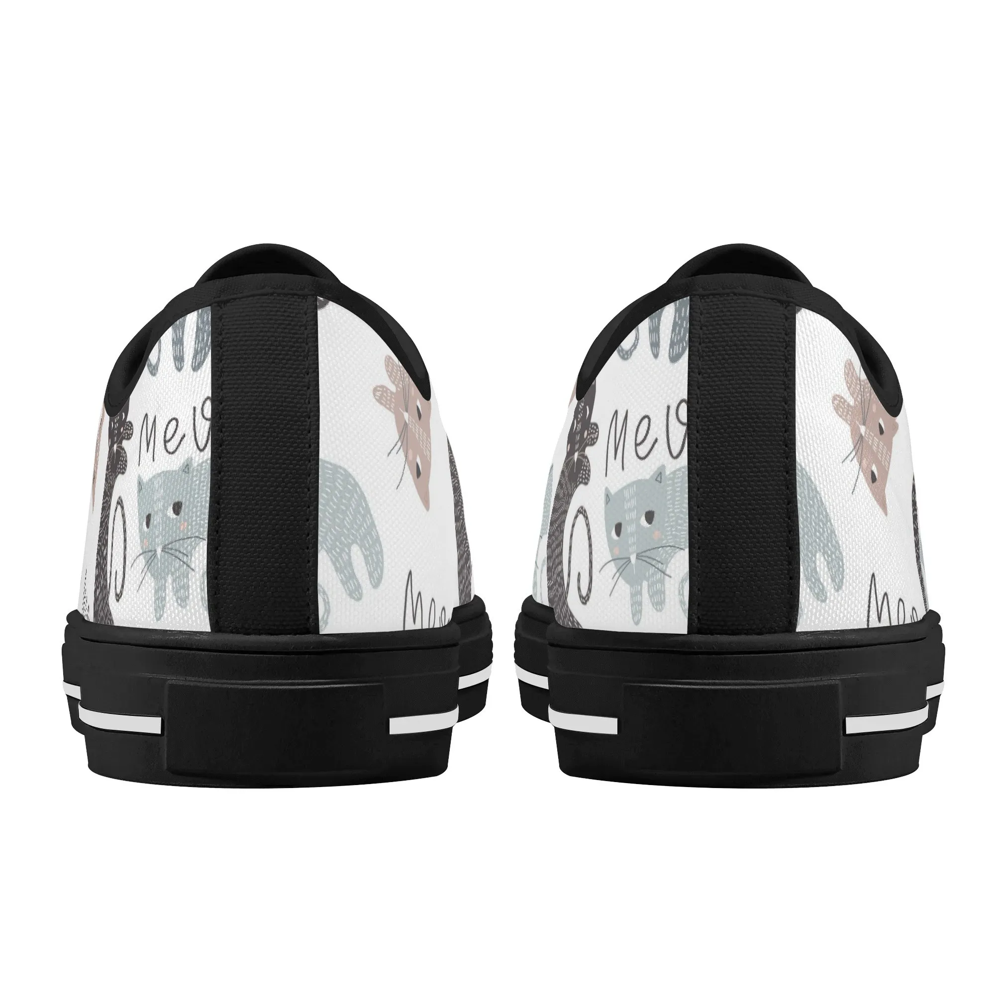 Cat Pattern Low Top Canvas Shoes, Whimsical Meow Sneakers, Women’s Platform Casual Shoes, Gift for Cat Lovers