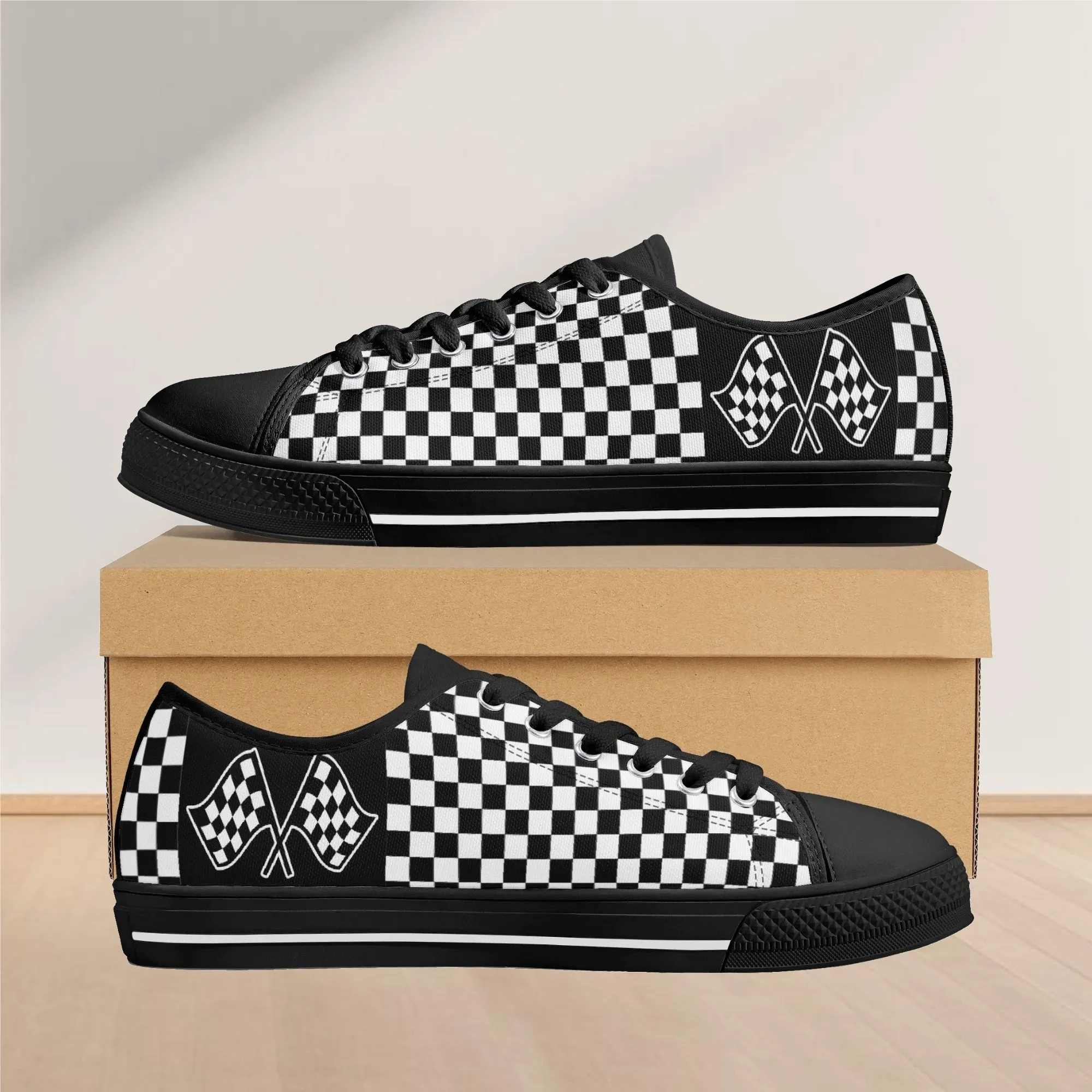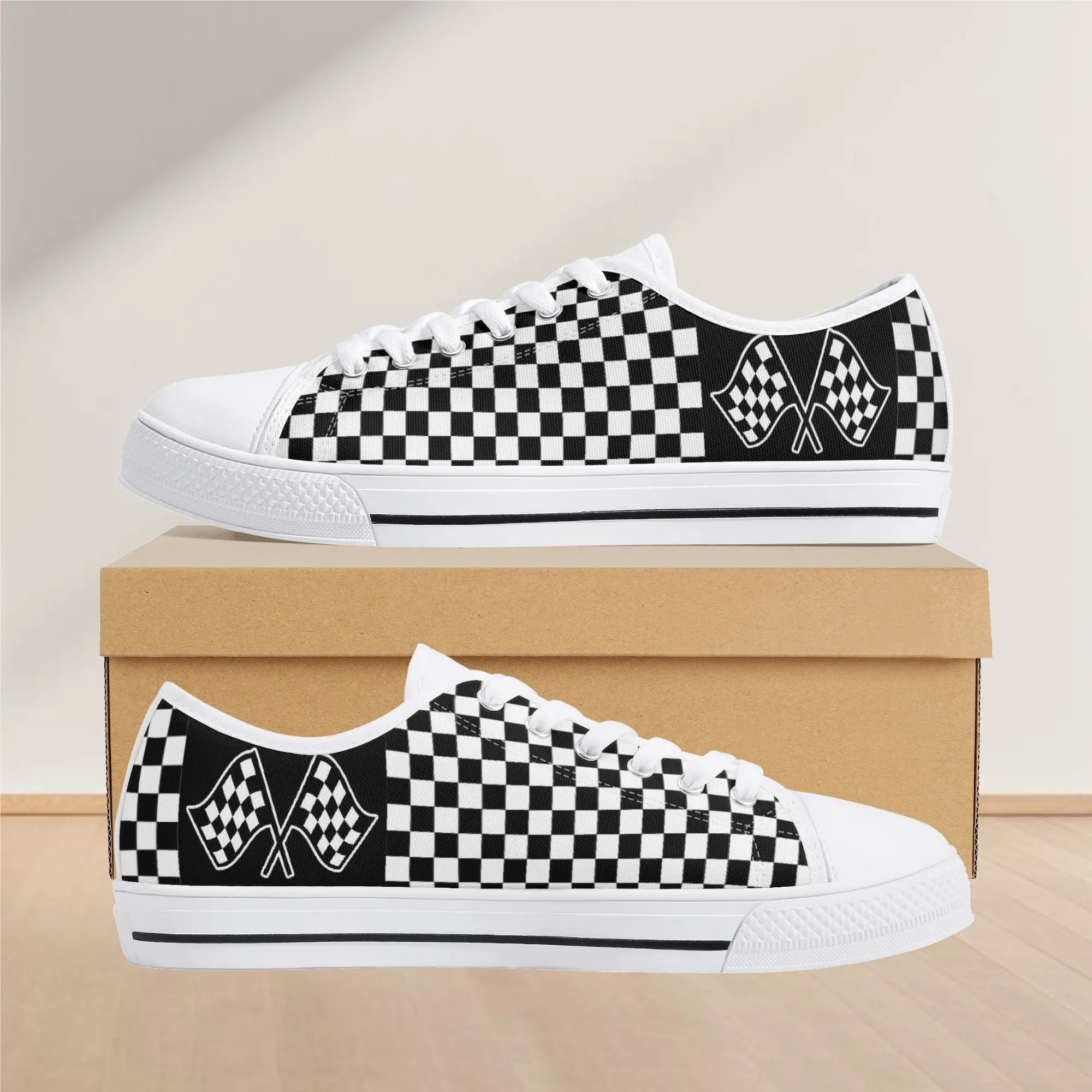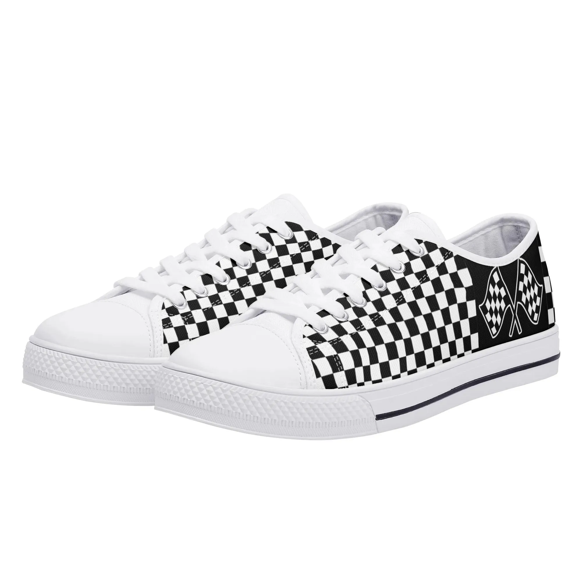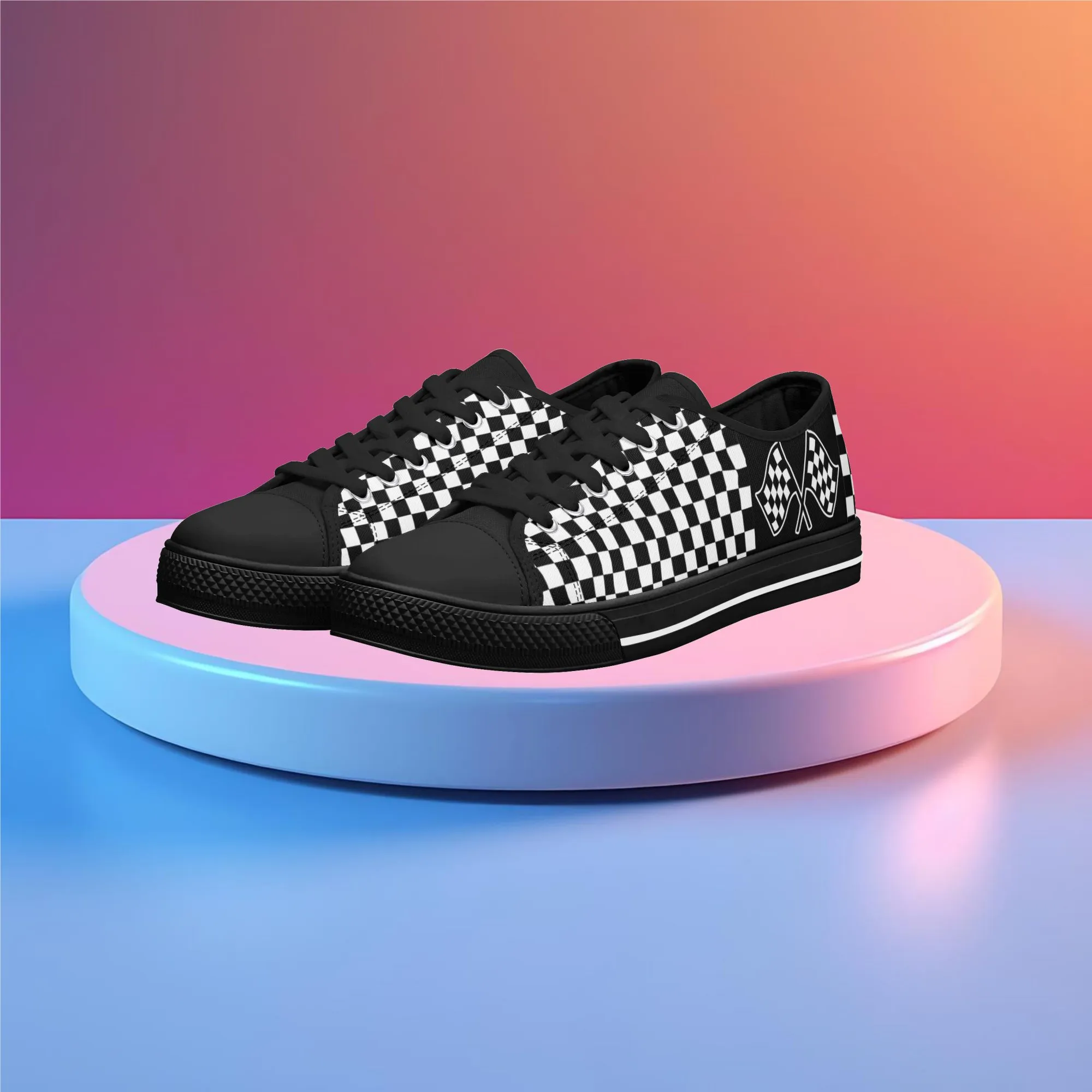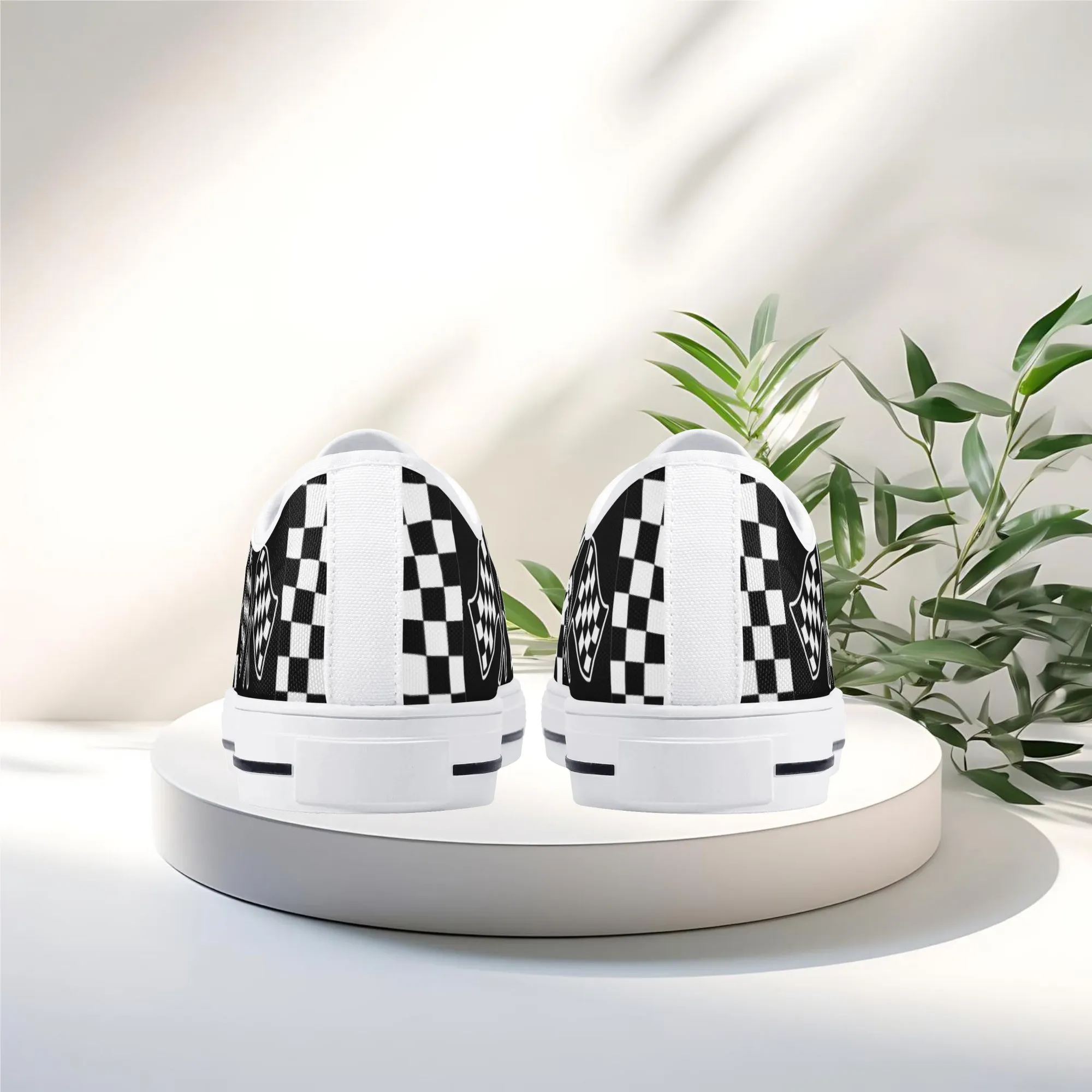 🏁 Finish Line Fashion: Checkerboard Low Top Canvas Sneakers!