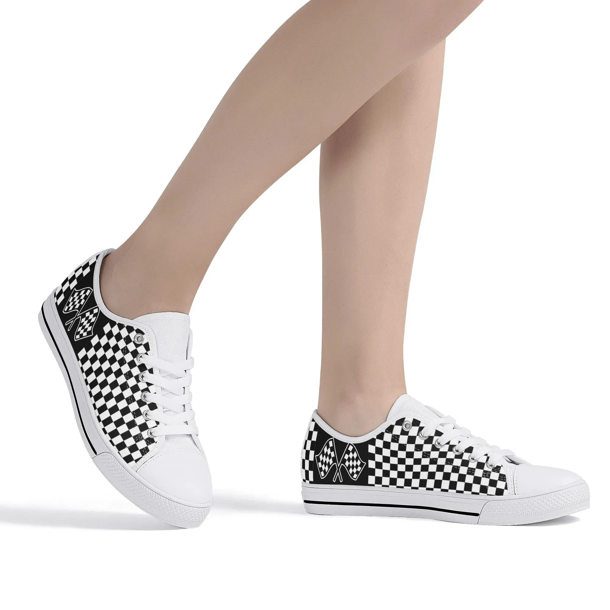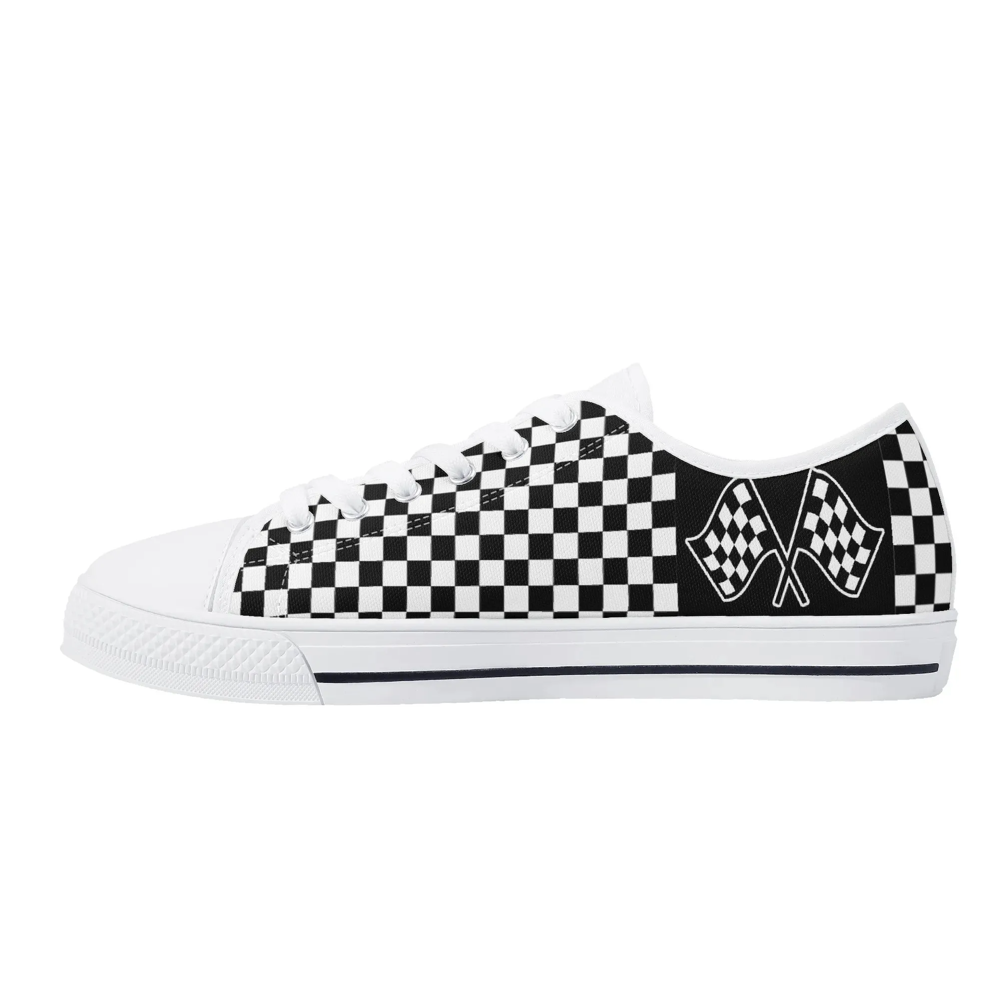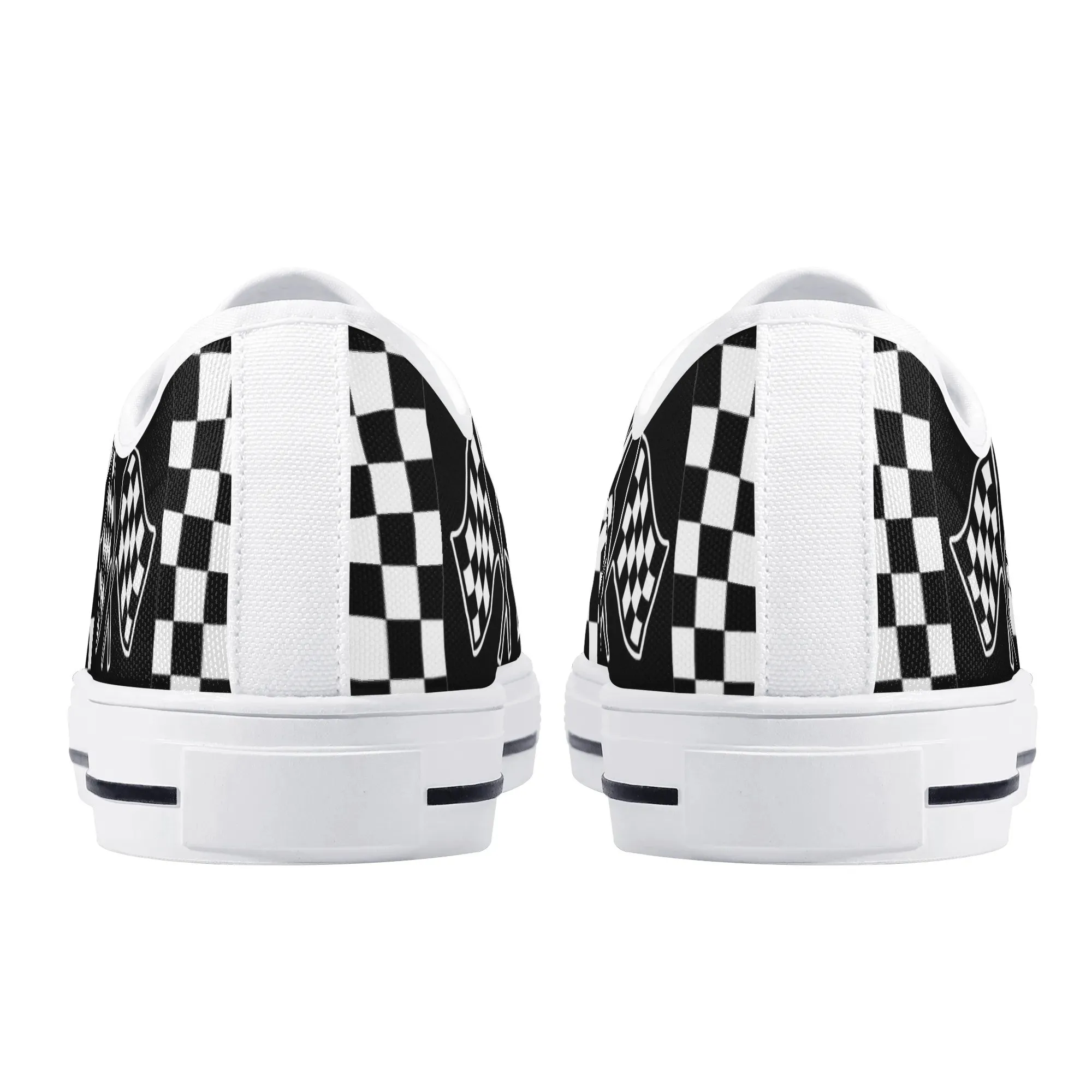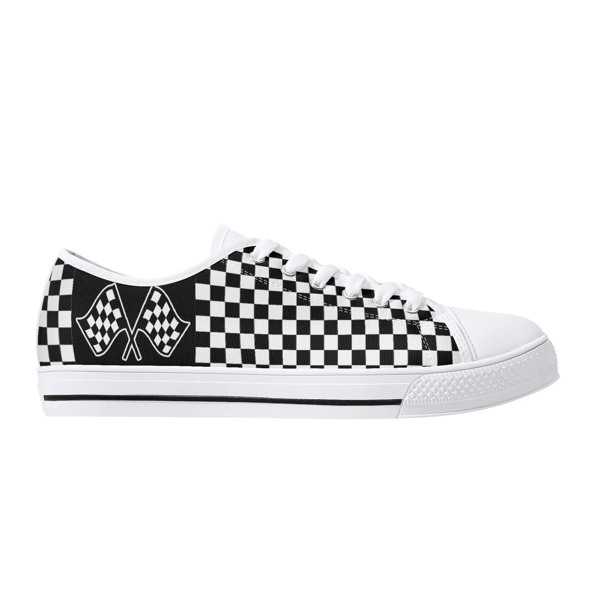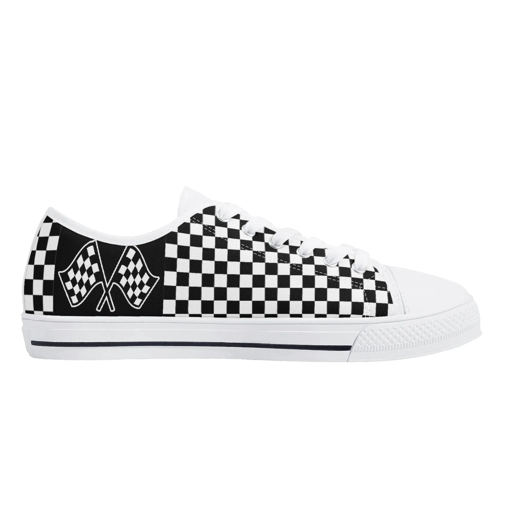 🏁 Finish Line Fashion: Checkerboard Low Top Canvas Sneakers!
