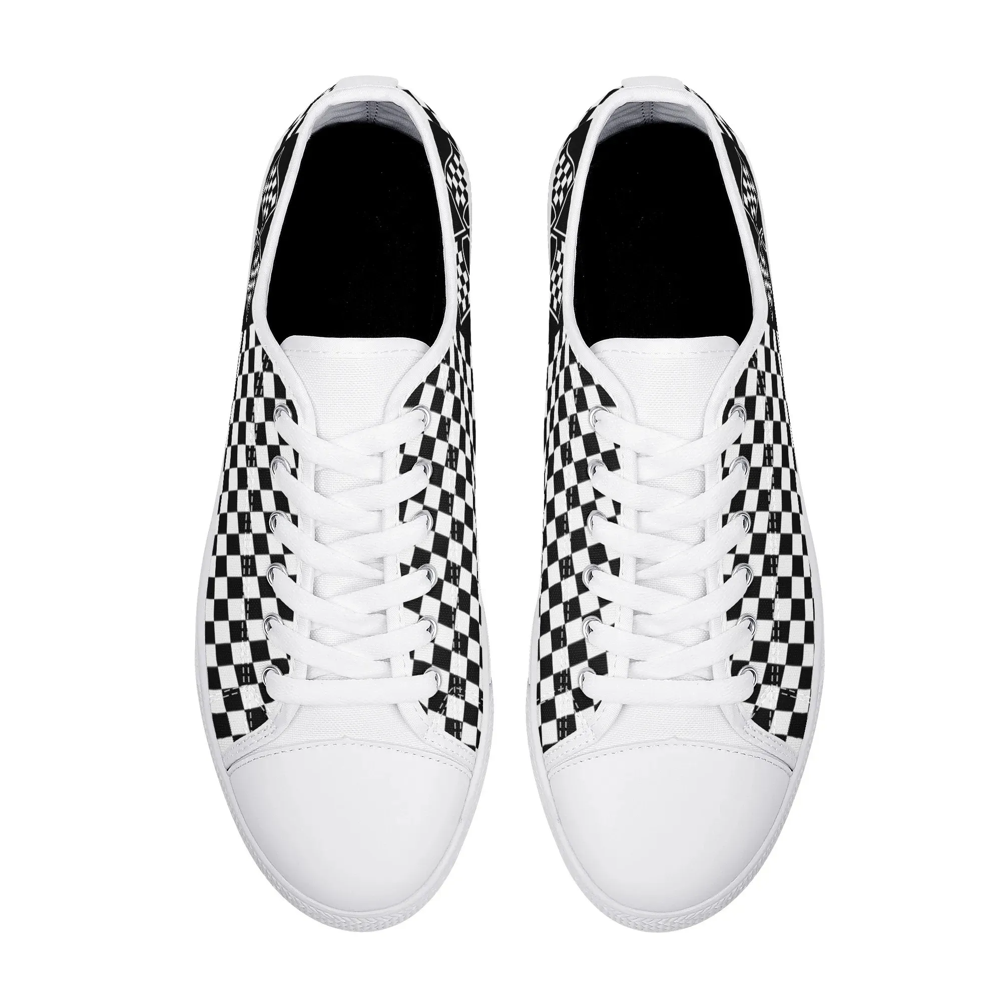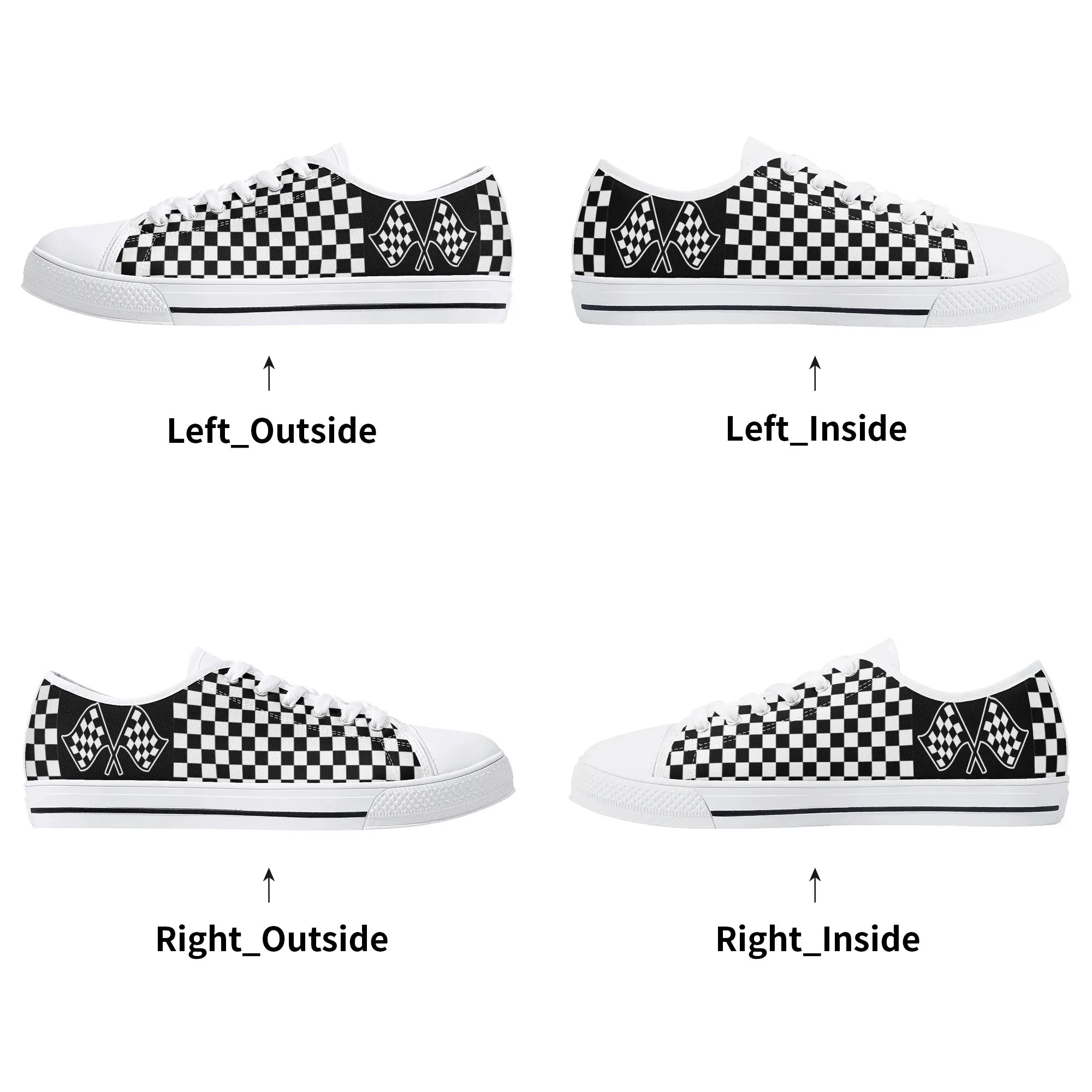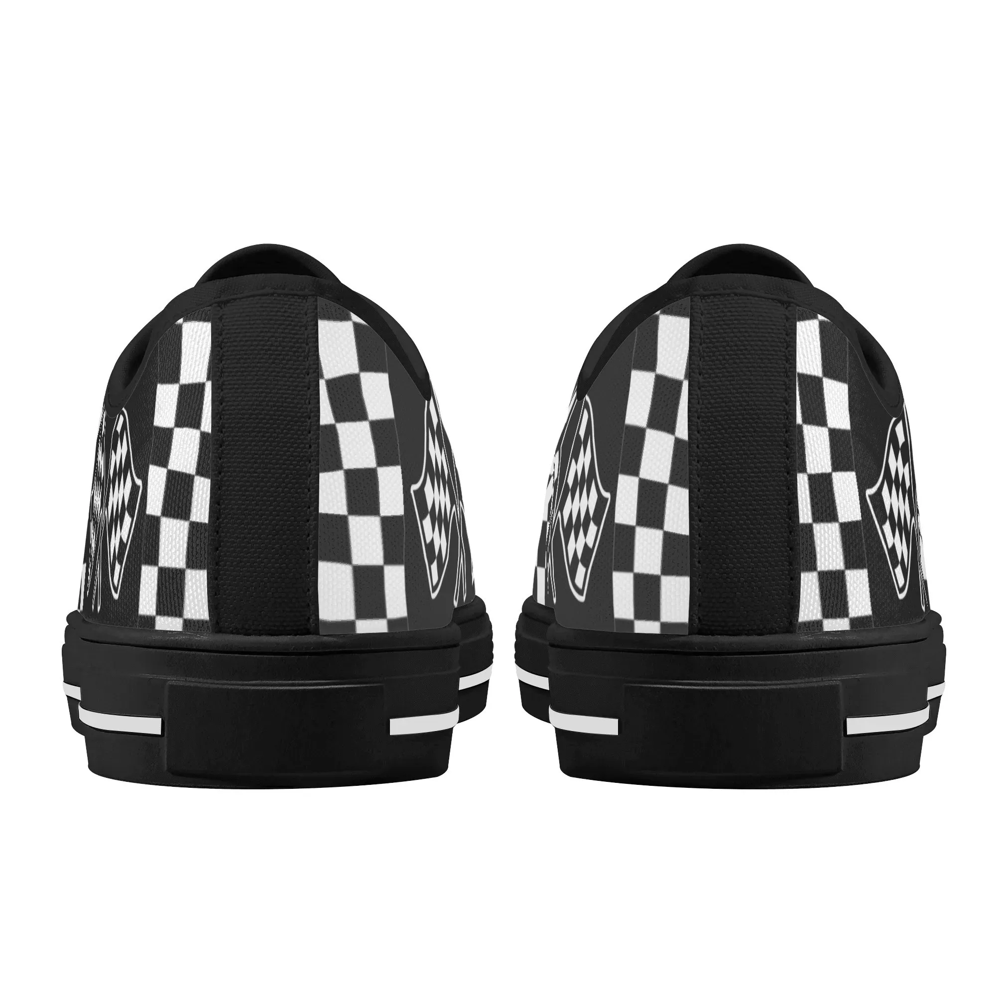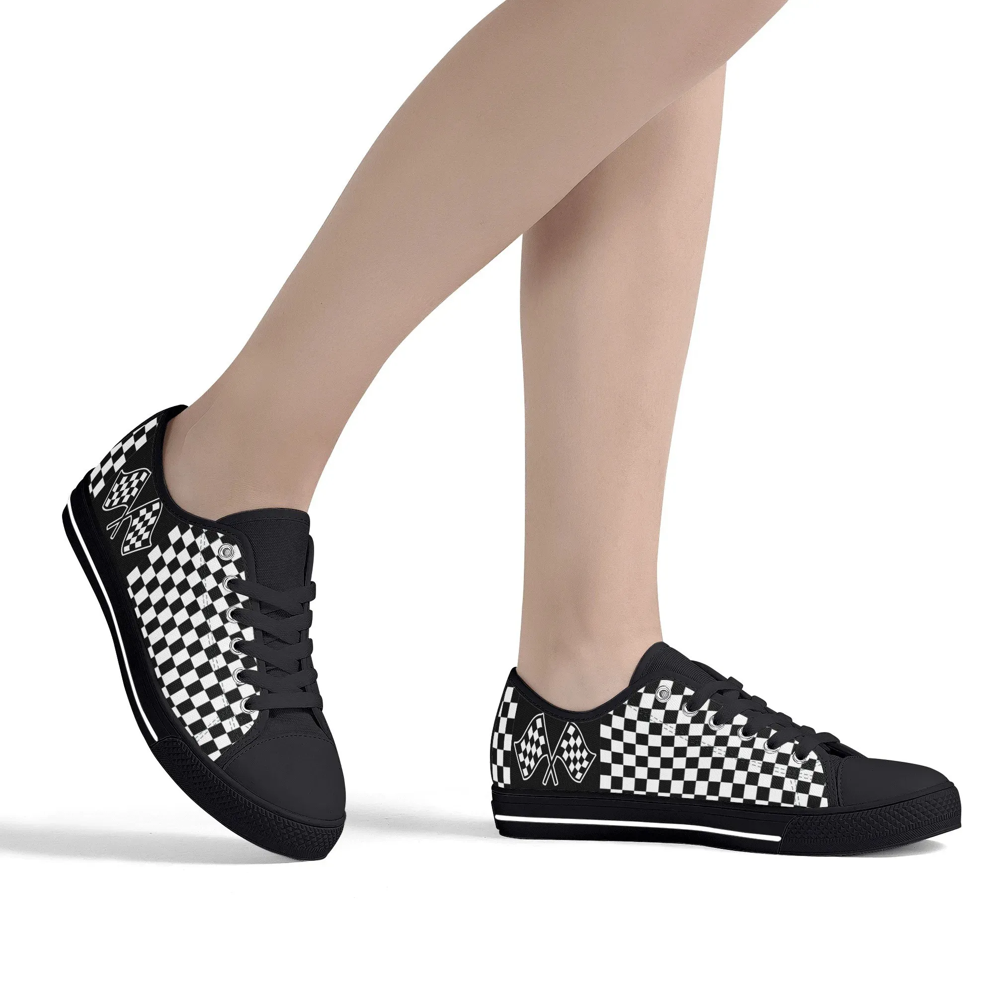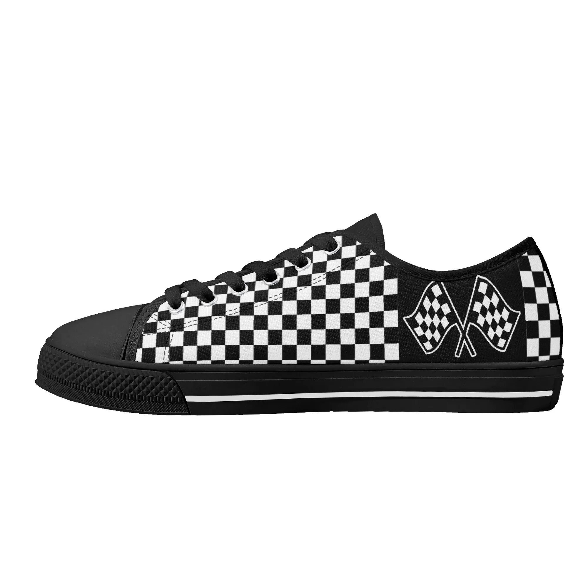 🏁 Finish Line Fashion: Checkerboard Low Top Canvas Sneakers!