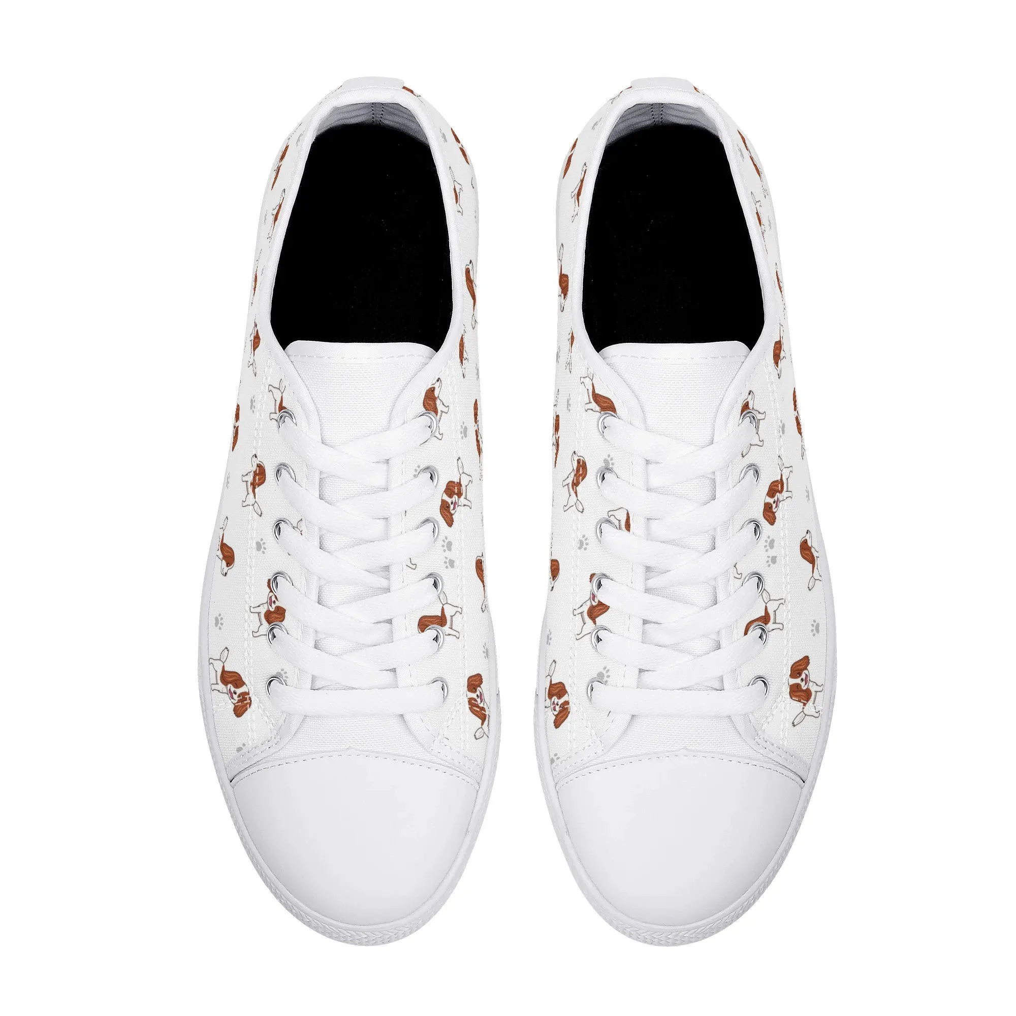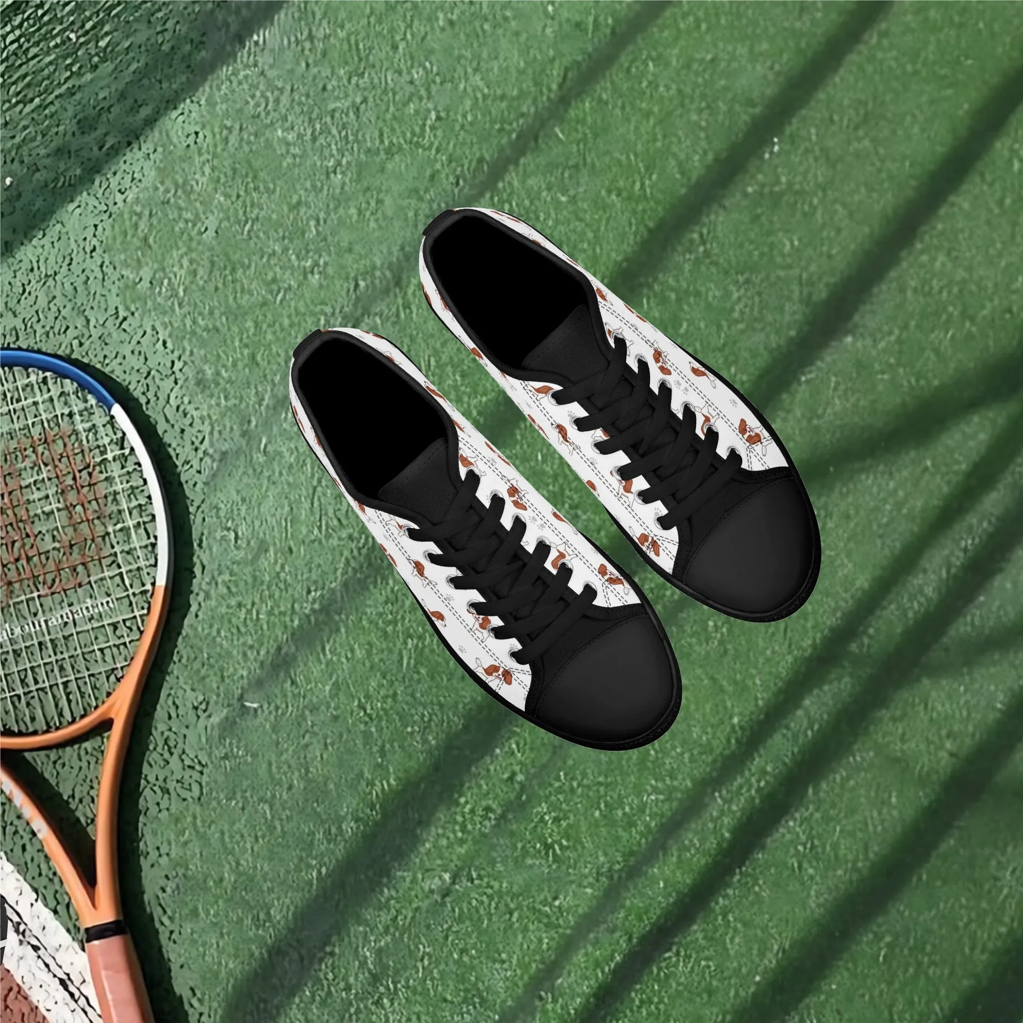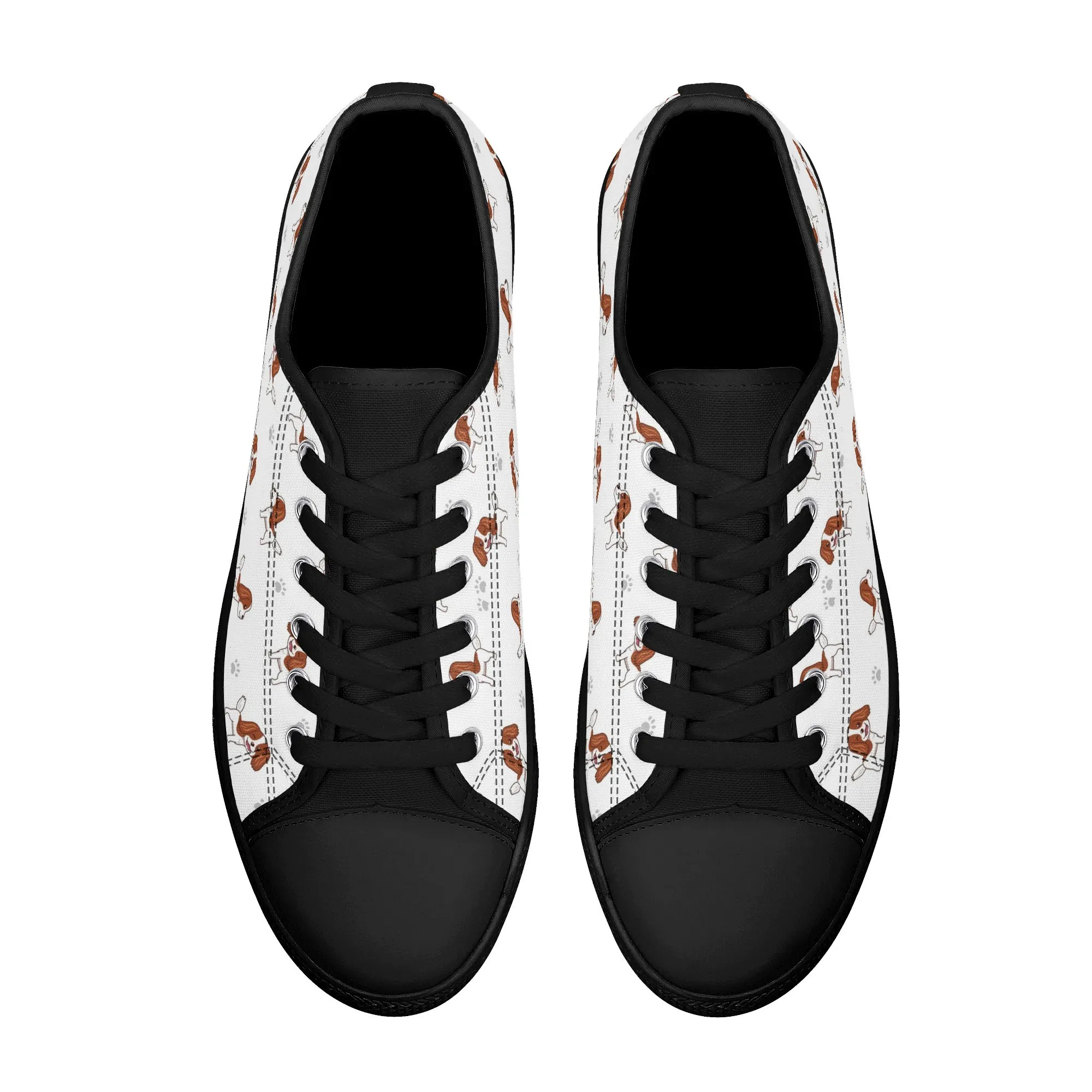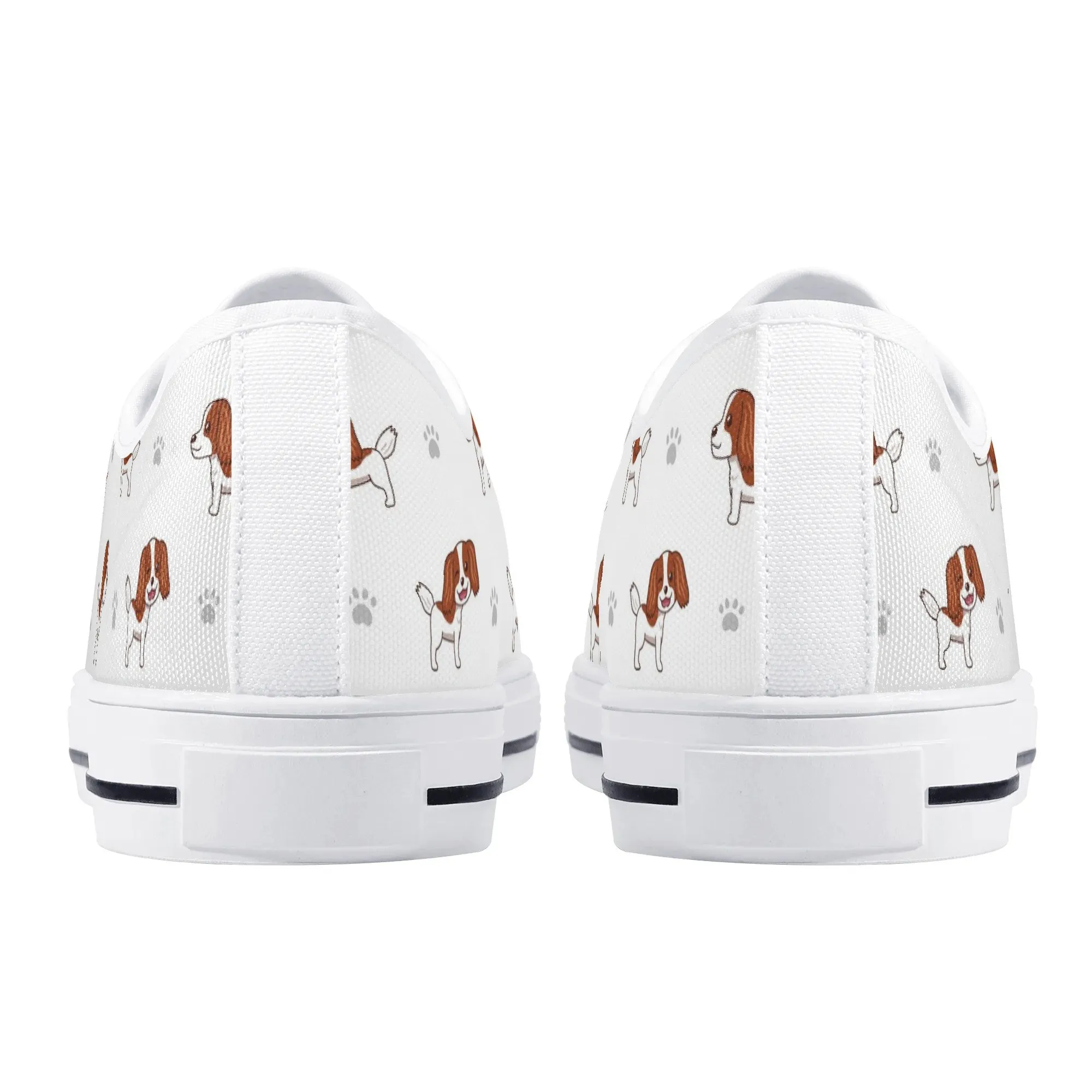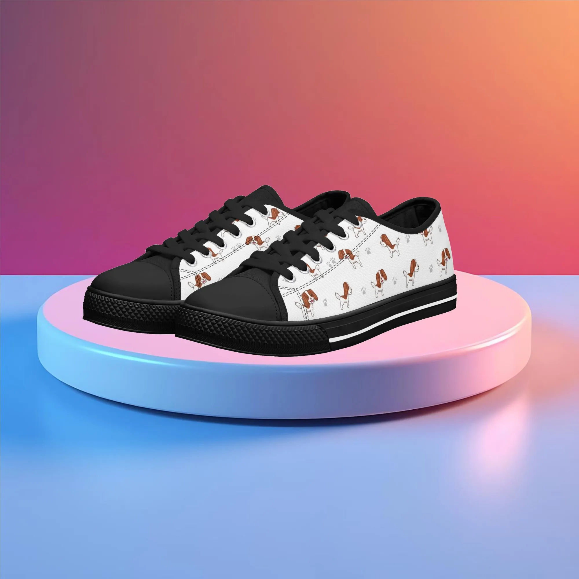 👑 Show off your royal affection with these beautiful low-top canvas shoes featuring an adorable, all-over pattern of the sweet Cavalier King Charles Spaniel (Blenheim pattern). This charming design is a must-have for Cavalier owners and those who adore this gentle breed. These unisex sneakers are constructed for ultimate comfort and durability, making them the perfect footwear for strolls, errands, and any occasion where you want to celebrate your favorite furry friend. Bring a little royalty to your everyday step!