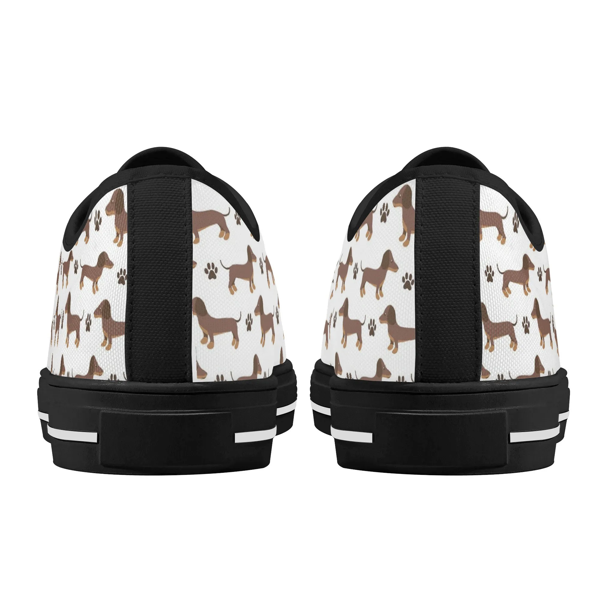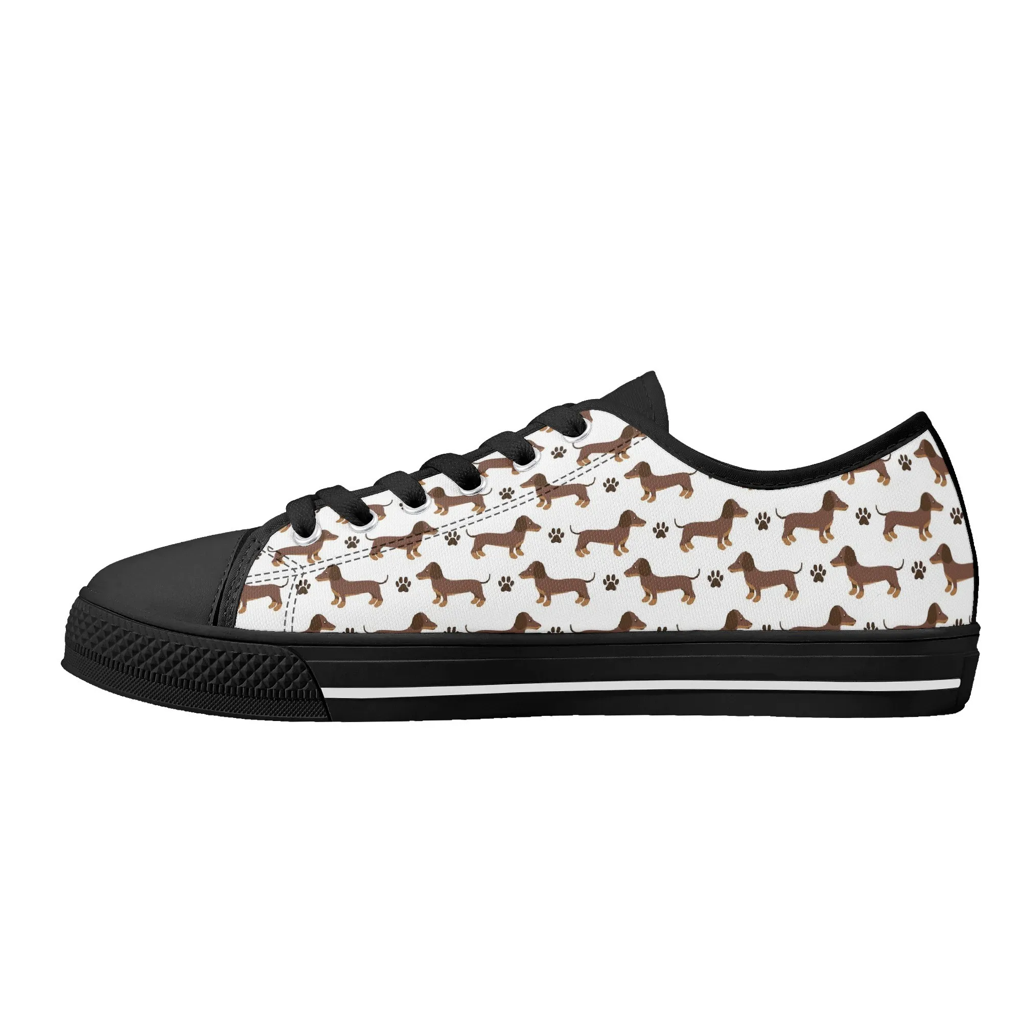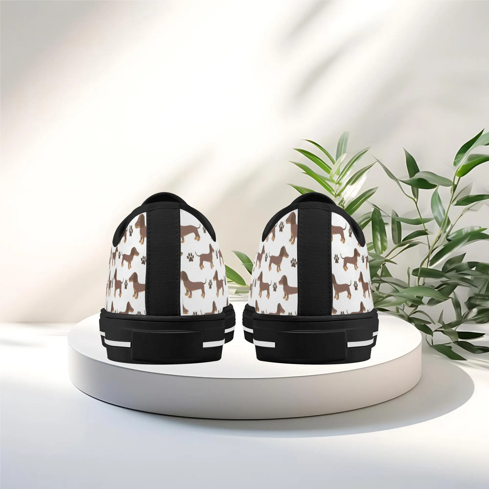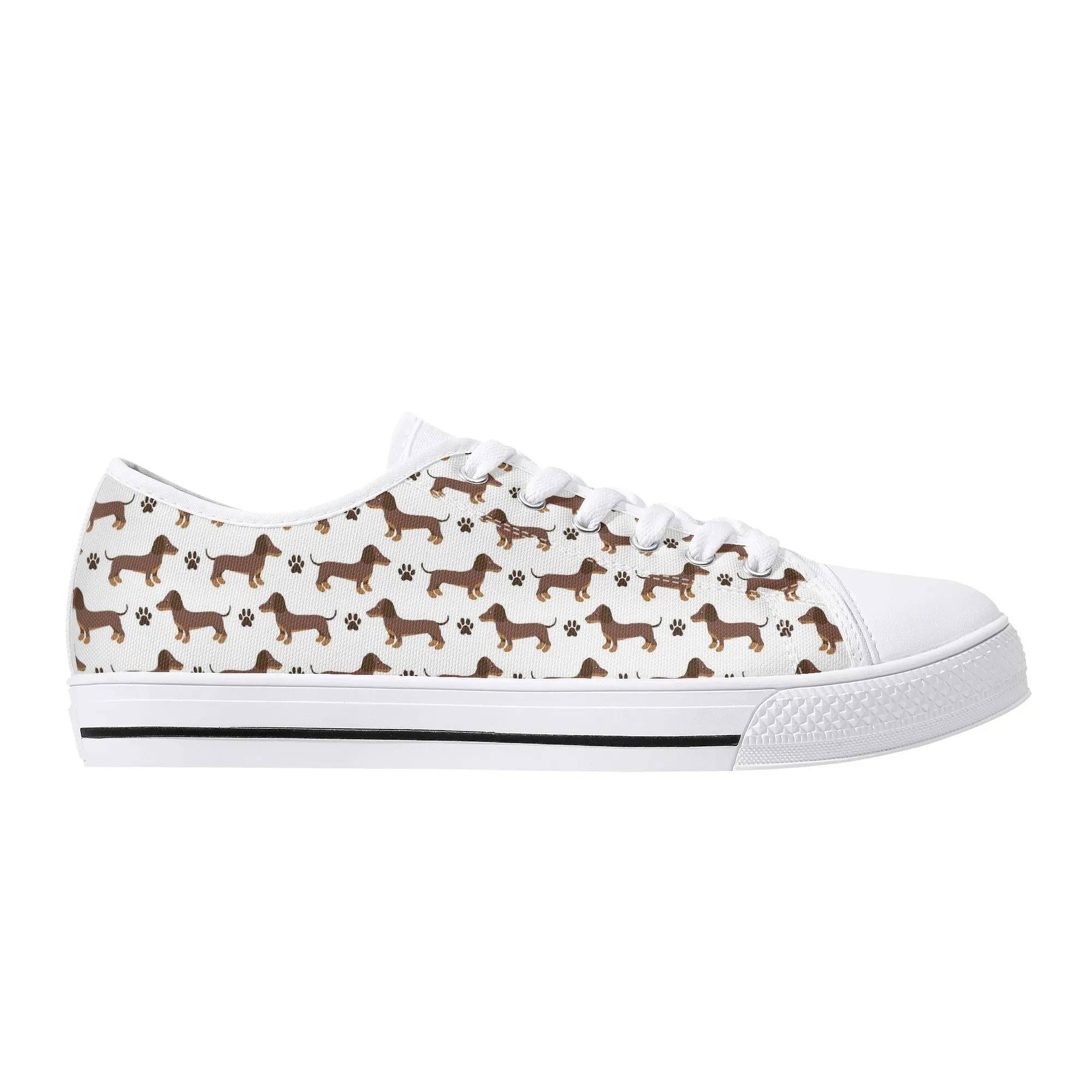 🦮 Step out in whimsical style with these charming low-top canvas shoes featuring an adorable, all-over pattern of Dachshunds (Weiner Dogs)! This design is a must-have for all Doxie owners and dog breed enthusiasts, offering a playful yet classic look. These unisex sneakers are crafted for exceptional comfort and durability, making them your perfect companion for dog walks, casual outings, and everyday wear. Show off your love for the beloved Dachshund breed with this unique footwear!