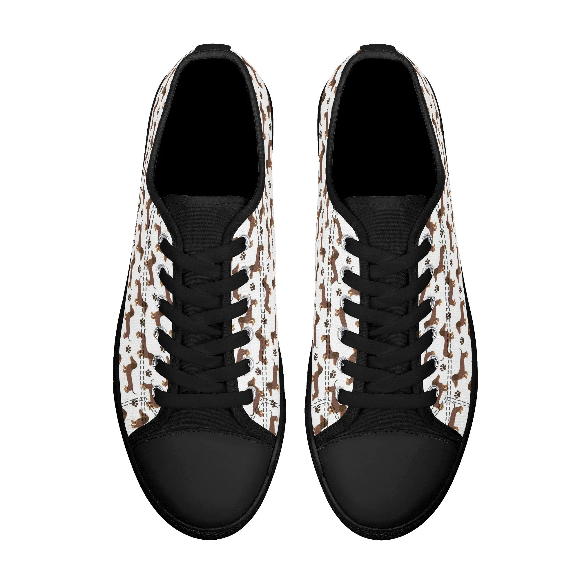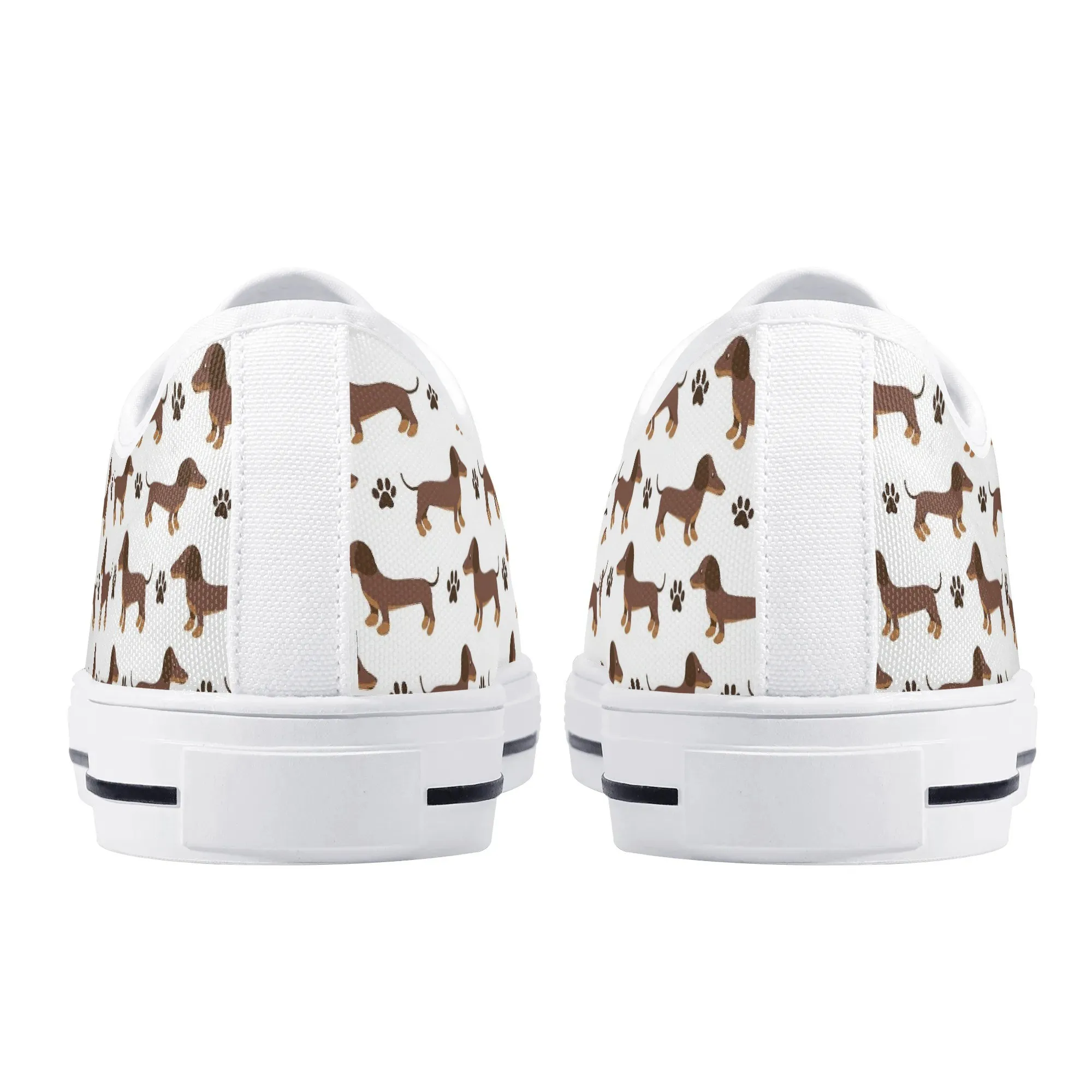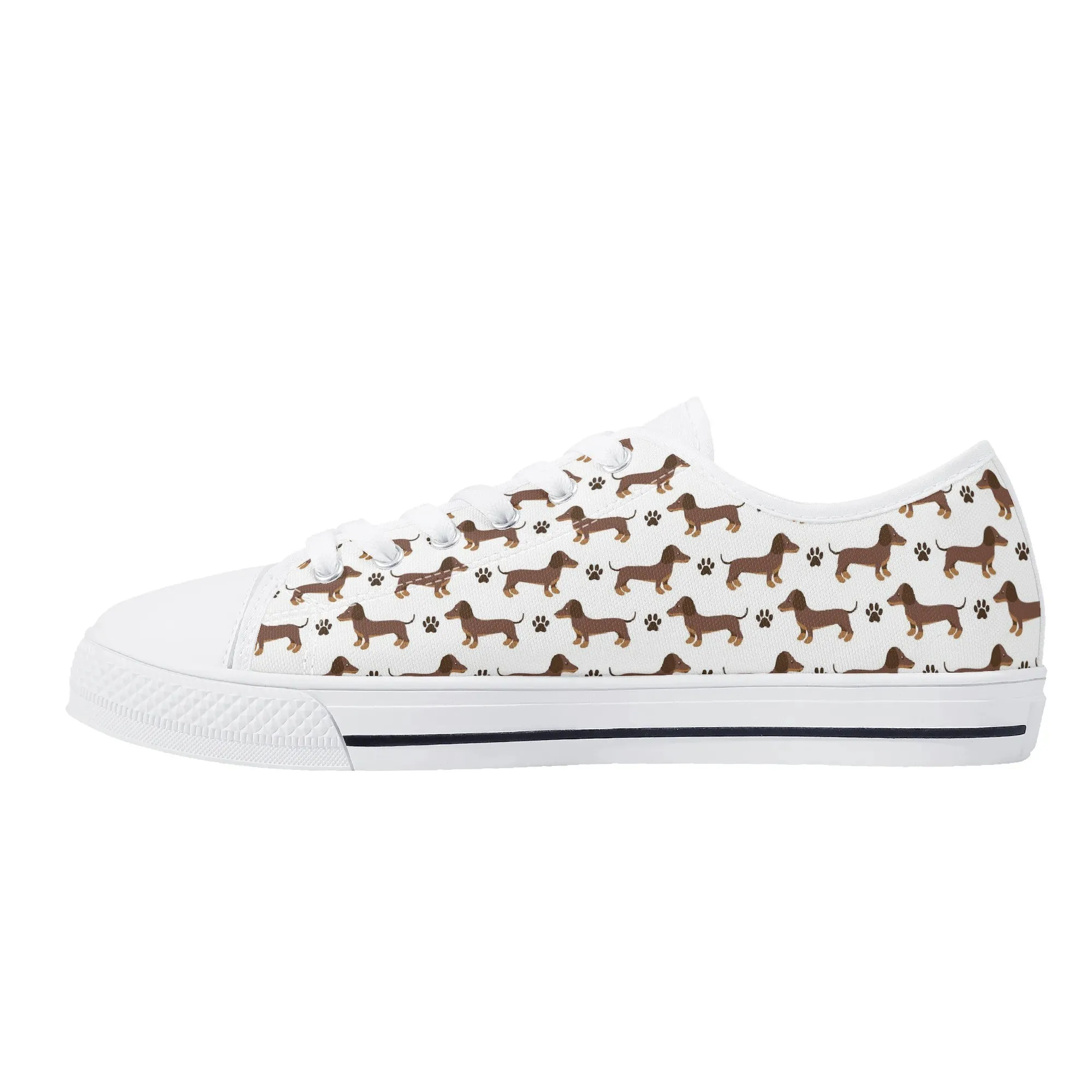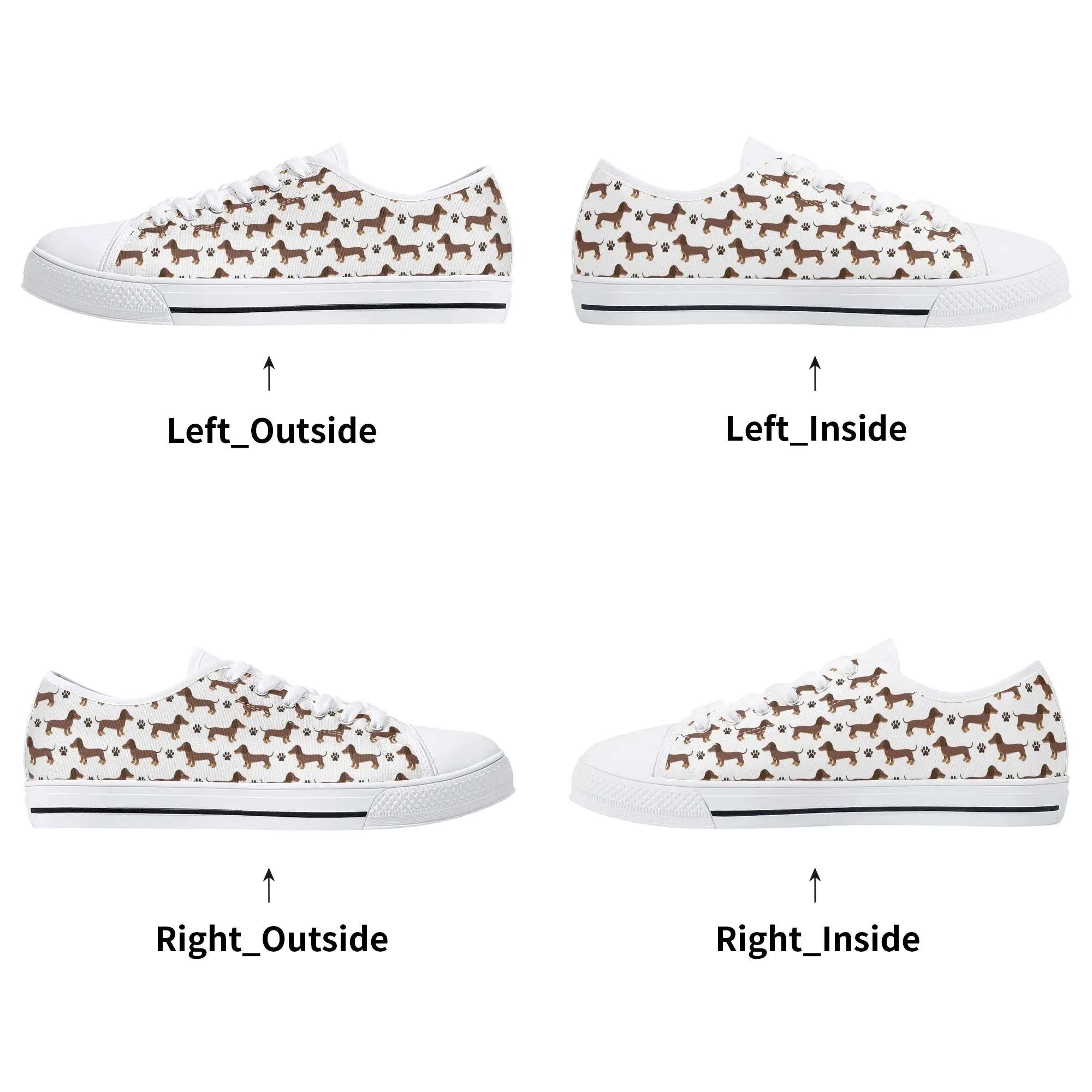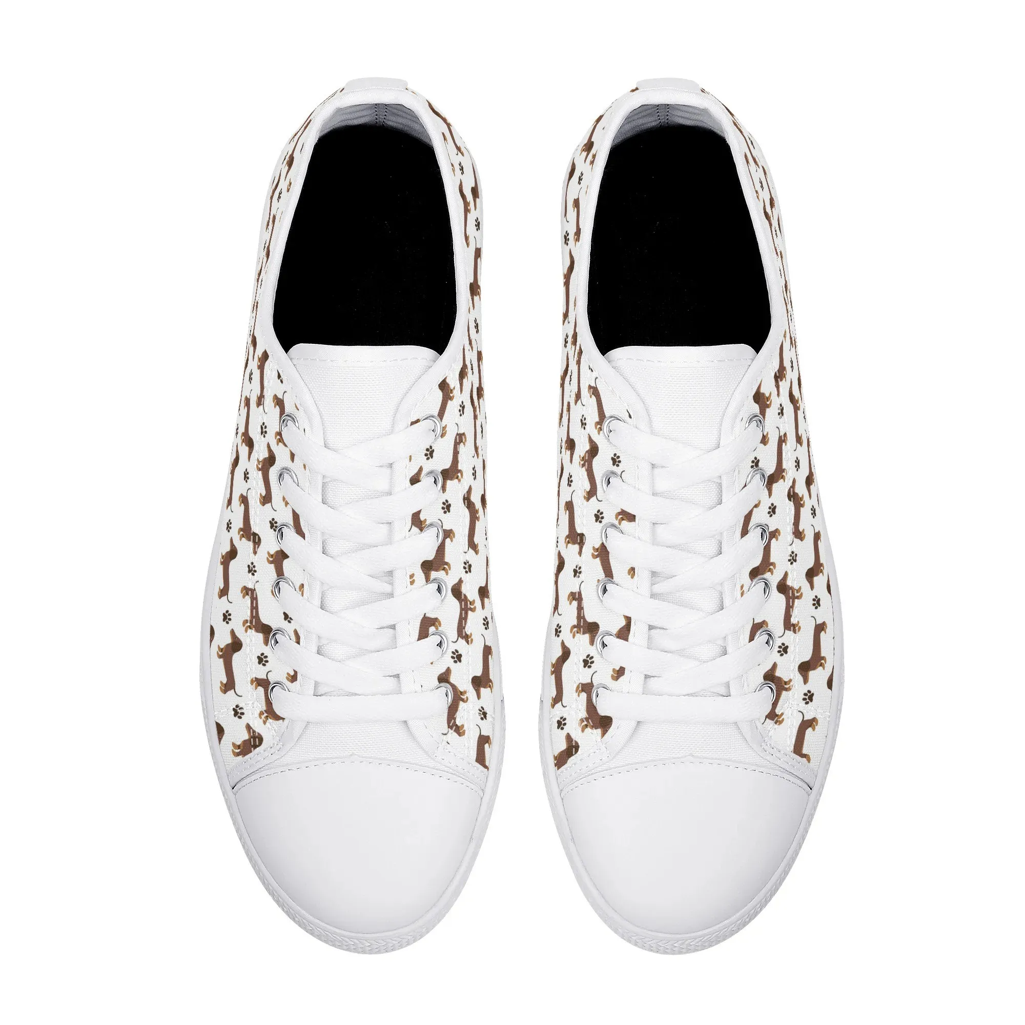 🦮 Step out in whimsical style with these charming low-top canvas shoes featuring an adorable, all-over pattern of Dachshunds (Weiner Dogs)! This design is a must-have for all Doxie owners and dog breed enthusiasts, offering a playful yet classic look. These unisex sneakers are crafted for exceptional comfort and durability, making them your perfect companion for dog walks, casual outings, and everyday wear. Show off your love for the beloved Dachshund breed with this unique footwear!