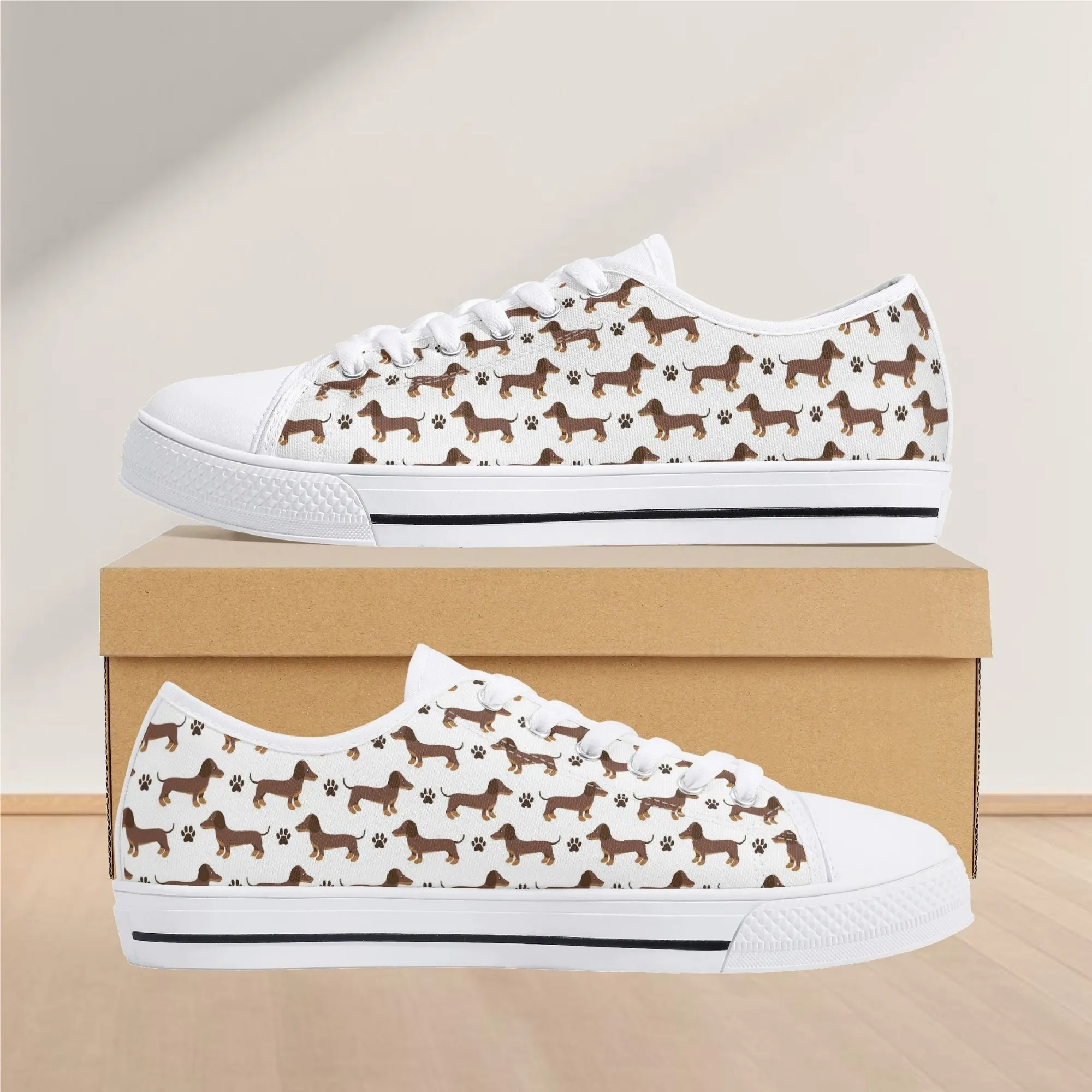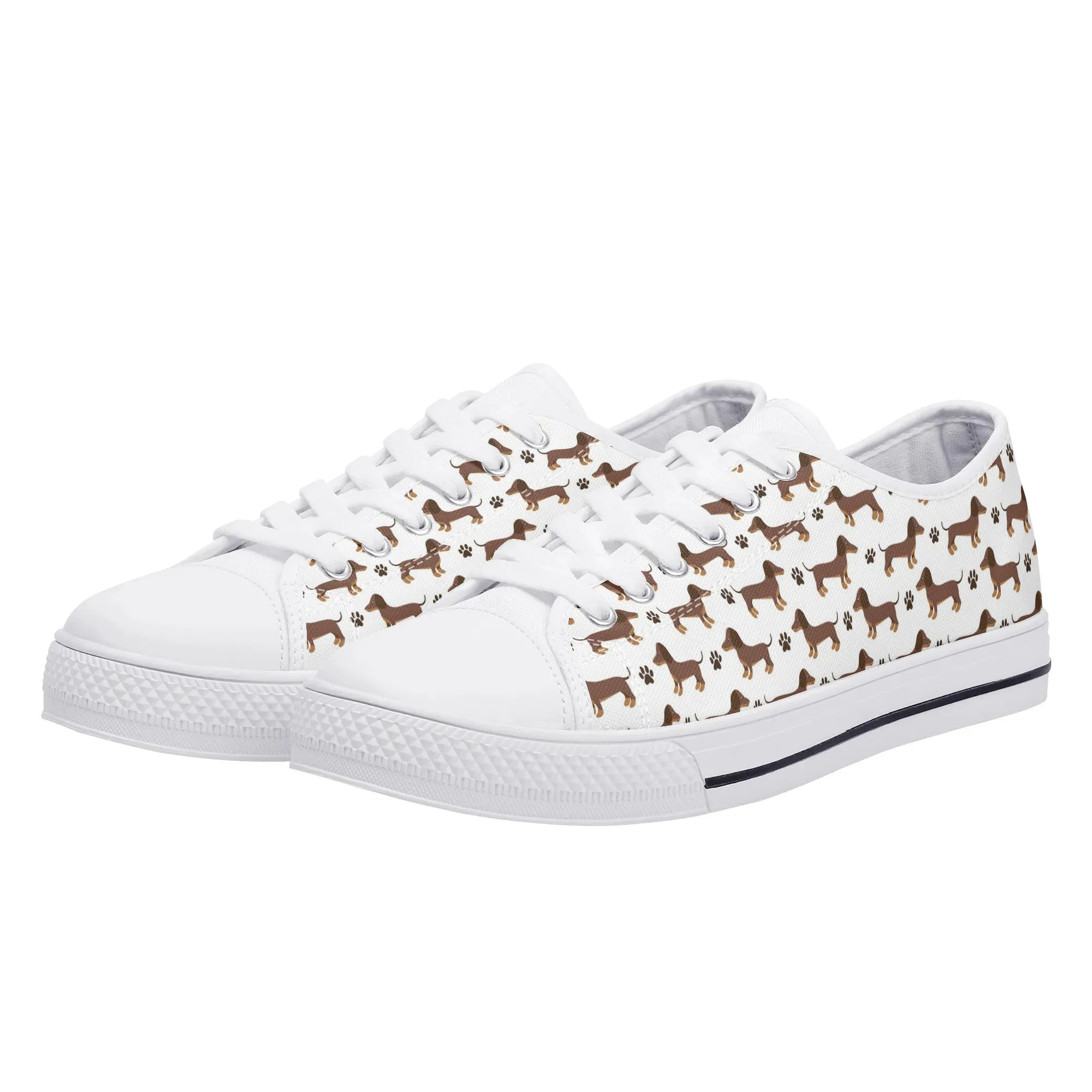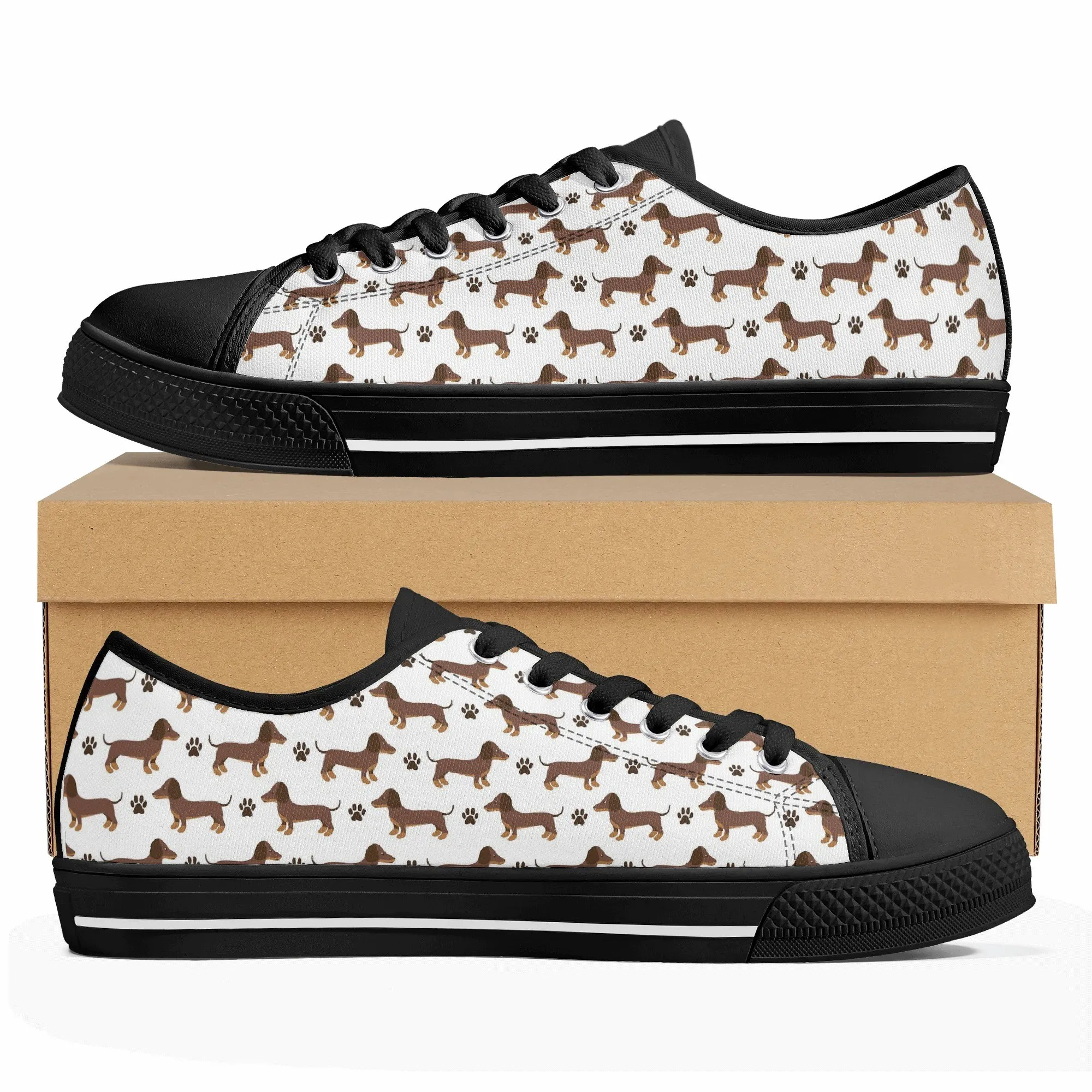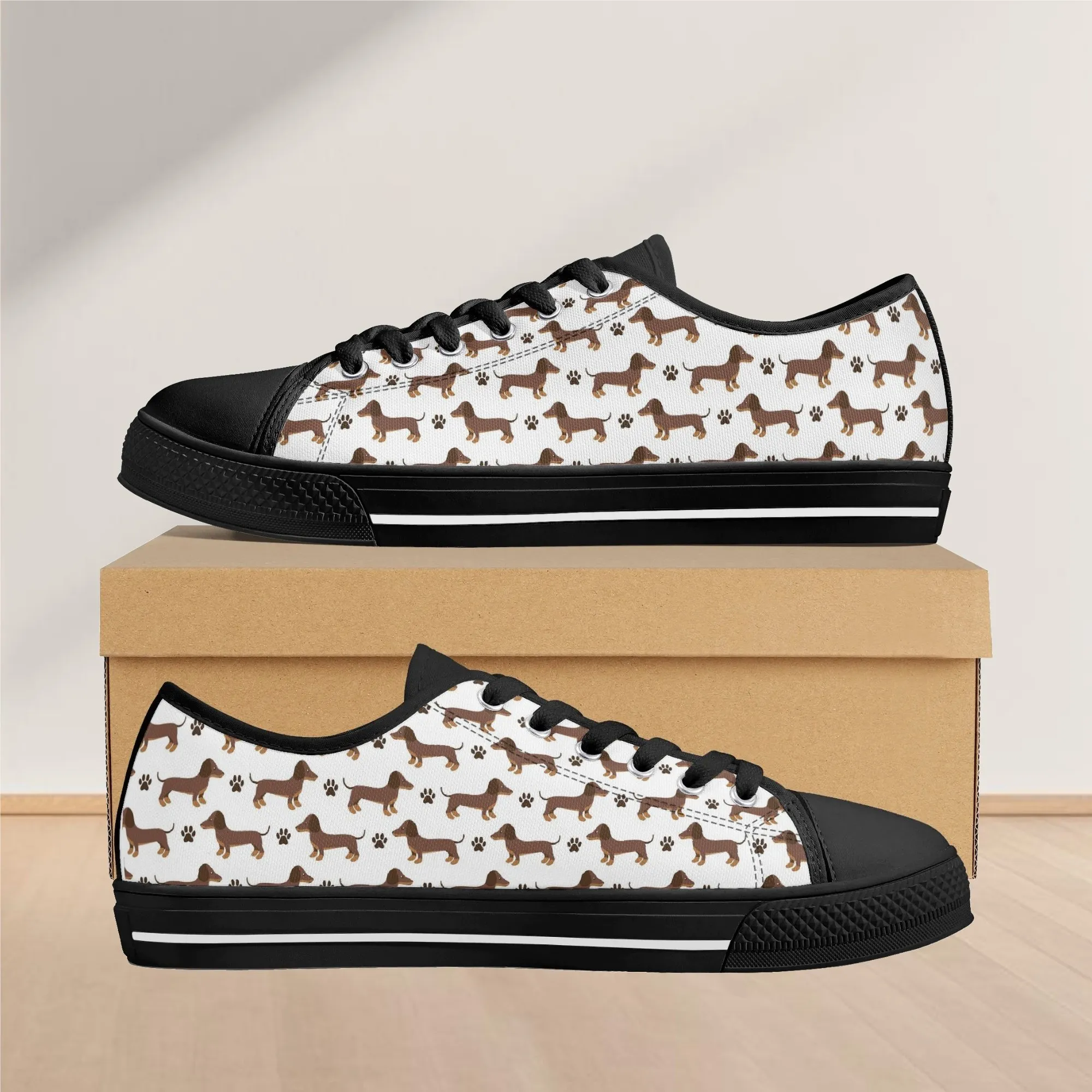 🦮 Step out in whimsical style with these charming low-top canvas shoes featuring an adorable, all-over pattern of Dachshunds (Weiner Dogs)! This design is a must-have for all Doxie owners and dog breed enthusiasts, offering a playful yet classic look. These unisex sneakers are crafted for exceptional comfort and durability, making them your perfect companion for dog walks, casual outings, and everyday wear. Show off your love for the beloved Dachshund breed with this unique footwear!