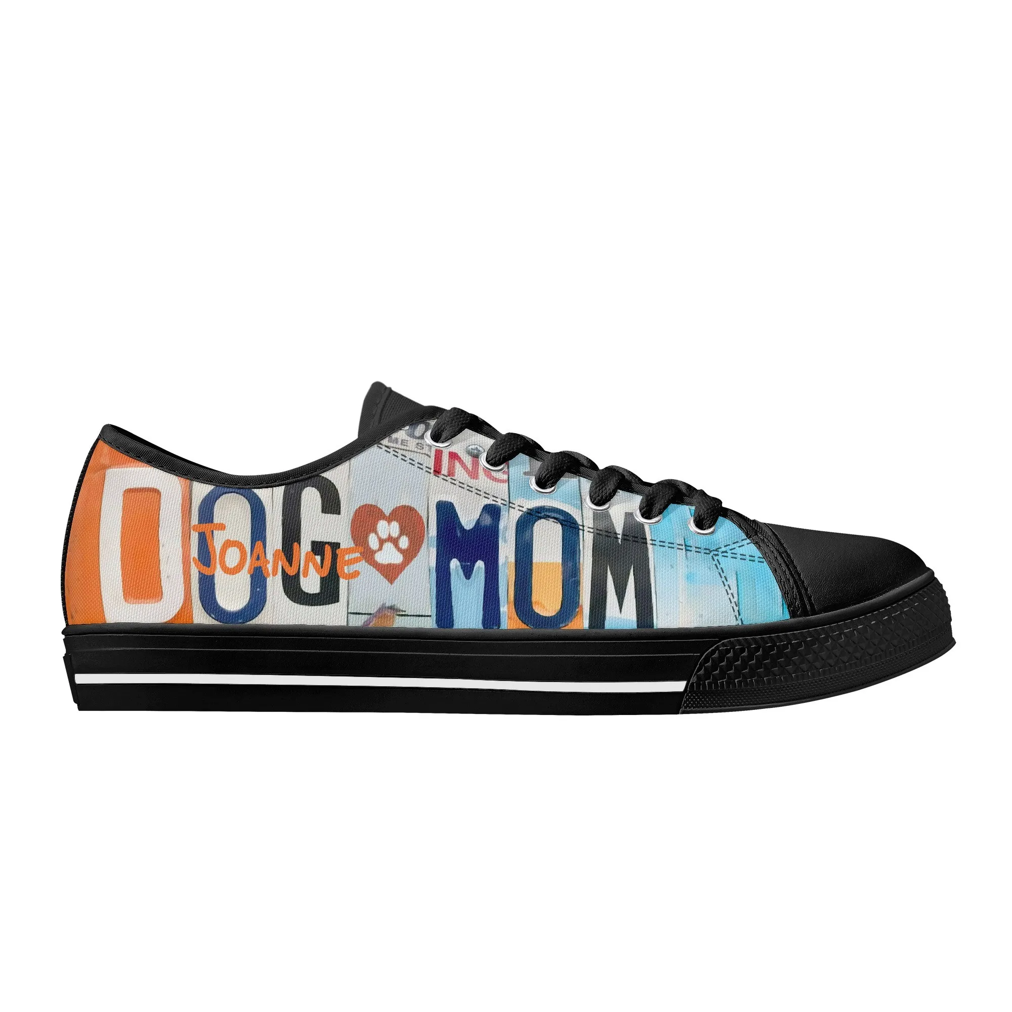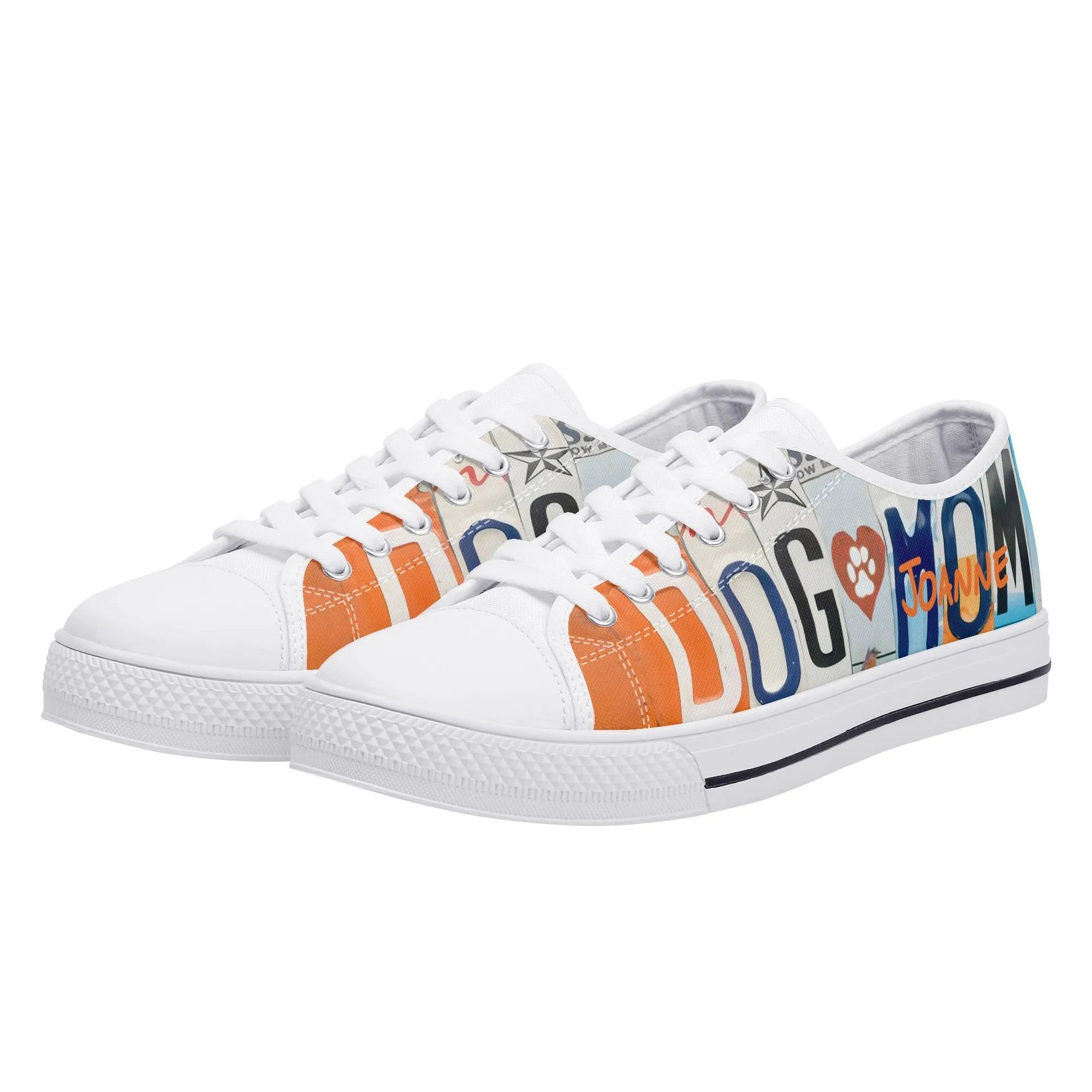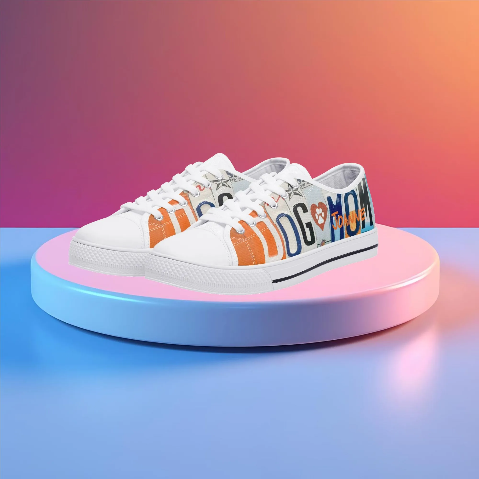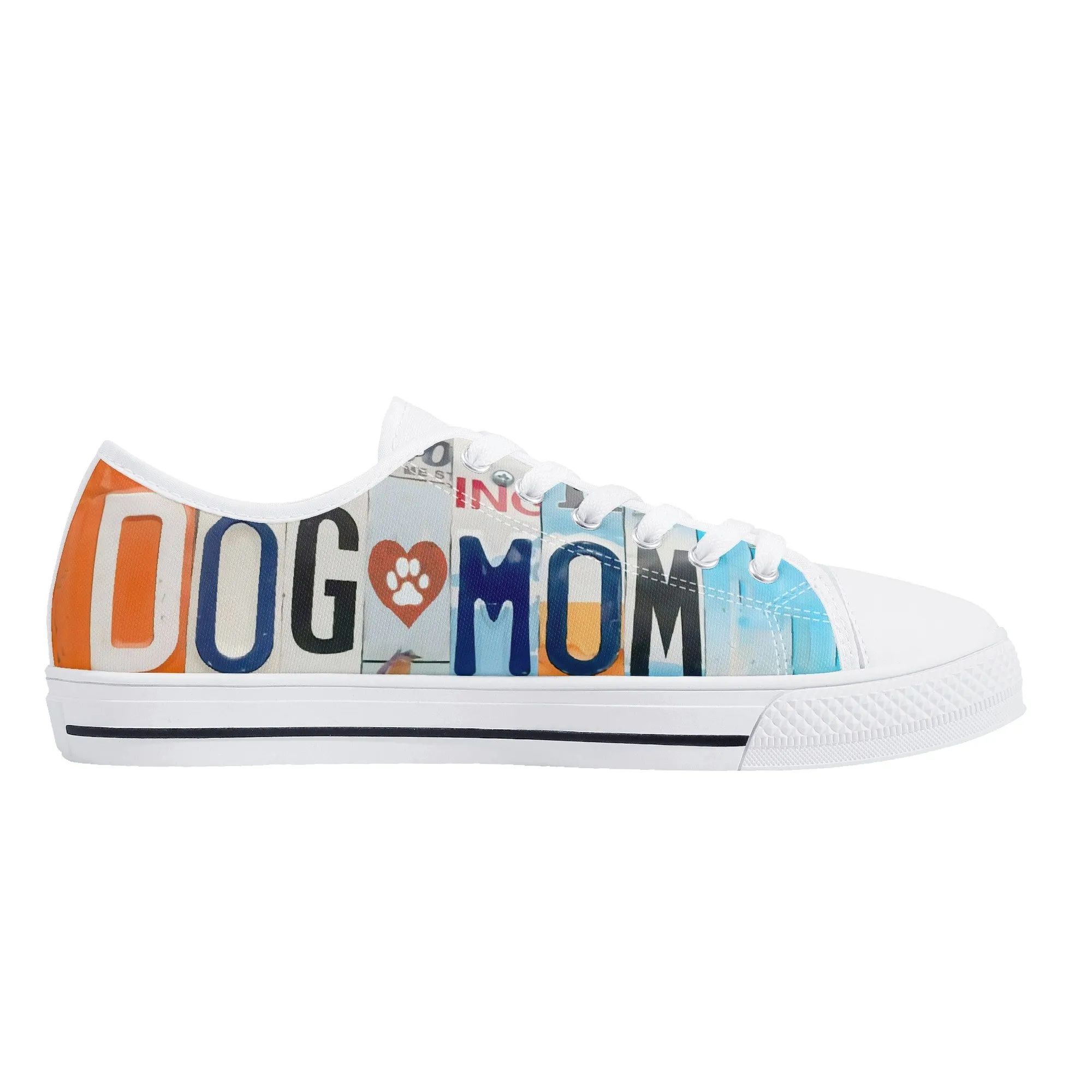 Dog Mom License Plate Shoes, Cute Dog Lover Sneakers, Women’s Low Top Canvas Shoes, Funny Dog Owner Gift, Pet Parent Apparel
