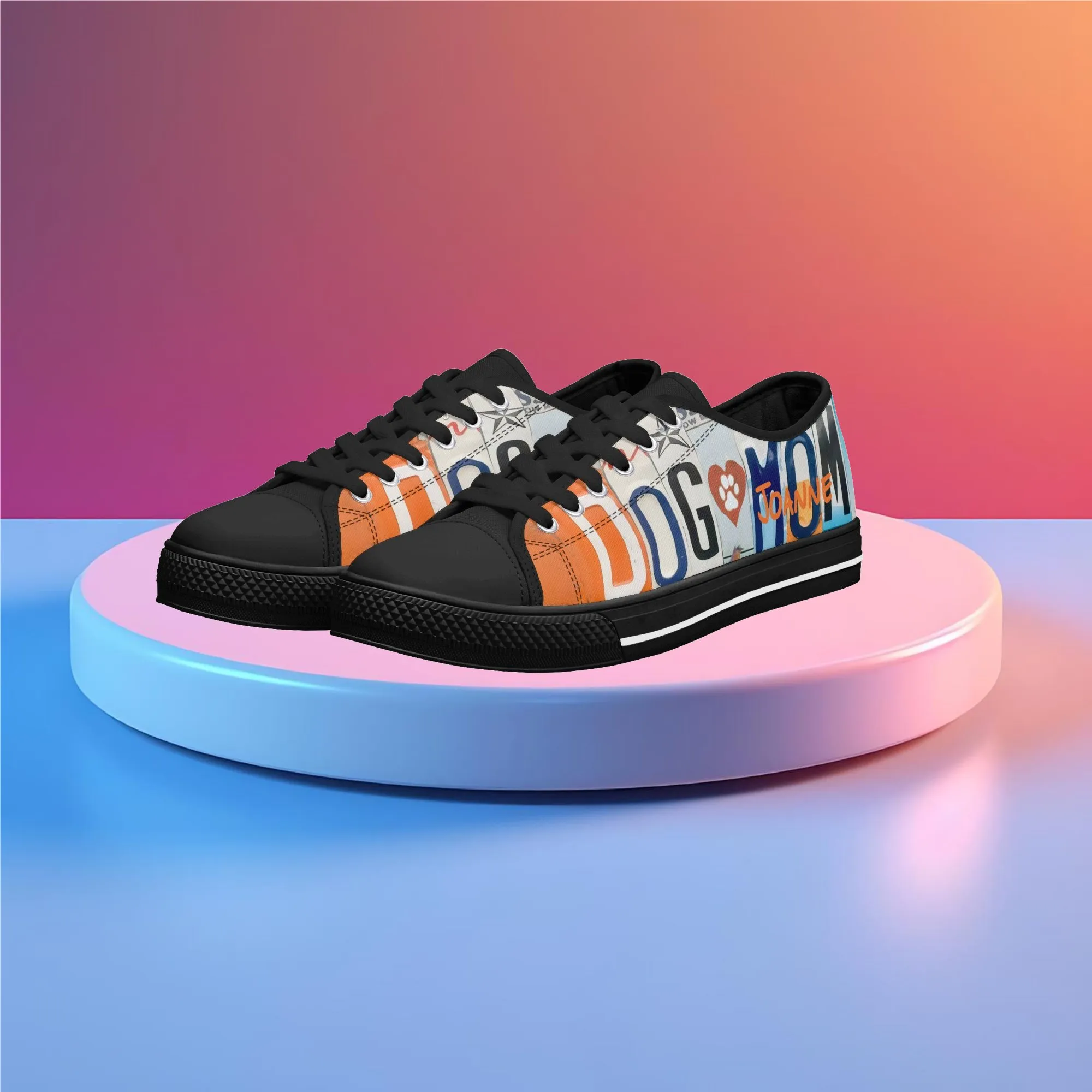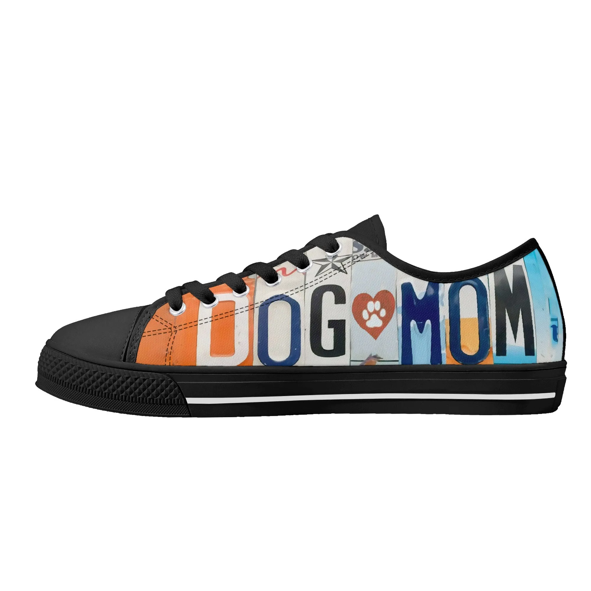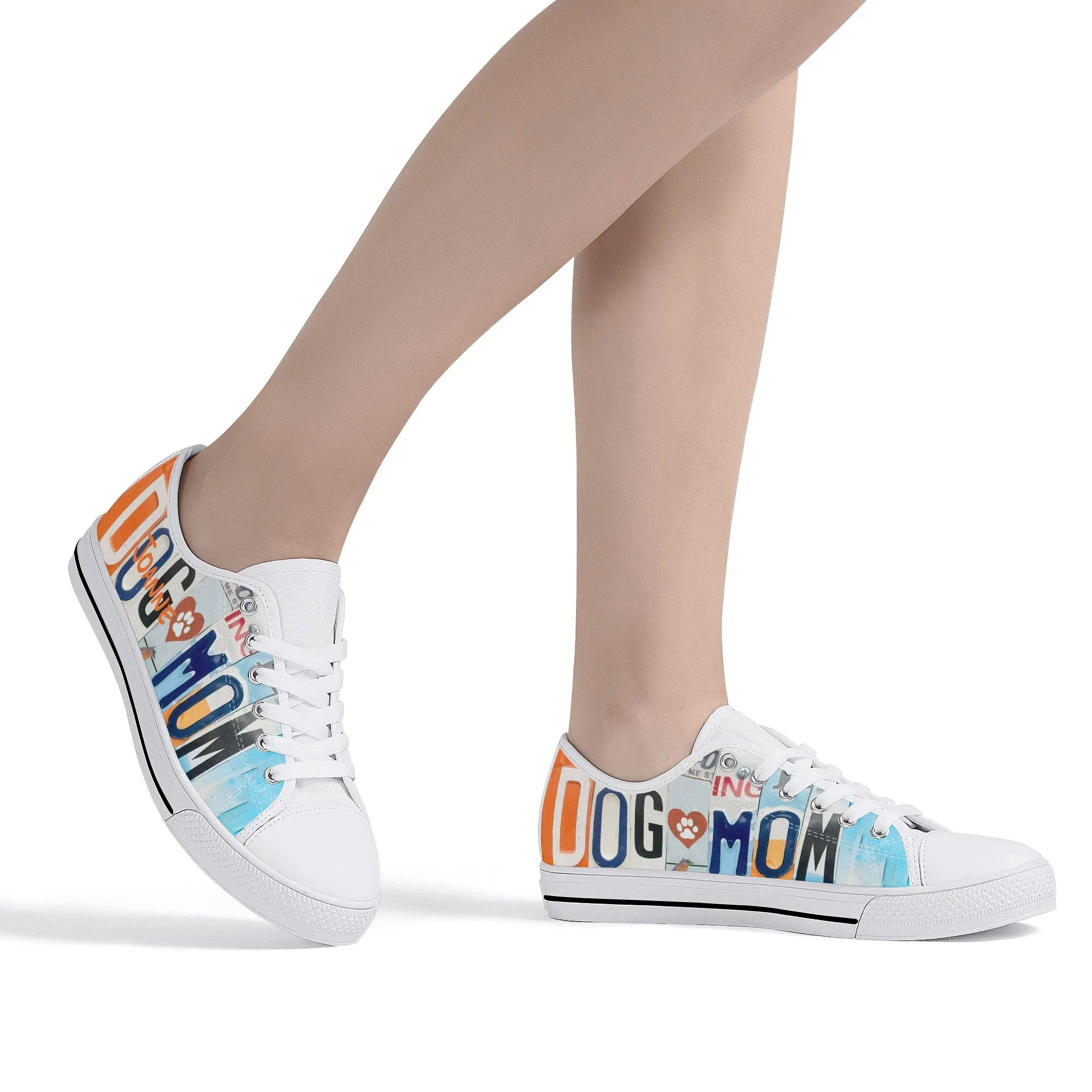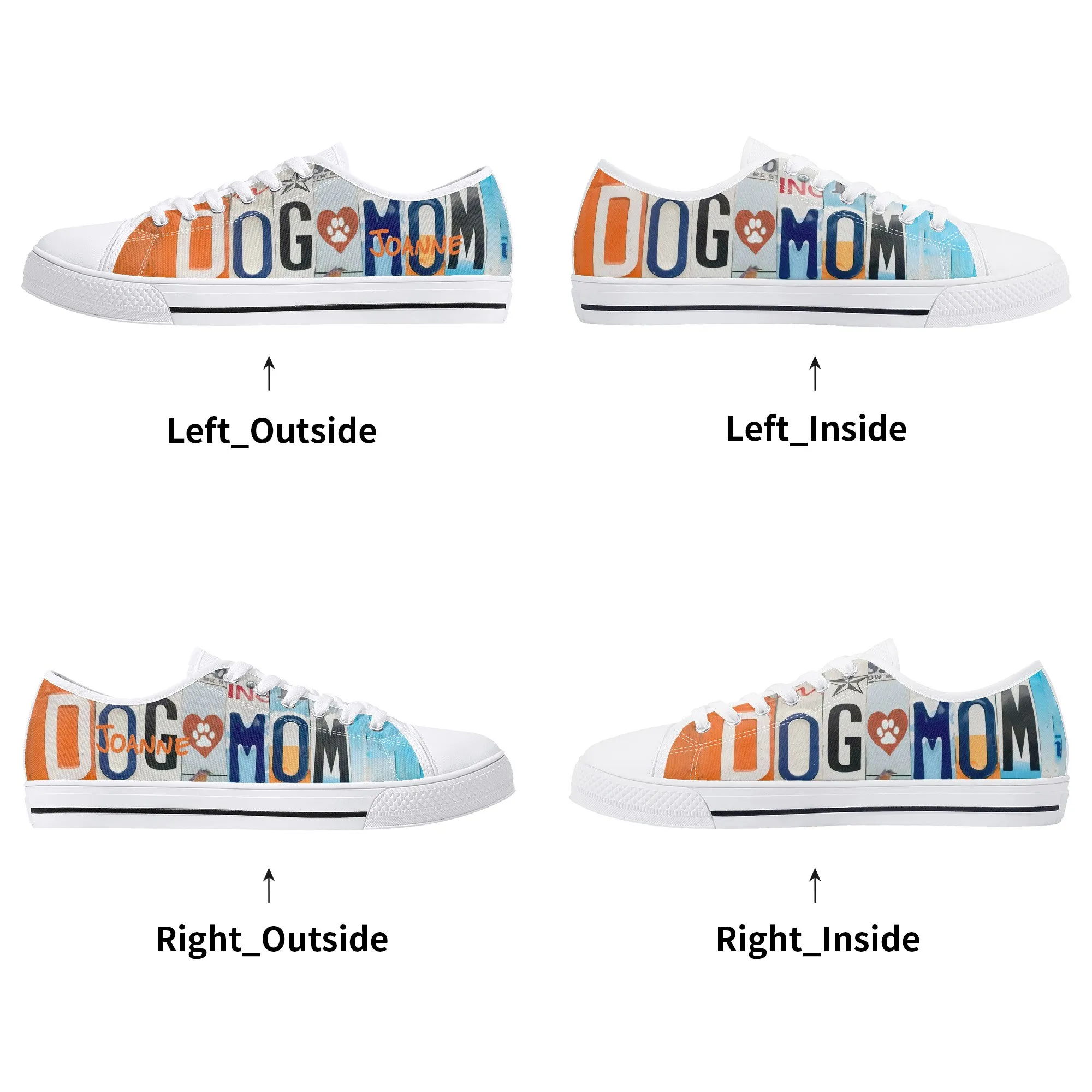 Dog Mom License Plate Shoes, Cute Dog Lover Sneakers, Women’s Low Top Canvas Shoes, Funny Dog Owner Gift, Pet Parent Apparel
