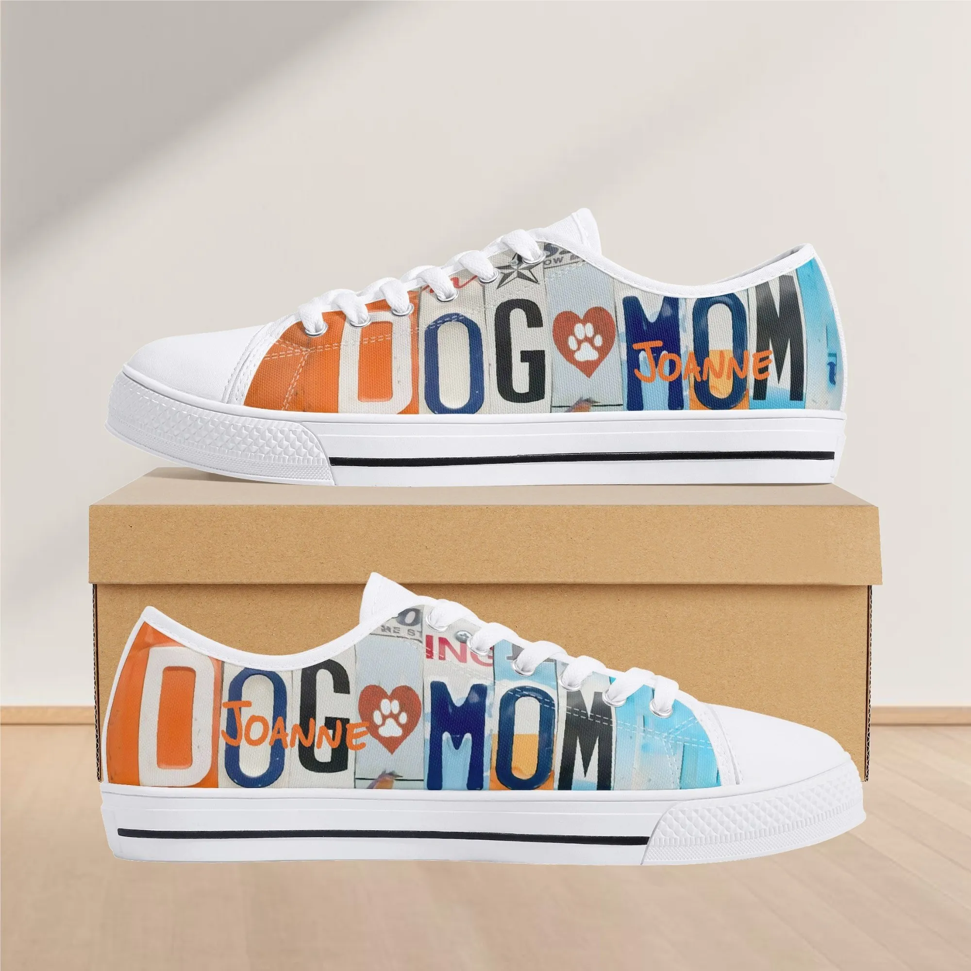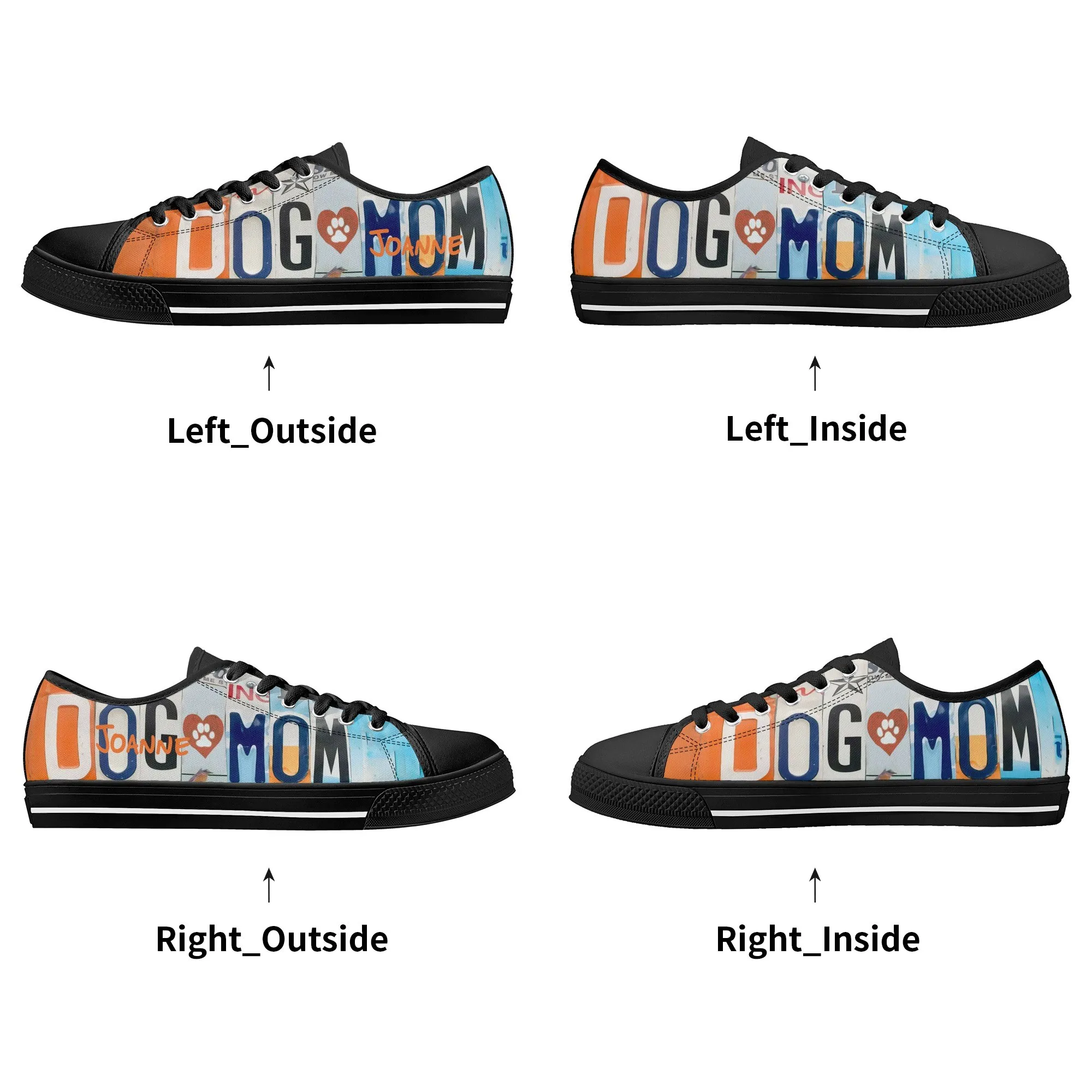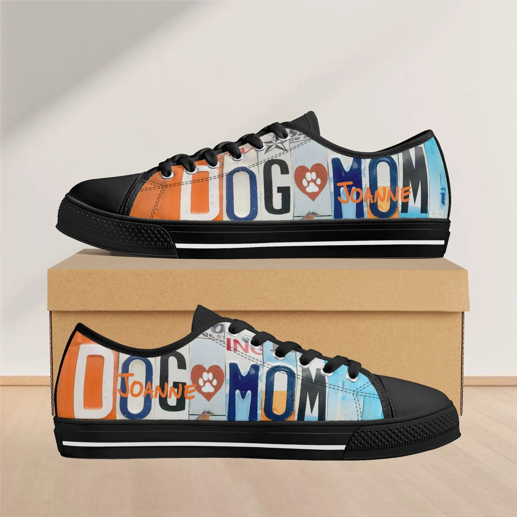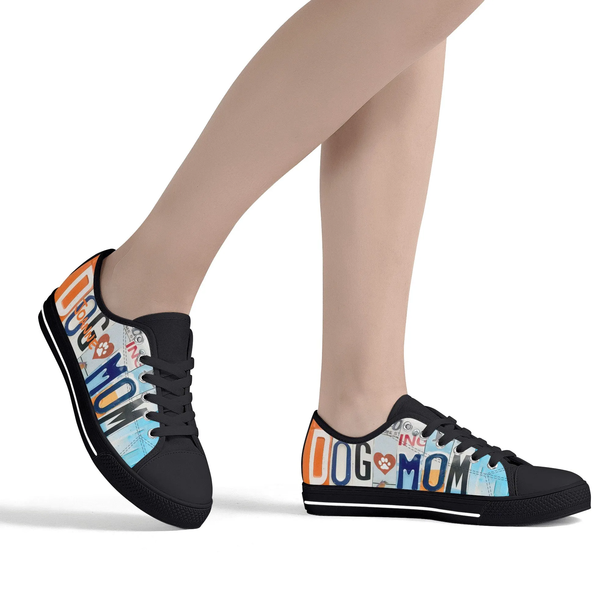 Dog Mom License Plate Shoes, Cute Dog Lover Sneakers, Women’s Low Top Canvas Shoes, Funny Dog Owner Gift, Pet Parent Apparel
