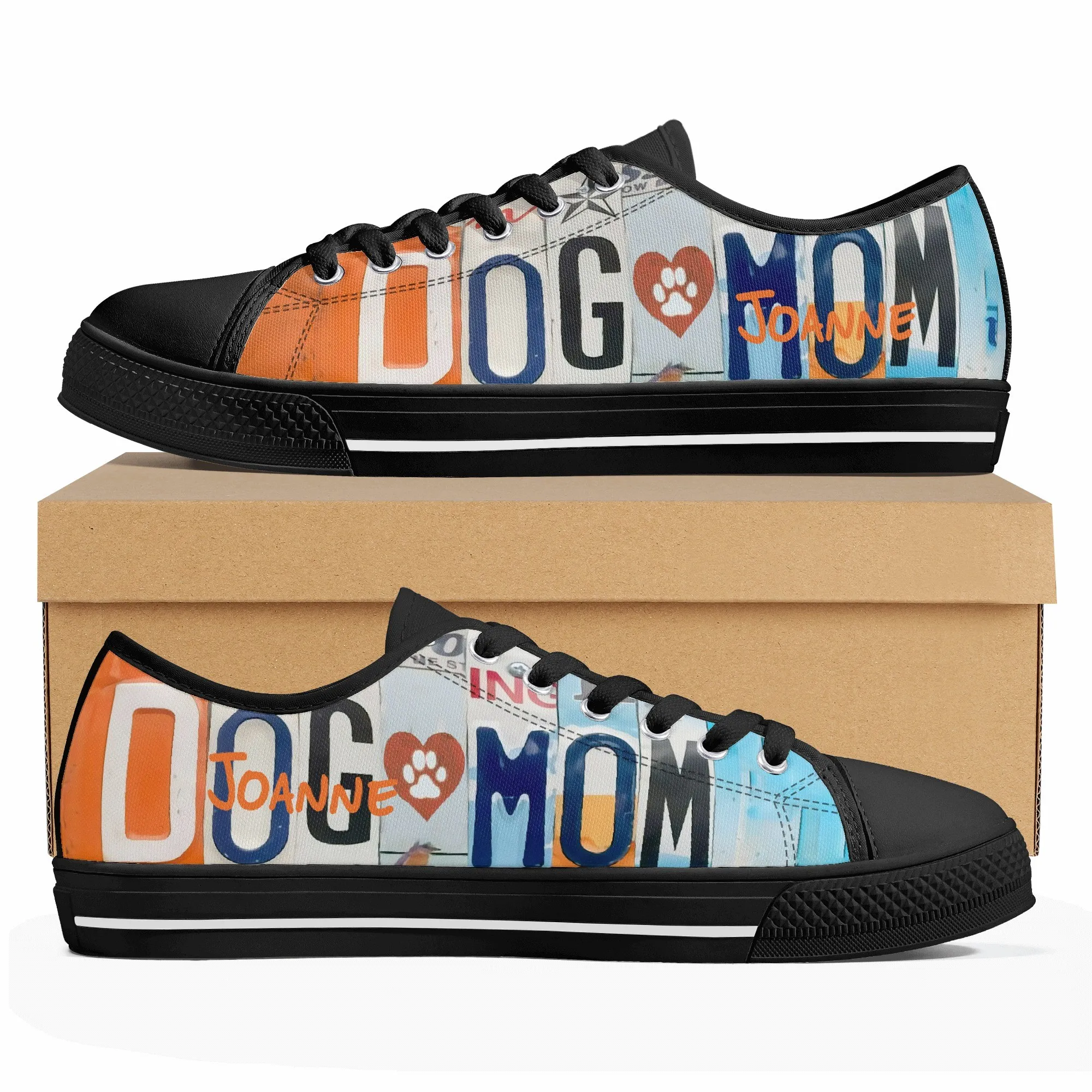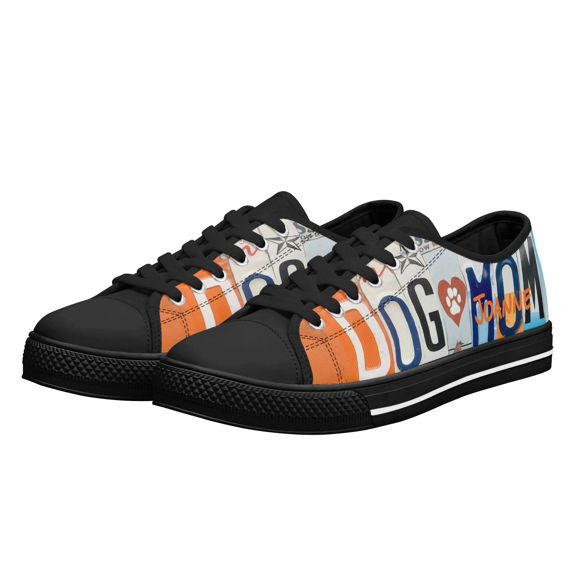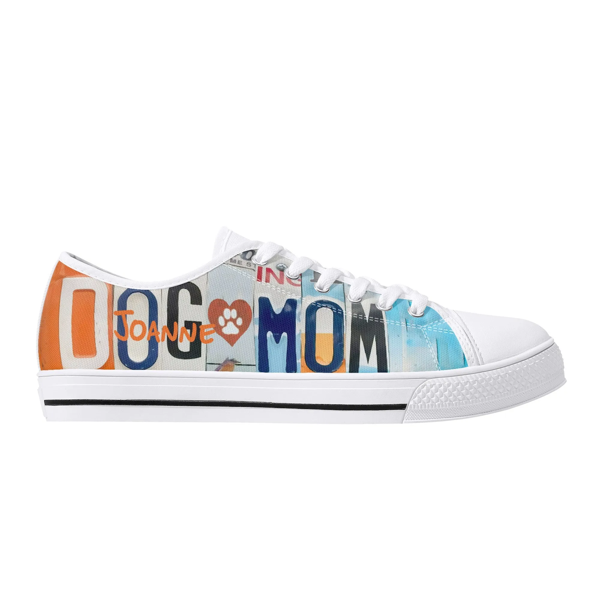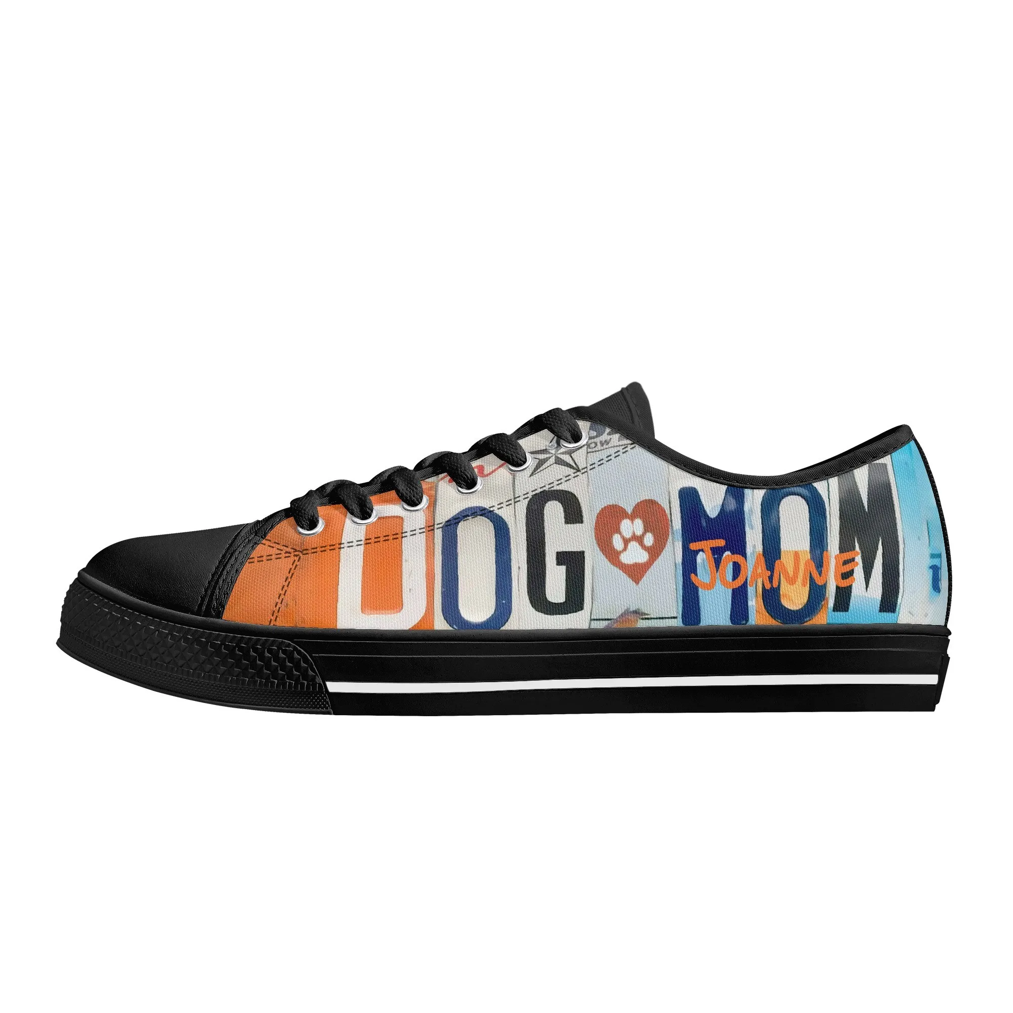 Dog Mom License Plate Shoes, Cute Dog Lover Sneakers, Women’s Low Top Canvas Shoes, Funny Dog Owner Gift, Pet Parent Apparel