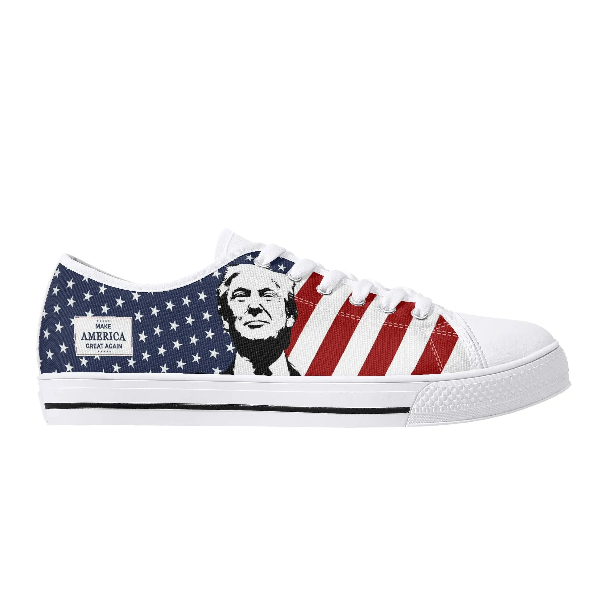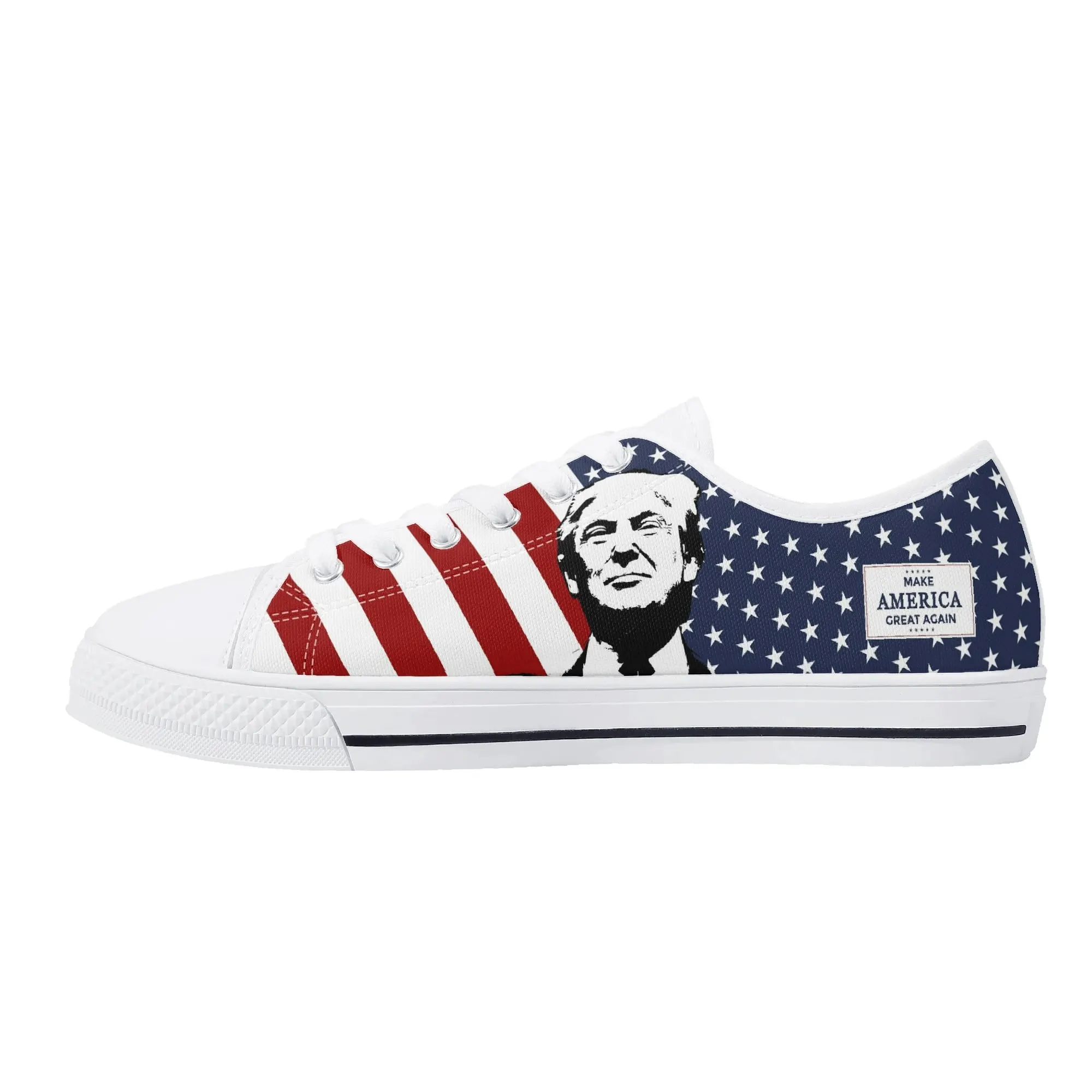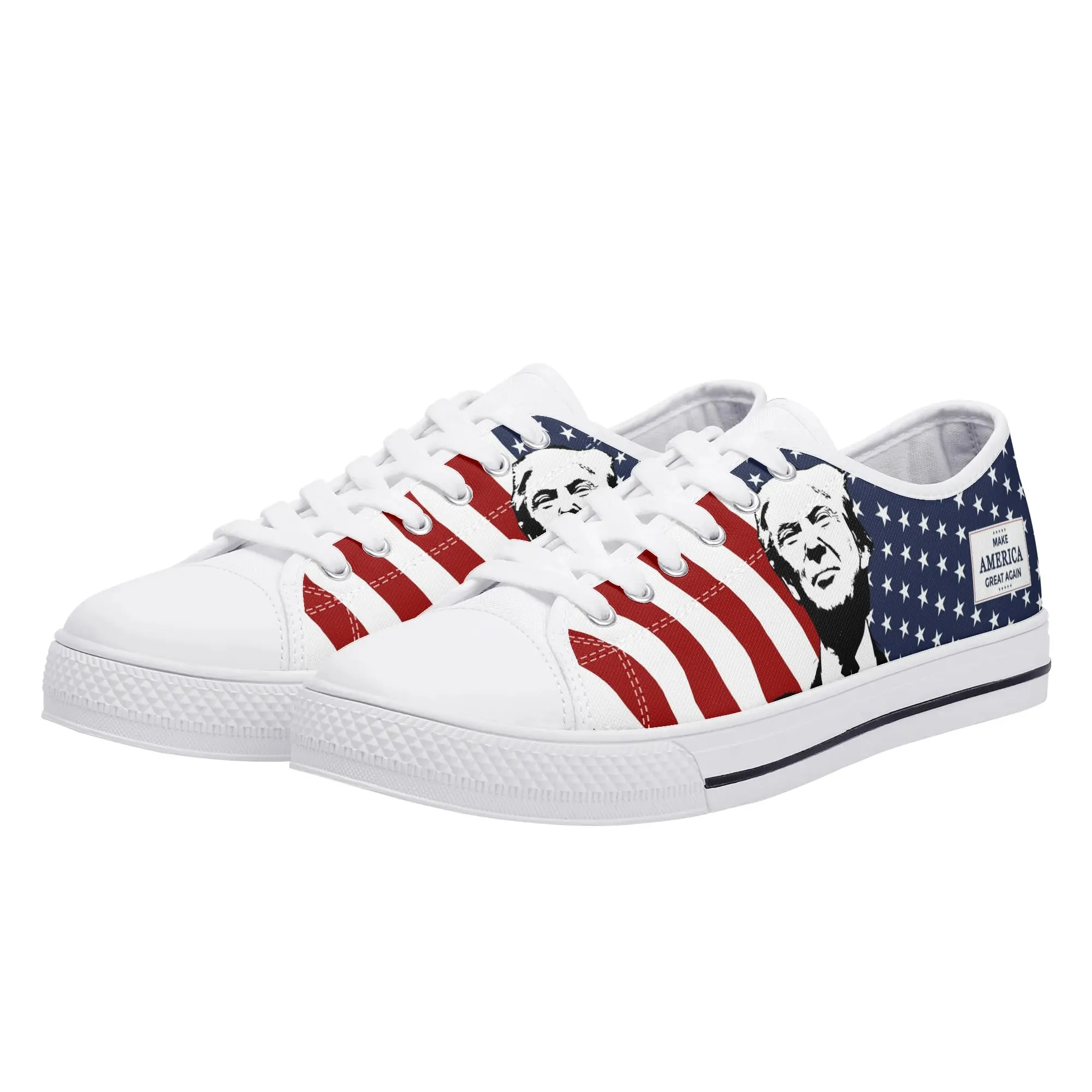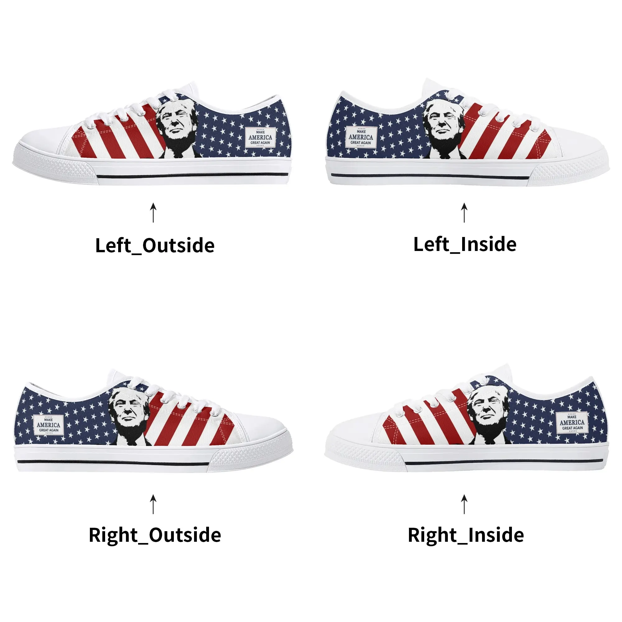Donald Trump MAGA Low Top Canvas Shoes, Patriotic US Flag Sneakers, Make America Great Again Kicks, Republican Political Rally Shoes