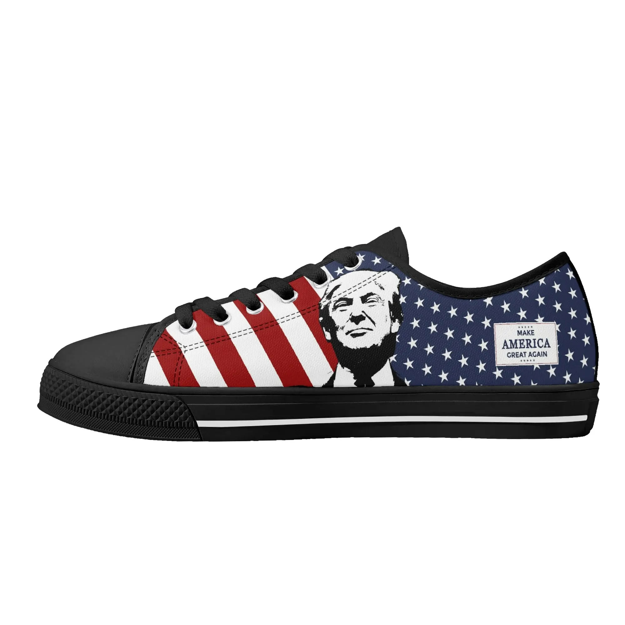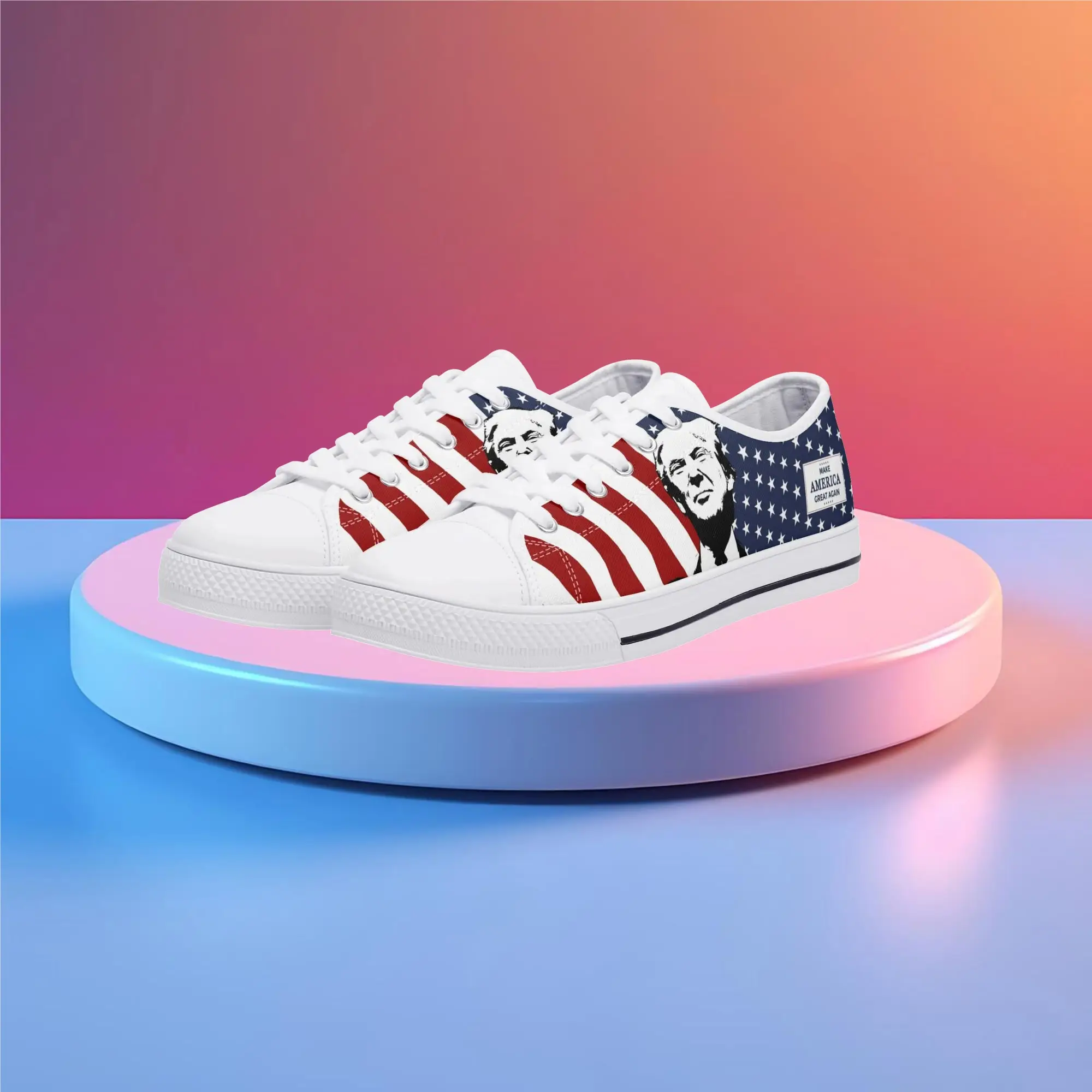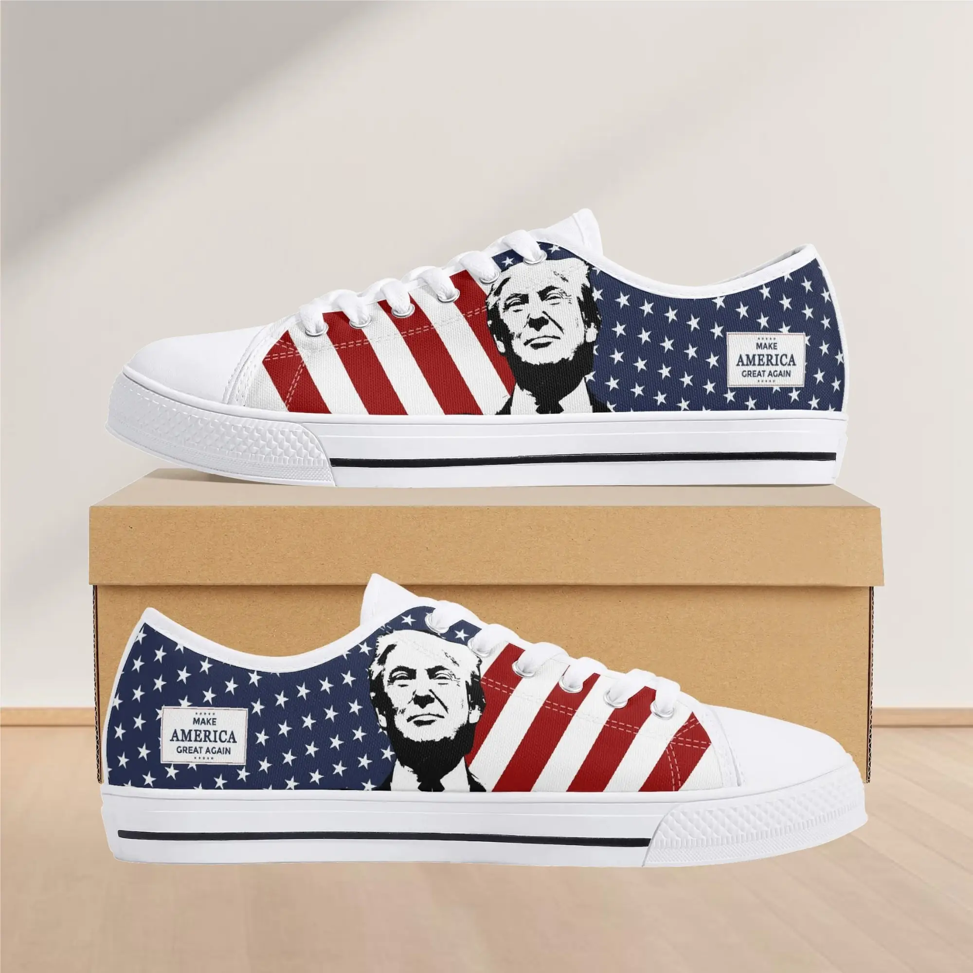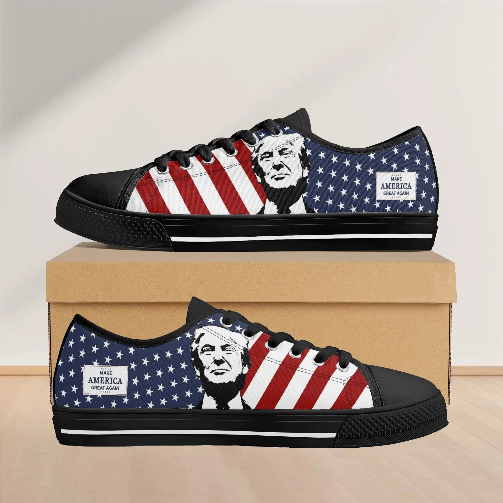 Donald Trump MAGA Low Top Canvas Shoes, Patriotic US Flag Sneakers, Make America Great Again Kicks, Republican Political Rally Shoes
