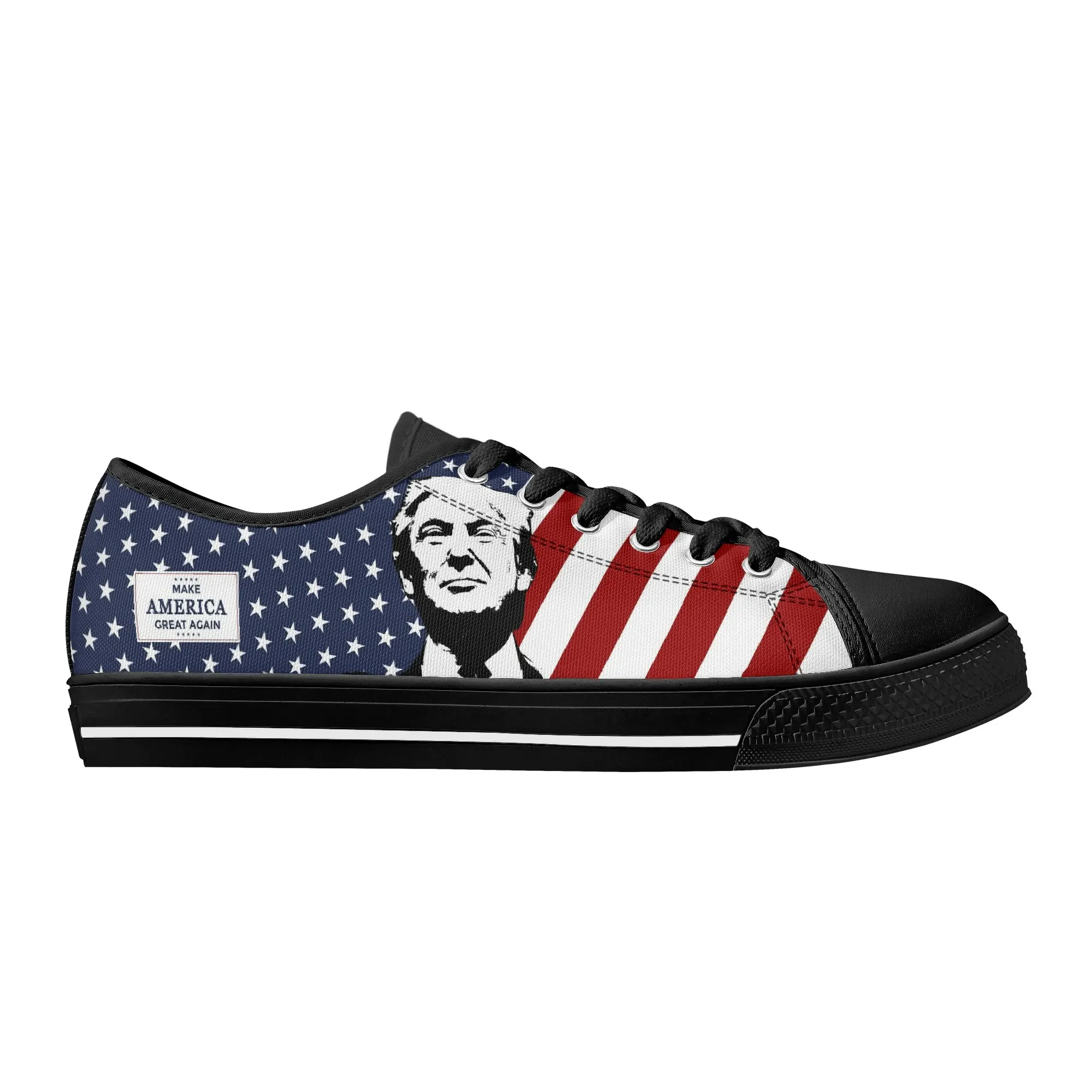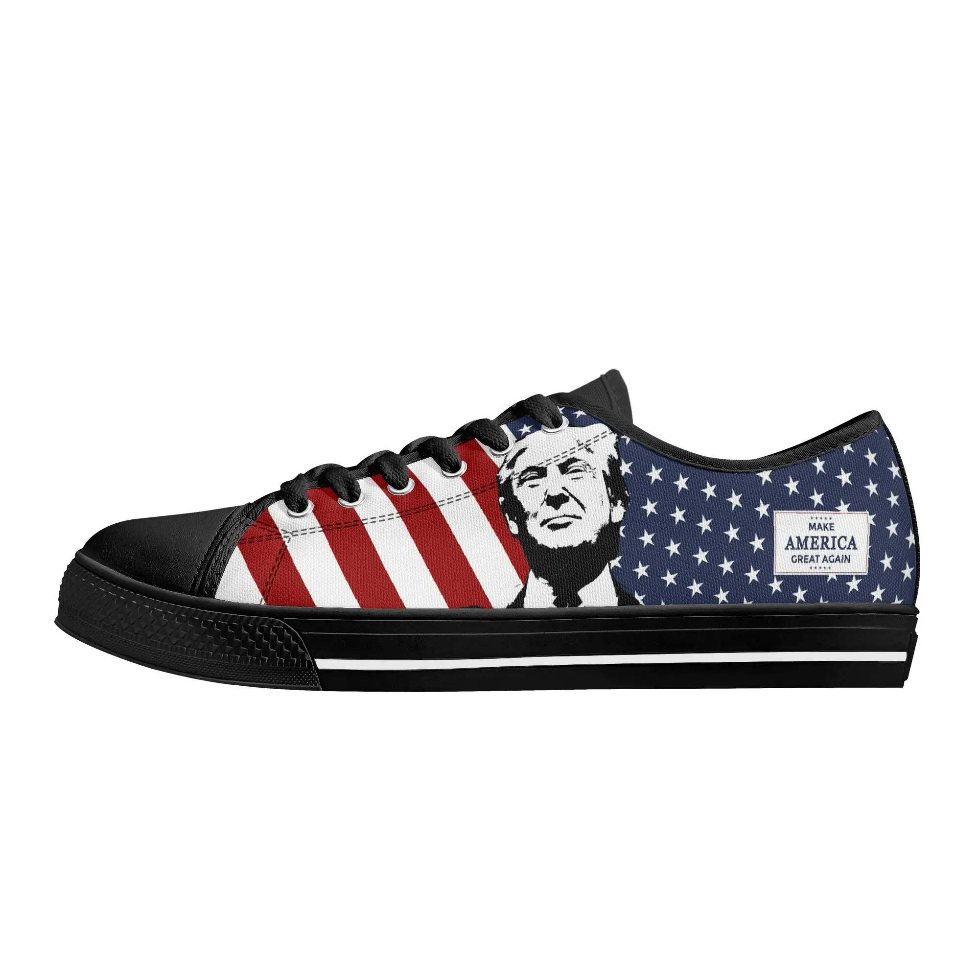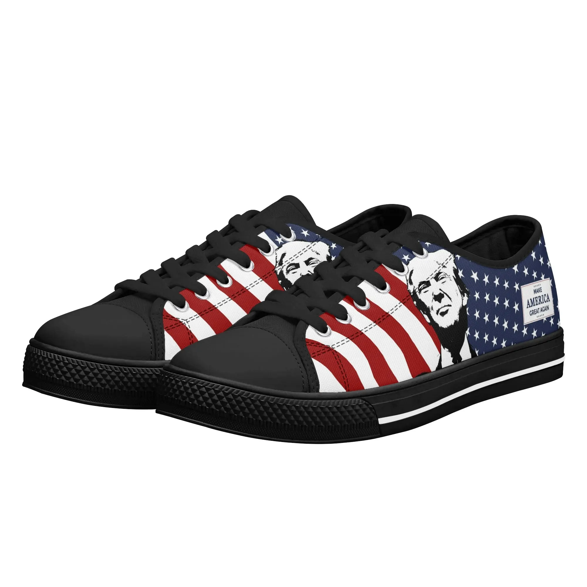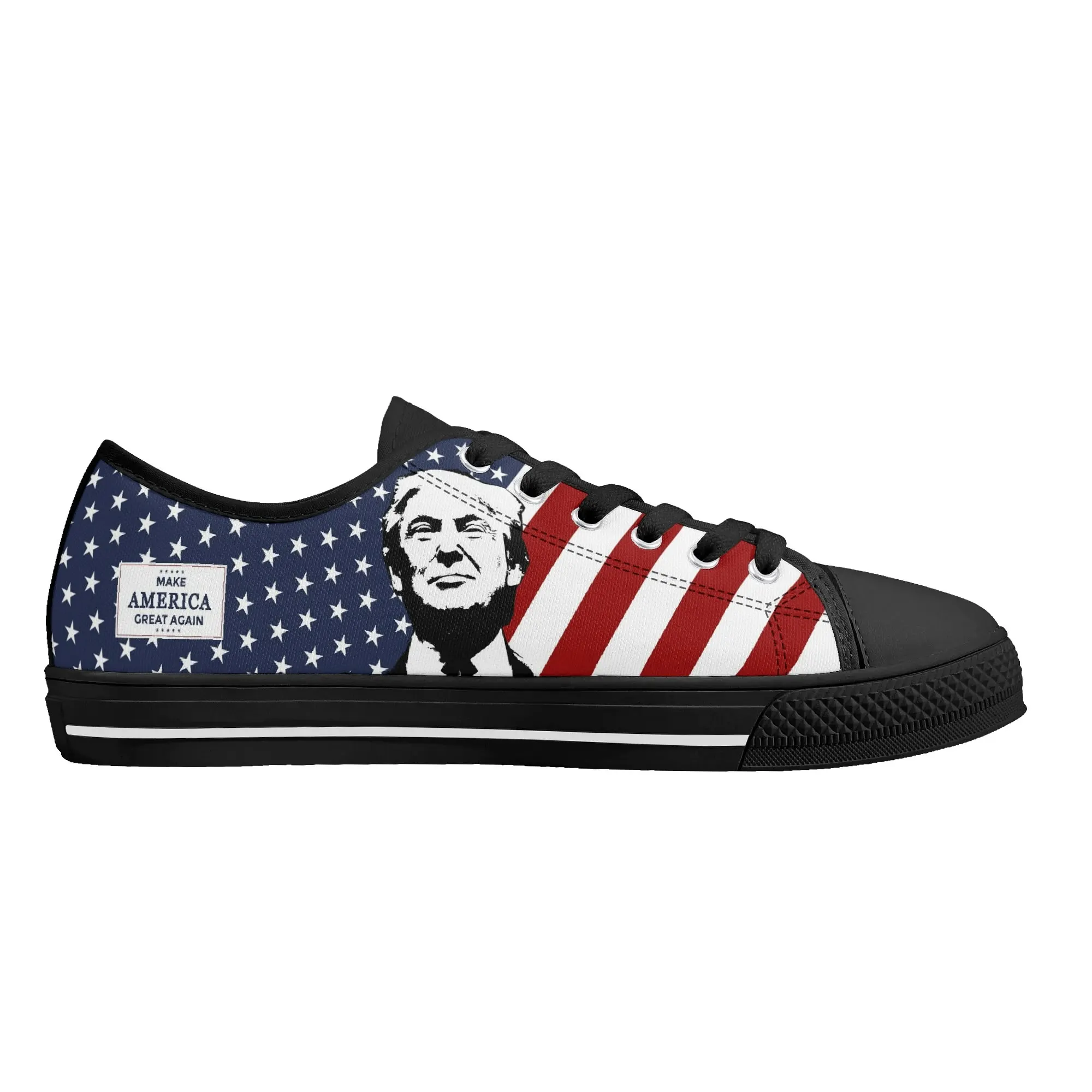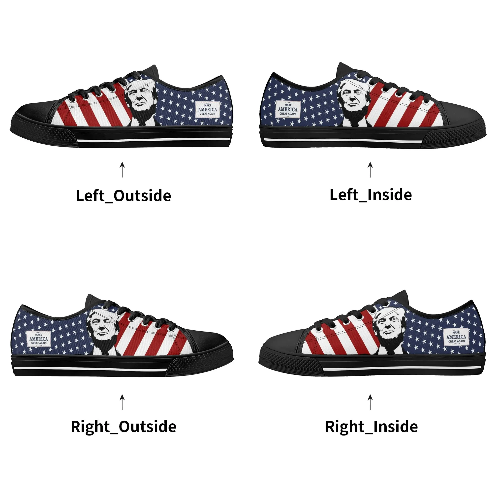 Donald Trump MAGA Low Top Canvas Shoes, Patriotic US Flag Sneakers, Make America Great Again Kicks, Republican Political Rally Shoes