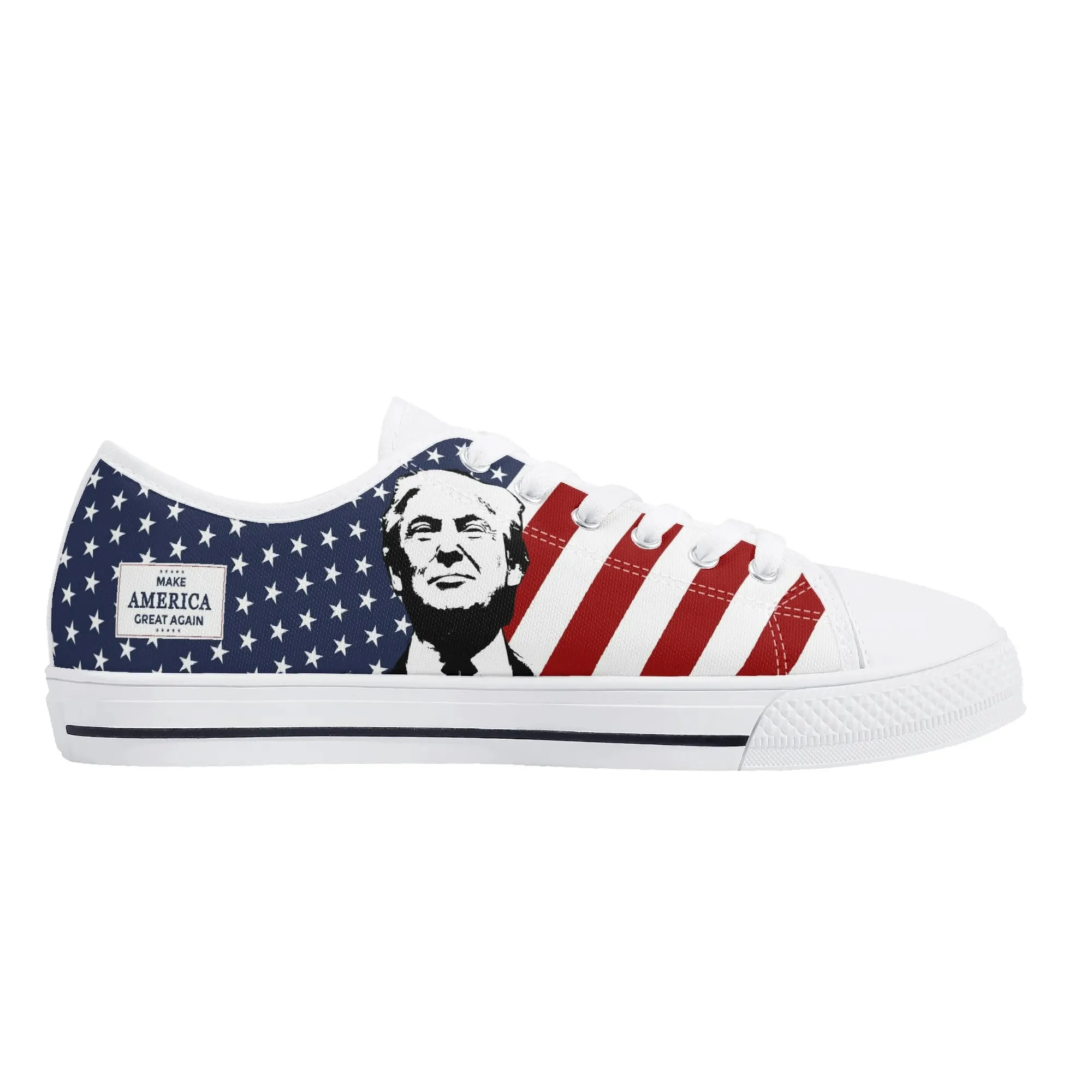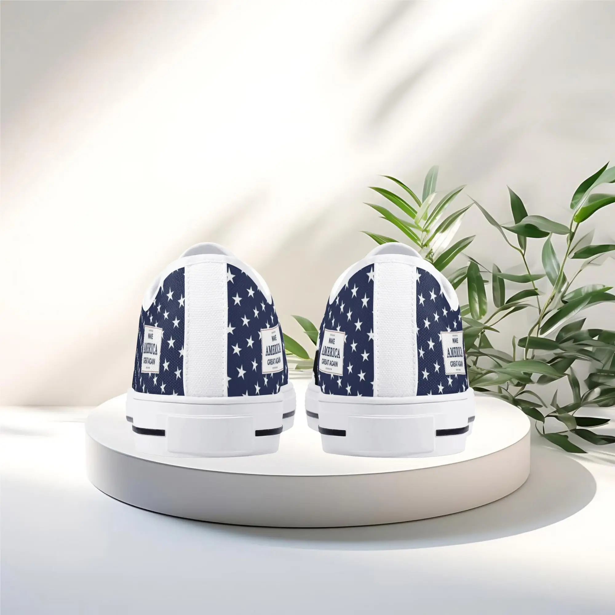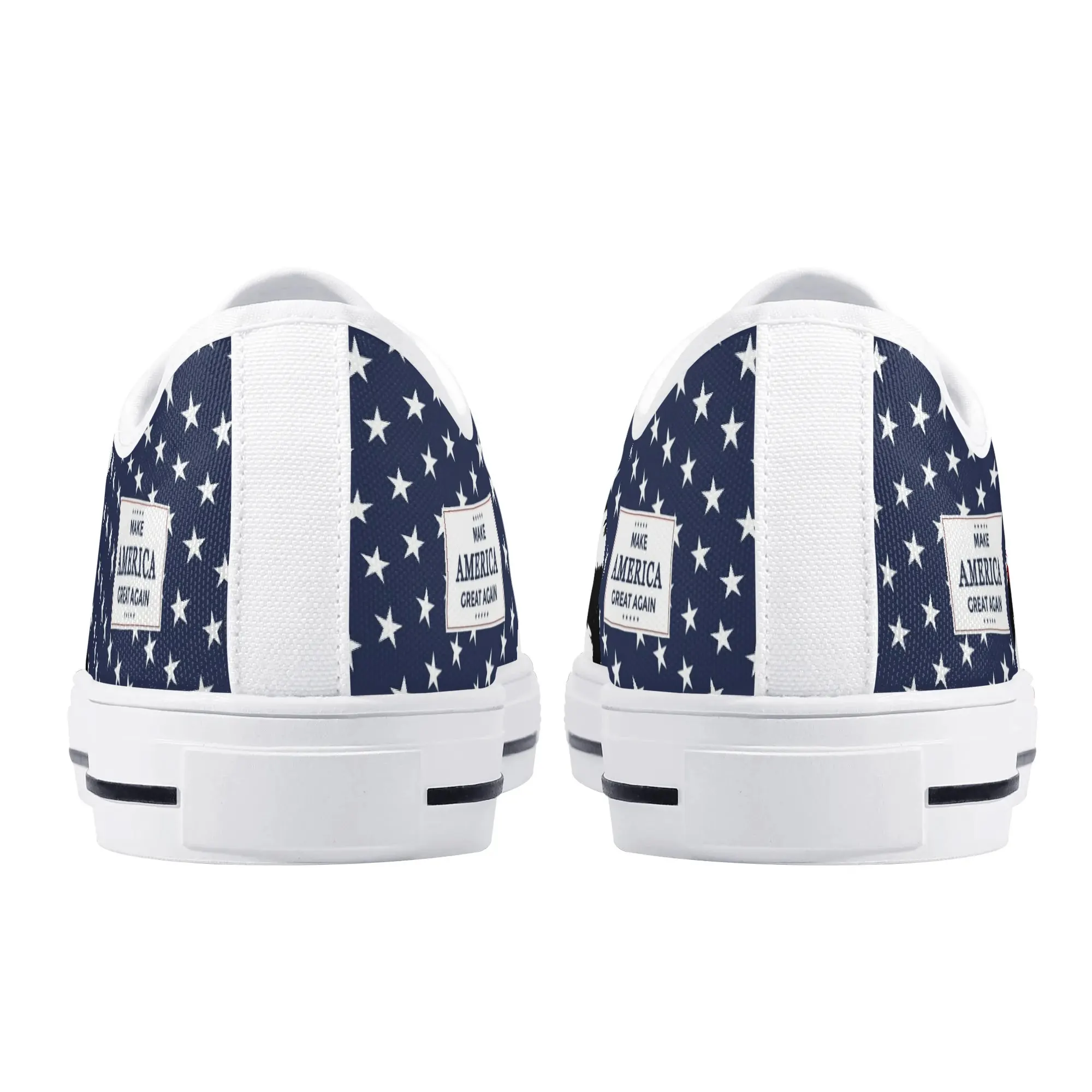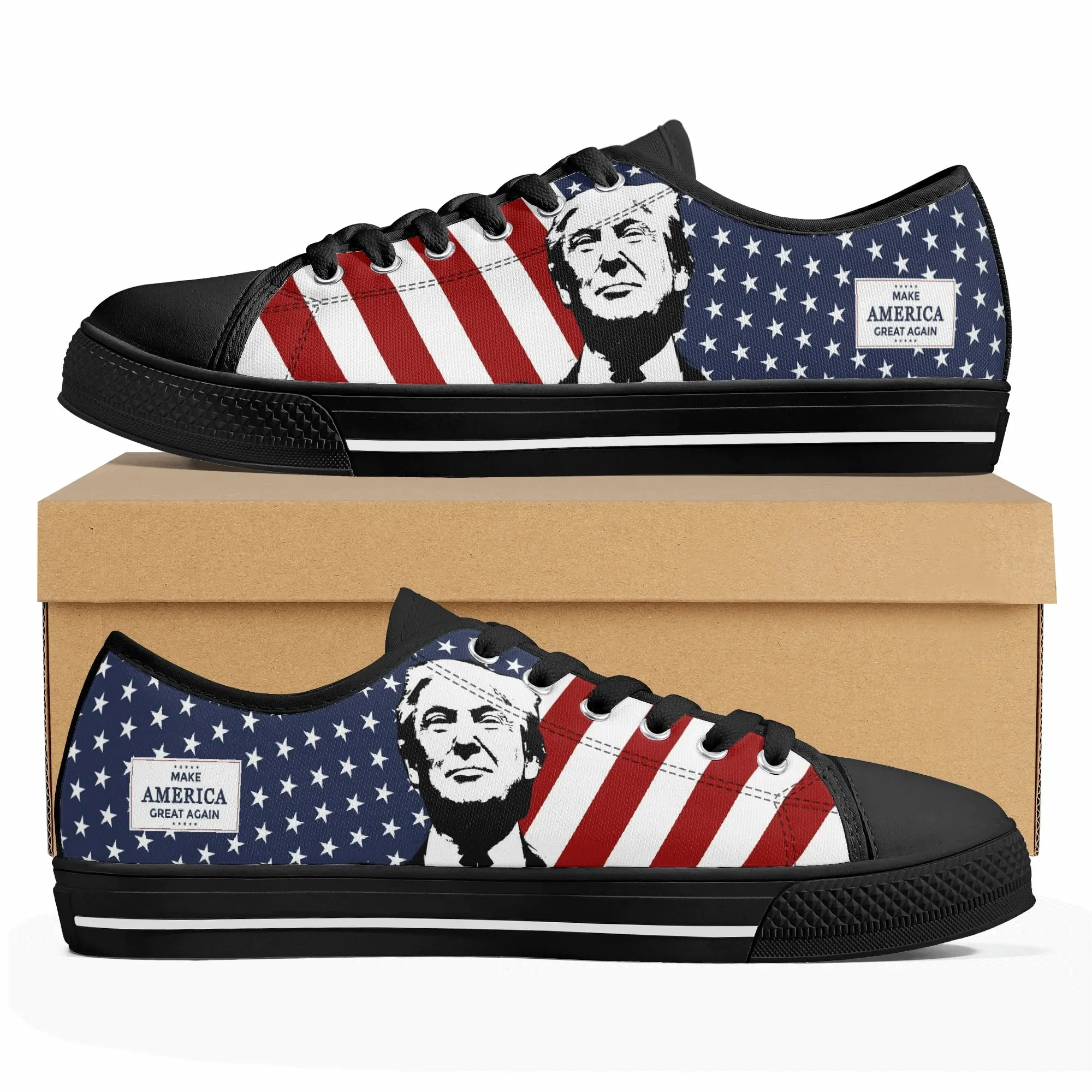 Donald Trump MAGA Low Top Canvas Shoes, Patriotic US Flag Sneakers, Make America Great Again Kicks, Republican Political Rally Shoes