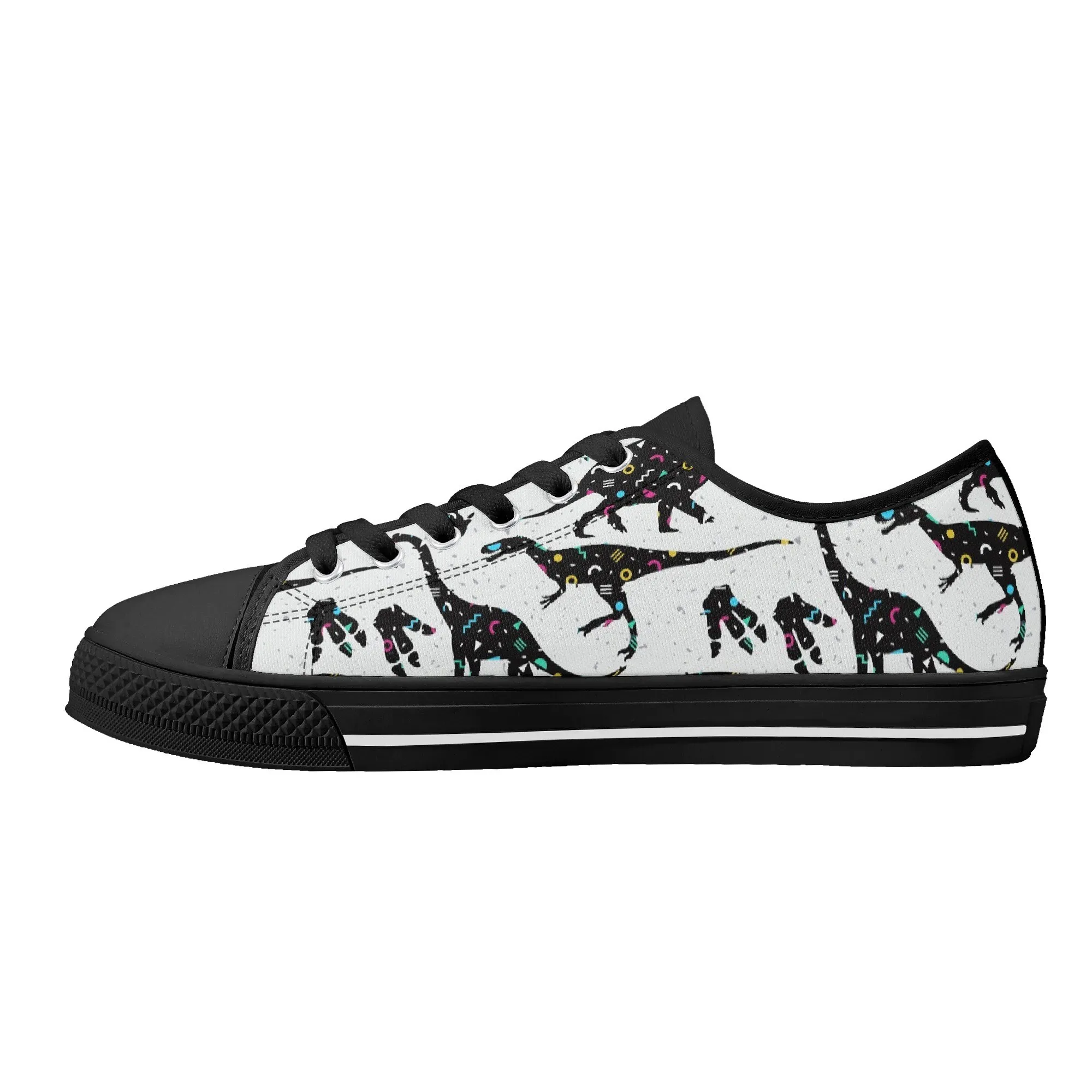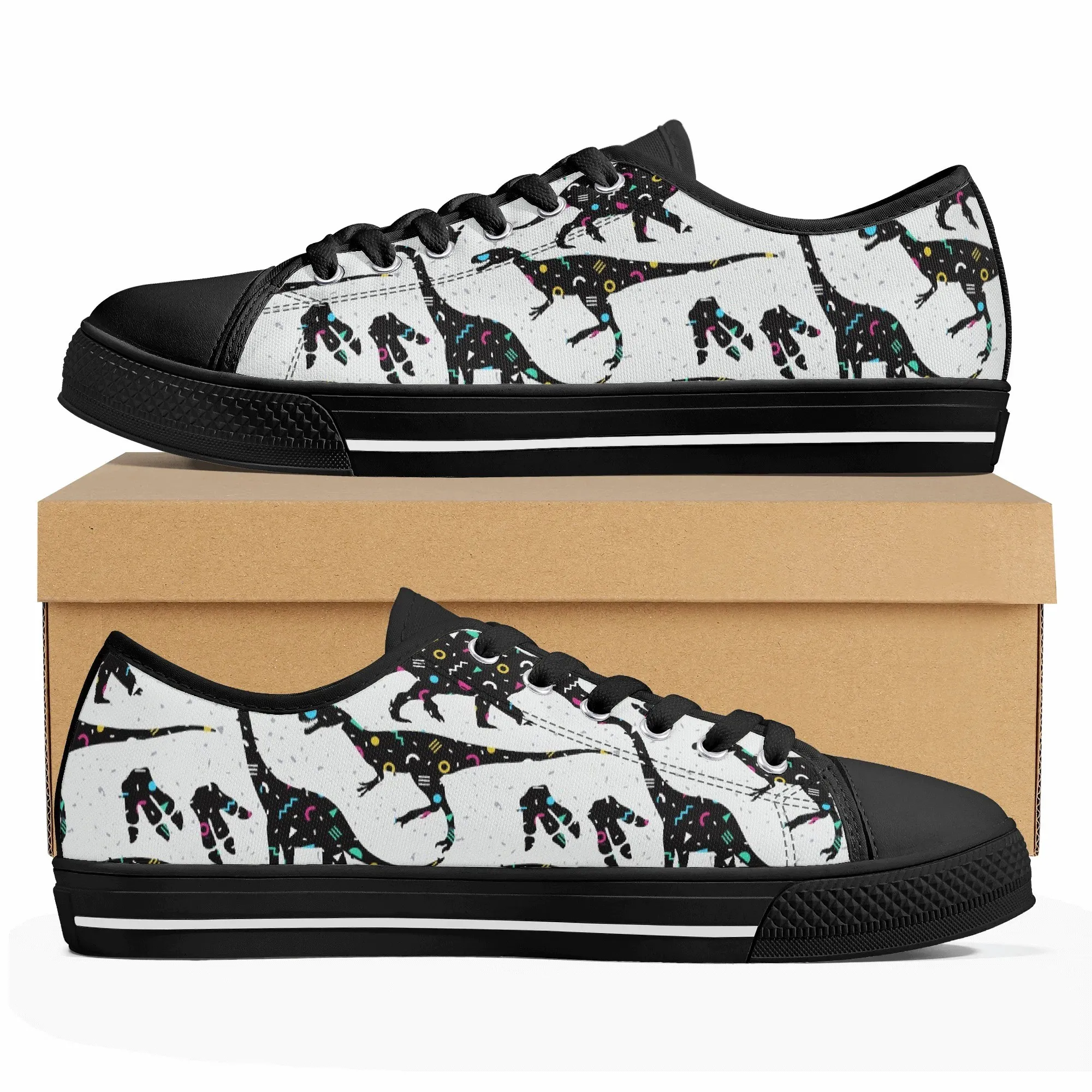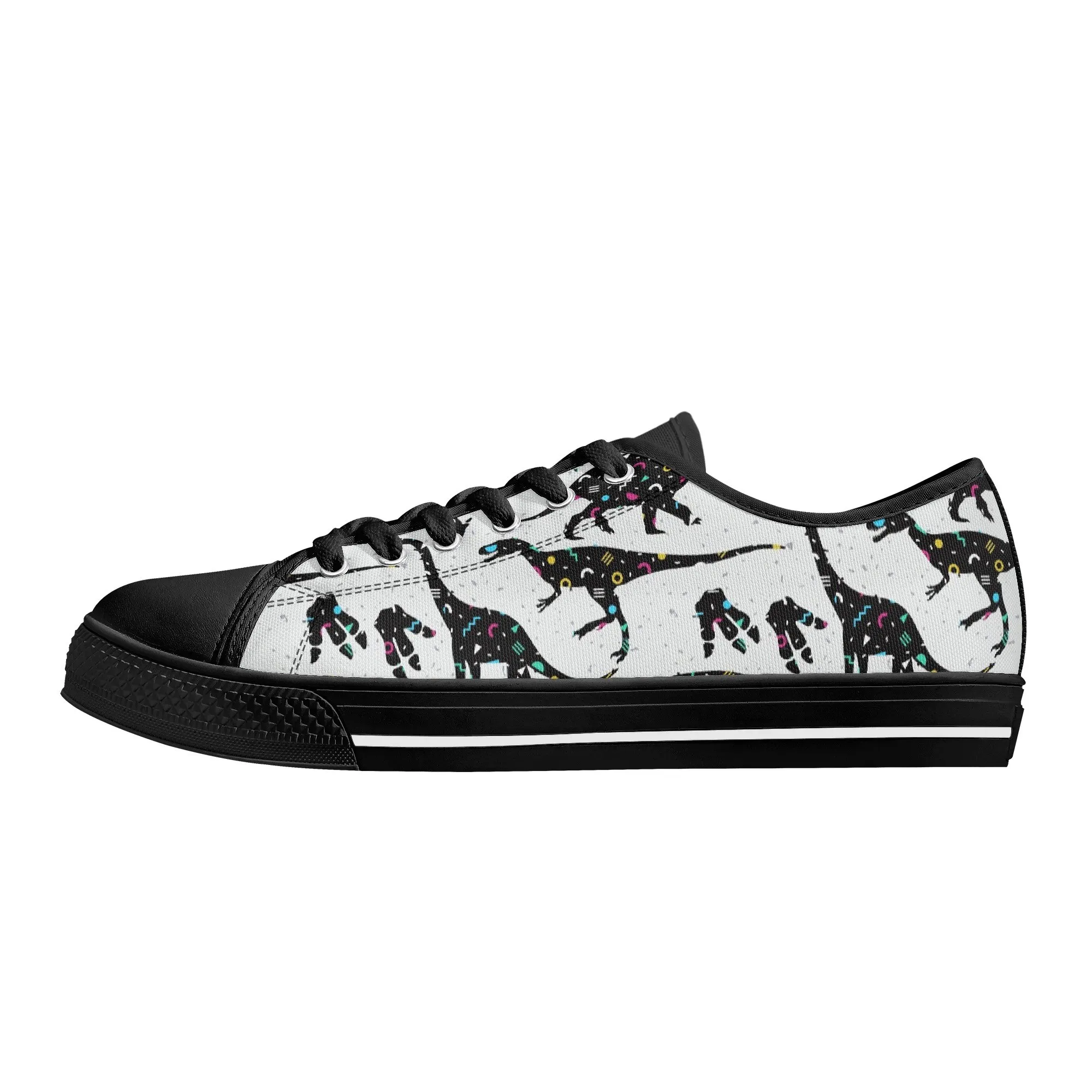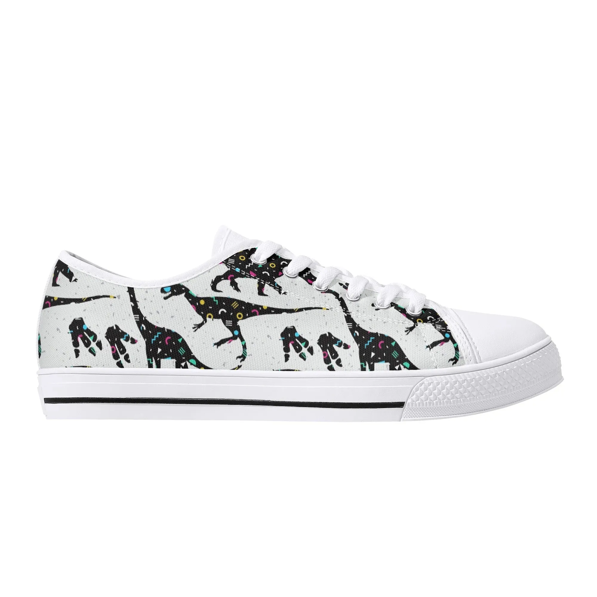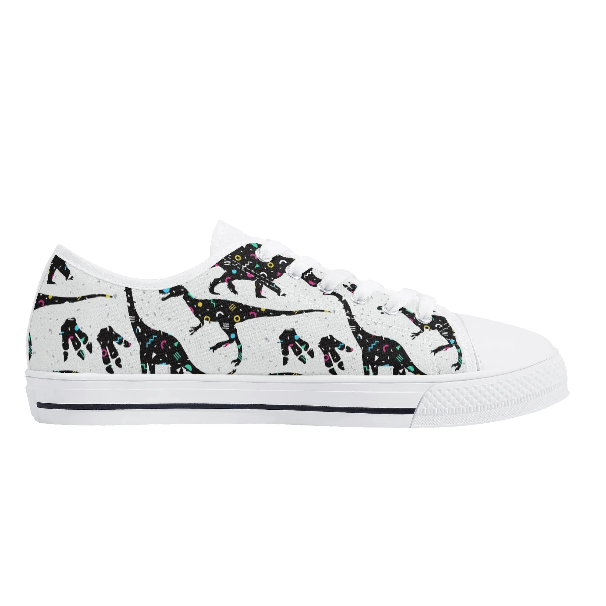 🌌 Take a cosmic journey back in time with these Galaxy Dinosaur Low Top Canvas Shoes! Featuring bold, black dinosaur silhouettes filled with a magical, colorful moon and star pattern, these sneakers are a captivating mix of prehistoric wonder and celestial aesthetic. The unique, eye-catching design paired with the comfortable platform sole makes them an ideal statement piece for everyday wear, perfect for stargazers, science lovers, and anyone with a love for bold, artistic footwear.