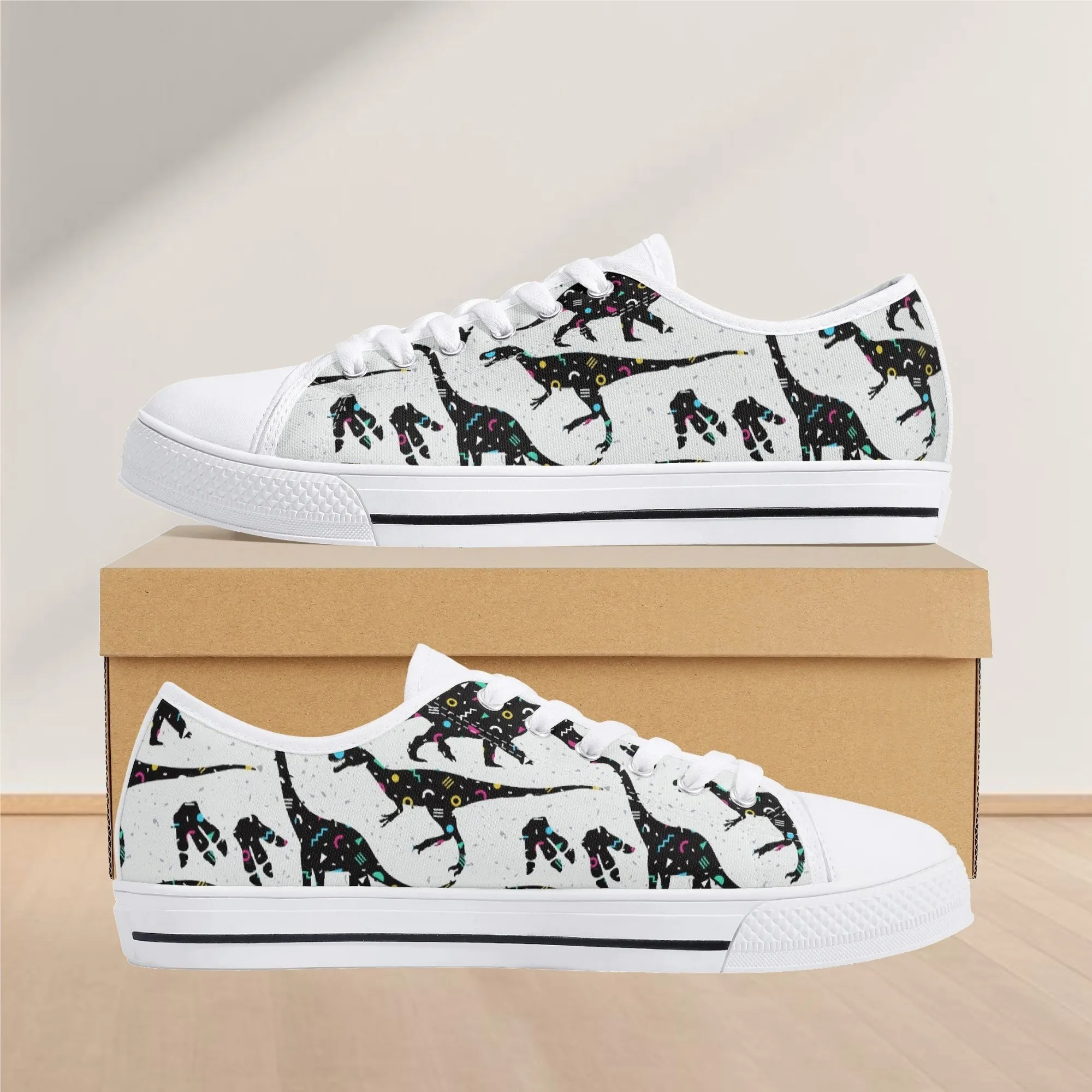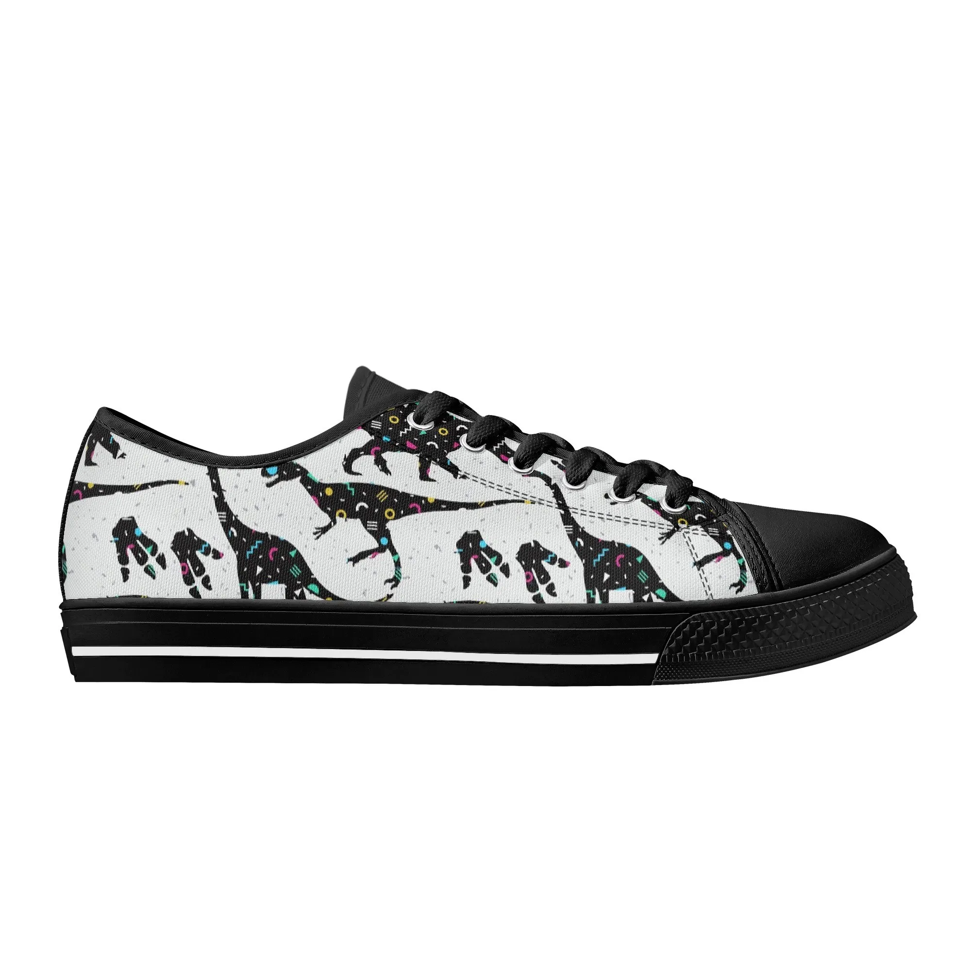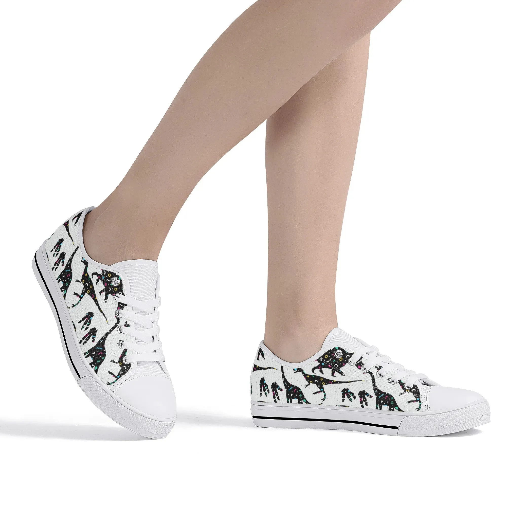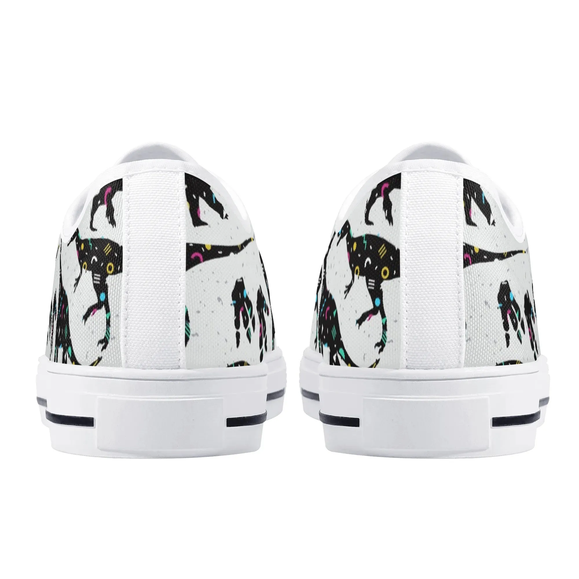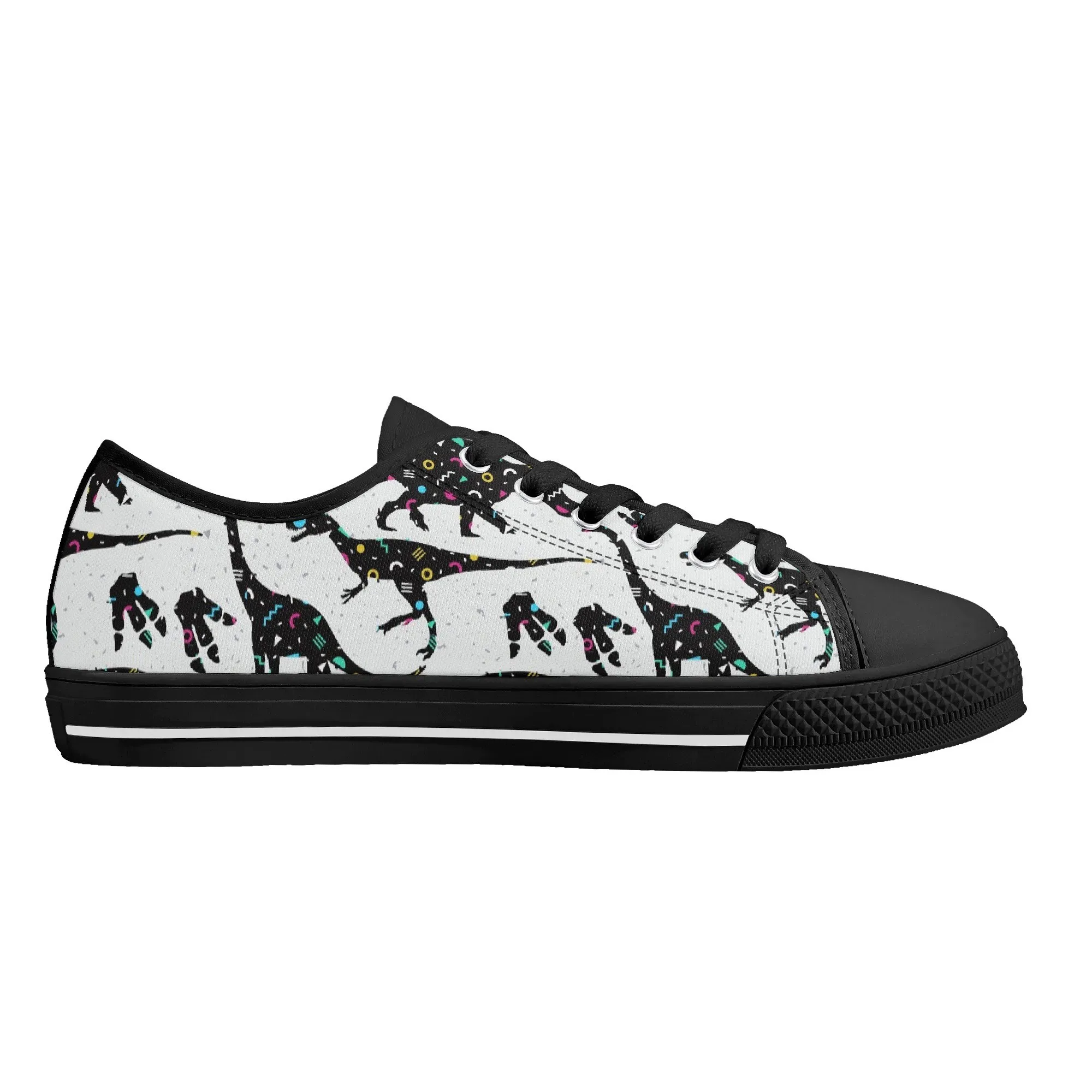 🌌 Take a cosmic journey back in time with these Galaxy Dinosaur Low Top Canvas Shoes! Featuring bold, black dinosaur silhouettes filled with a magical, colorful moon and star pattern, these sneakers are a captivating mix of prehistoric wonder and celestial aesthetic. The unique, eye-catching design paired with the comfortable platform sole makes them an ideal statement piece for everyday wear, perfect for stargazers, science lovers, and anyone with a love for bold, artistic footwear.