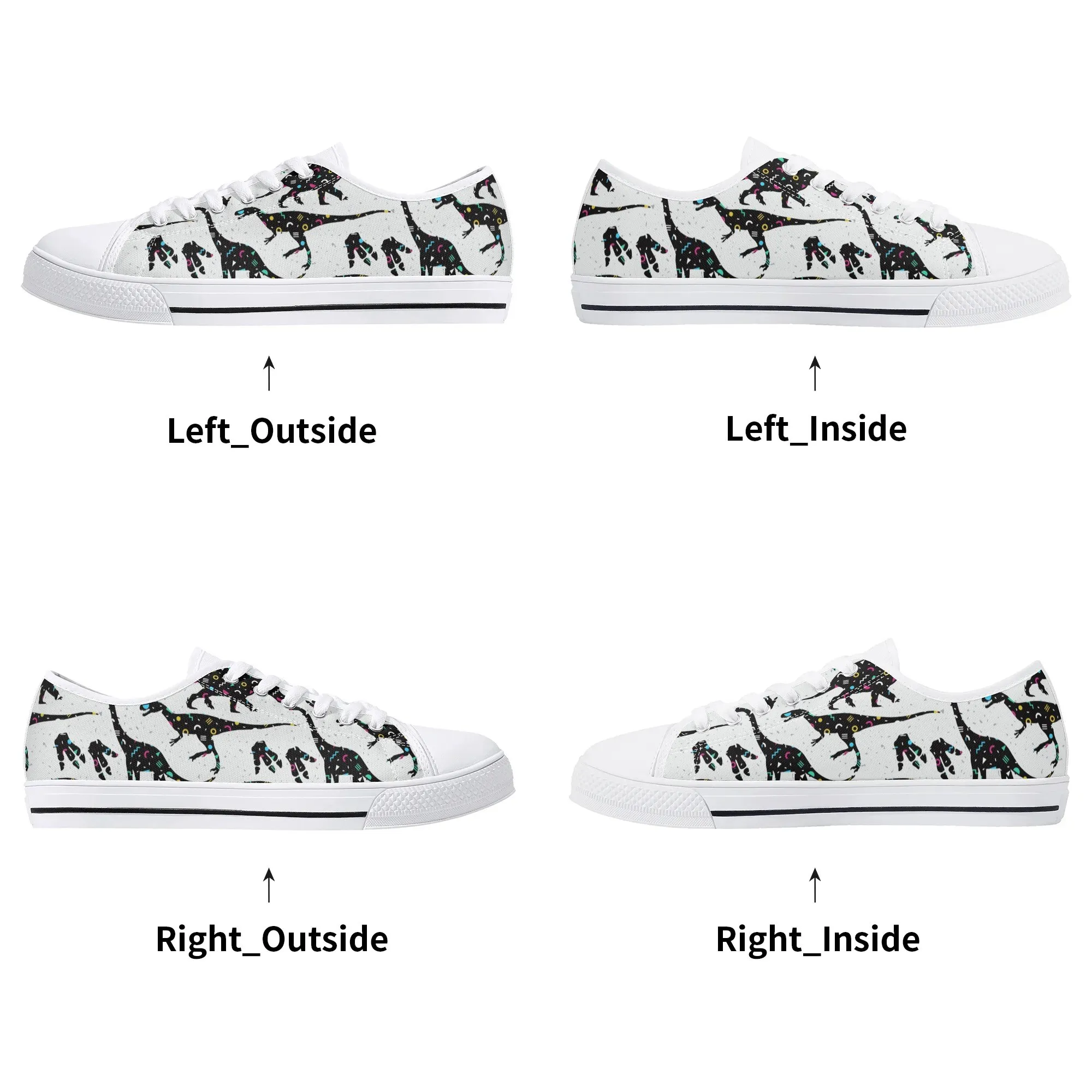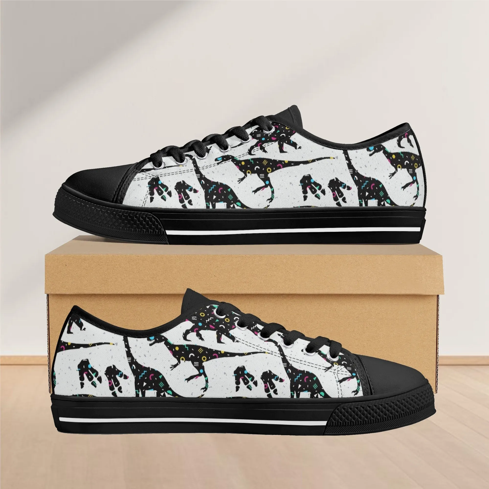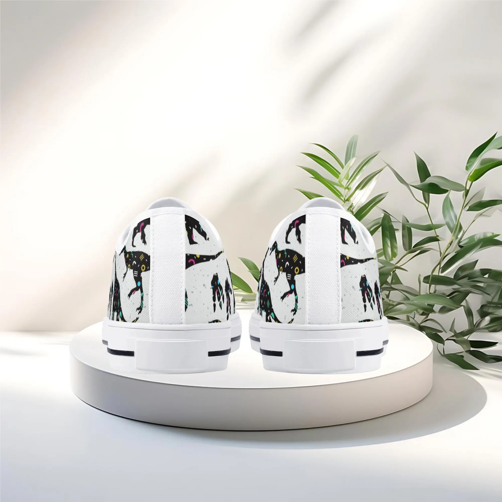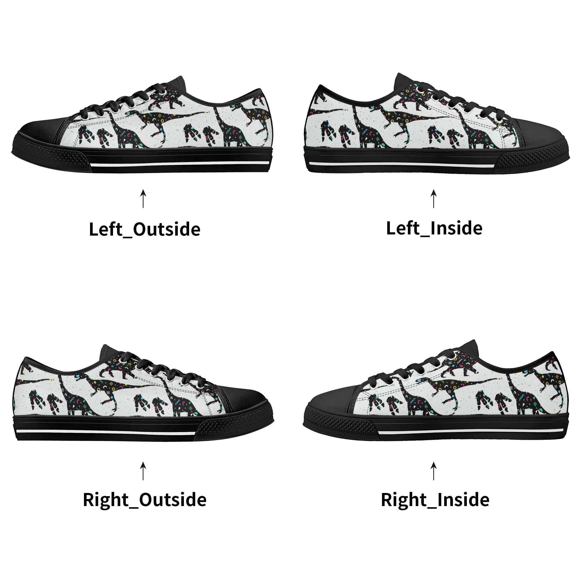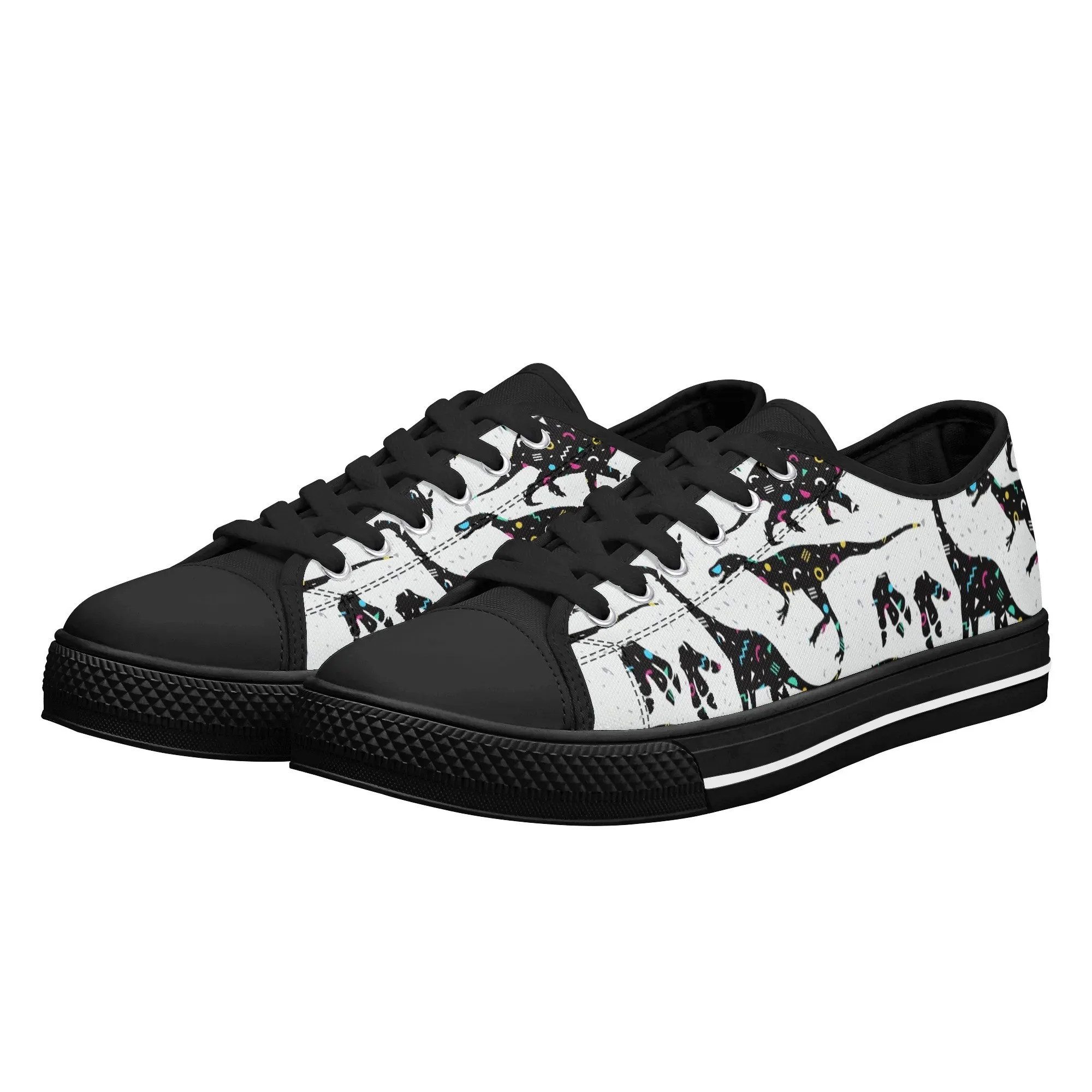 🌌 Take a cosmic journey back in time with these Galaxy Dinosaur Low Top Canvas Shoes! Featuring bold, black dinosaur silhouettes filled with a magical, colorful moon and star pattern, these sneakers are a captivating mix of prehistoric wonder and celestial aesthetic. The unique, eye-catching design paired with the comfortable platform sole makes them an ideal statement piece for everyday wear, perfect for stargazers, science lovers, and anyone with a love for bold, artistic footwear.