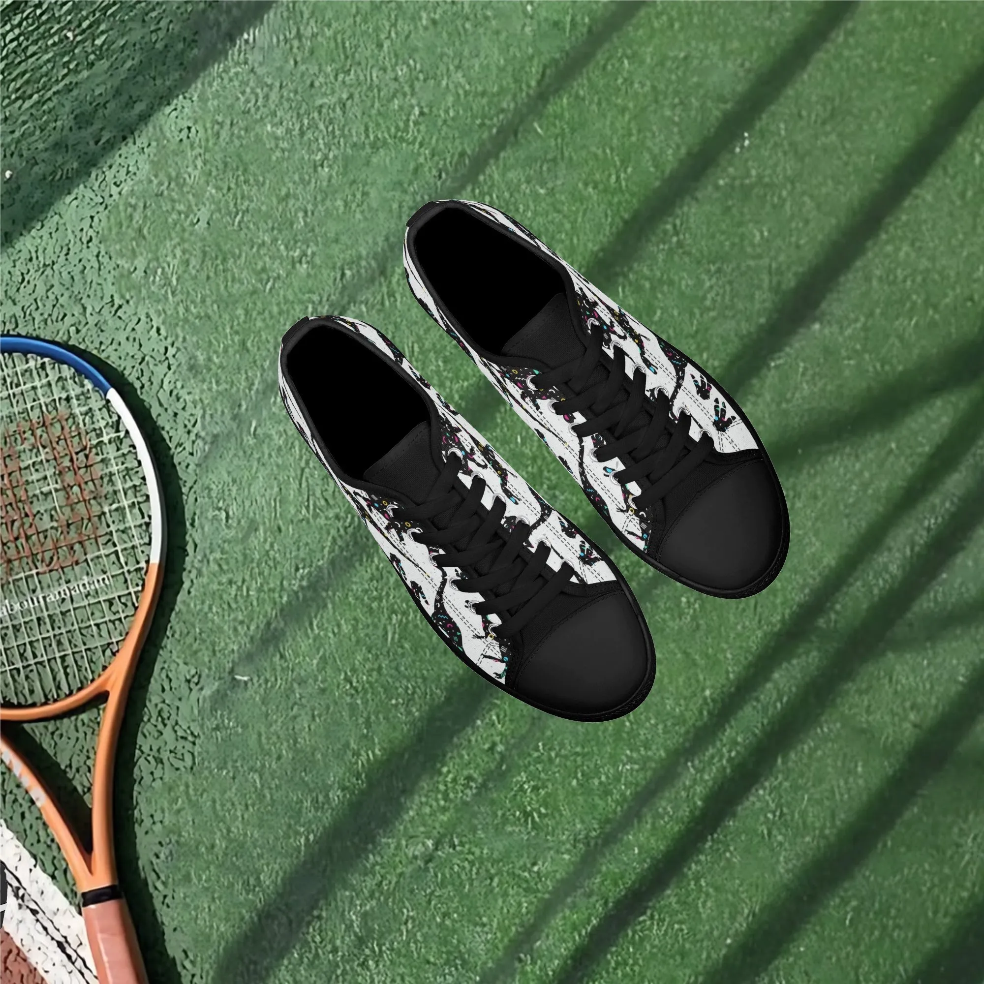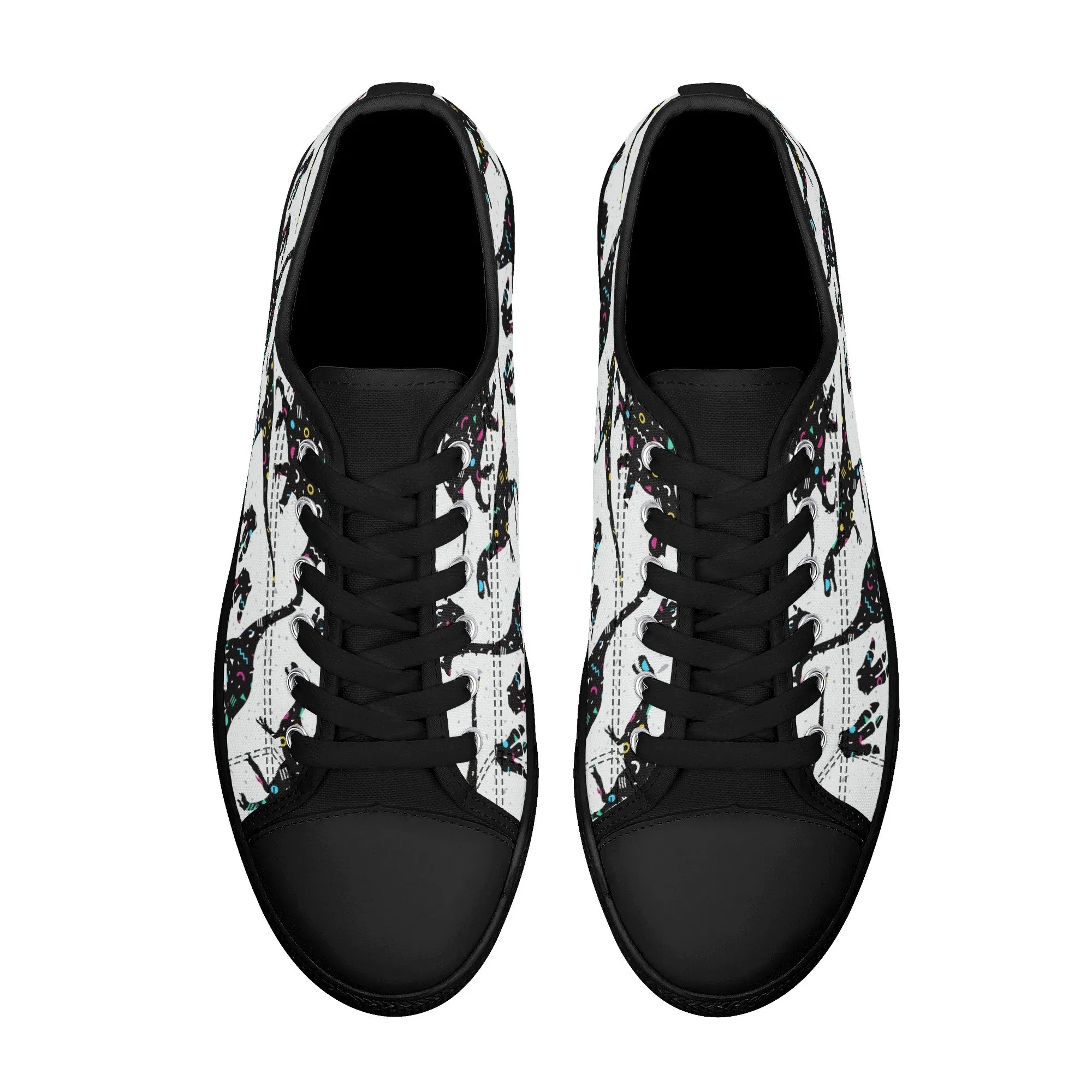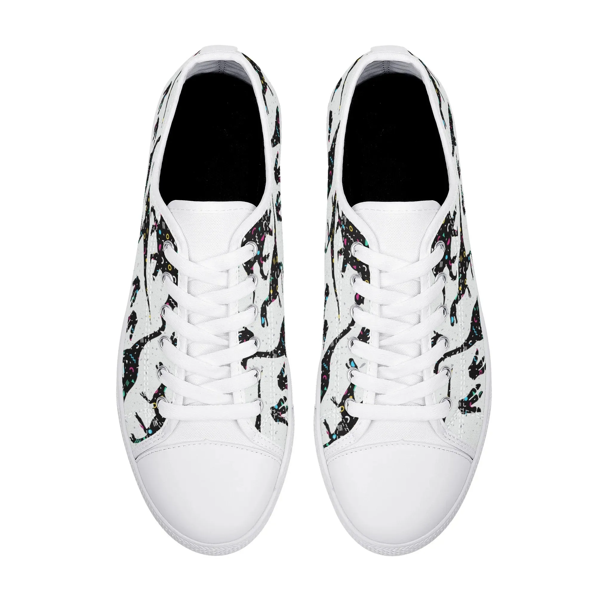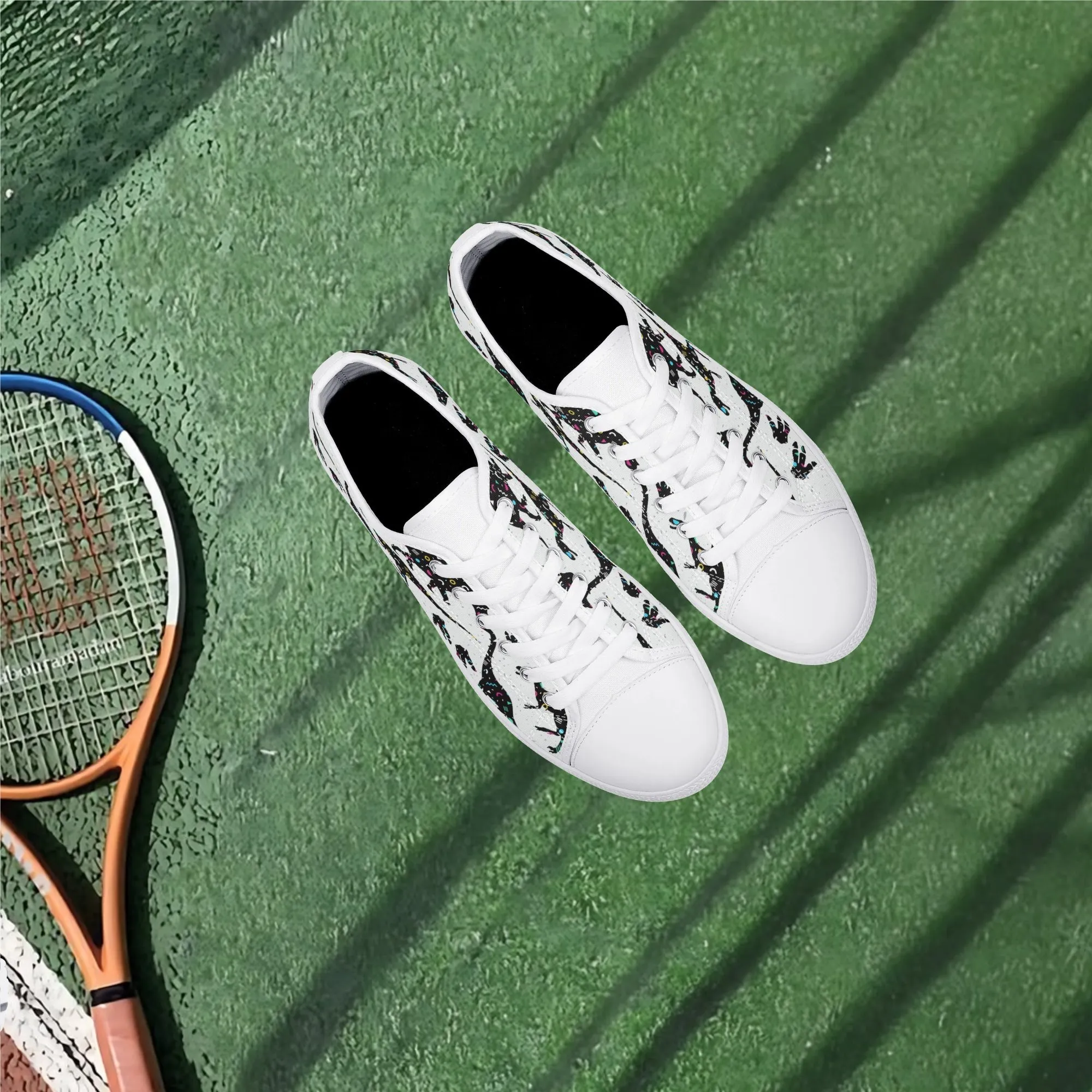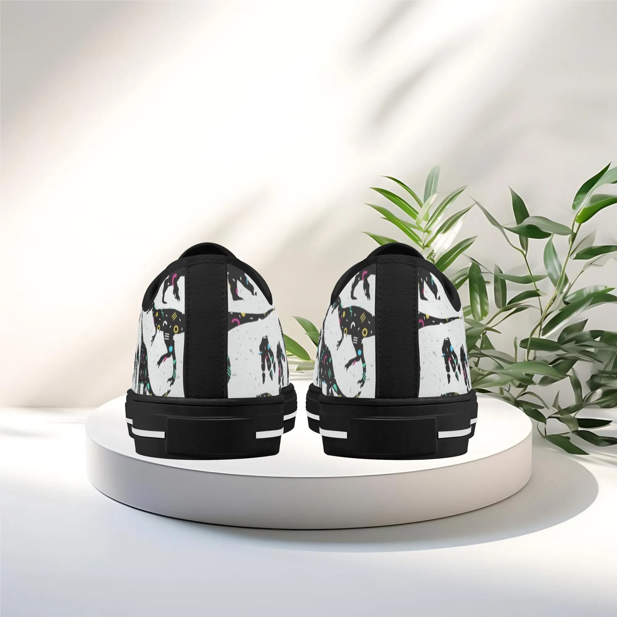 🌌 Take a cosmic journey back in time with these Galaxy Dinosaur Low Top Canvas Shoes! Featuring bold, black dinosaur silhouettes filled with a magical, colorful moon and star pattern, these sneakers are a captivating mix of prehistoric wonder and celestial aesthetic. The unique, eye-catching design paired with the comfortable platform sole makes them an ideal statement piece for everyday wear, perfect for stargazers, science lovers, and anyone with a love for bold, artistic footwear.