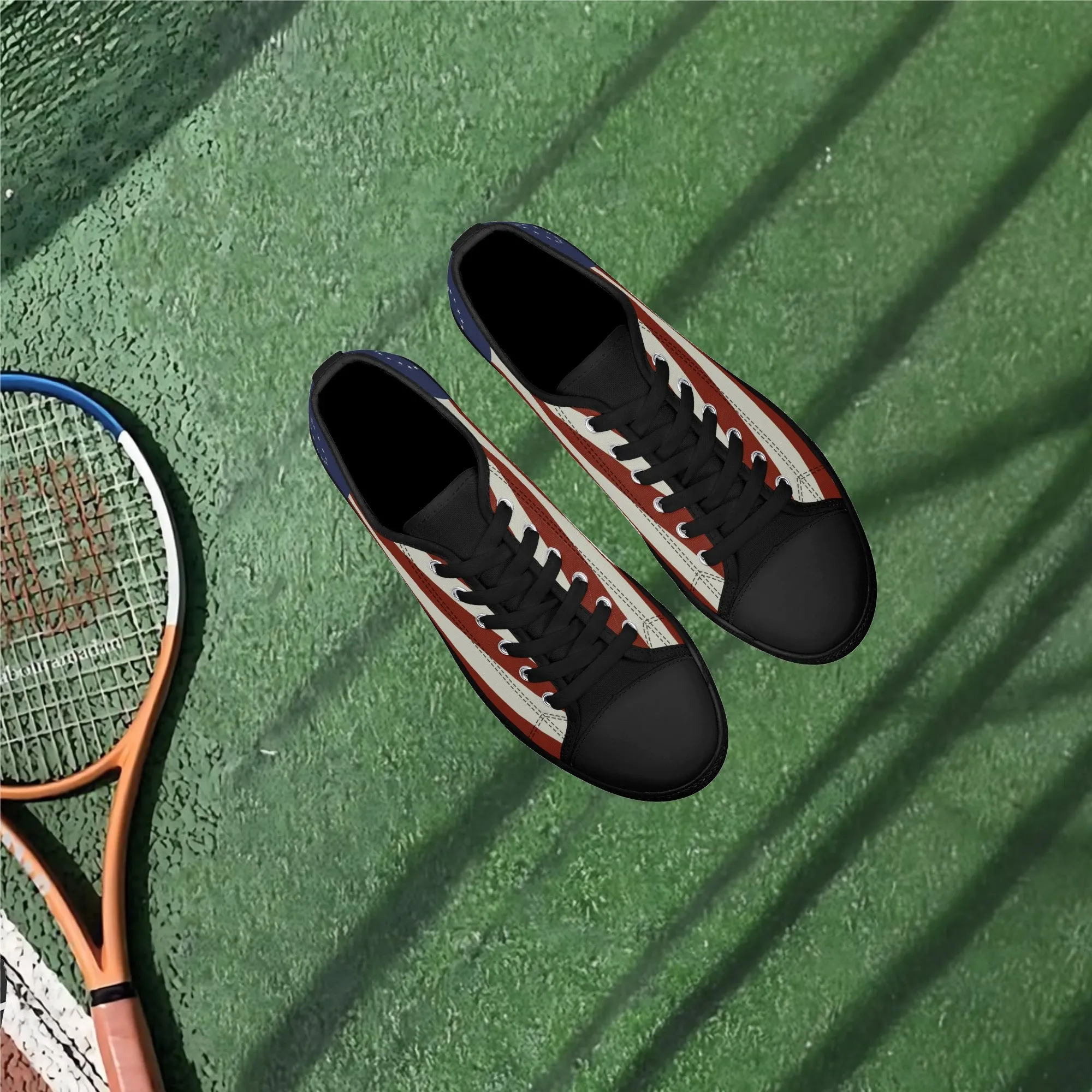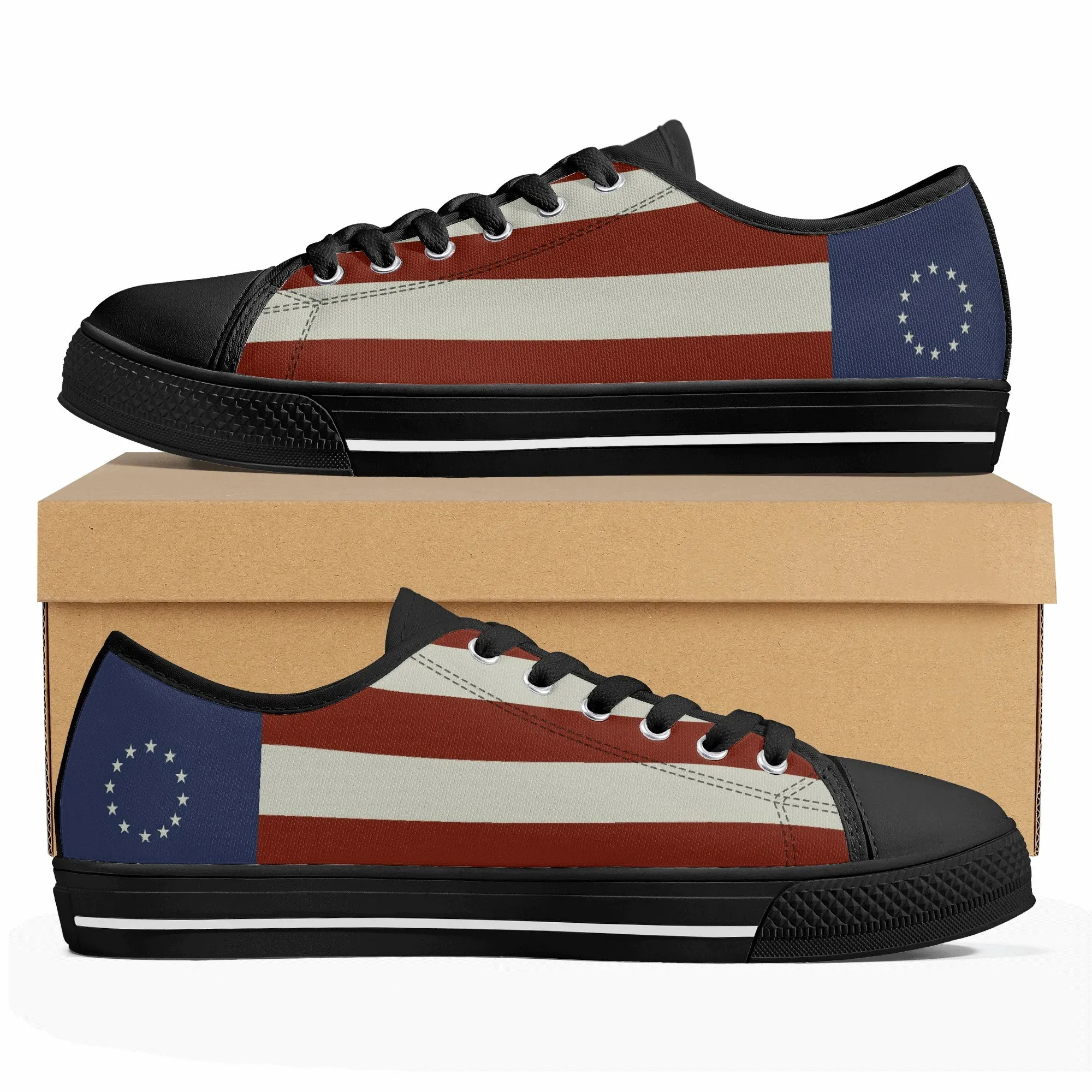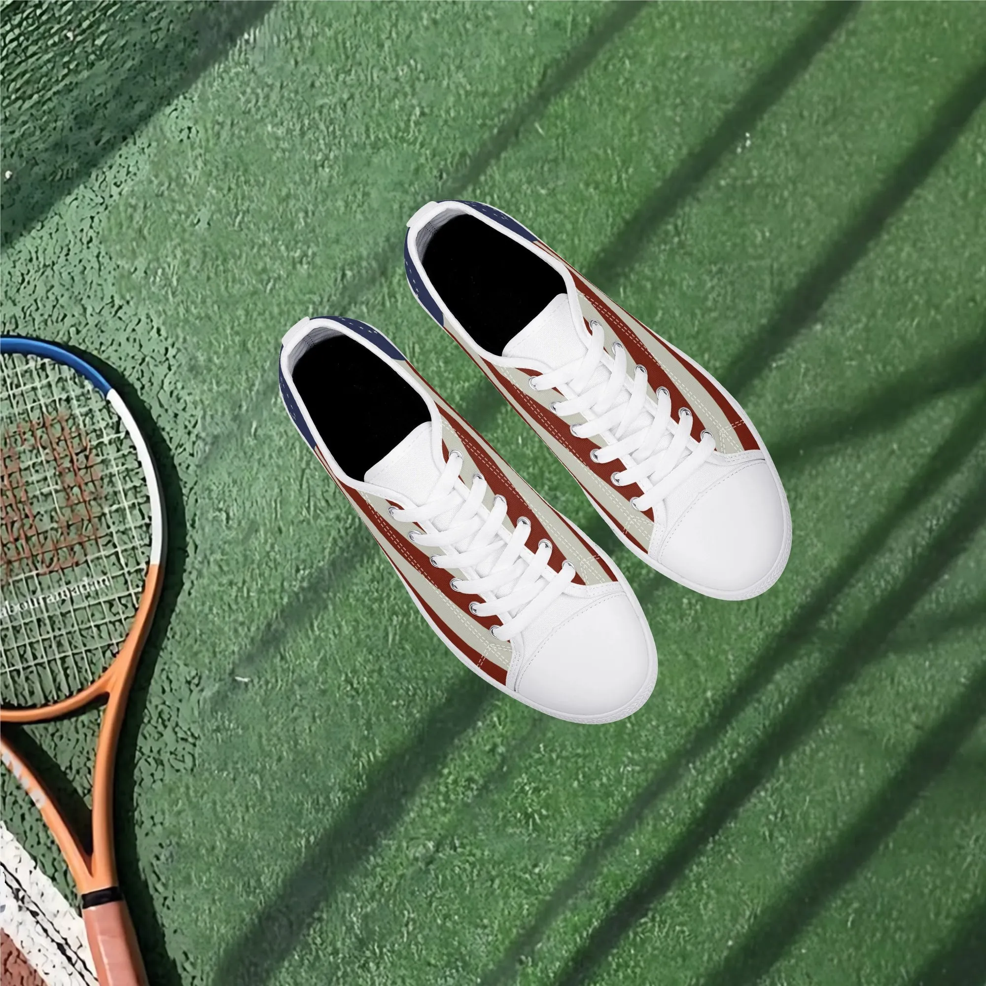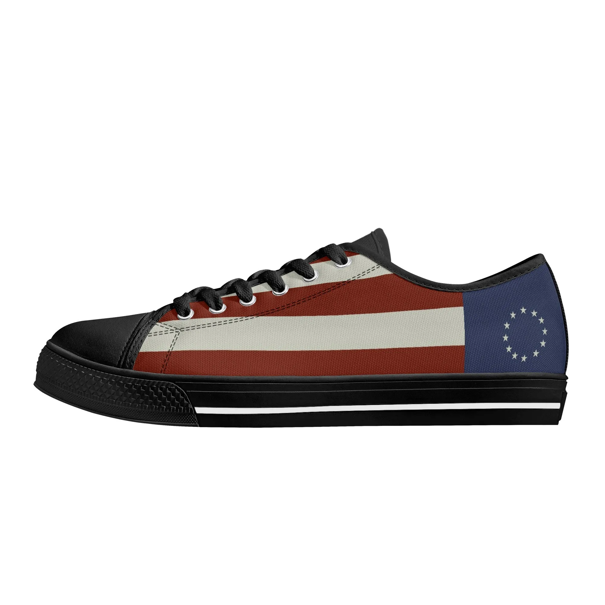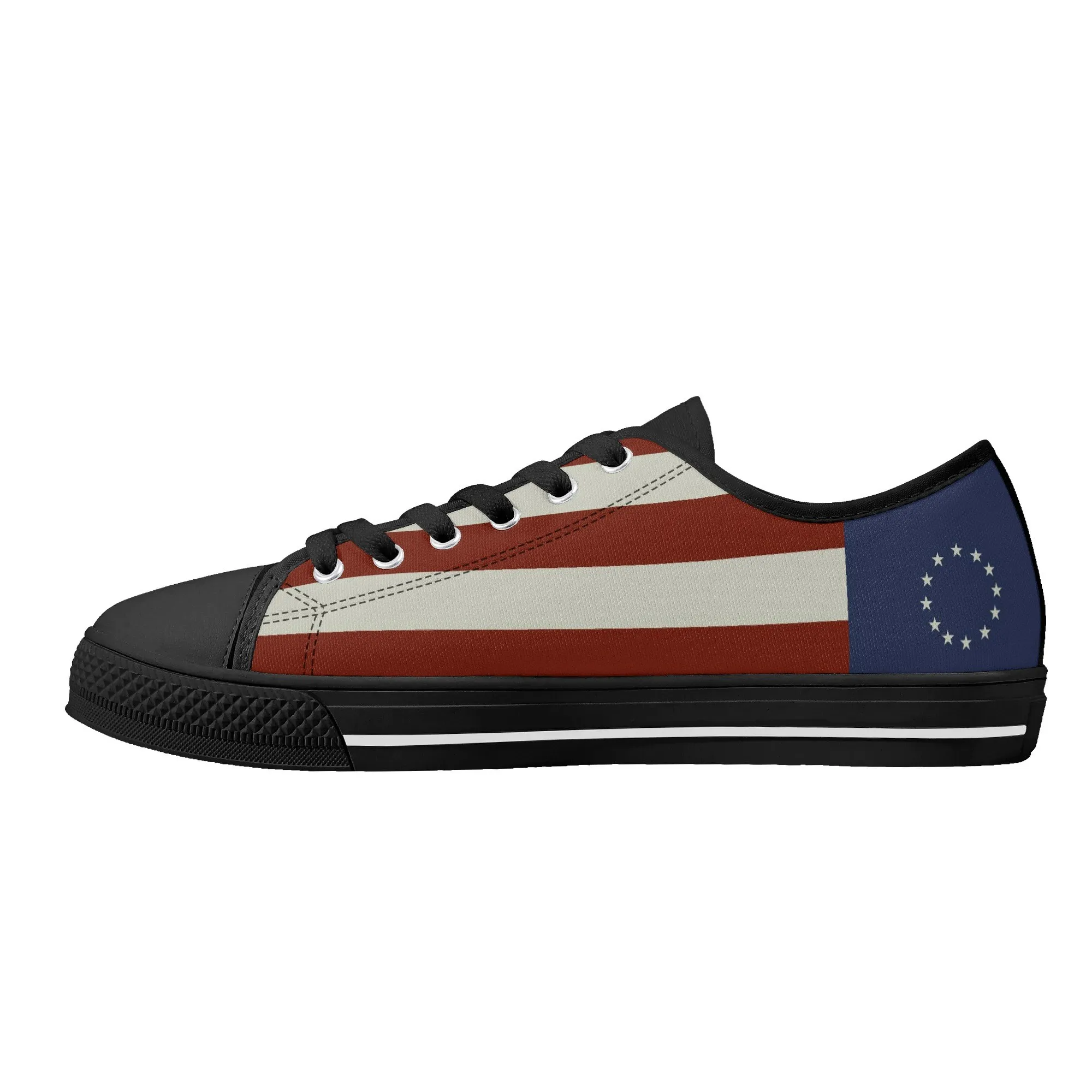Show your reverence for American history with these unique Vintage Betsy Ross Flag Low Top Canvas Shoes! Featuring the iconic distressed 13-star circle design from the early United States, these sneakers are perfect for history buffs, patriotic holidays, and anyone who appreciates the nation’s heritage. They are comfortable, durable, and a timeless way to showcase your pride. For a truly special statement, customize these shoes with your name, a patriotic phrase, or a significant date!
