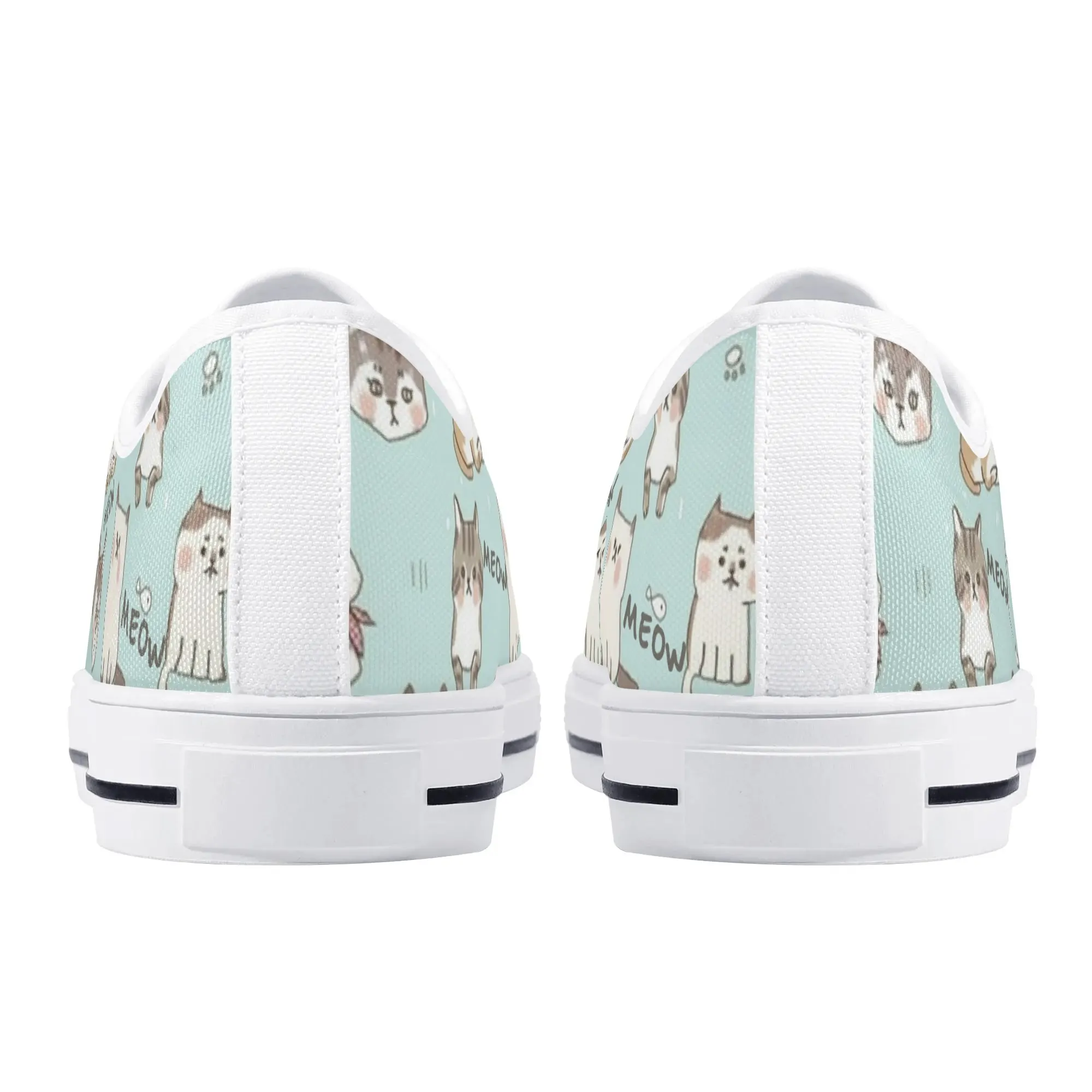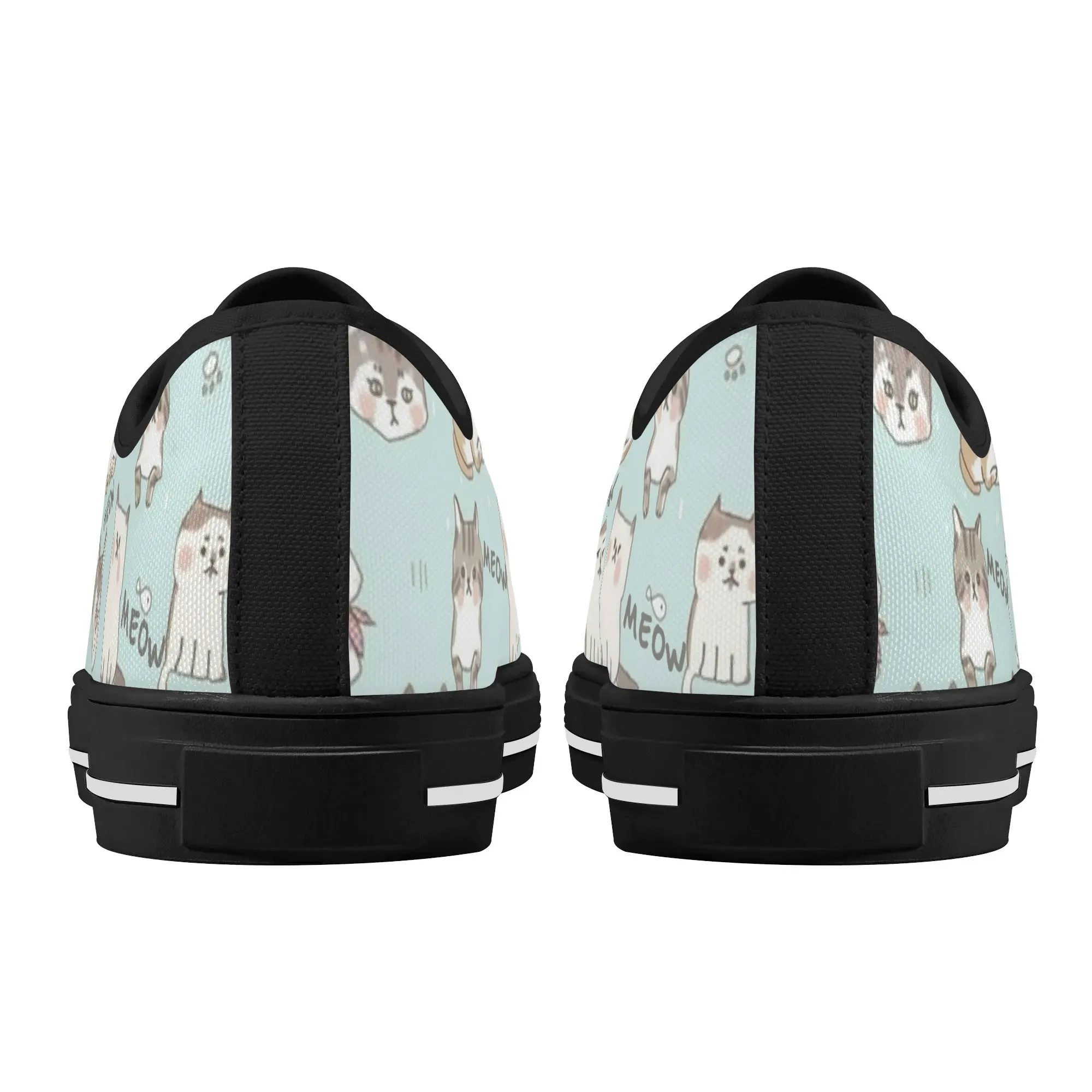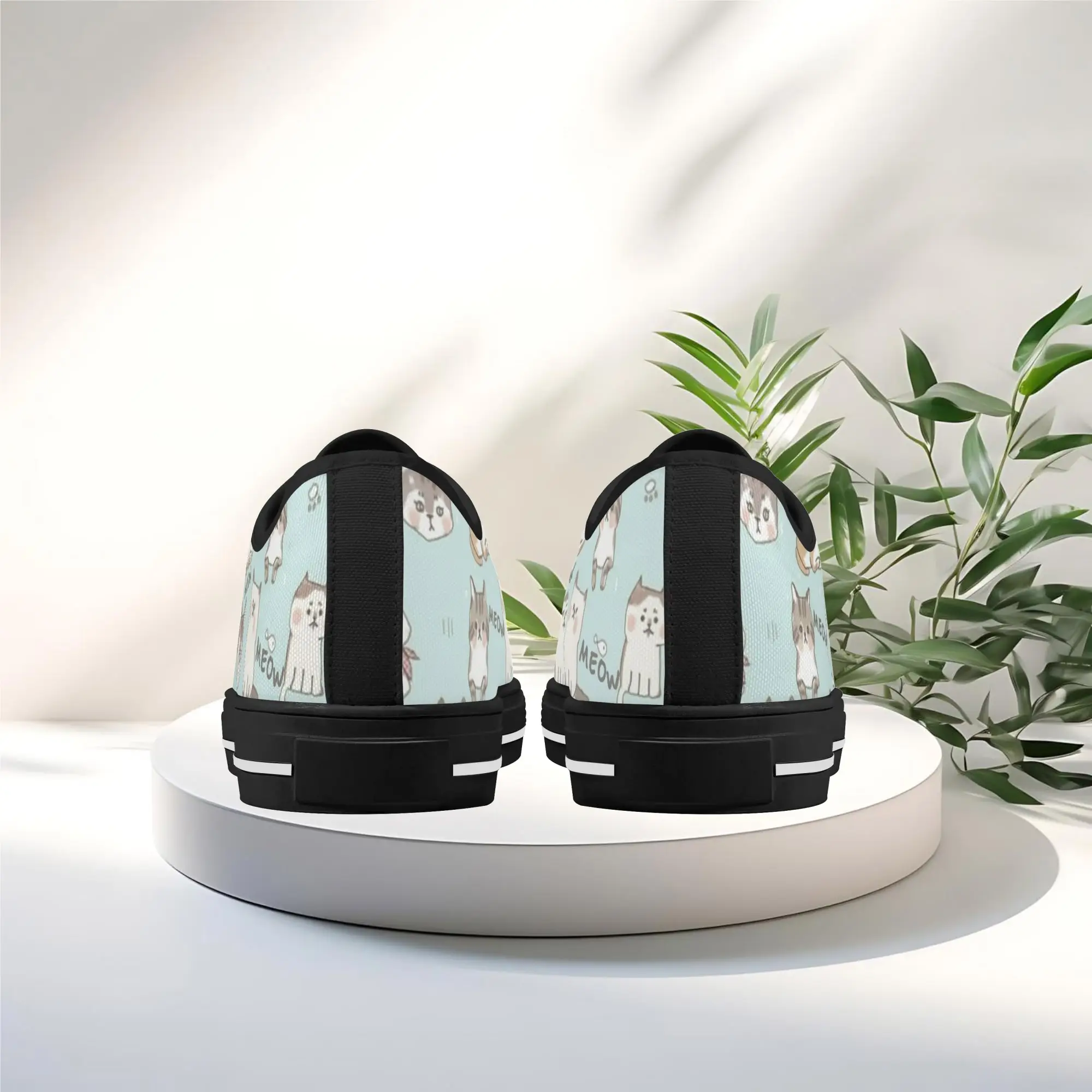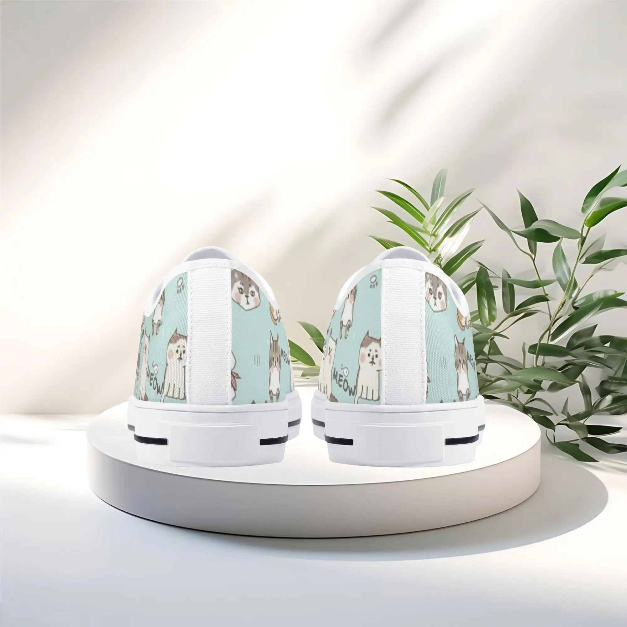 Personalized Cartoon Cat Low Top Sneaker | Custom Name Cute Kitty Canvas Shoes | Unique Cat Mom Pet Owner Gift for Her