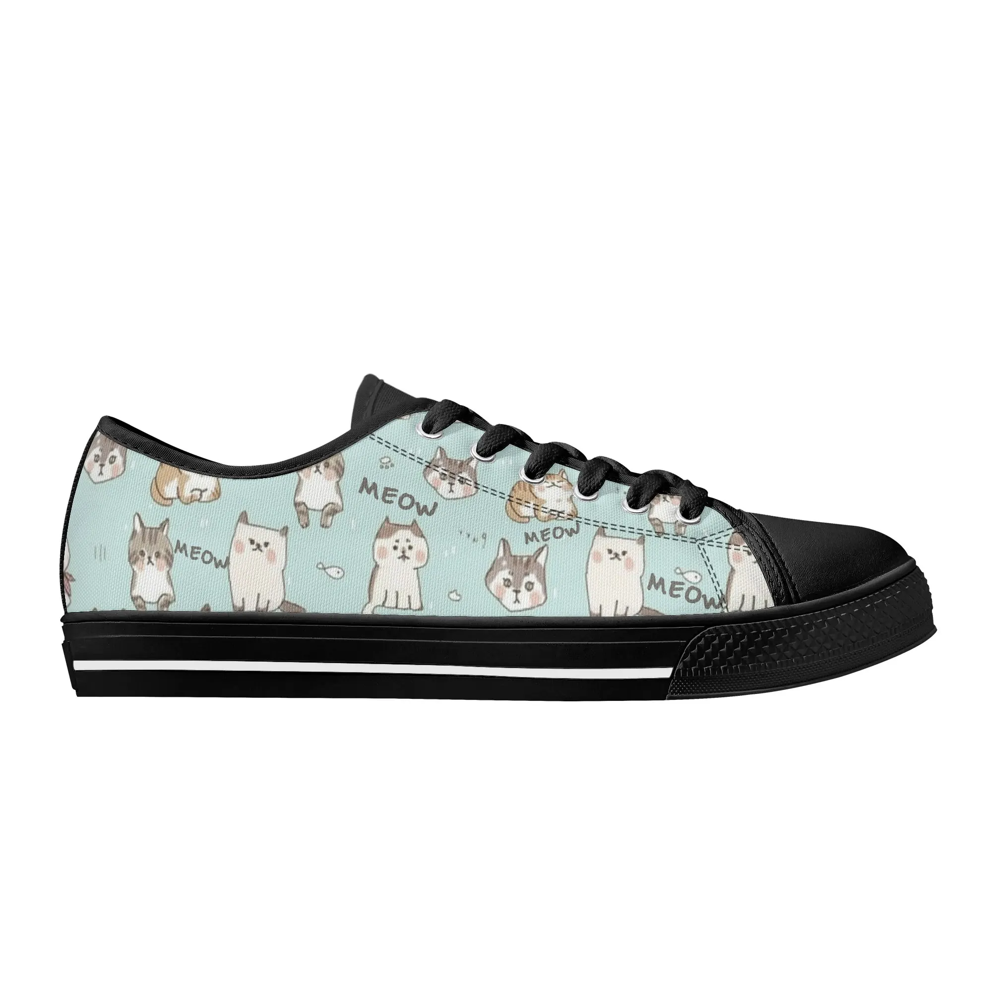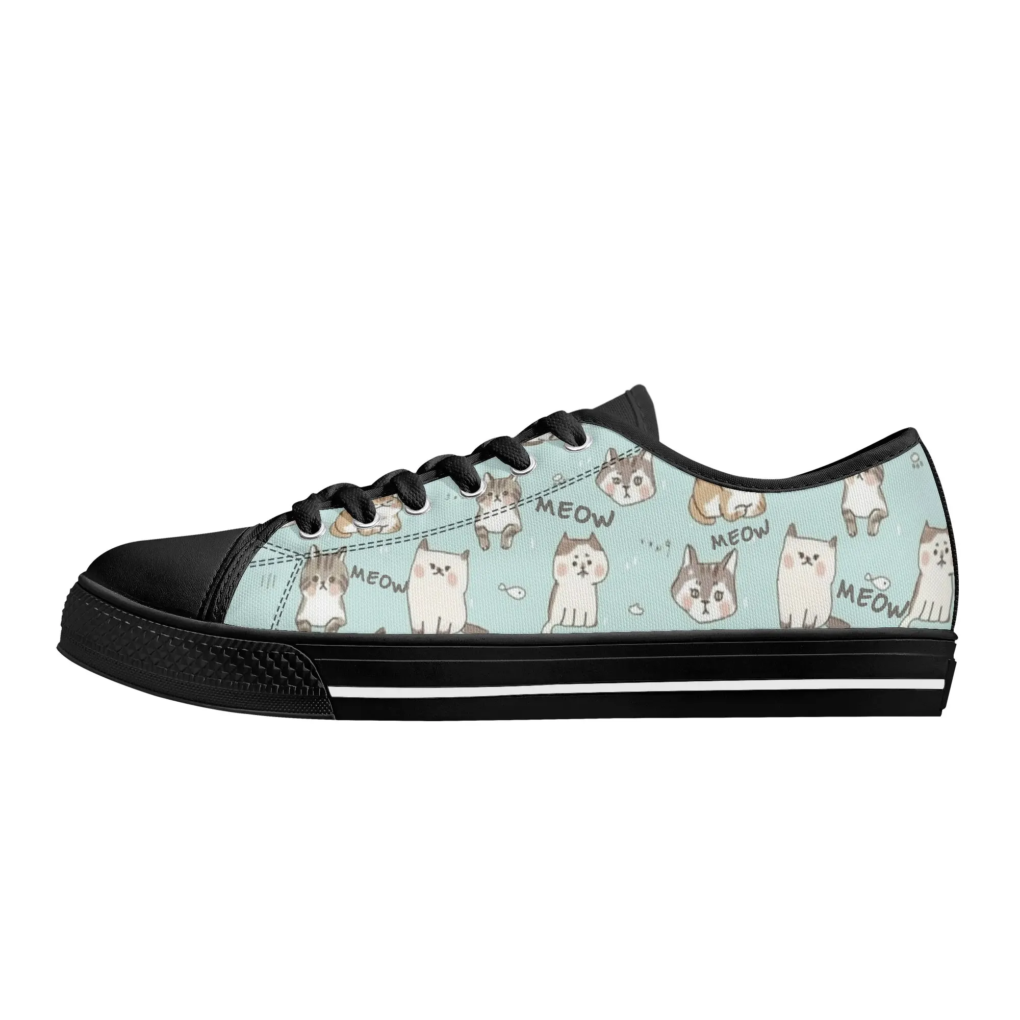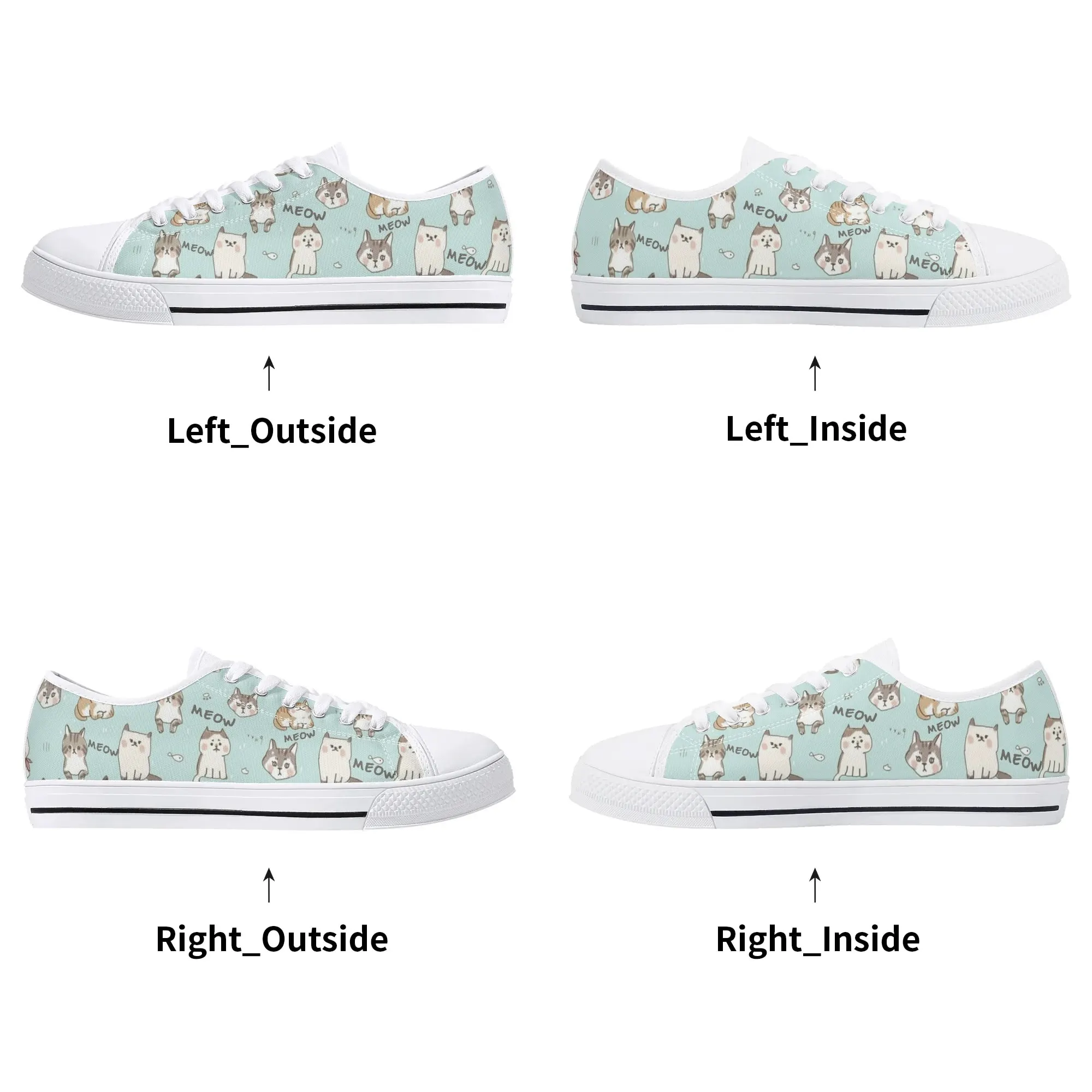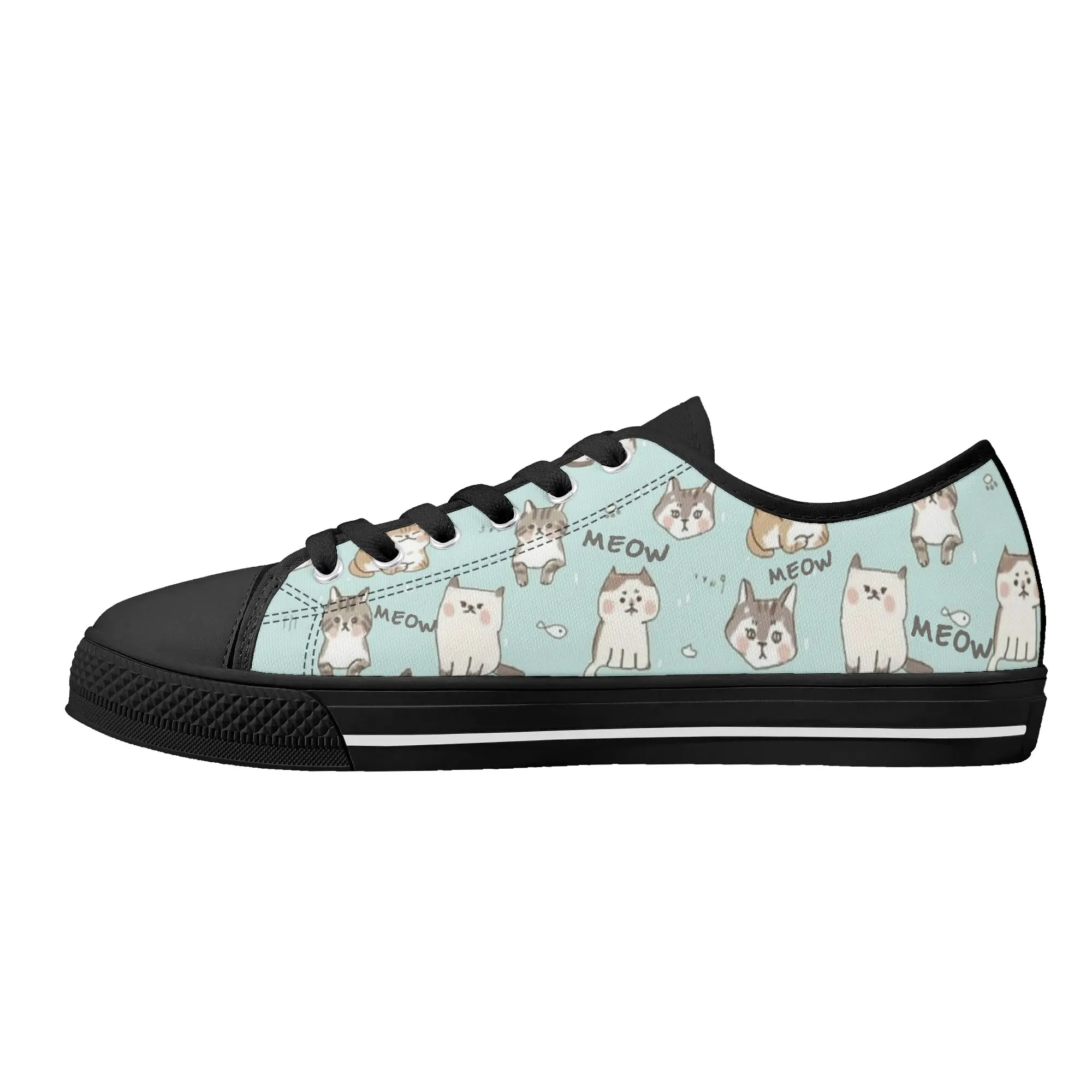 Personalized Cartoon Cat Low Top Sneaker | Custom Name Cute Kitty Canvas Shoes | Unique Cat Mom Pet Owner Gift for Her