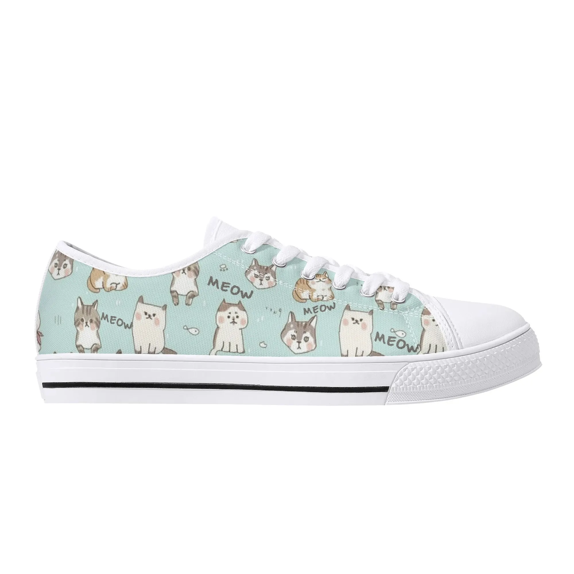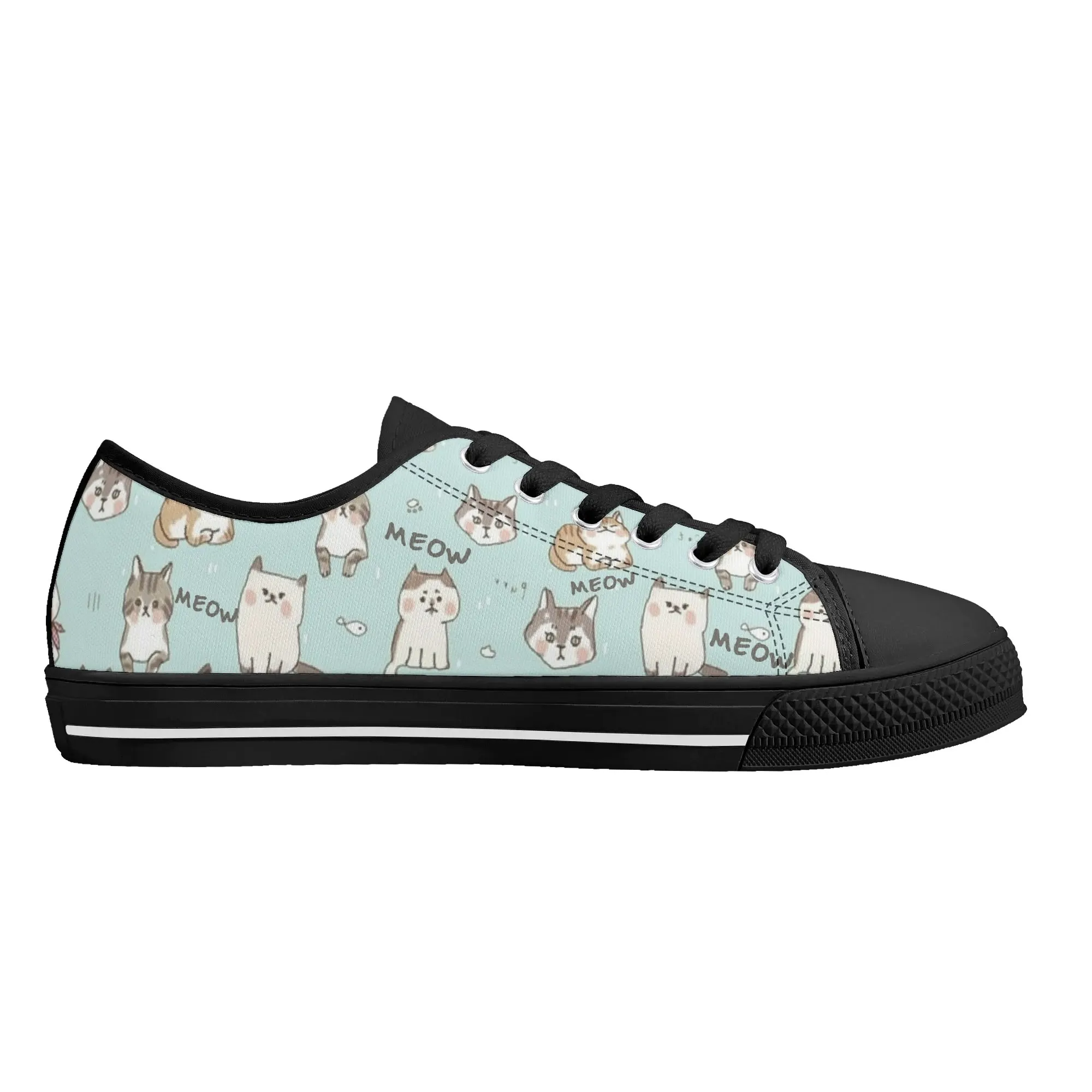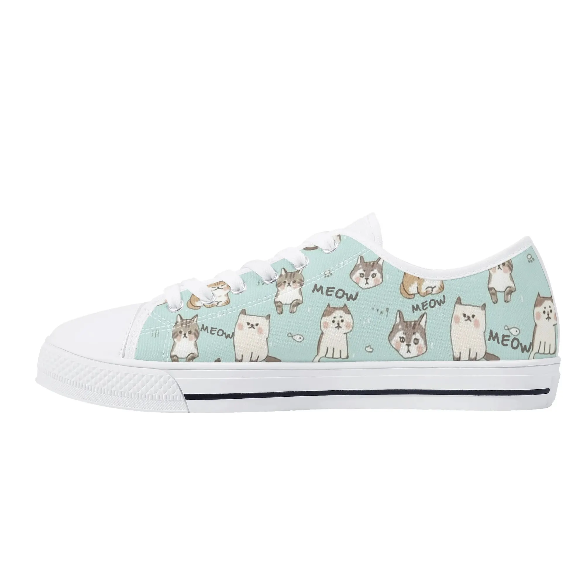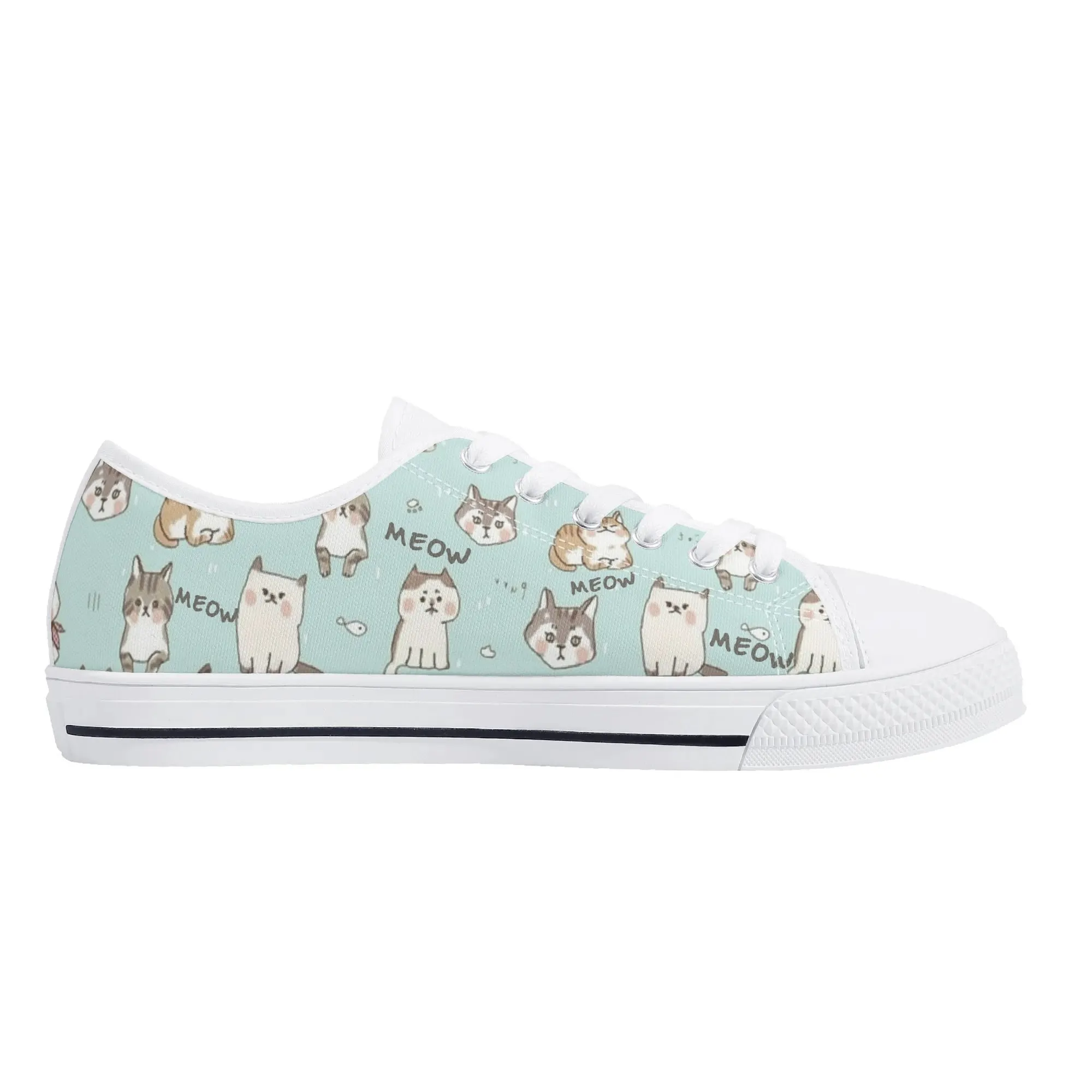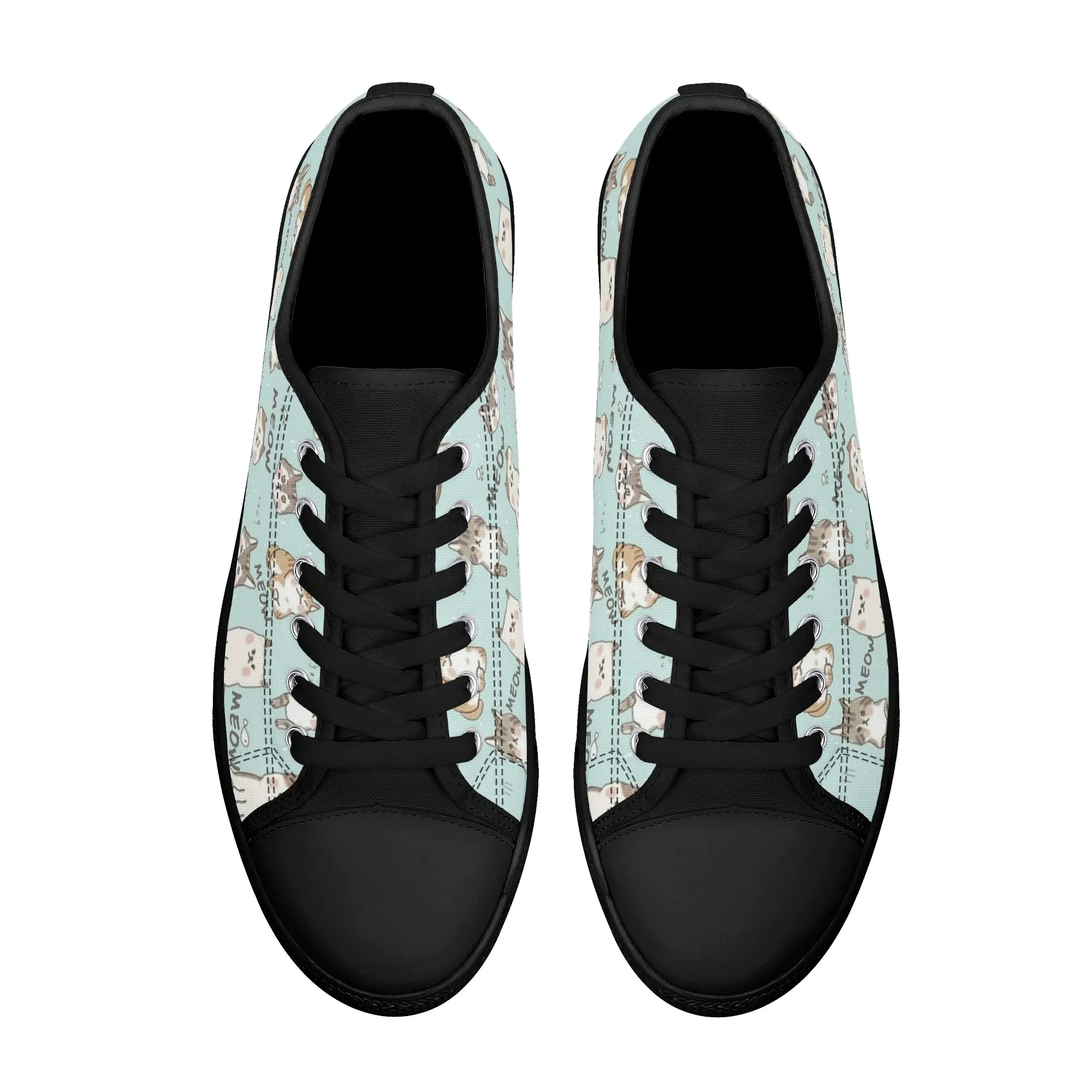 Personalized Cartoon Cat Low Top Sneaker | Custom Name Cute Kitty Canvas Shoes | Unique Cat Mom Pet Owner Gift for Her