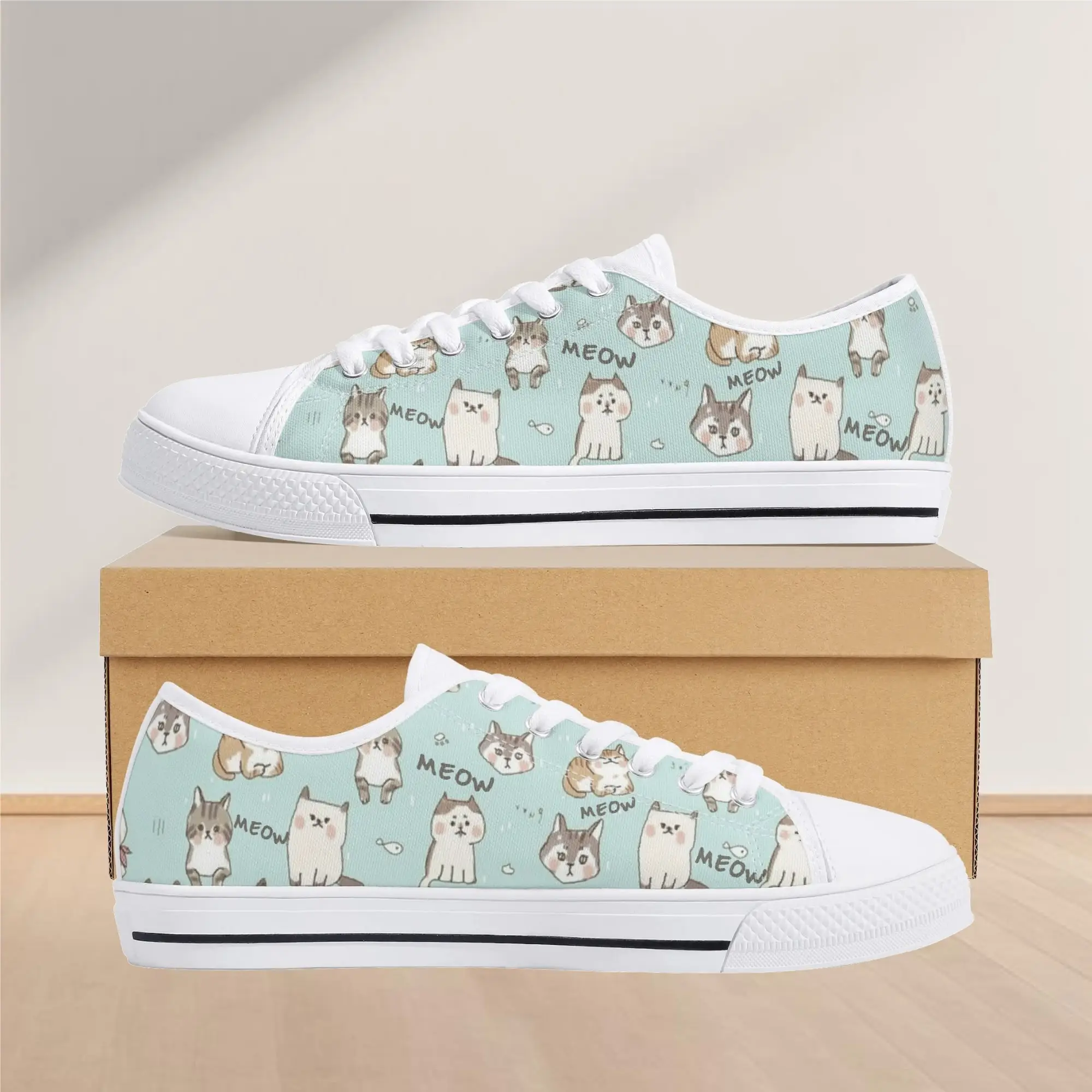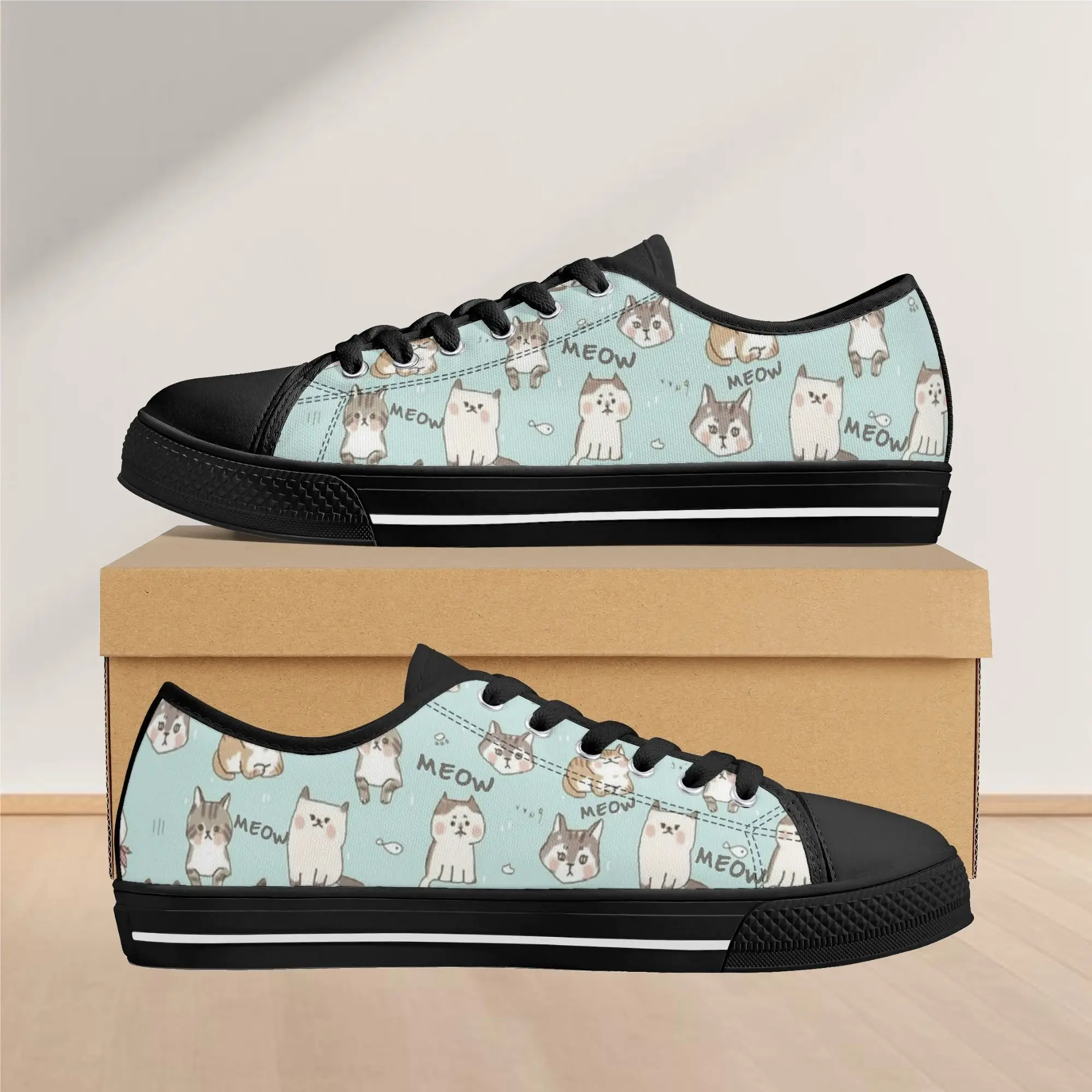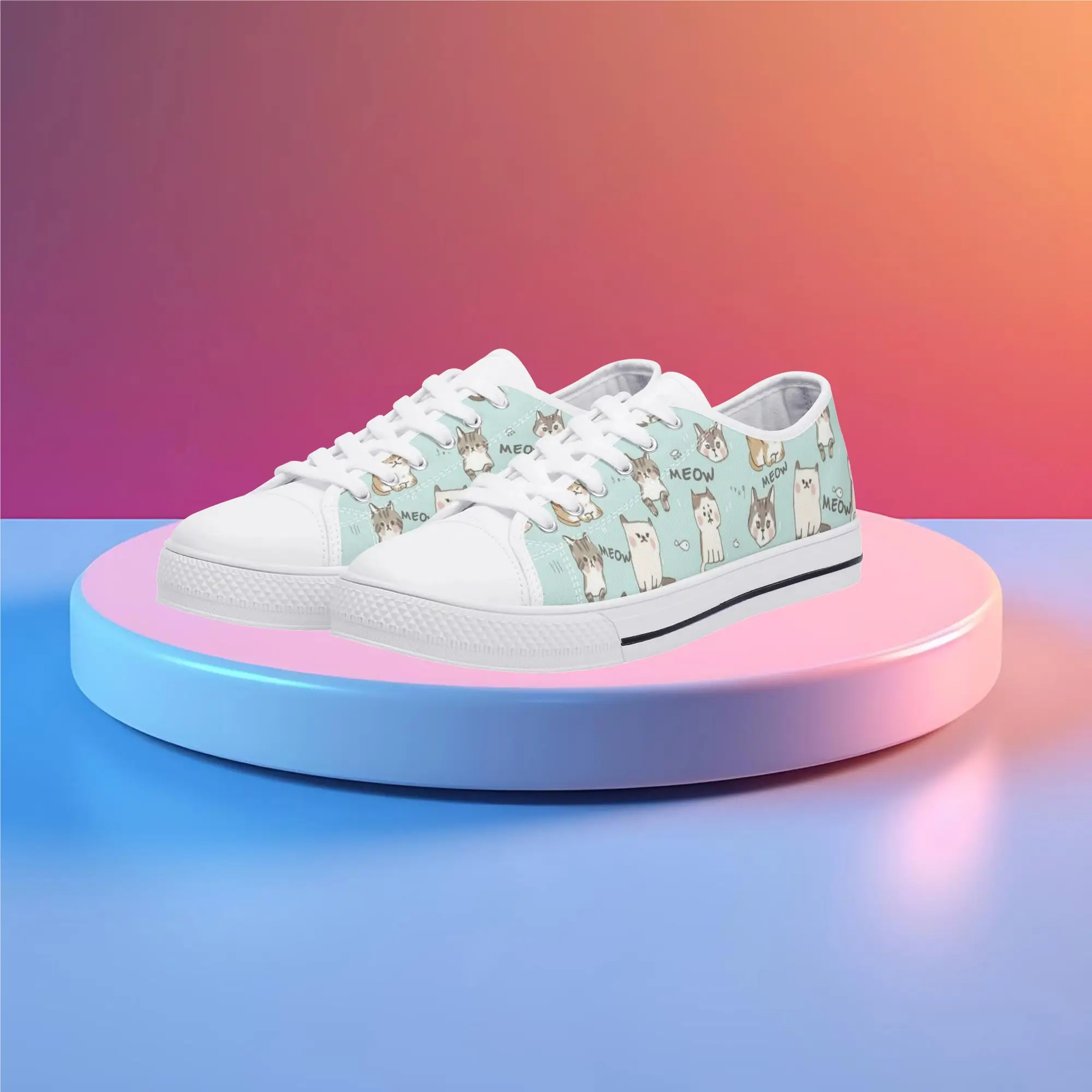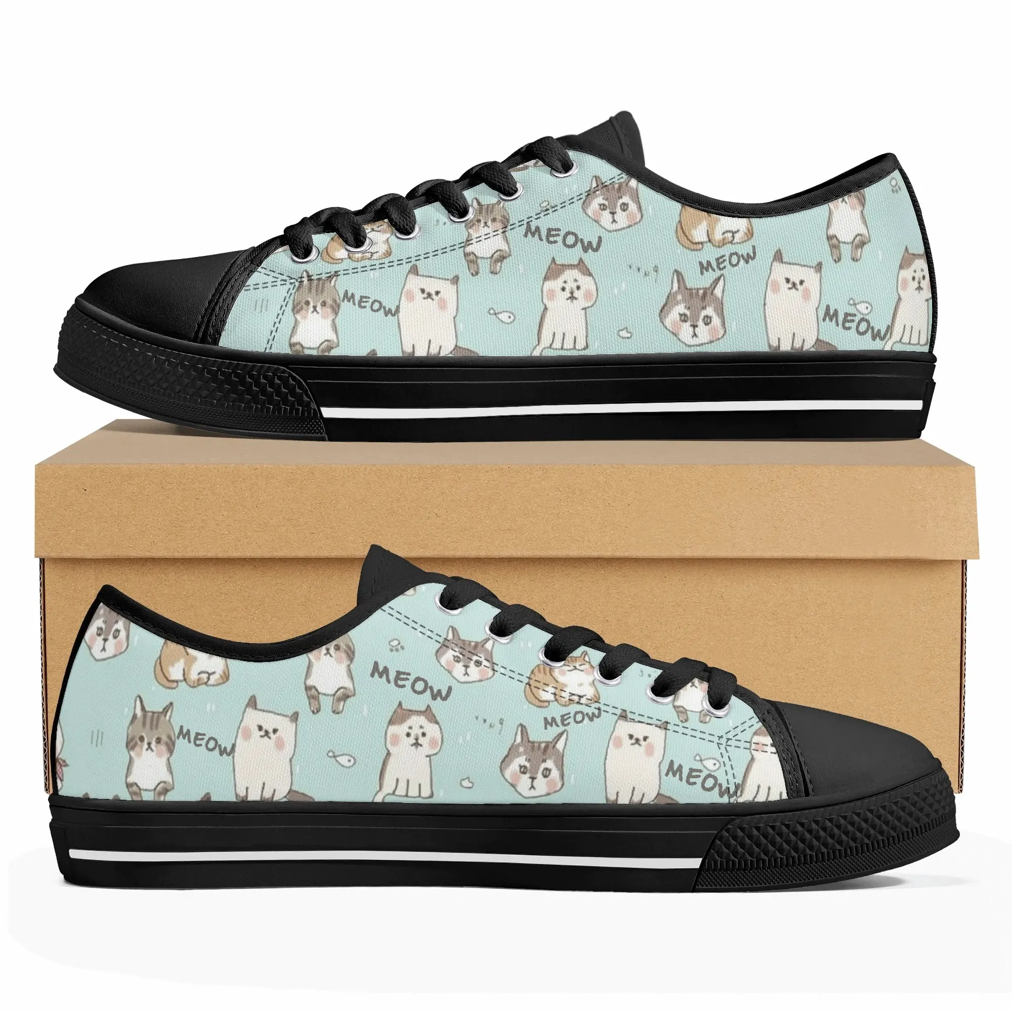 Personalized Cartoon Cat Low Top Sneaker | Custom Name Cute Kitty Canvas Shoes | Unique Cat Mom Pet Owner Gift for Her