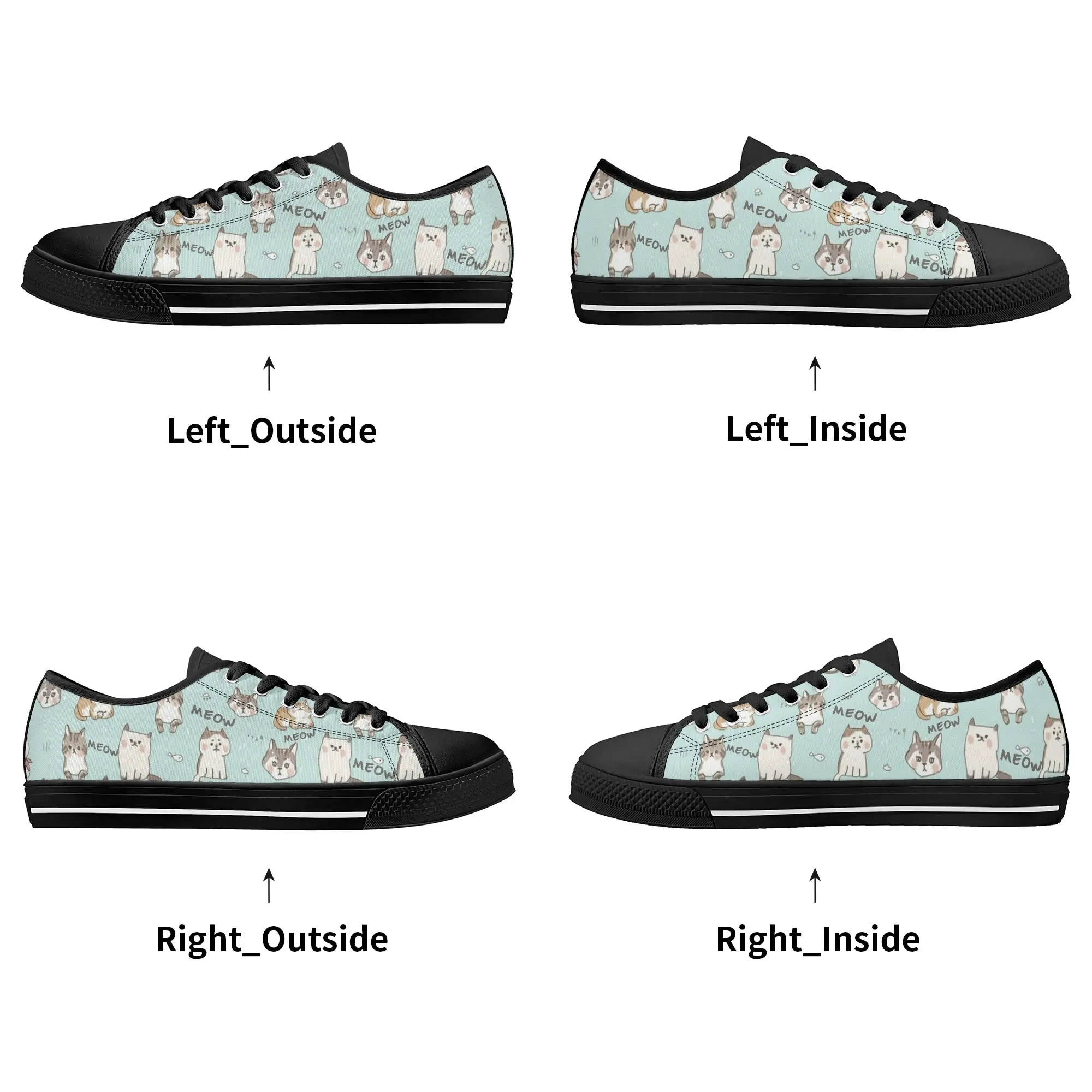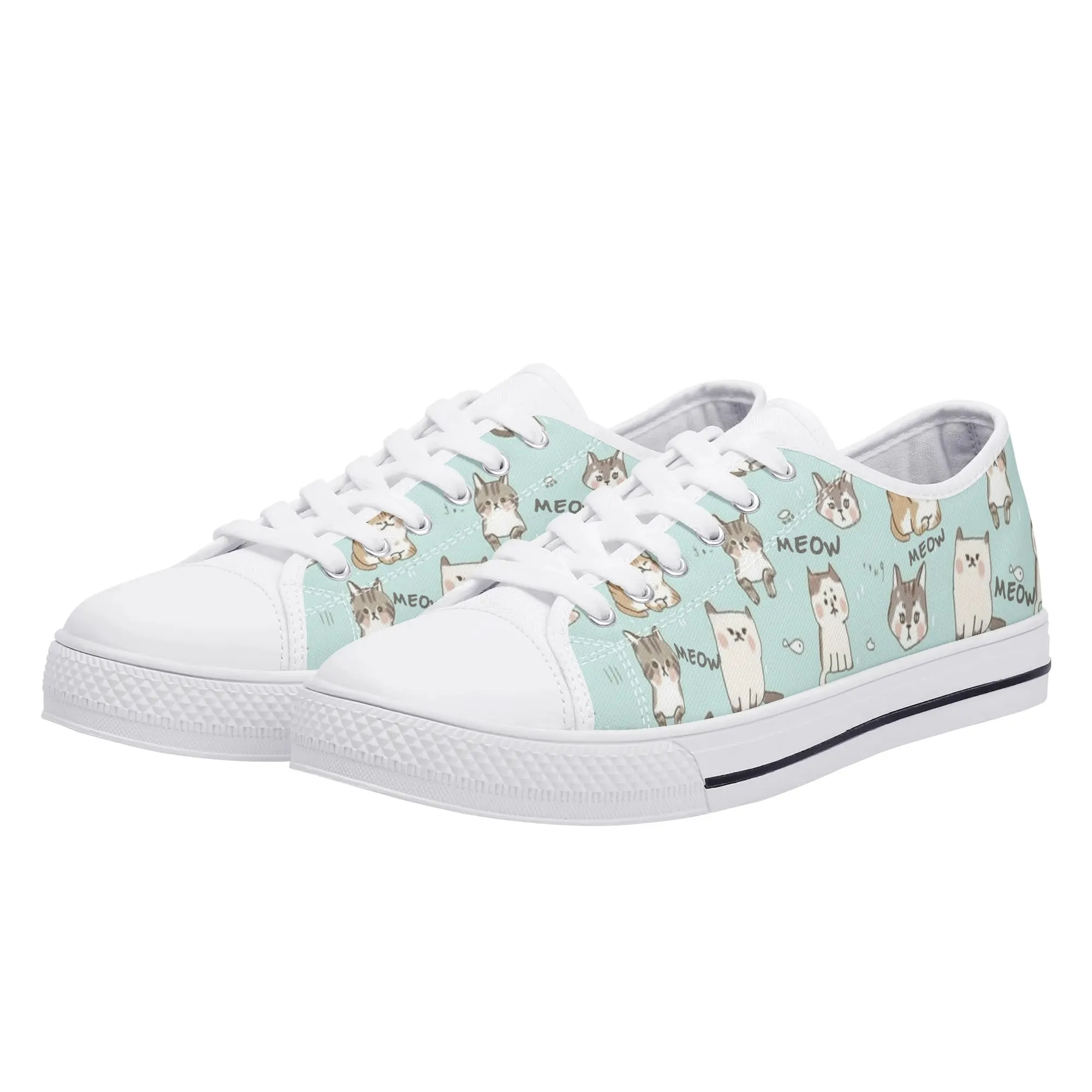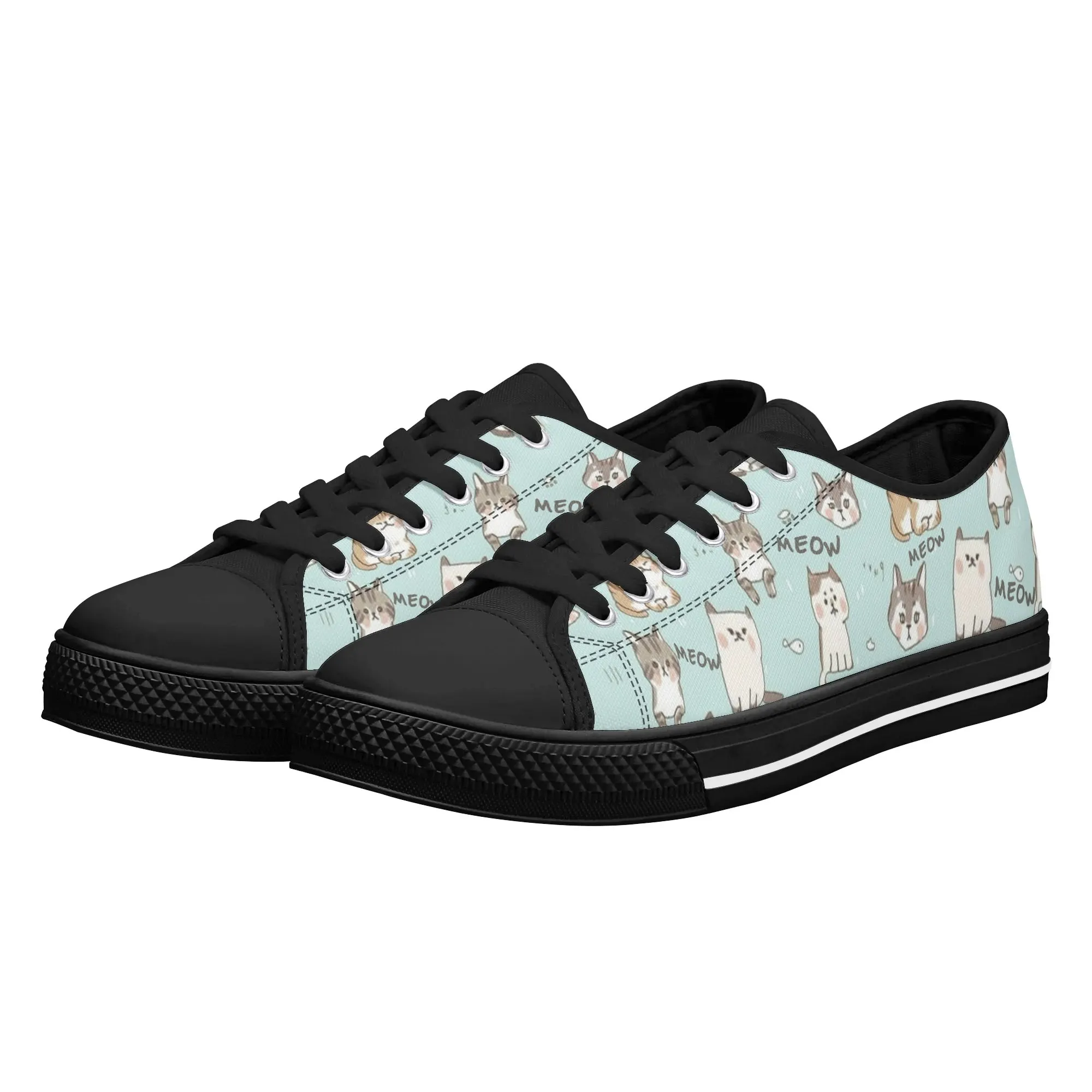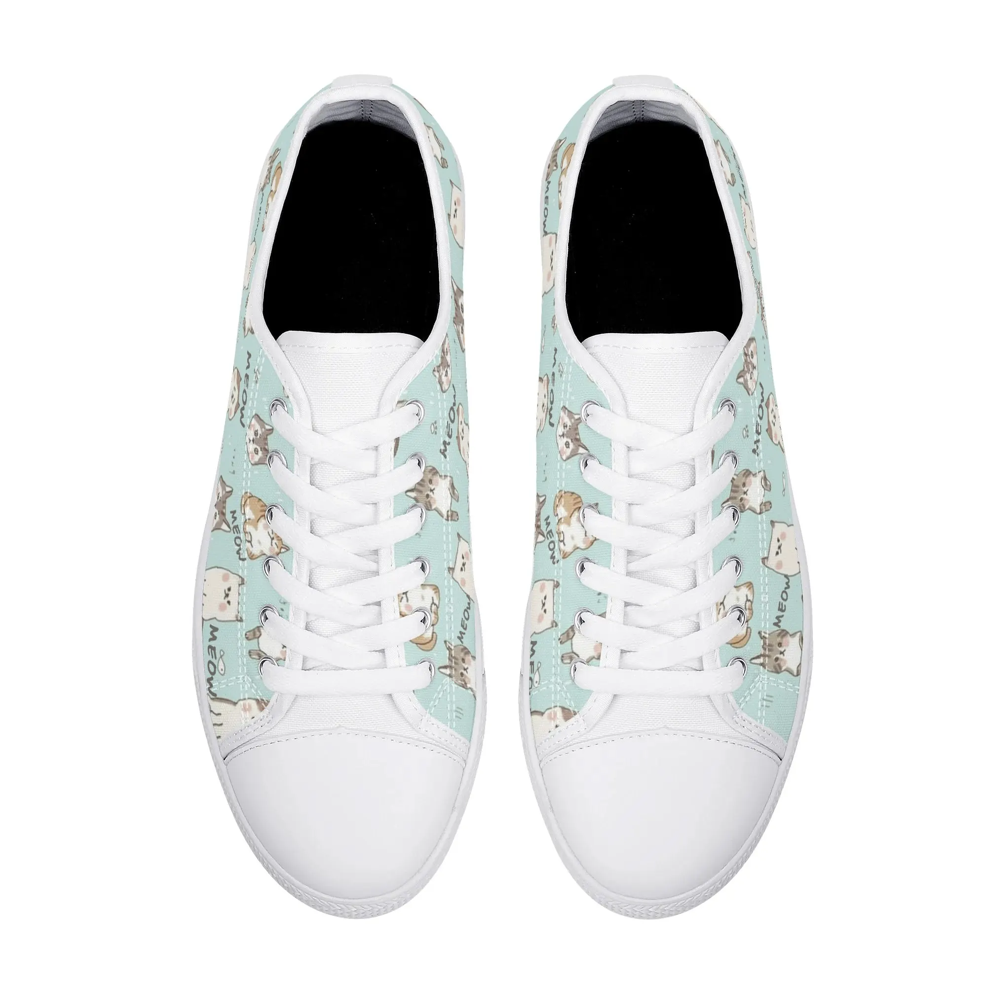 Personalized Cartoon Cat Low Top Sneaker | Custom Name Cute Kitty Canvas Shoes | Unique Cat Mom Pet Owner Gift for Her