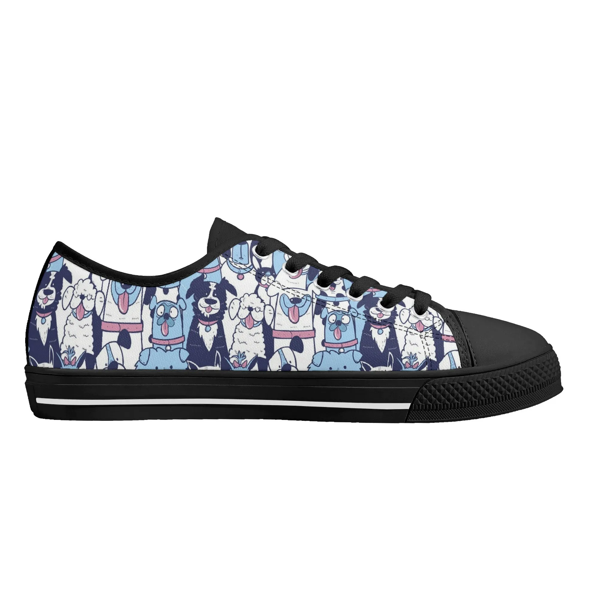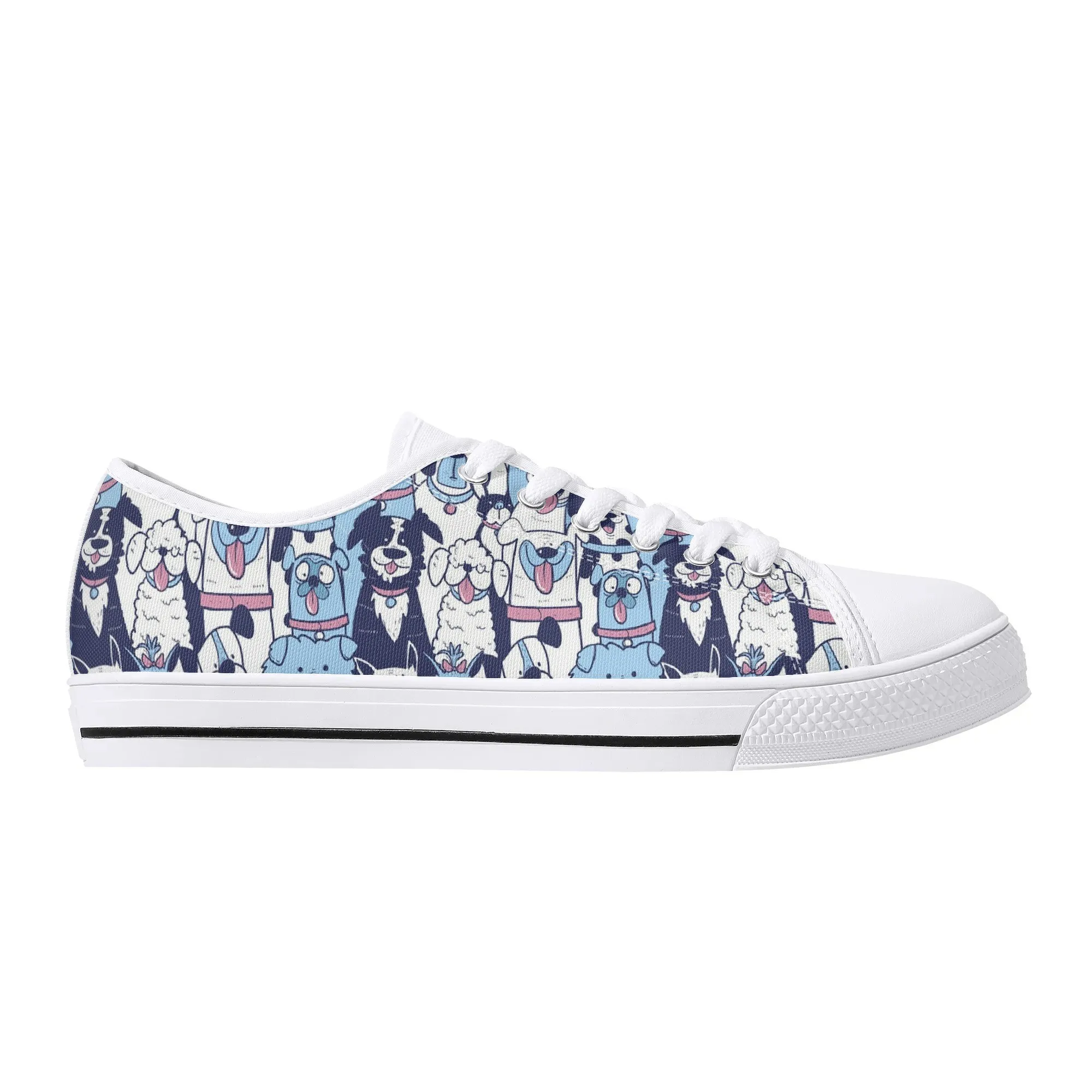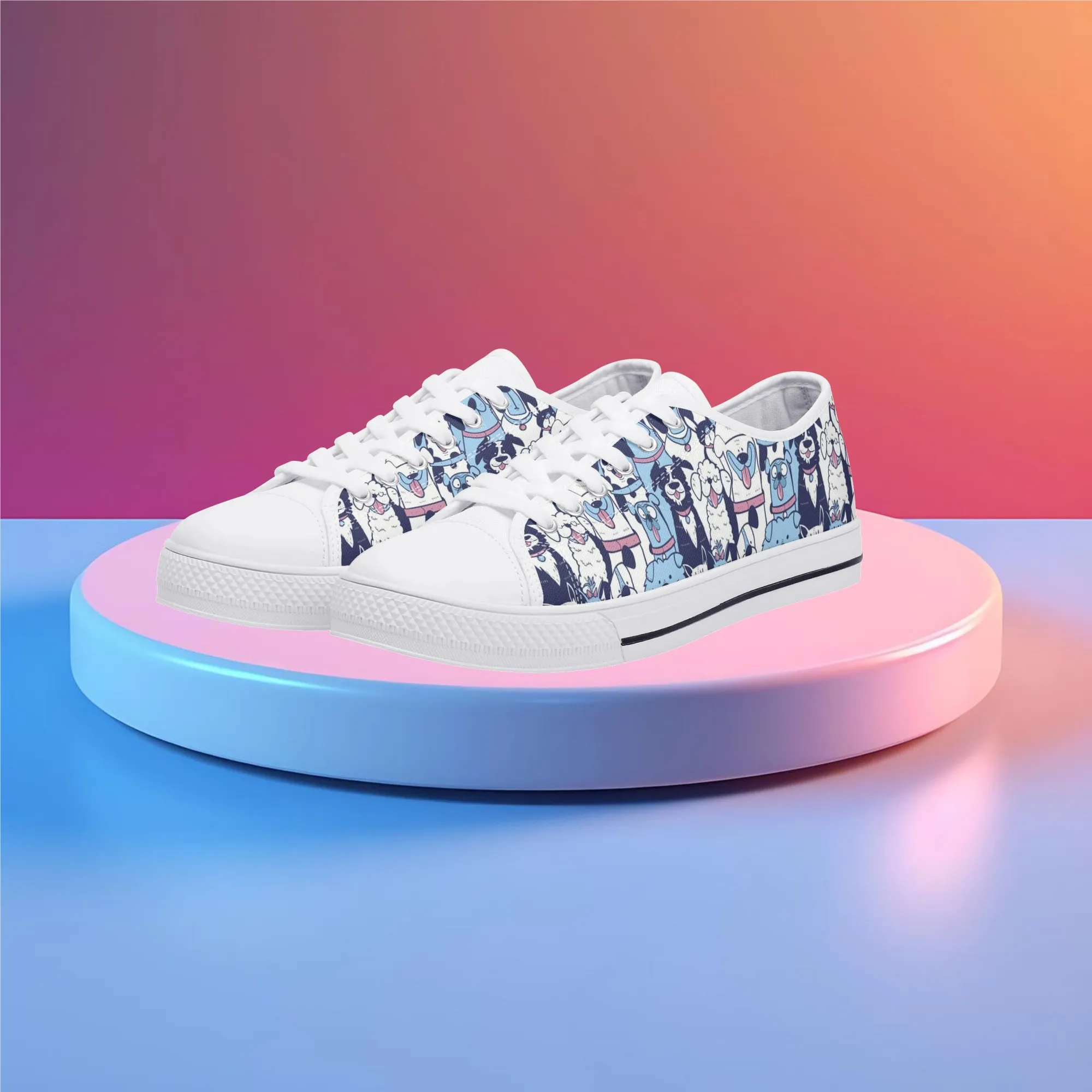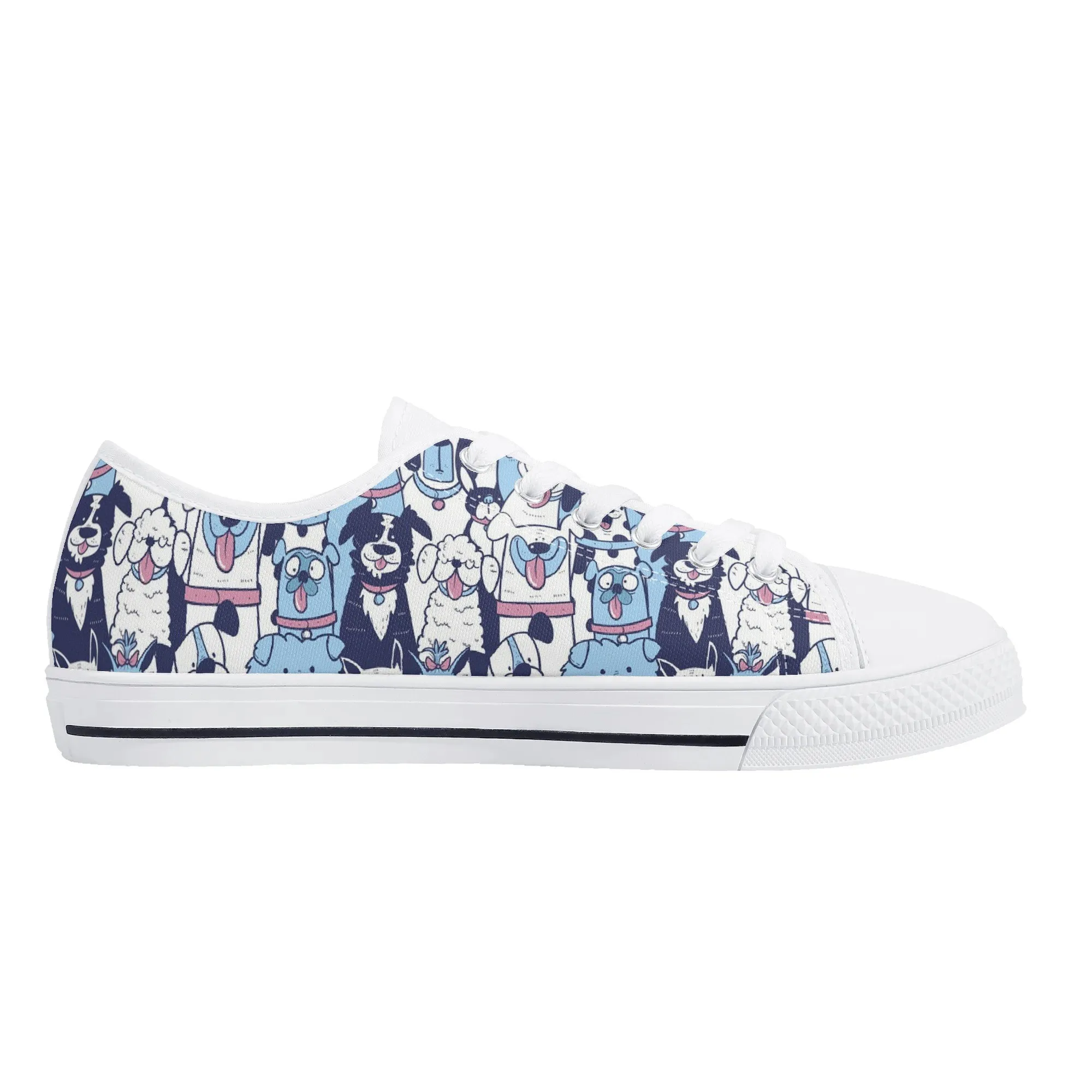 🐶 Dive into comfort and style with these charming low-top canvas shoes featuring an adorable, all-over pattern of happy, quirky dogs! The design showcases a vibrant mix of blue, pink, and white tones, making them a playful and eye-catching addition to any wardrobe. Perfect for dog lovers, fashion enthusiasts, and anyone looking to add a whimsical touch to their everyday outfit. These unisex sneakers are designed for maximum comfort and durability, making them your go-to pair for every season and any casual occasion. They’re more than just shoes—they’re a statement of your fun-loving personality!