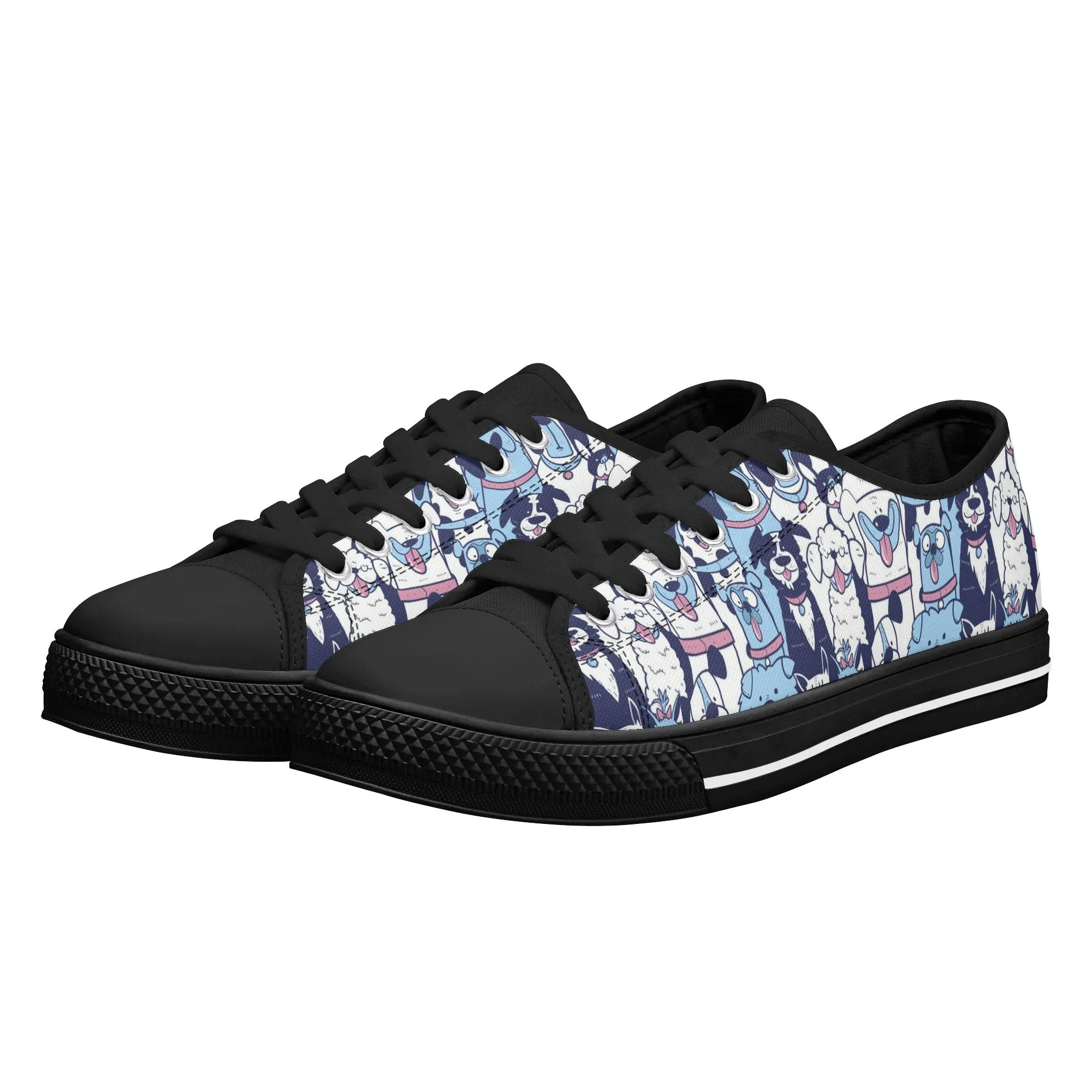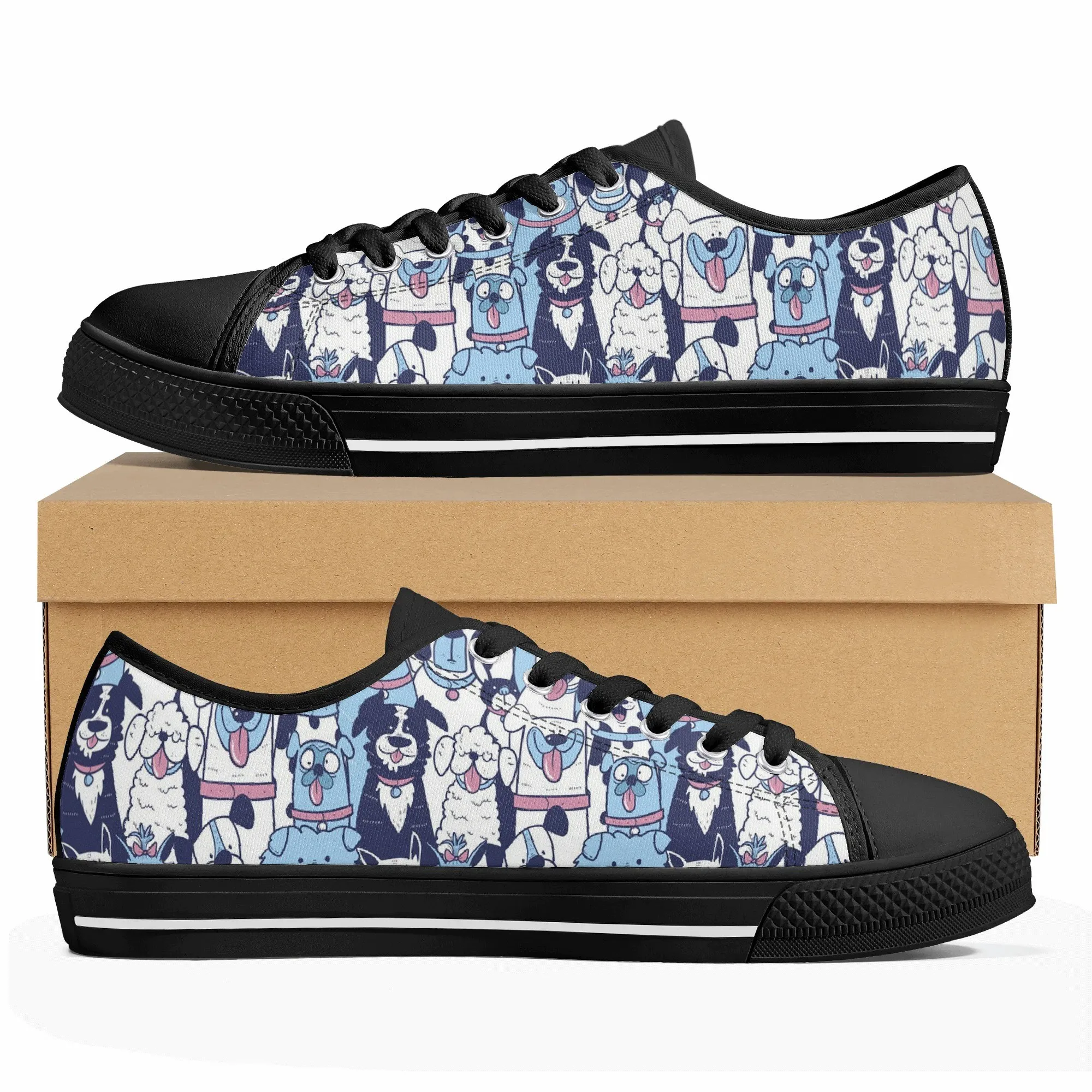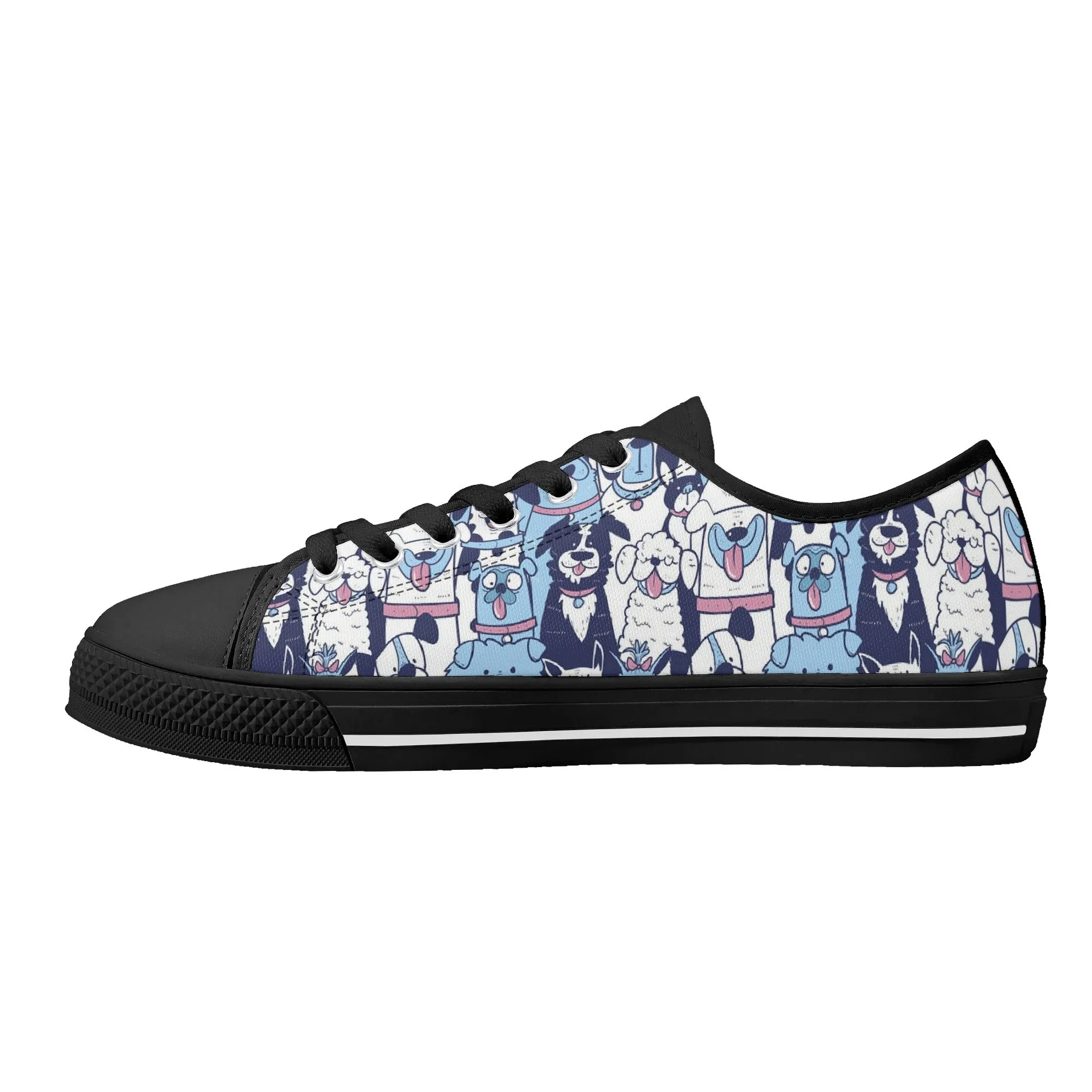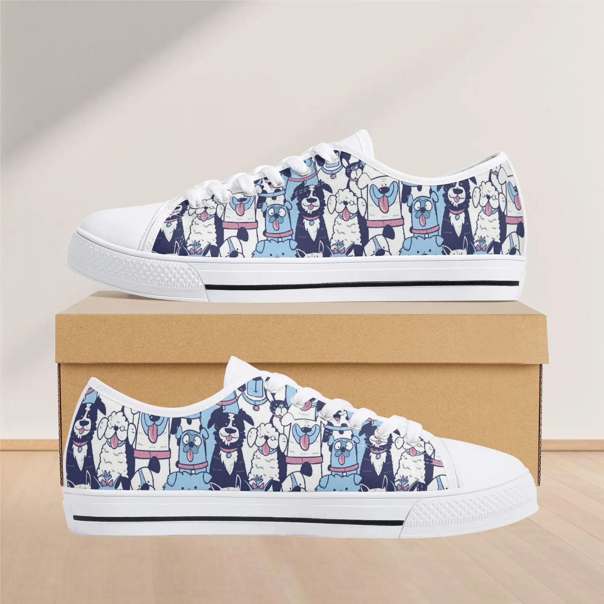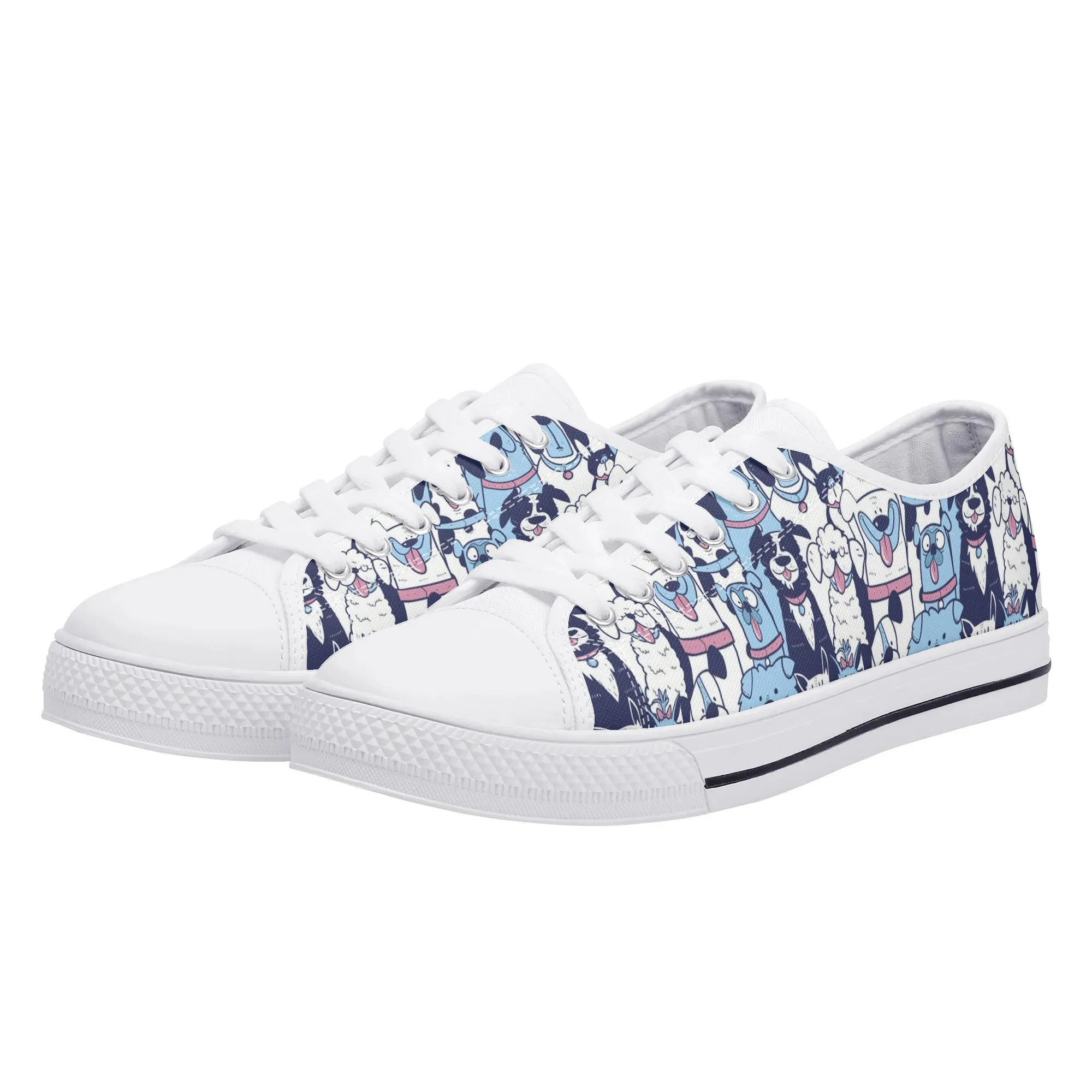 🐶 Dive into comfort and style with these charming low-top canvas shoes featuring an adorable, all-over pattern of happy, quirky dogs! The design showcases a vibrant mix of blue, pink, and white tones, making them a playful and eye-catching addition to any wardrobe. Perfect for dog lovers, fashion enthusiasts, and anyone looking to add a whimsical touch to their everyday outfit. These unisex sneakers are designed for maximum comfort and durability, making them your go-to pair for every season and any casual occasion. They’re more than just shoes—they’re a statement of your fun-loving personality!