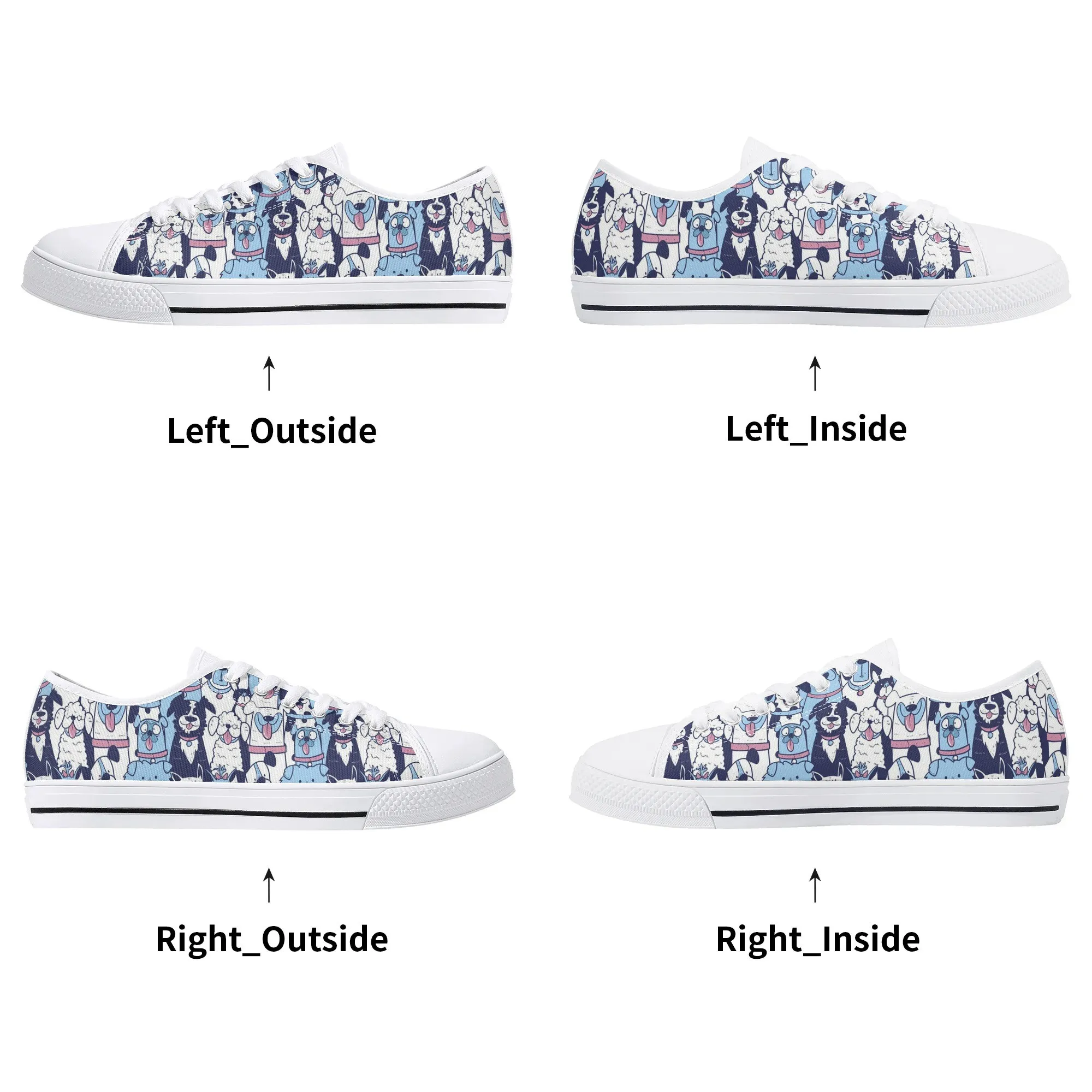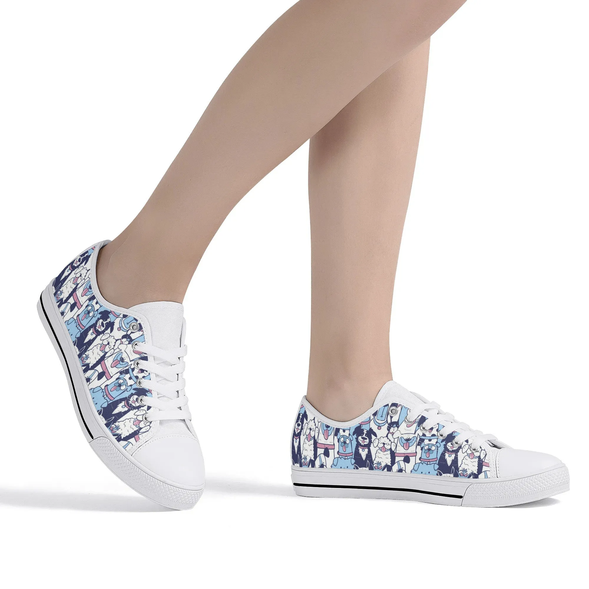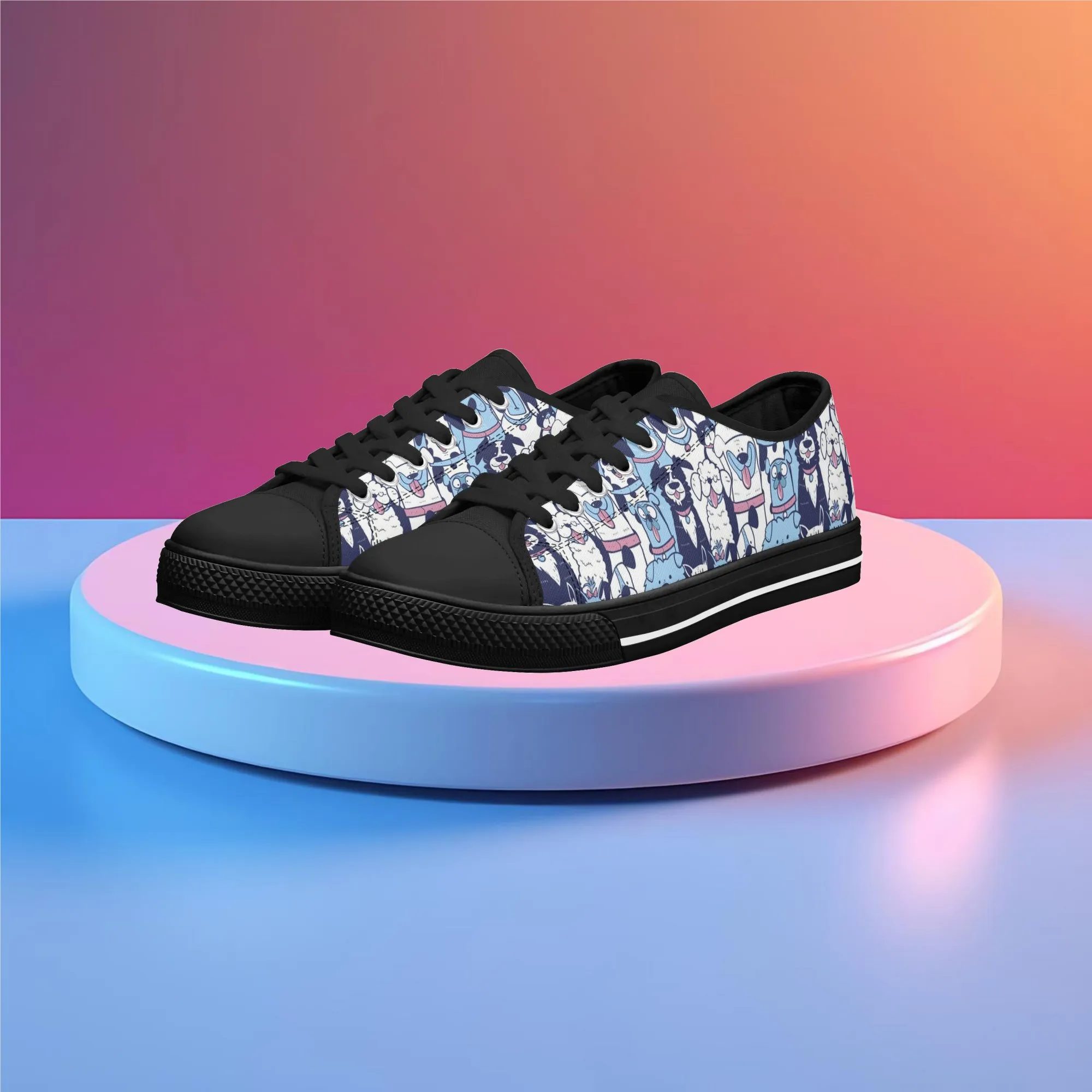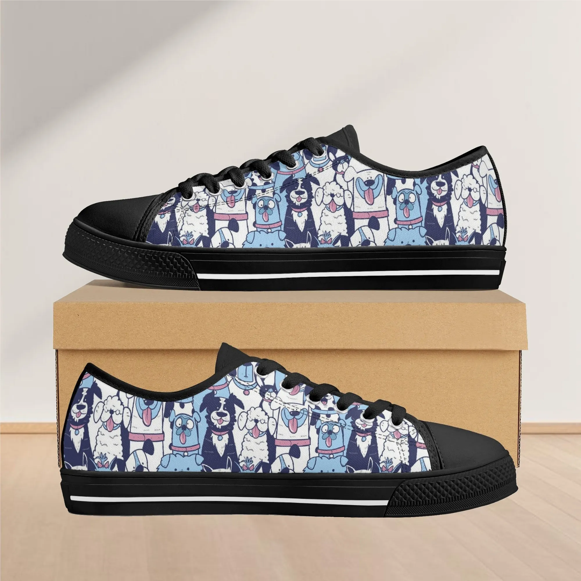 🐶 Dive into comfort and style with these charming low-top canvas shoes featuring an adorable, all-over pattern of happy, quirky dogs! The design showcases a vibrant mix of blue, pink, and white tones, making them a playful and eye-catching addition to any wardrobe. Perfect for dog lovers, fashion enthusiasts, and anyone looking to add a whimsical touch to their everyday outfit. These unisex sneakers are designed for maximum comfort and durability, making them your go-to pair for every season and any casual occasion. They’re more than just shoes—they’re a statement of your fun-loving personality!