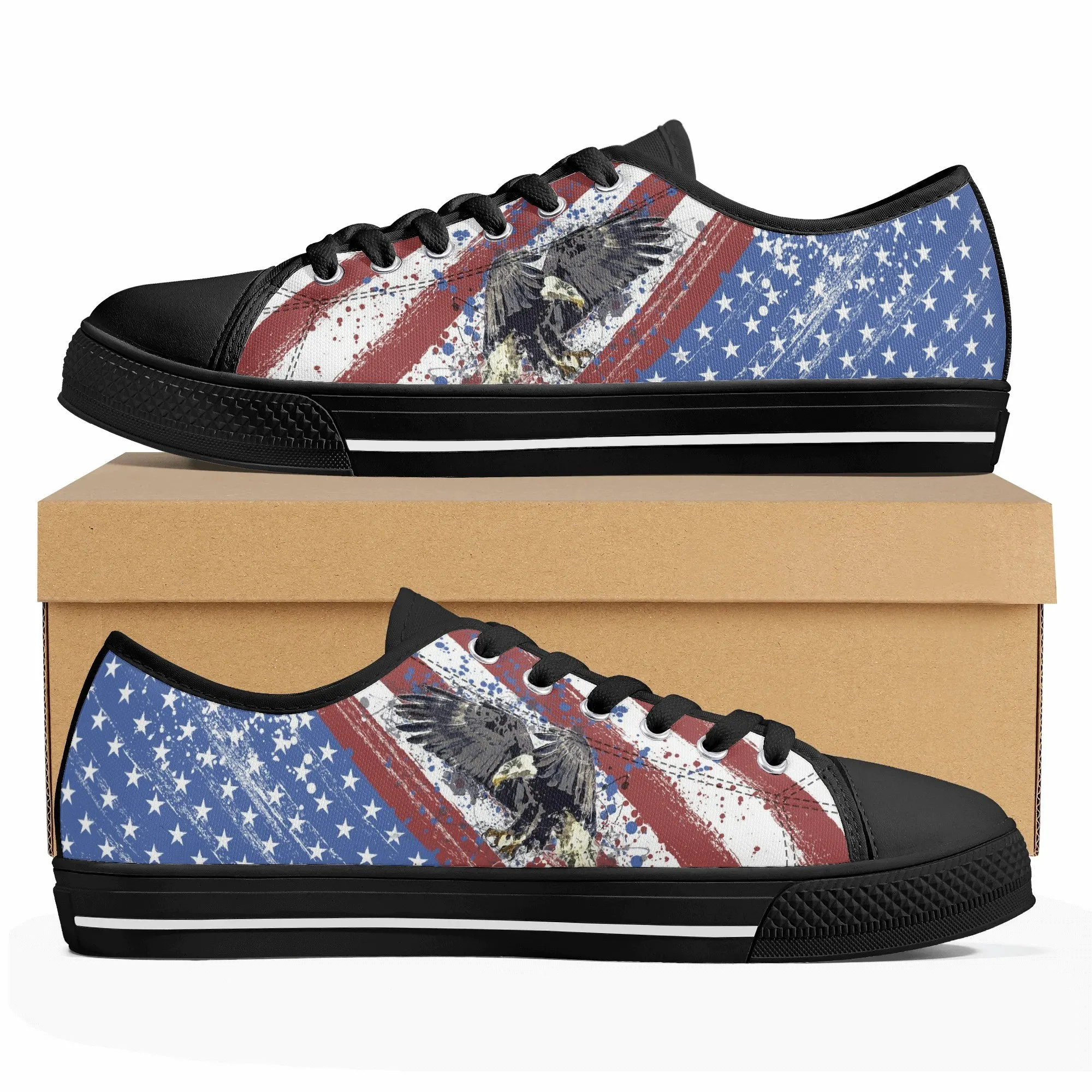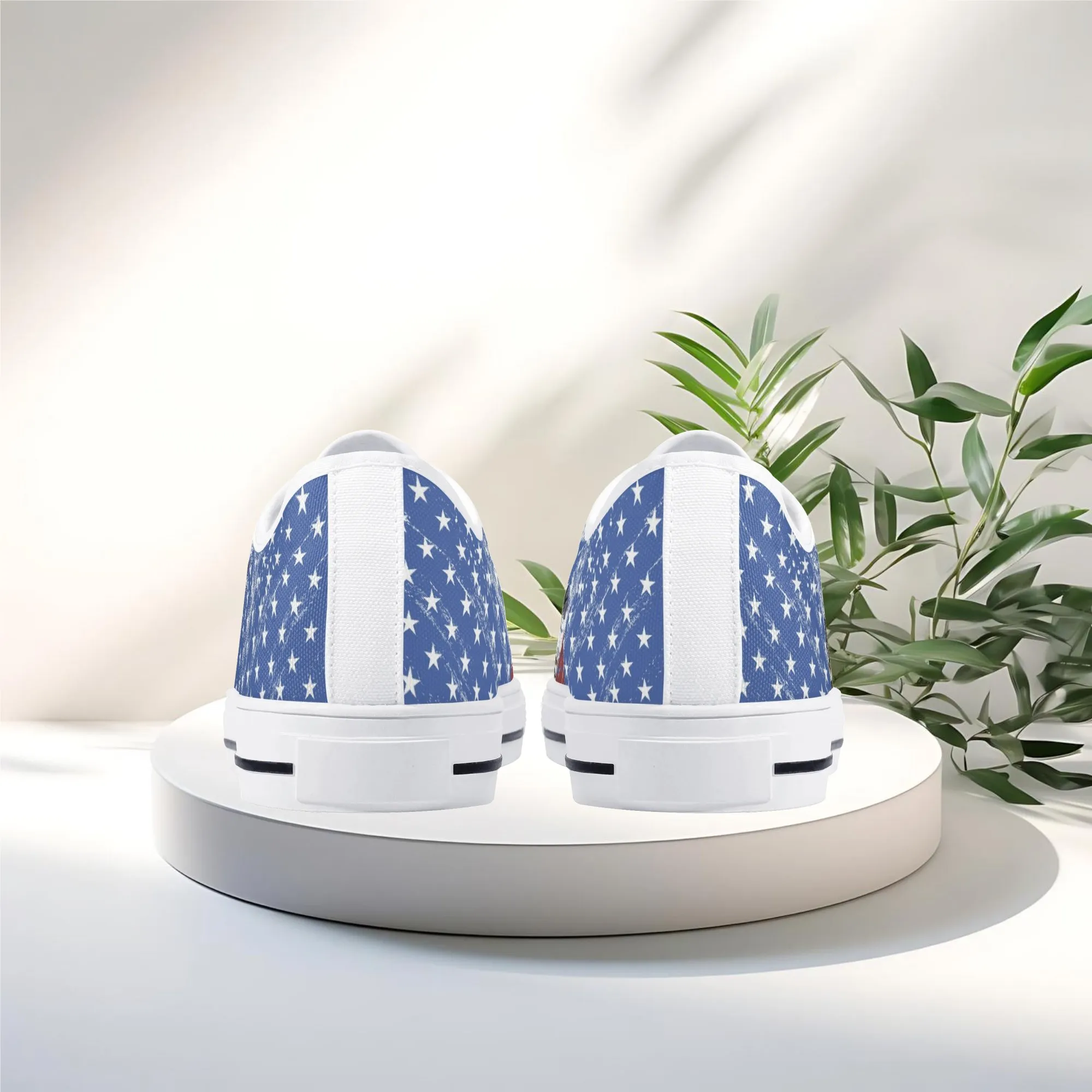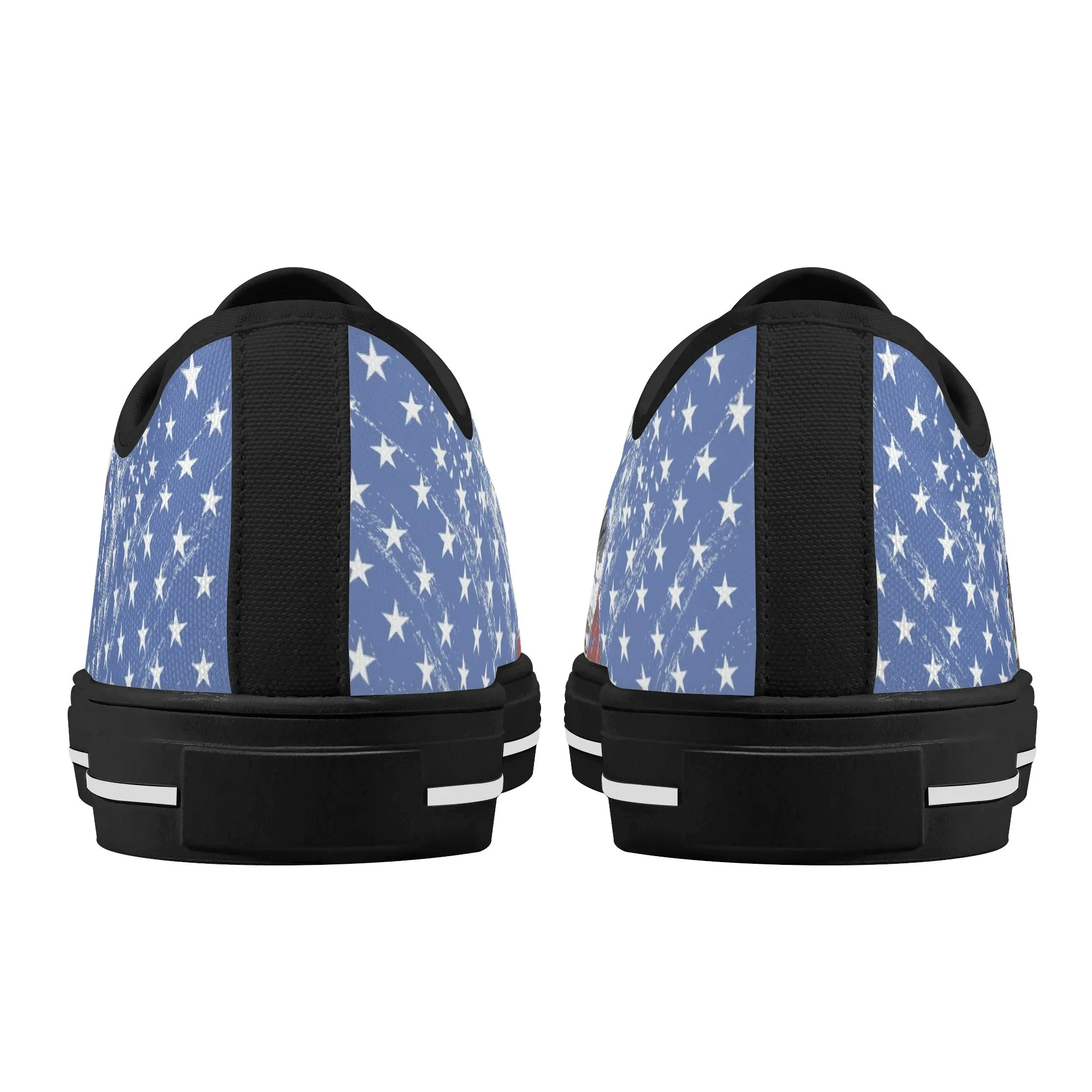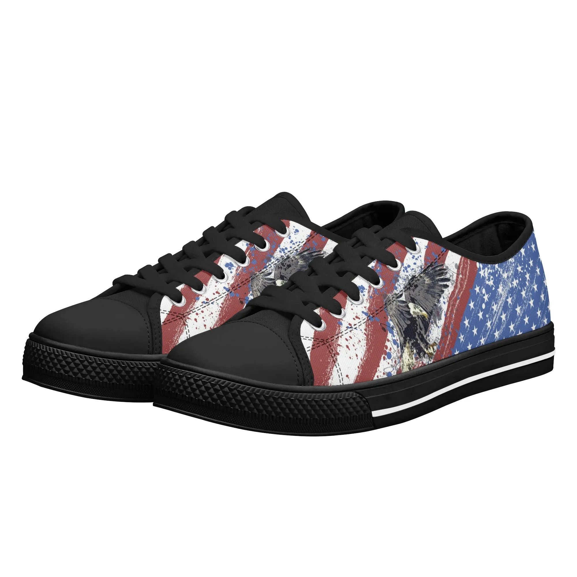 Personalized Grunge American Flag Shoes | Custom Name Distressed Eagle Low Top Canvas Sneakers | Patriotic US Military Gift