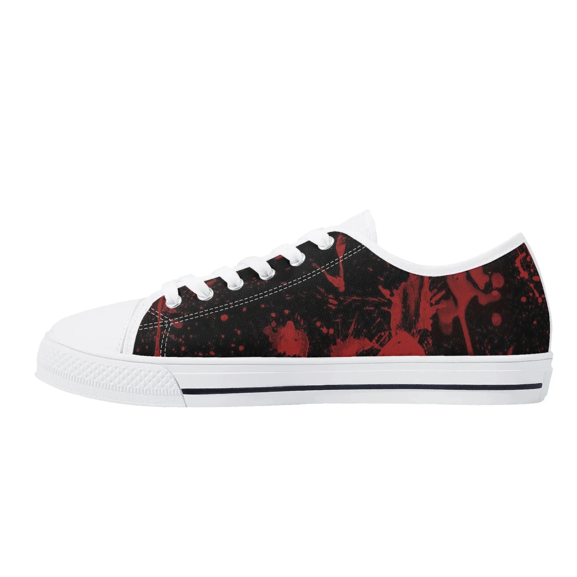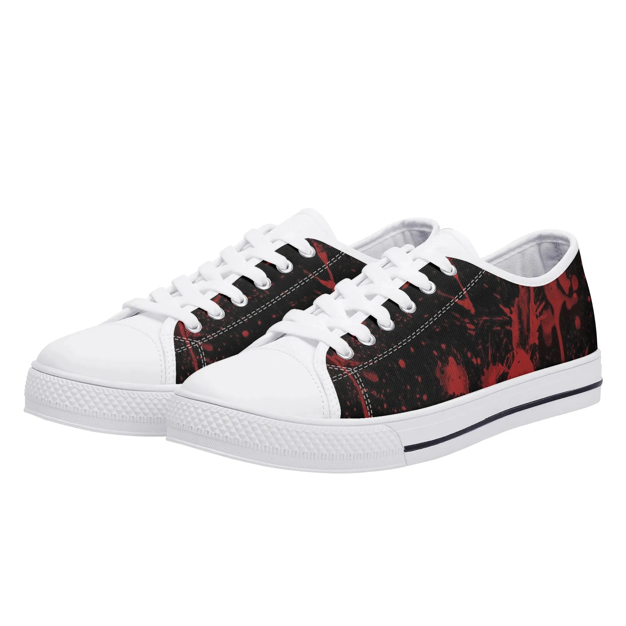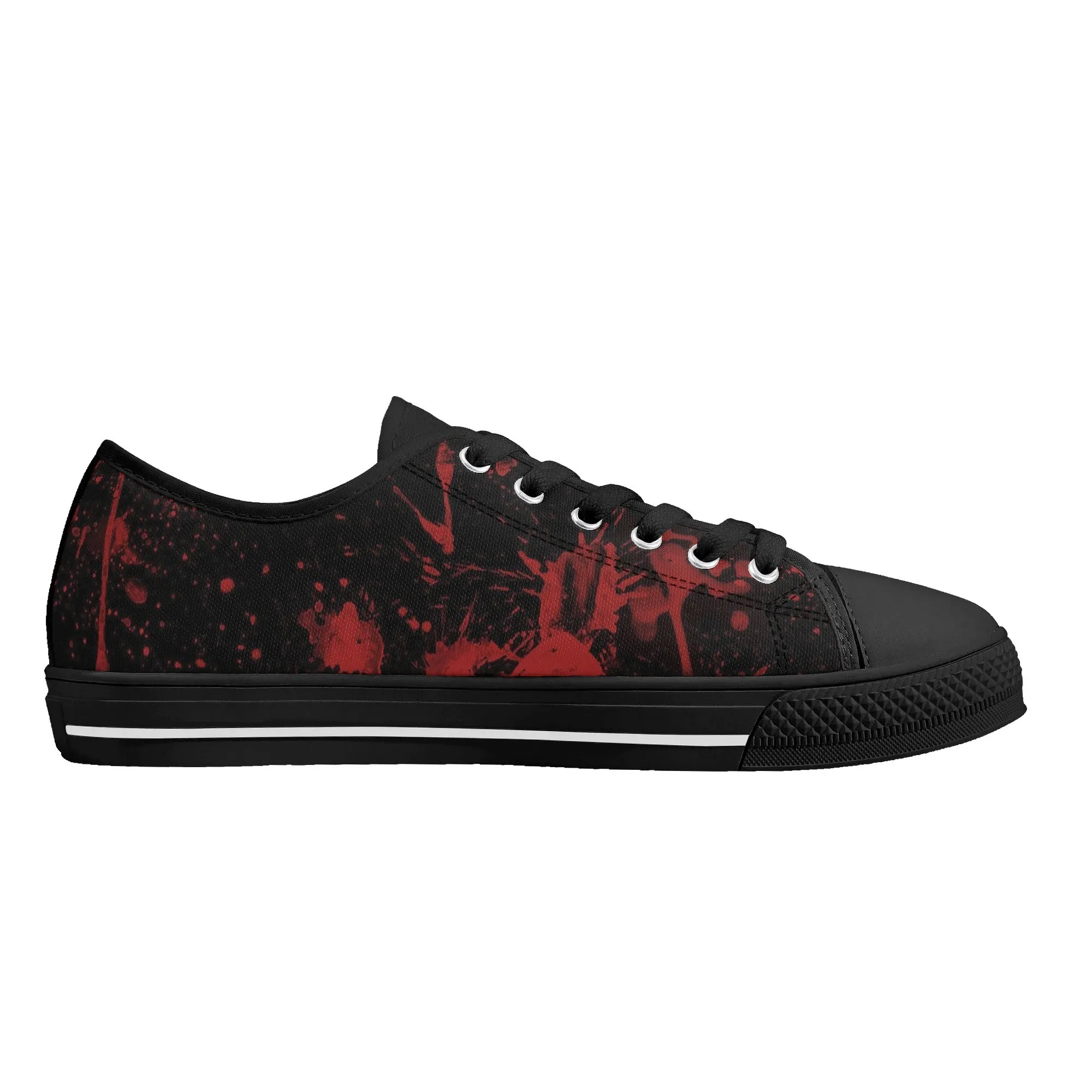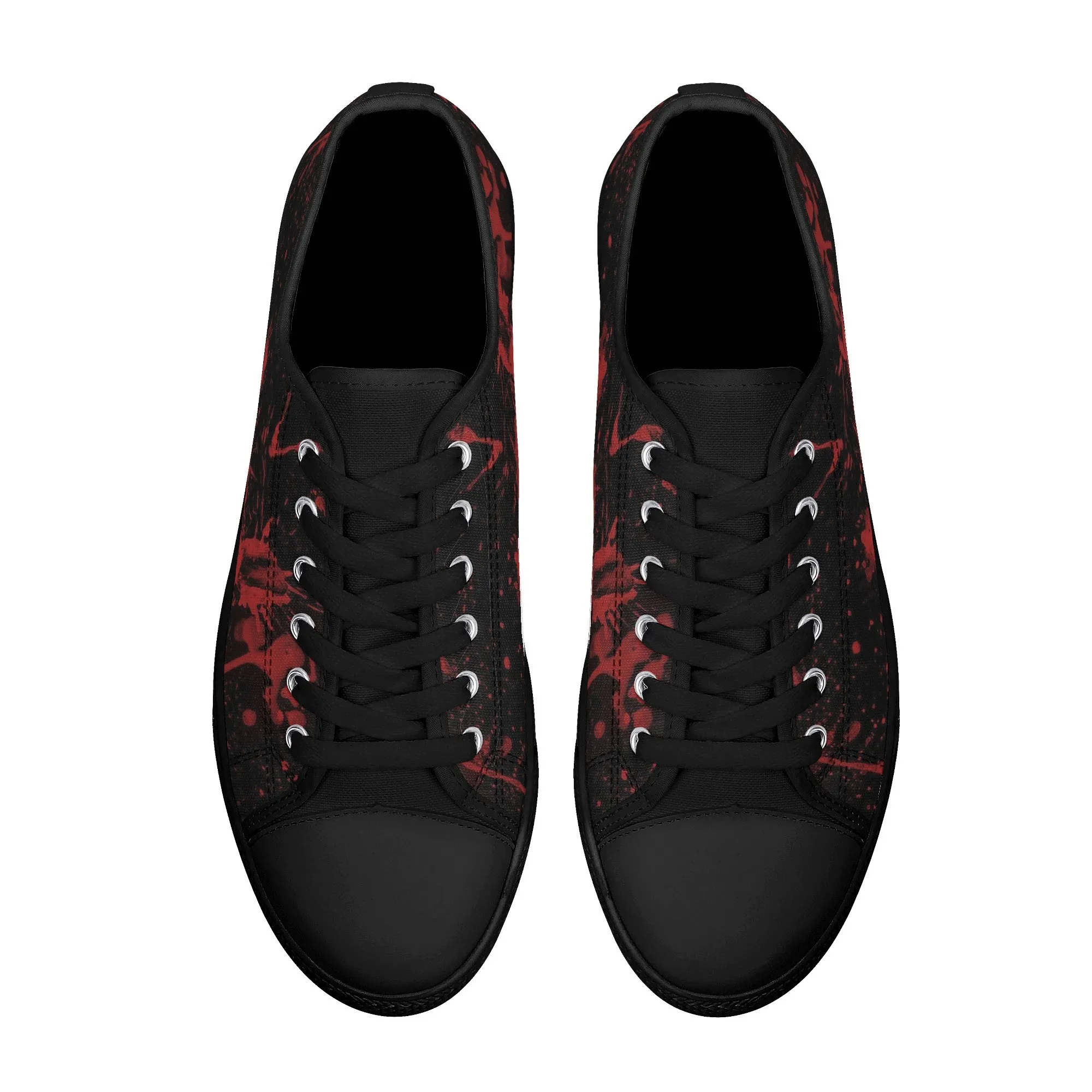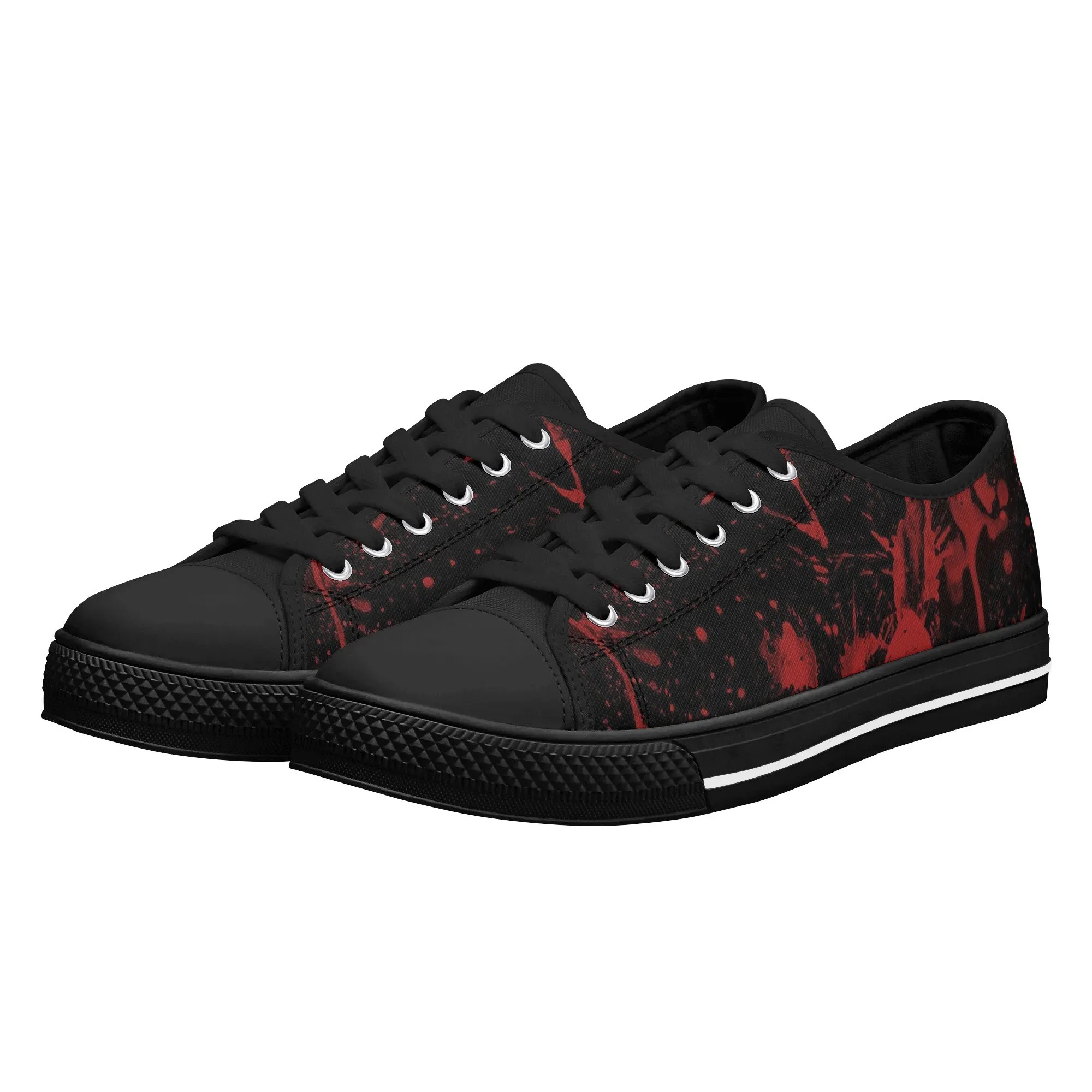 🩸 Make a bold, artistic statement with these striking Red Splatter Paint Low Top Canvas Shoes! Featuring an intense all-over abstract print of blood-red paint splashes on a dark black background, these sneakers exude a cool, chaotic, and edgy grunge aesthetic. The dramatic color contrast and comfortable platform sole make them the ultimate statement shoe for punk, goth, rock, or street style outfits. They are perfect for concerts, casual hangs, or anyone who loves art that screams rebellion.