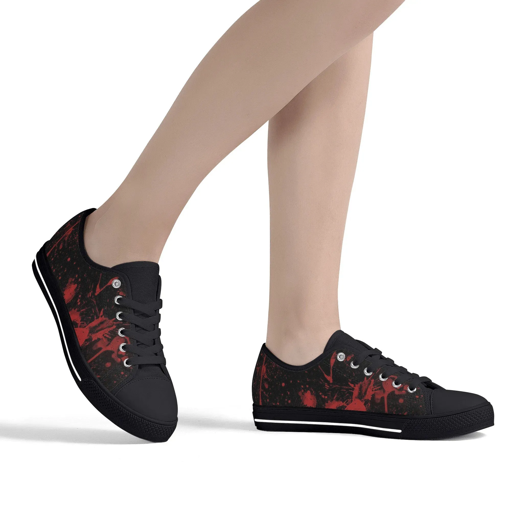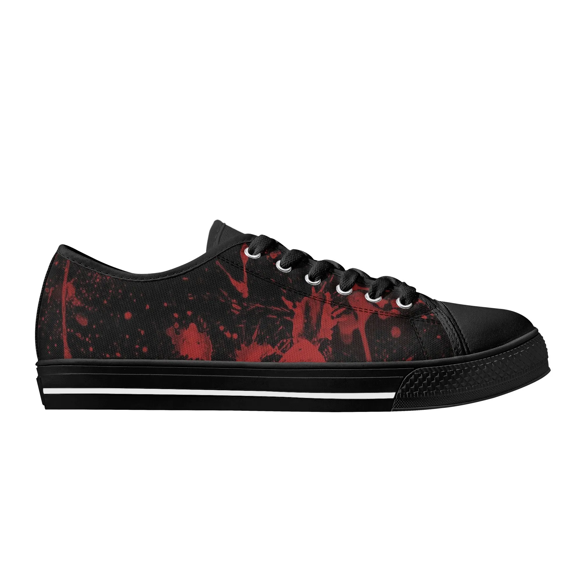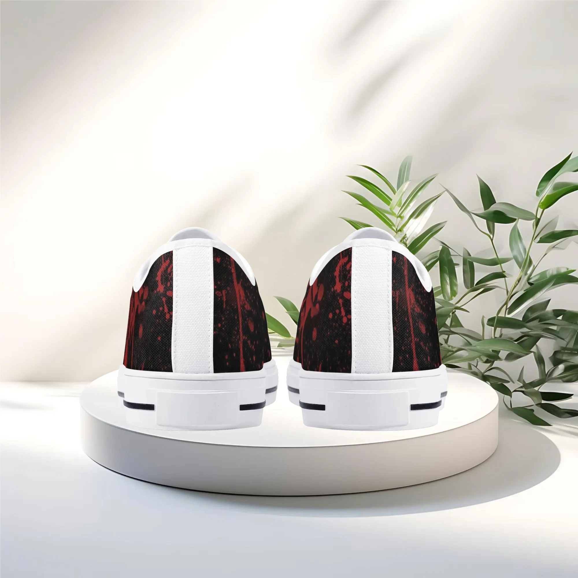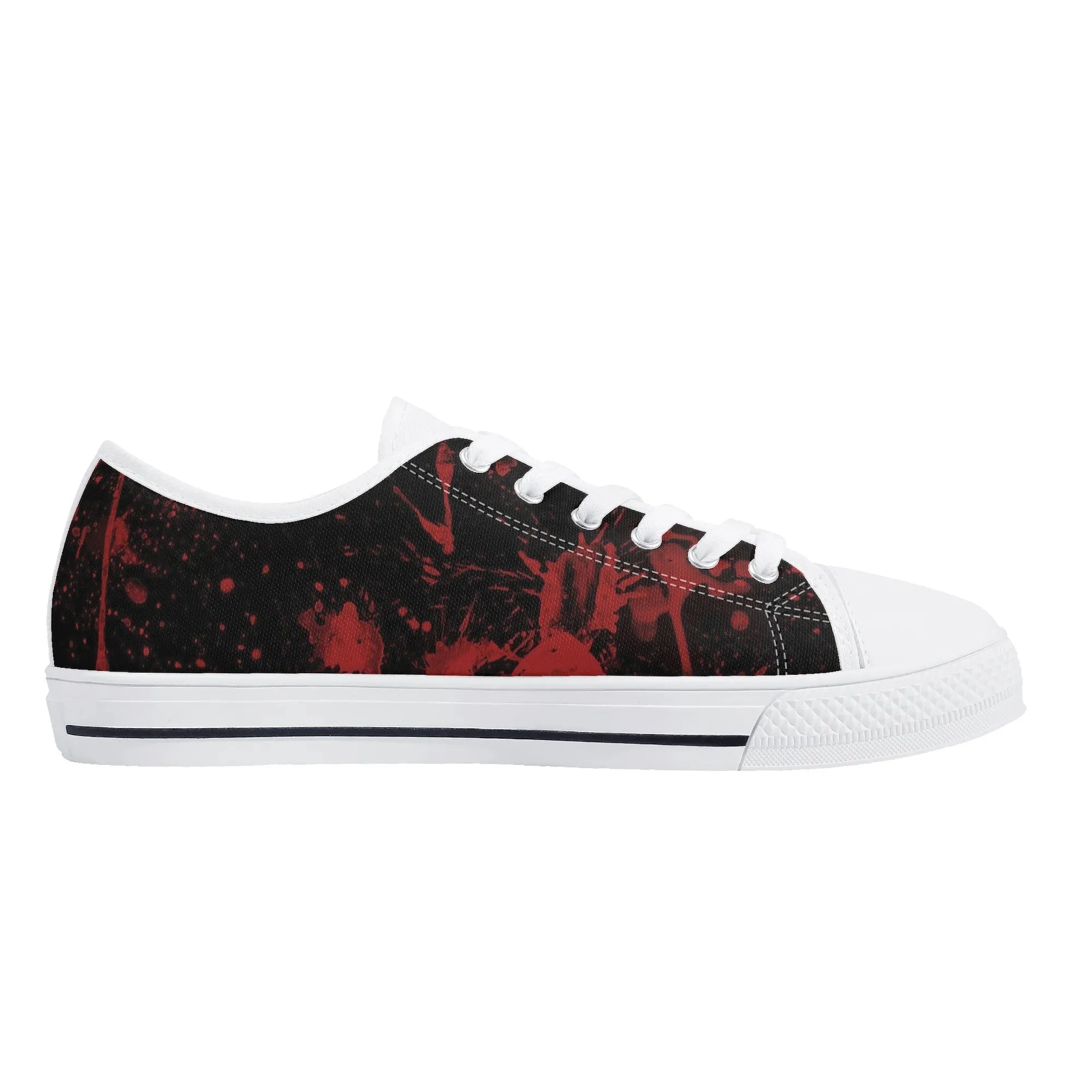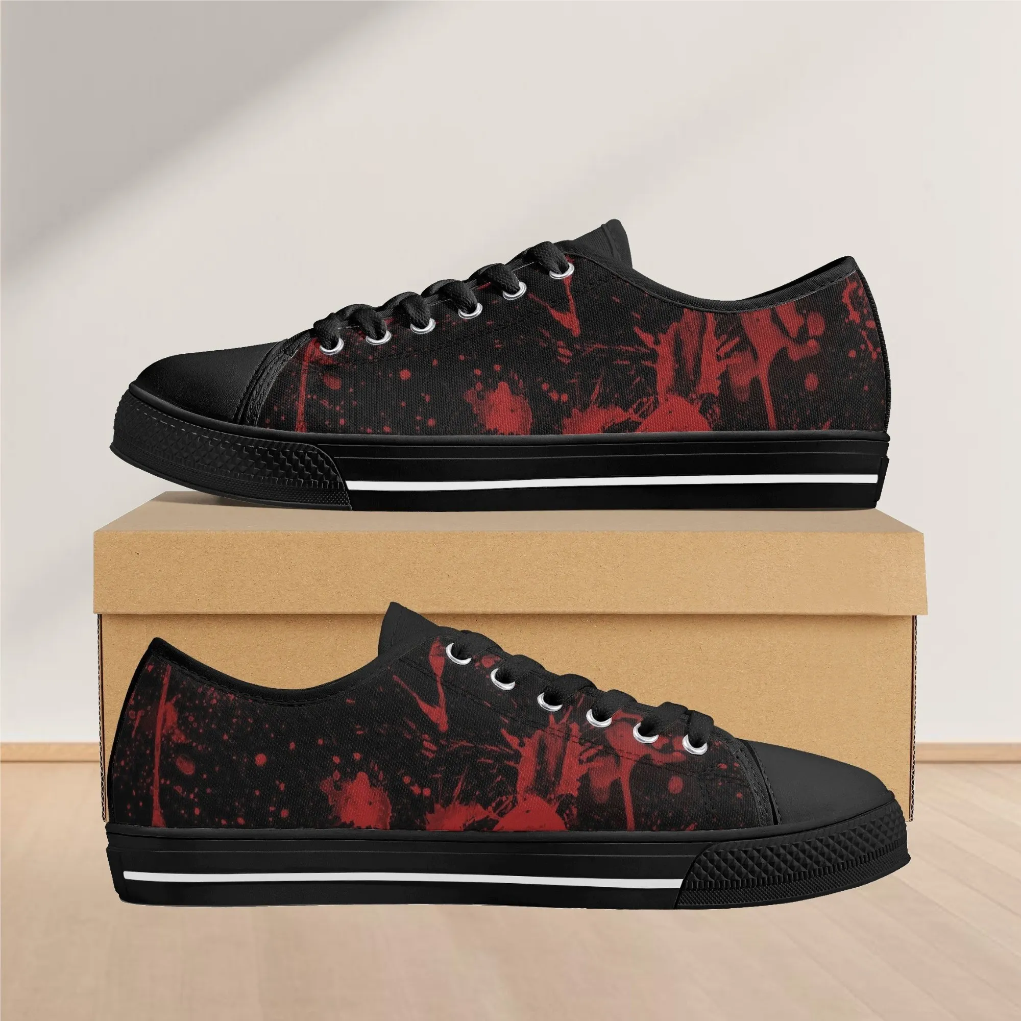 🩸 Make a bold, artistic statement with these striking Red Splatter Paint Low Top Canvas Shoes! Featuring an intense all-over abstract print of blood-red paint splashes on a dark black background, these sneakers exude a cool, chaotic, and edgy grunge aesthetic. The dramatic color contrast and comfortable platform sole make them the ultimate statement shoe for punk, goth, rock, or street style outfits. They are perfect for concerts, casual hangs, or anyone who loves art that screams rebellion.