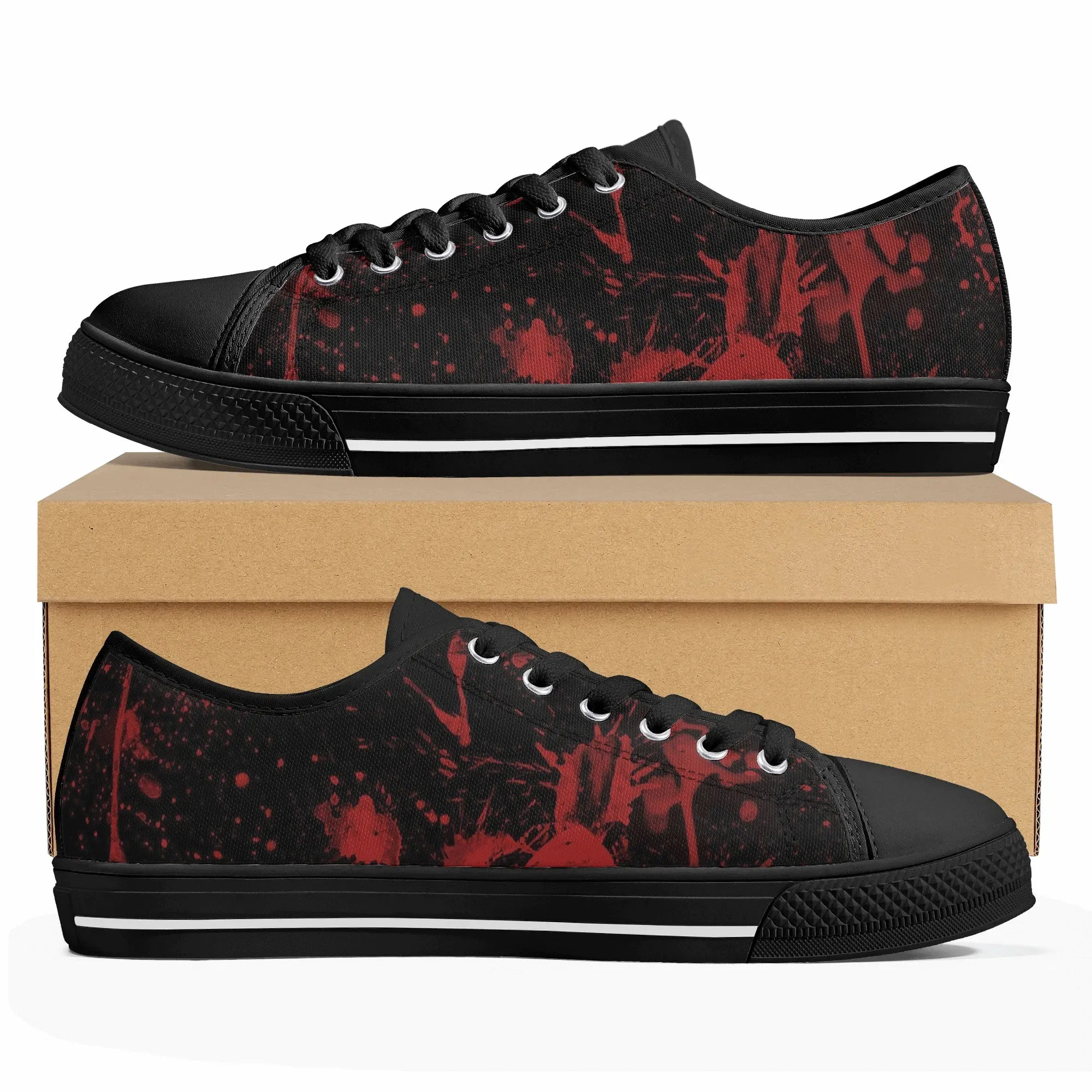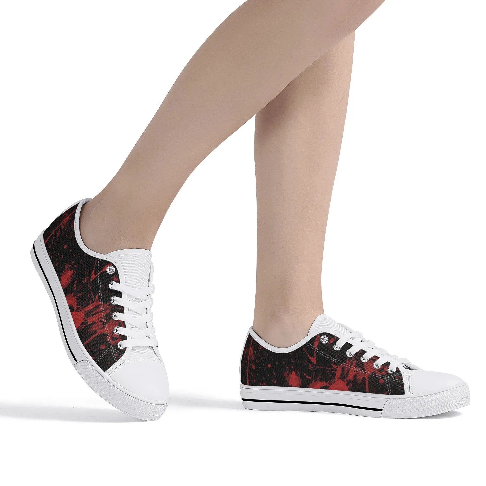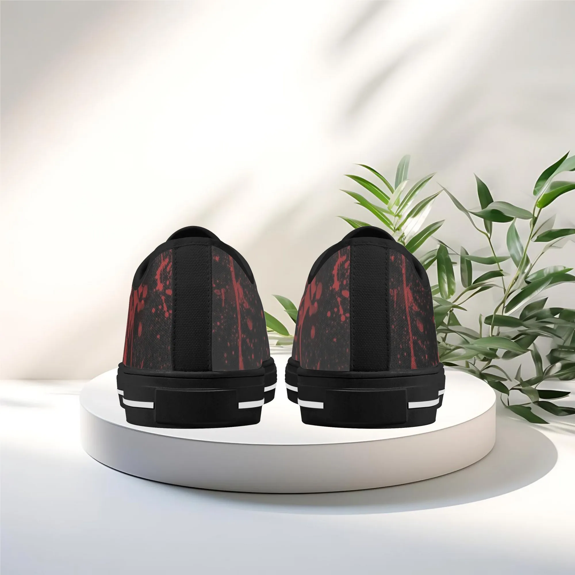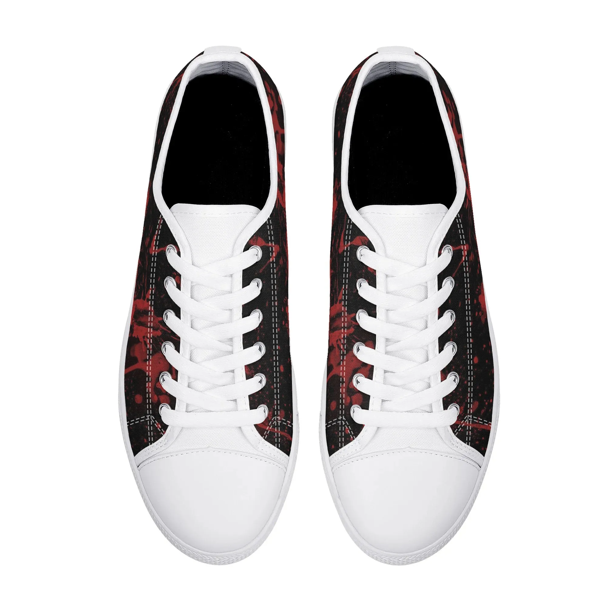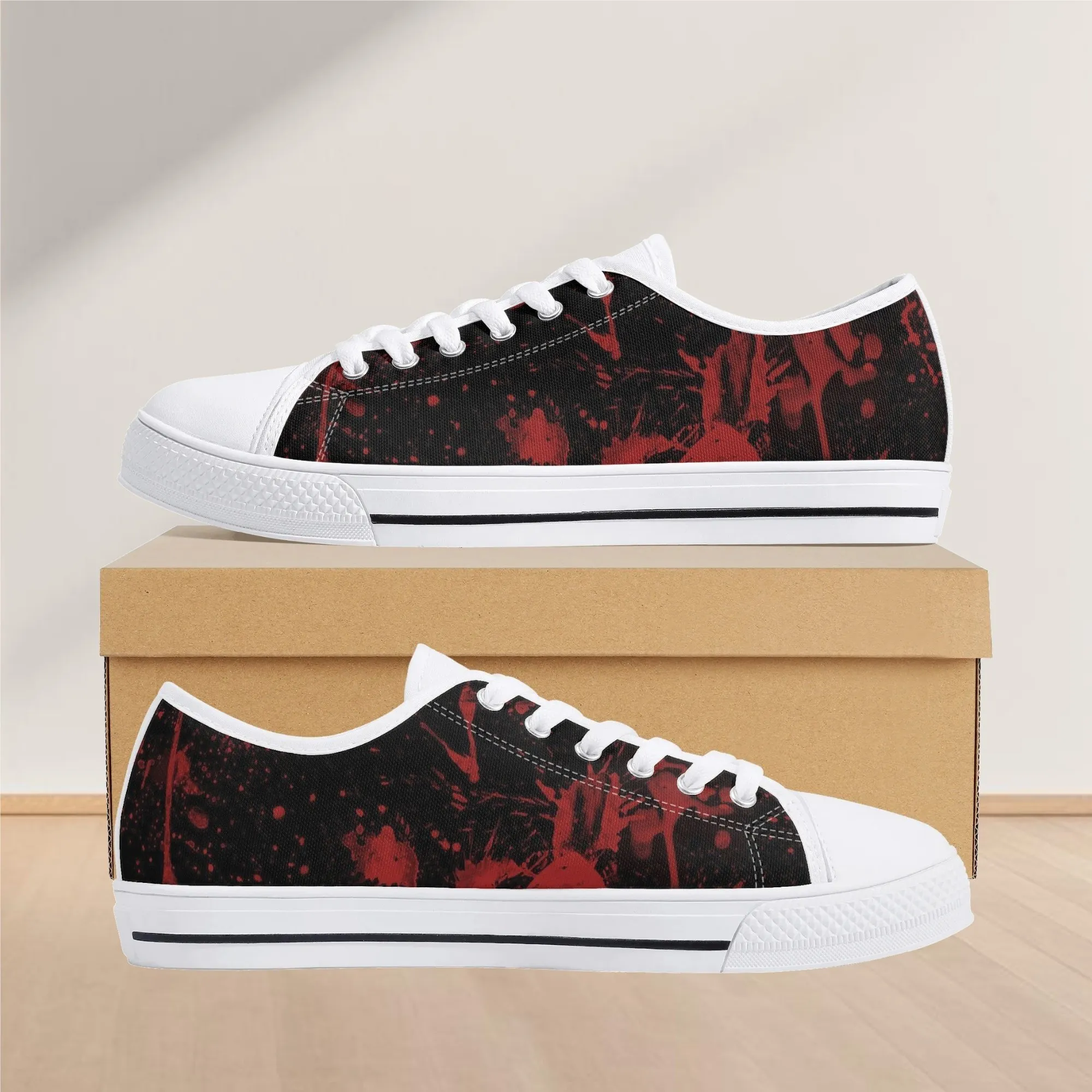 🩸 Make a bold, artistic statement with these striking Red Splatter Paint Low Top Canvas Shoes! Featuring an intense all-over abstract print of blood-red paint splashes on a dark black background, these sneakers exude a cool, chaotic, and edgy grunge aesthetic. The dramatic color contrast and comfortable platform sole make them the ultimate statement shoe for punk, goth, rock, or street style outfits. They are perfect for concerts, casual hangs, or anyone who loves art that screams rebellion.