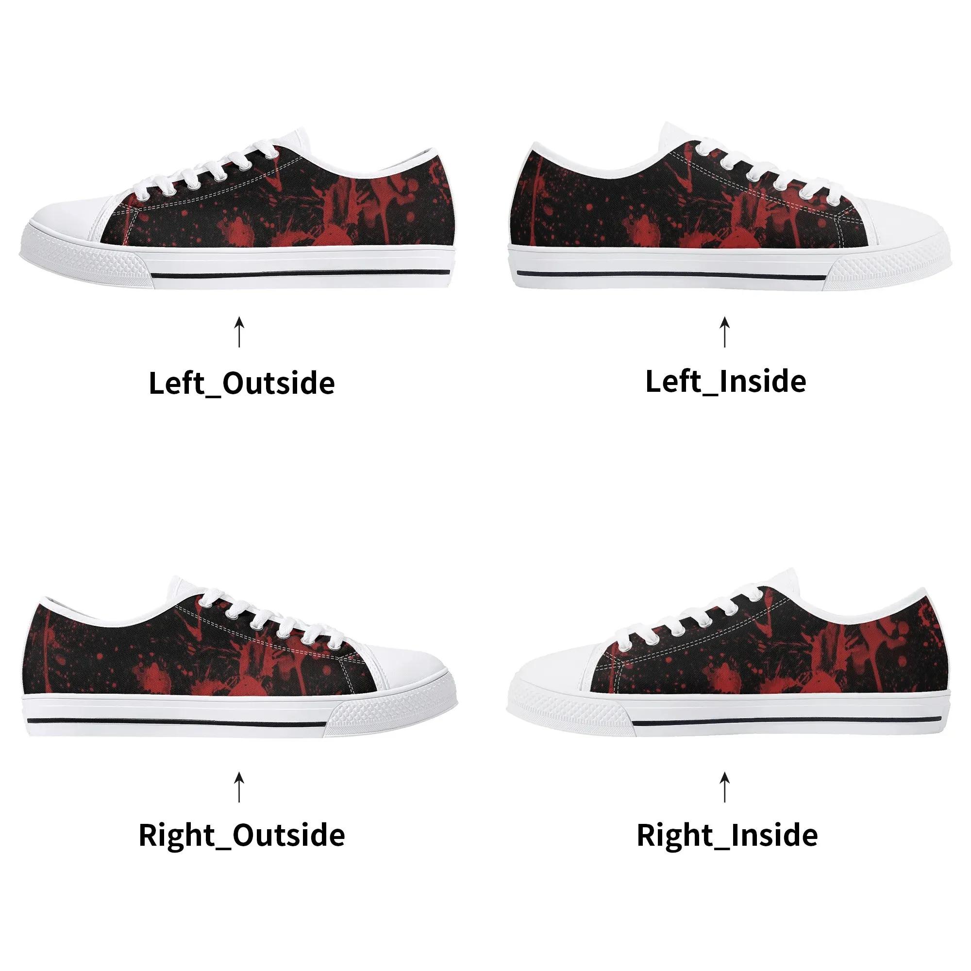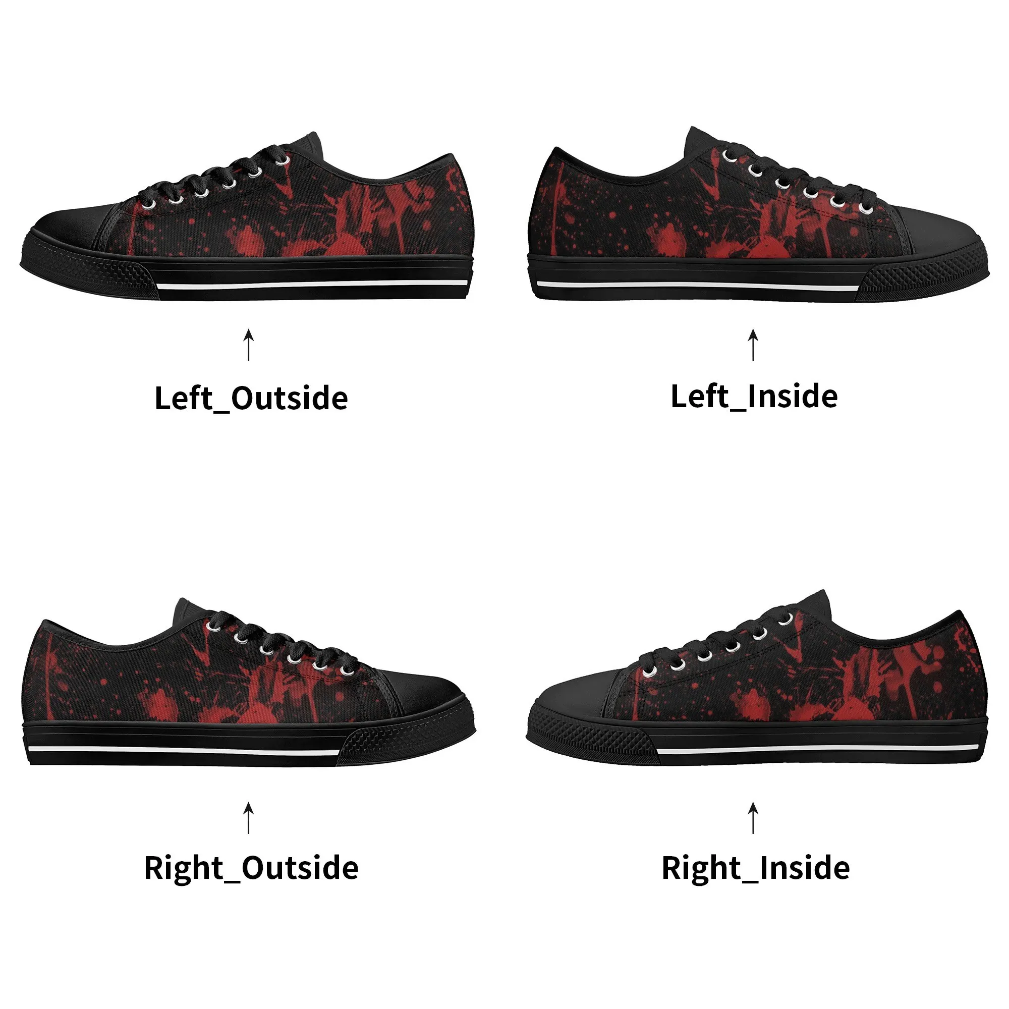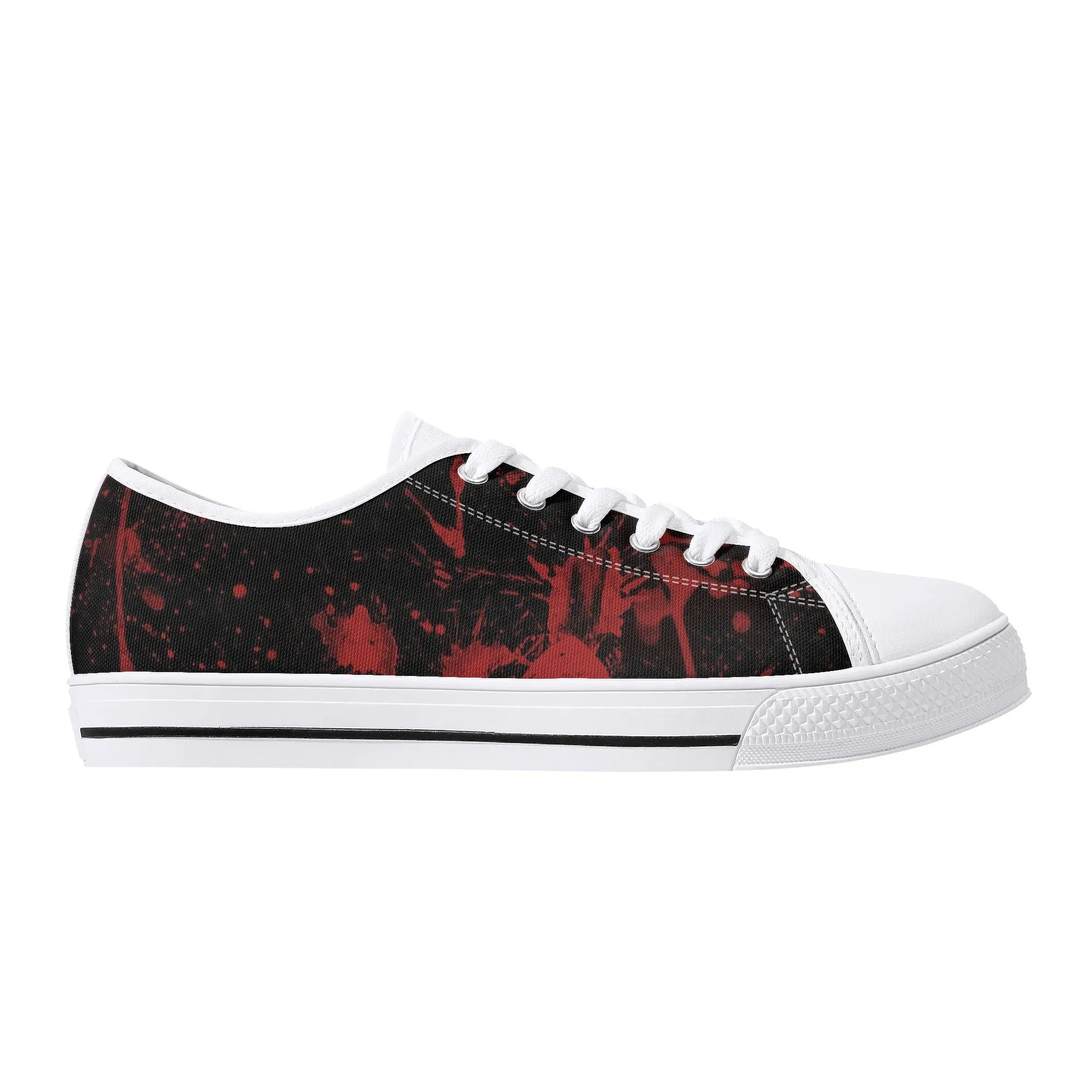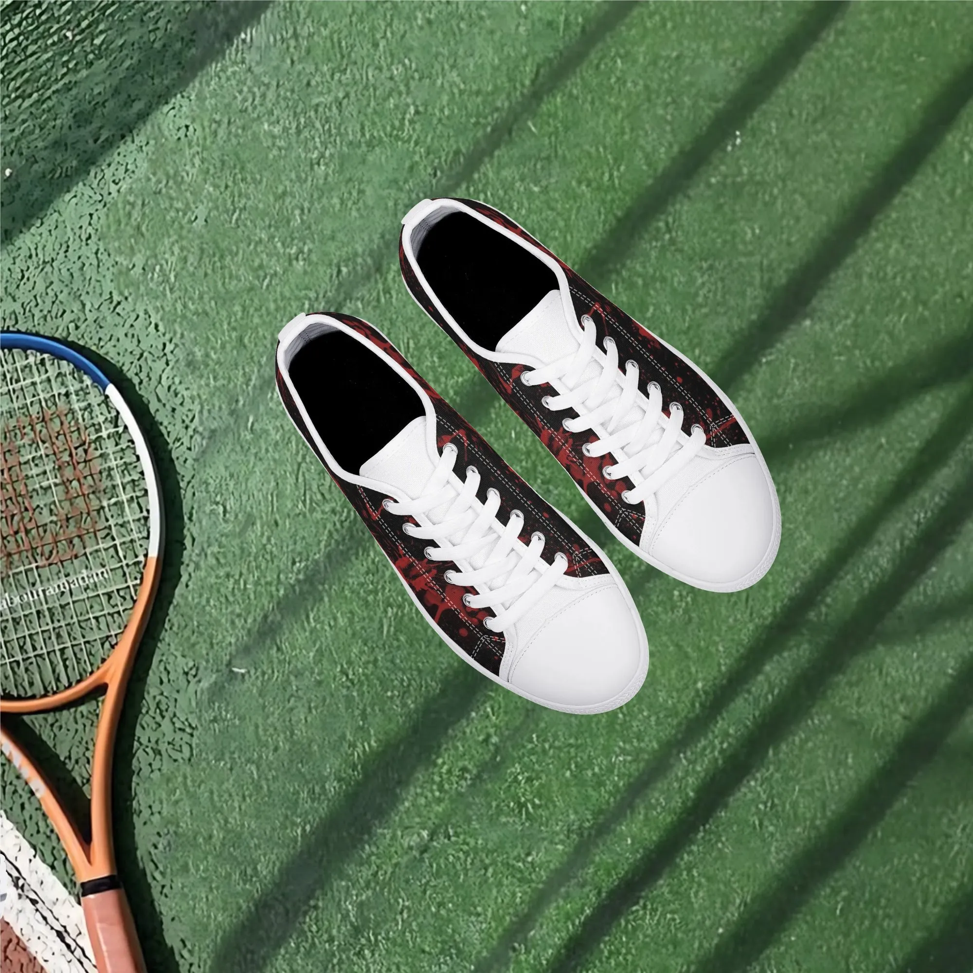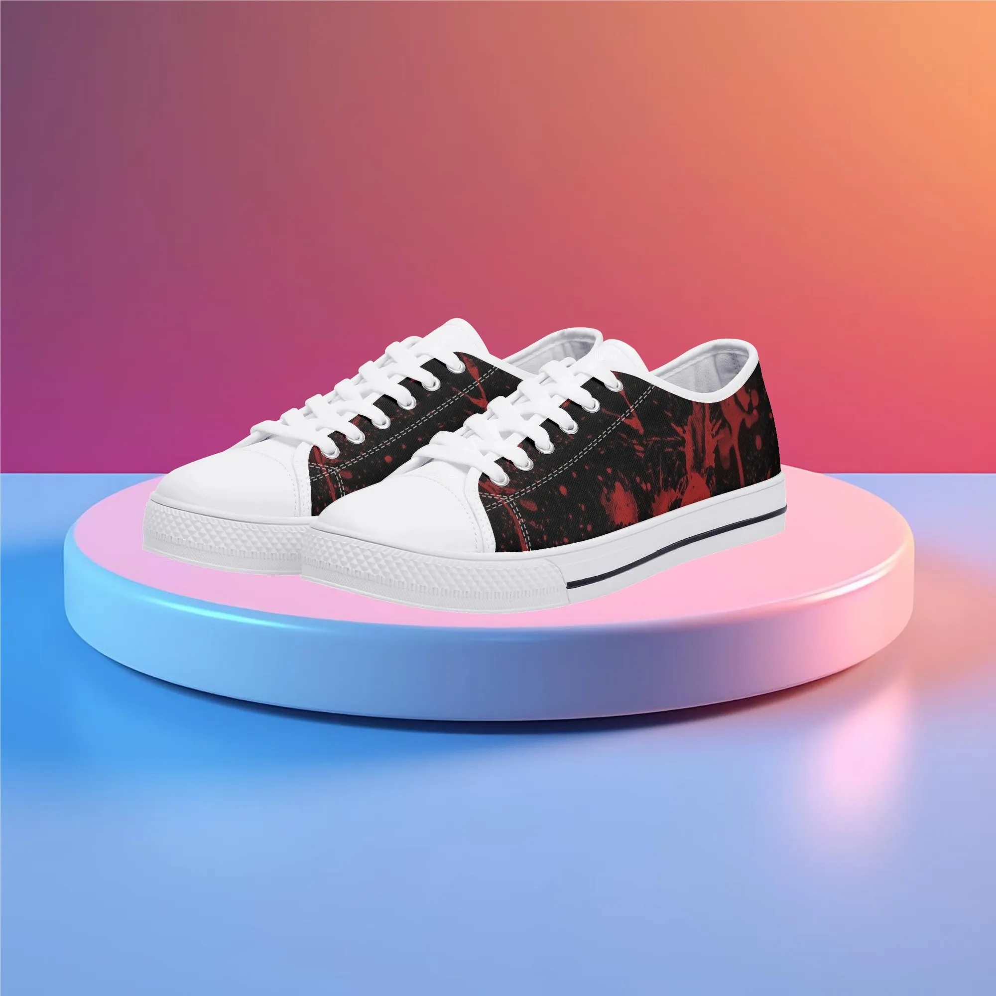 🩸 Make a bold, artistic statement with these striking Red Splatter Paint Low Top Canvas Shoes! Featuring an intense all-over abstract print of blood-red paint splashes on a dark black background, these sneakers exude a cool, chaotic, and edgy grunge aesthetic. The dramatic color contrast and comfortable platform sole make them the ultimate statement shoe for punk, goth, rock, or street style outfits. They are perfect for concerts, casual hangs, or anyone who loves art that screams rebellion.