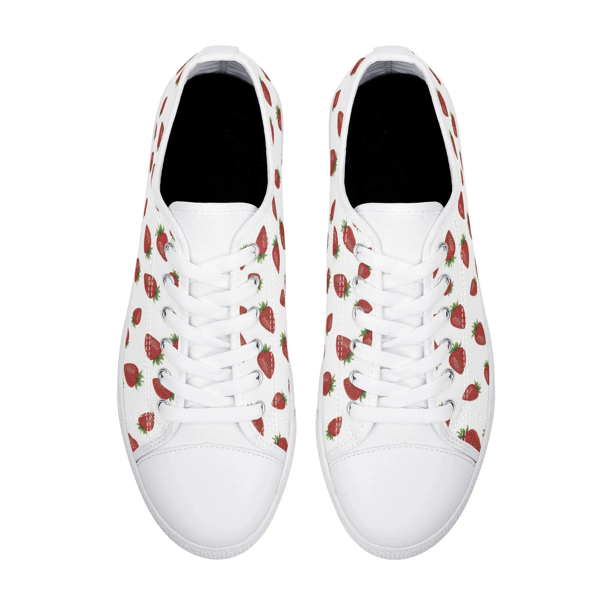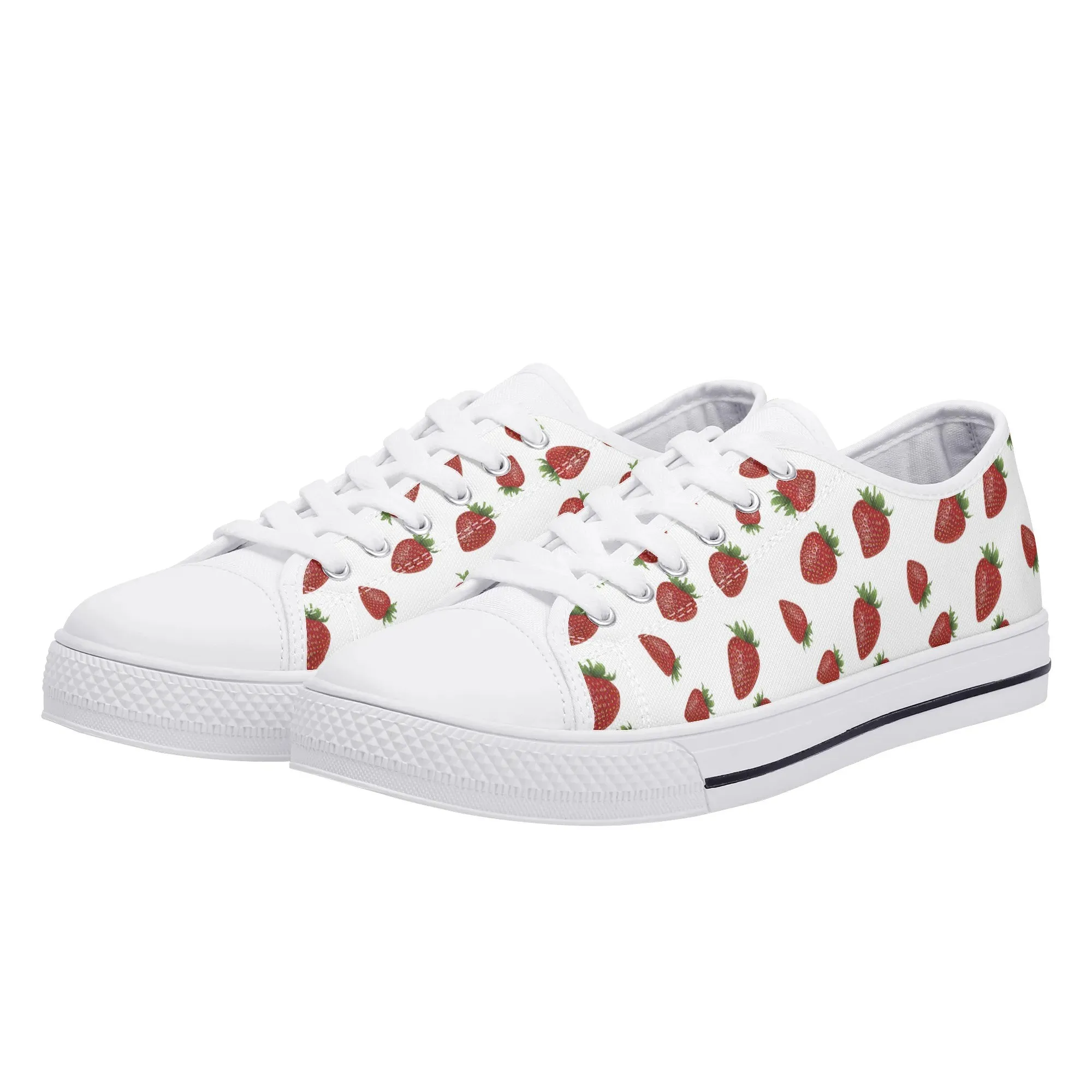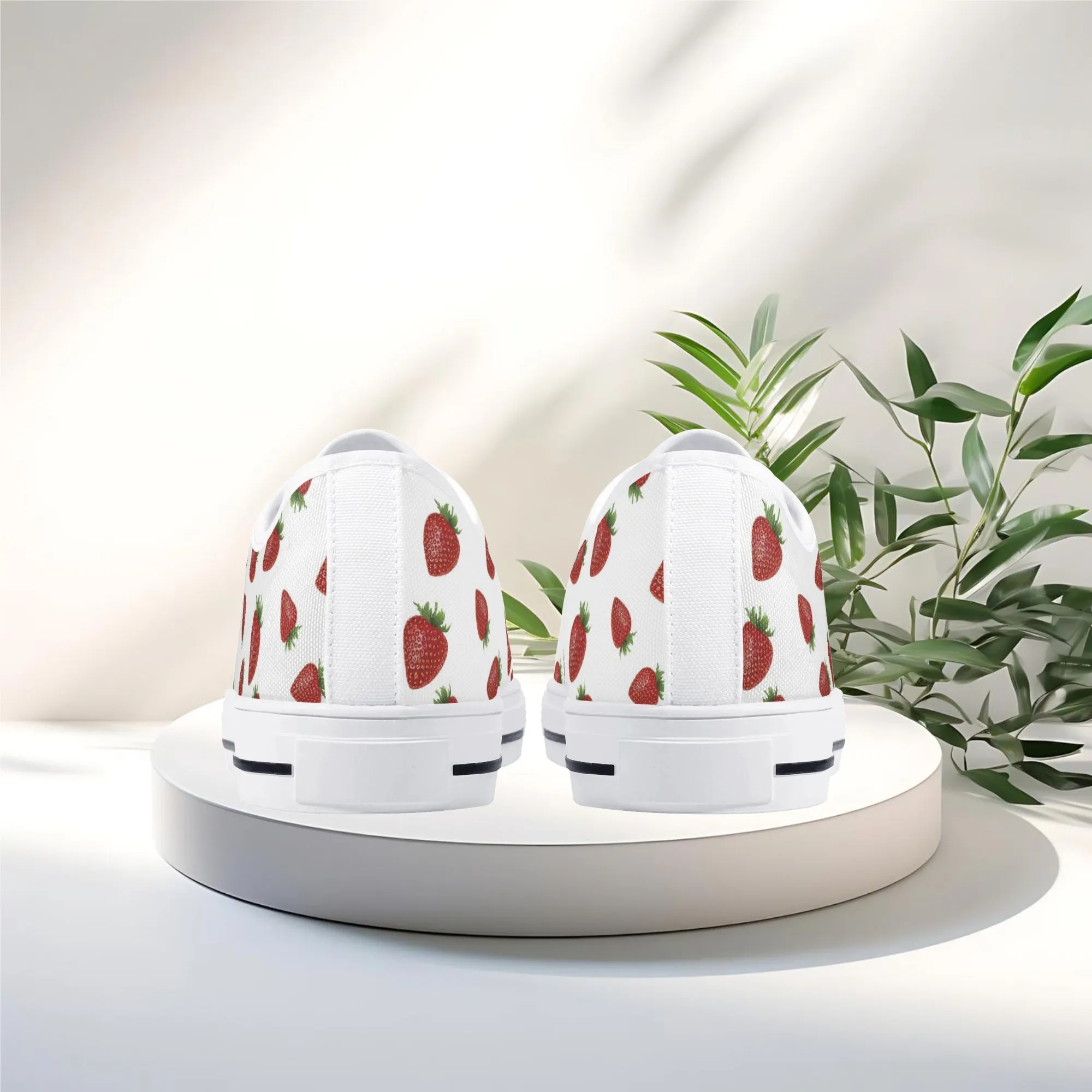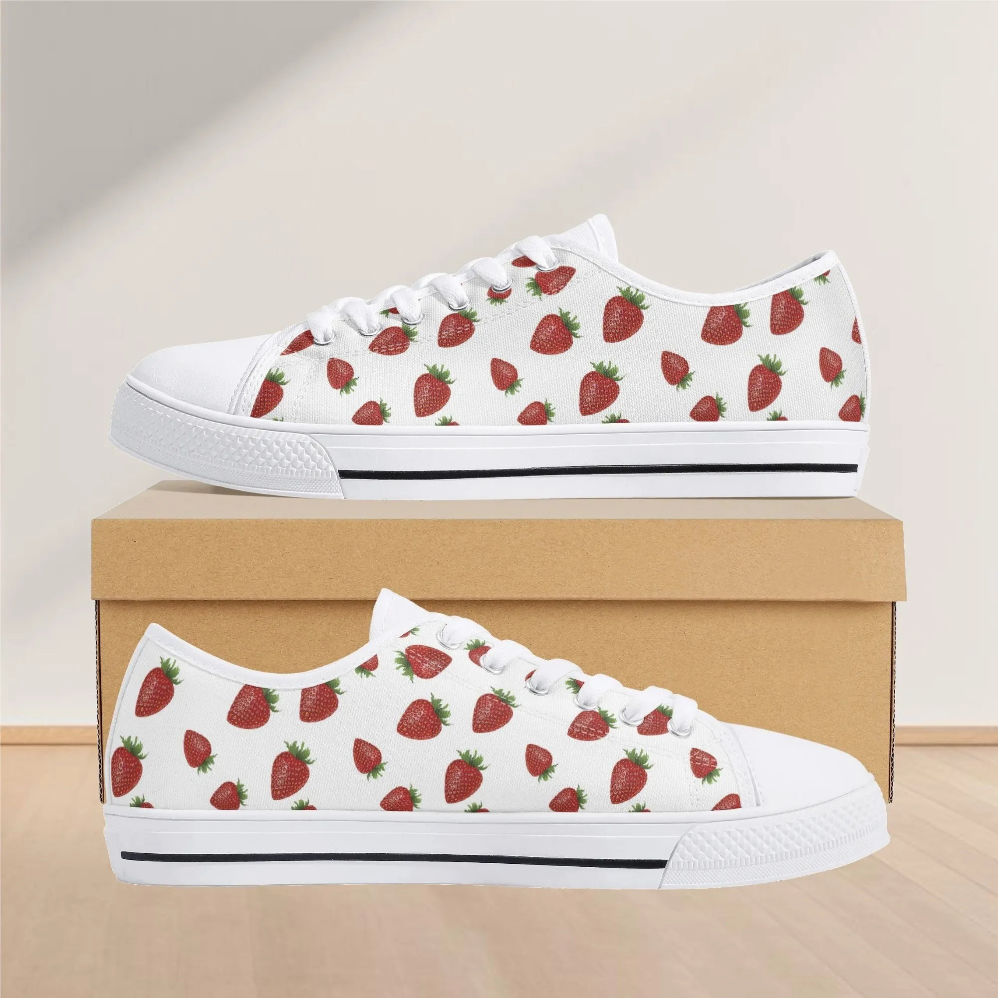 🍓 Sweeten your step with these adorable Strawberry Print Low Top Canvas Shoes! Featuring a playful all-over pattern of red strawberries on a crisp white background, these sneakers are perfect for adding a touch of cute, whimsical charm to your everyday outfits. Ideal for spring, summer, and any casual outing, their durable construction and comfortable platform sole make them a fun and practical addition to any shoe collection. Treat yourself or a friend to this sweet footwear!