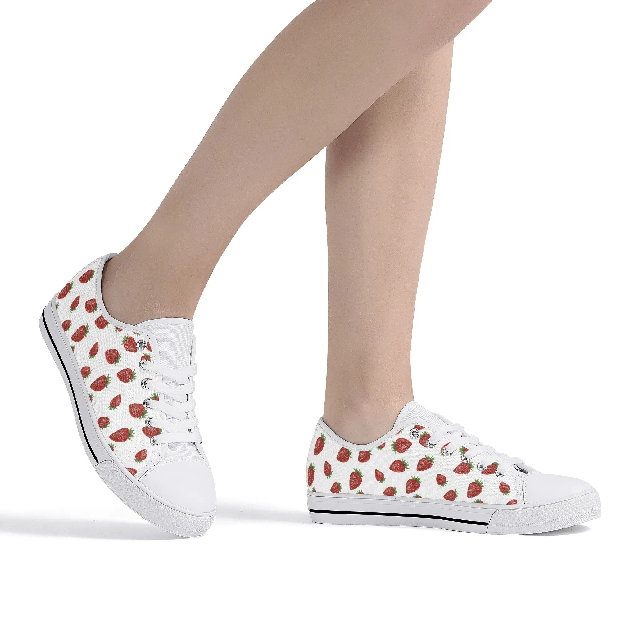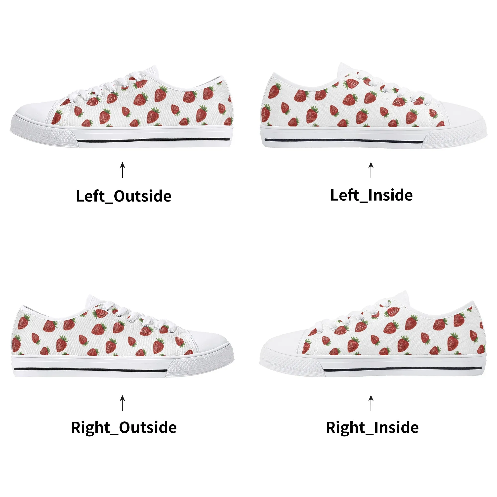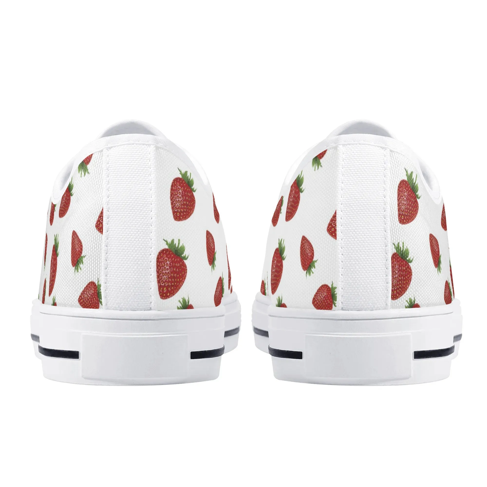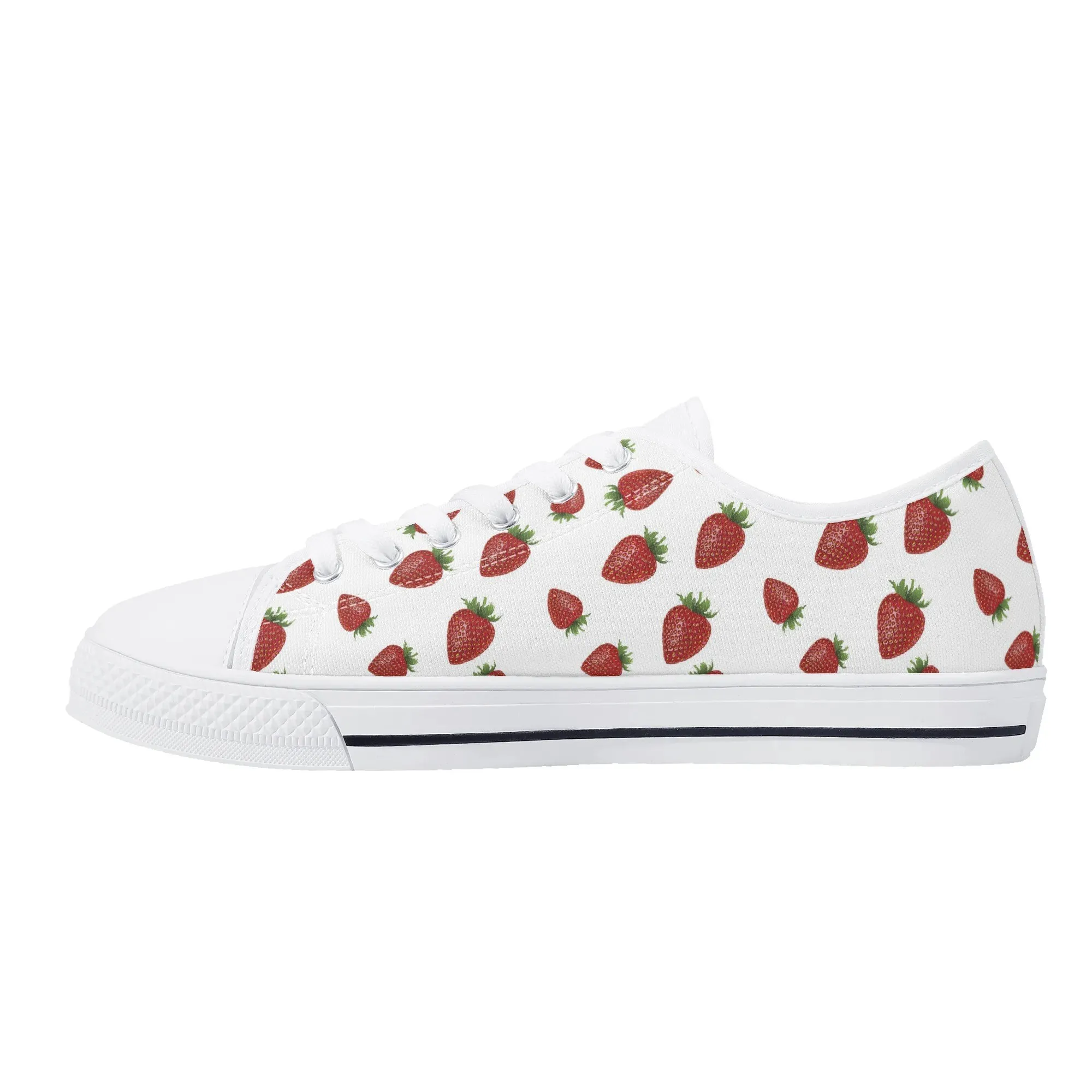 🍓 Sweeten your step with these adorable Strawberry Print Low Top Canvas Shoes! Featuring a playful all-over pattern of red strawberries on a crisp white background, these sneakers are perfect for adding a touch of cute, whimsical charm to your everyday outfits. Ideal for spring, summer, and any casual outing, their durable construction and comfortable platform sole make them a fun and practical addition to any shoe collection. Treat yourself or a friend to this sweet footwear!
